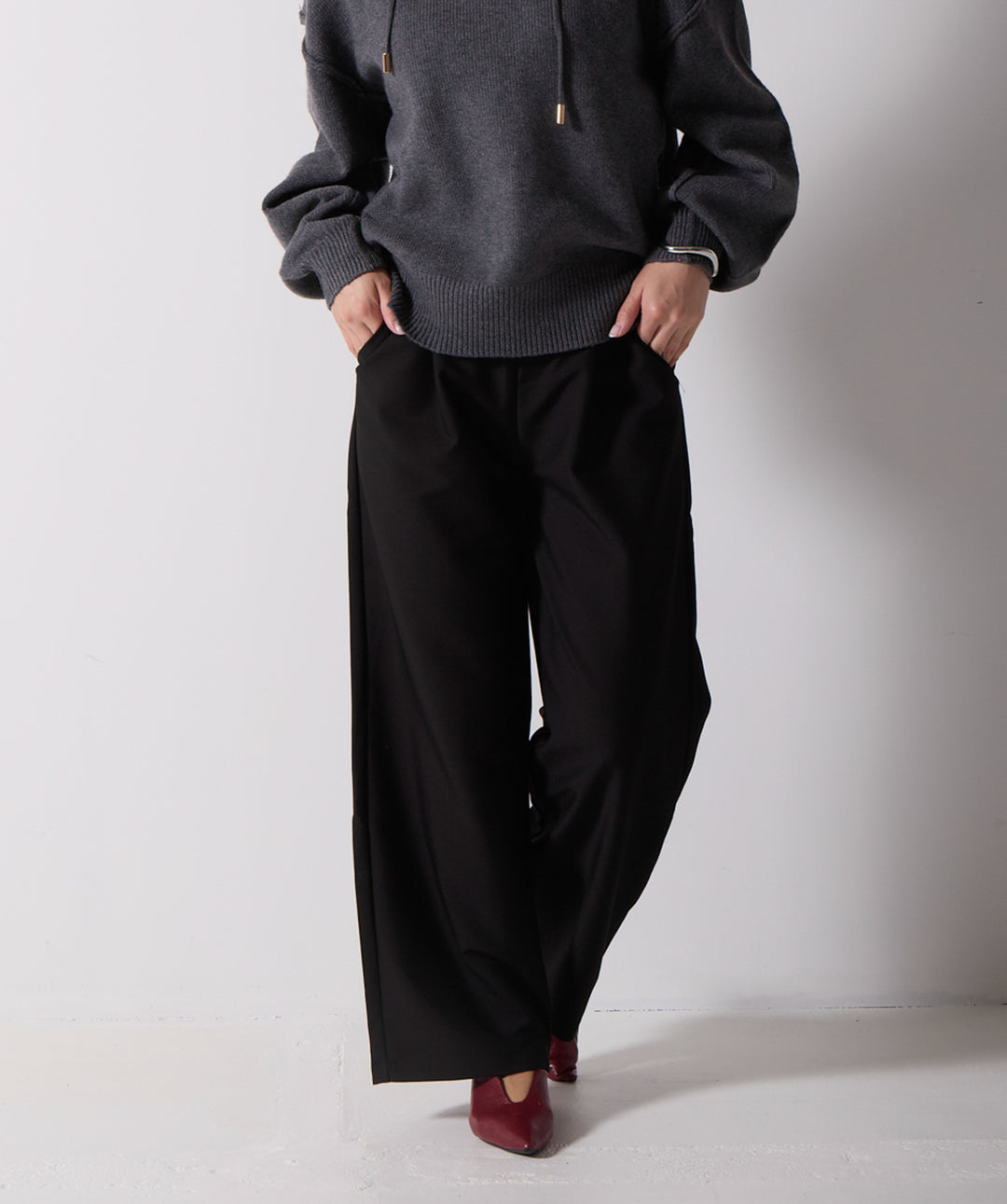 ウエストデザインワイドパンツ