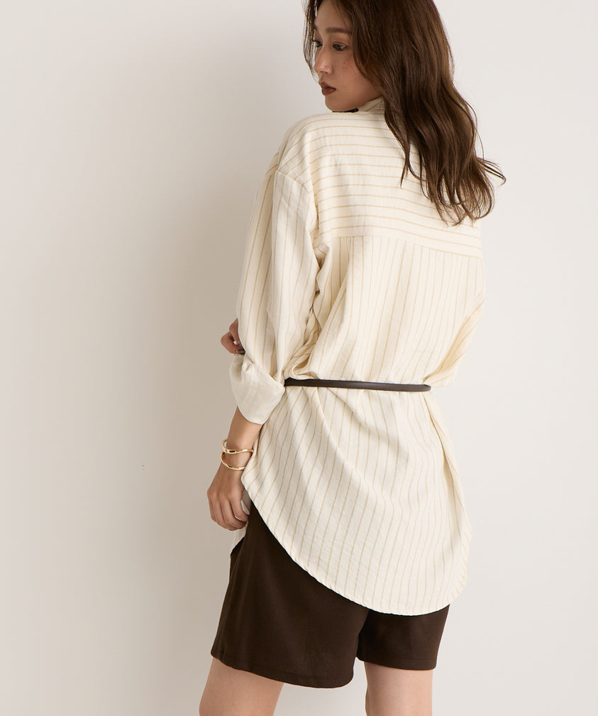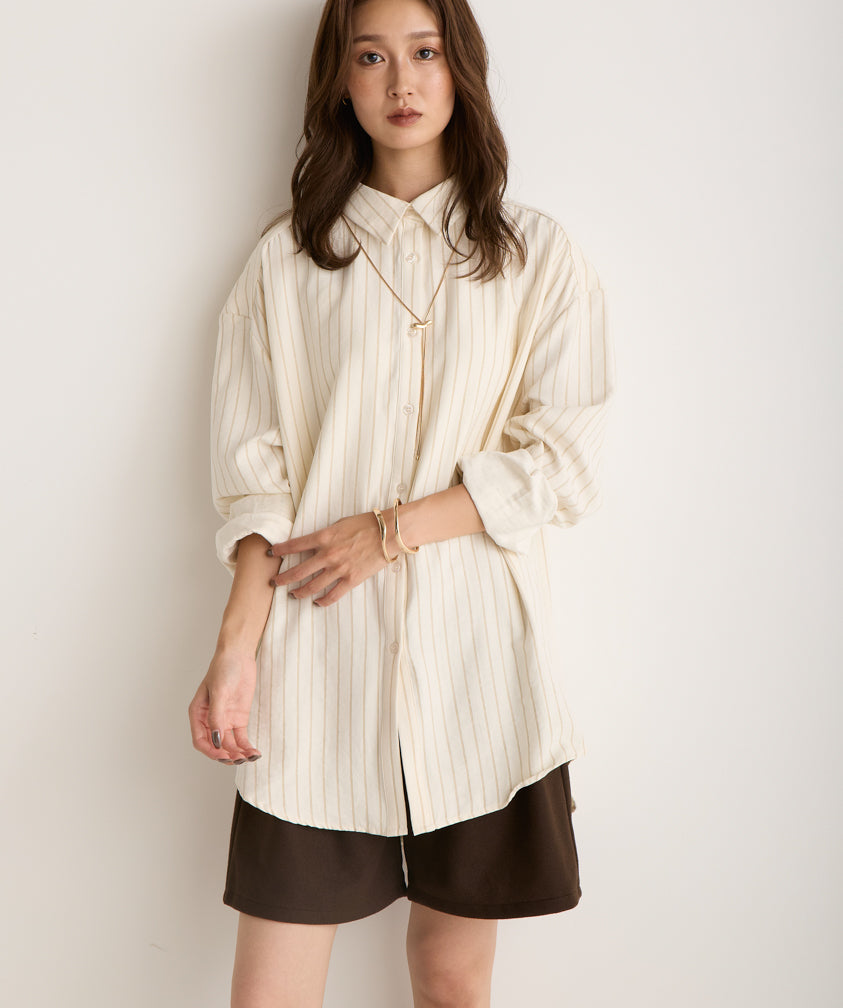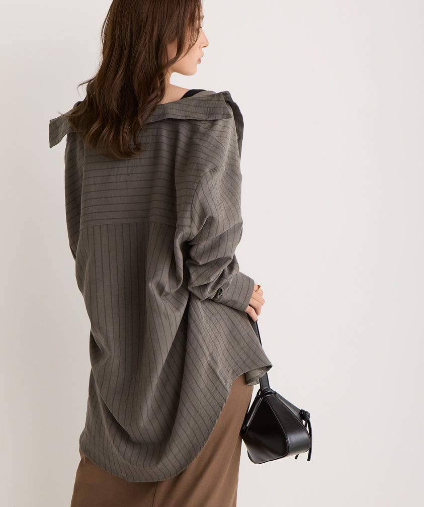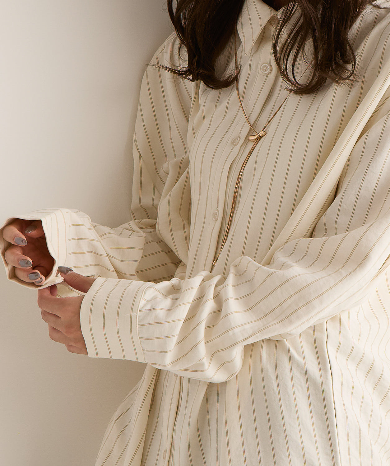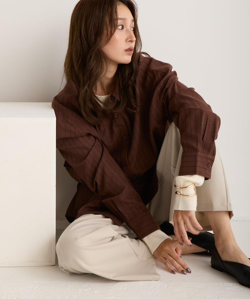 抜け感ときちんと感を両立、大人映えするストライプビッグシャツ。程よいボリュームのパワーショルダーが特徴のストライプ柄ビッグシャツ。肩周りに自然な立体感を持たせ、スタイルアップ効果も◎。落ち感のある滑らかな素材が体のラインを拾いすぎず、こなれた印象を演出します。ヒップが隠れる着丈で、アウトでもインでも決まるデザイン。きれいめパンツに合わせてオフィスカジュアルに、デニムやスカートと合わせてカジュアルダウンにも対応。羽織りとしても使える万能シャツは、シーズンレスで活躍する大人のワードローブにおすすめの一枚です。