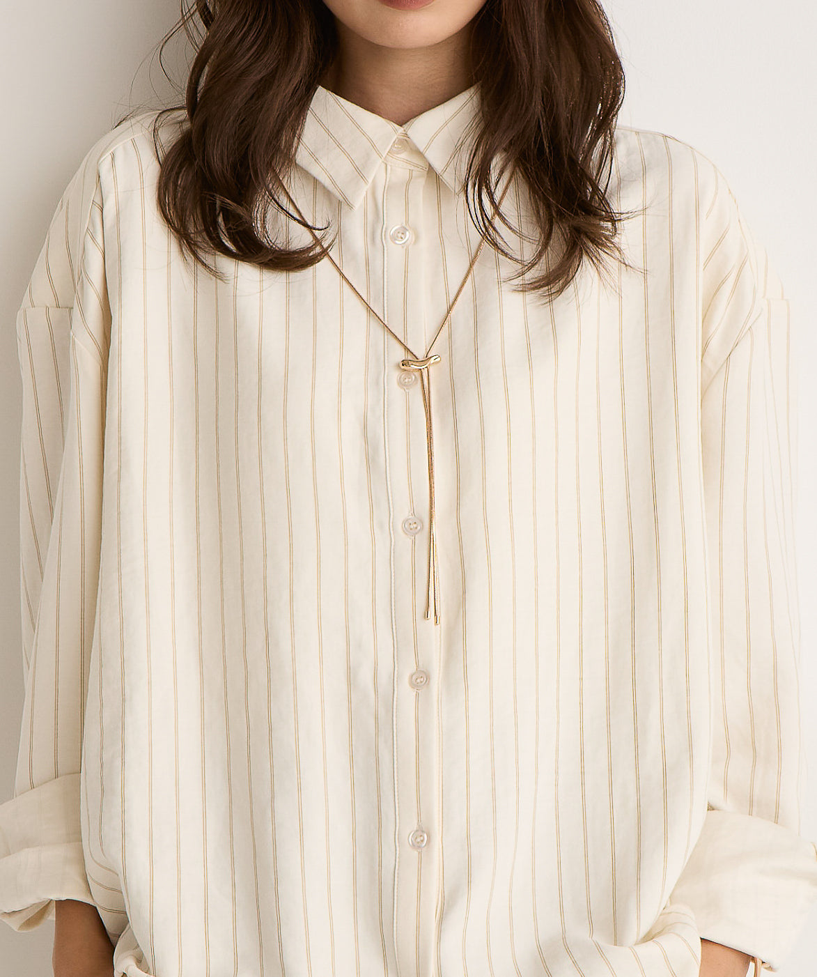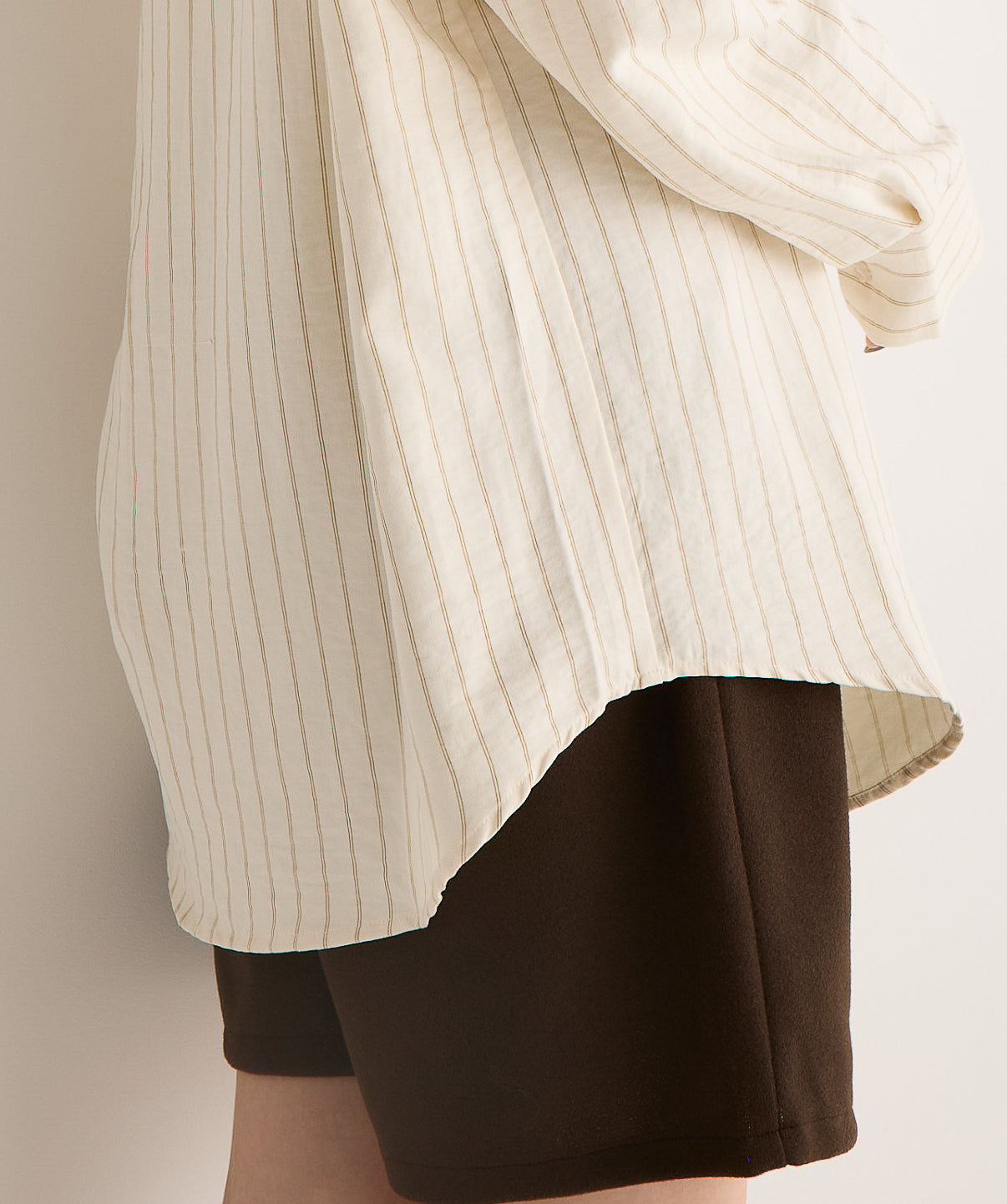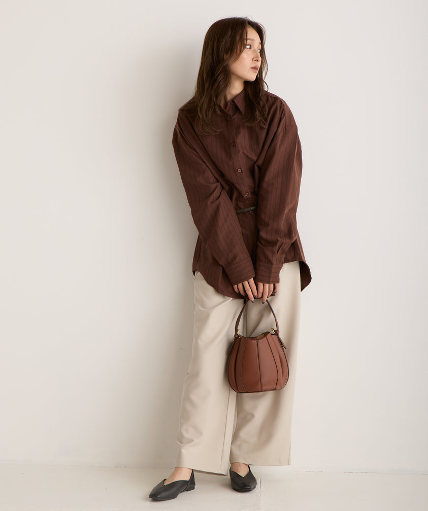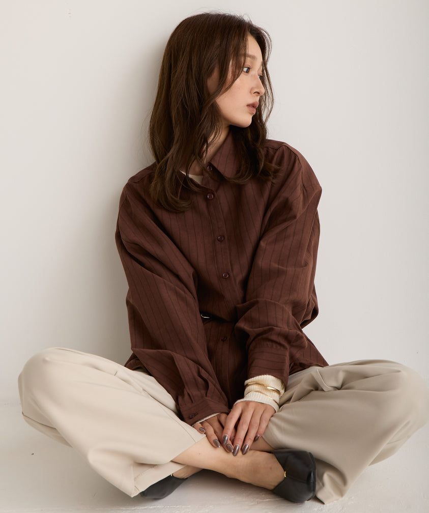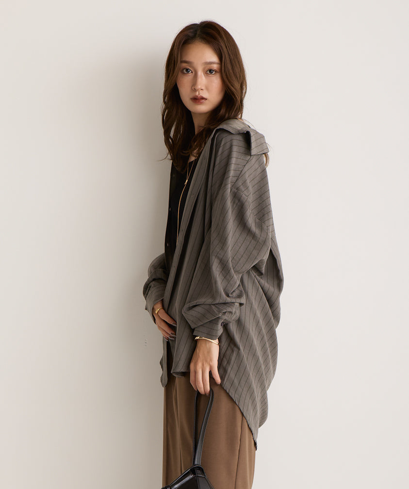 抜け感ときちんと感を両立、大人映えするストライプビッグシャツ。程よいボリュームのパワーショルダーが特徴のストライプ柄ビッグシャツ。肩周りに自然な立体感を持たせ、スタイルアップ効果も◎。落ち感のある滑らかな素材が体のラインを拾いすぎず、こなれた印象を演出します。ヒップが隠れる着丈で、アウトでもインでも決まるデザイン。きれいめパンツに合わせてオフィスカジュアルに、デニムやスカートと合わせてカジュアルダウンにも対応。羽織りとしても使える万能シャツは、シーズンレスで活躍する大人のワードローブにおすすめの一枚です。