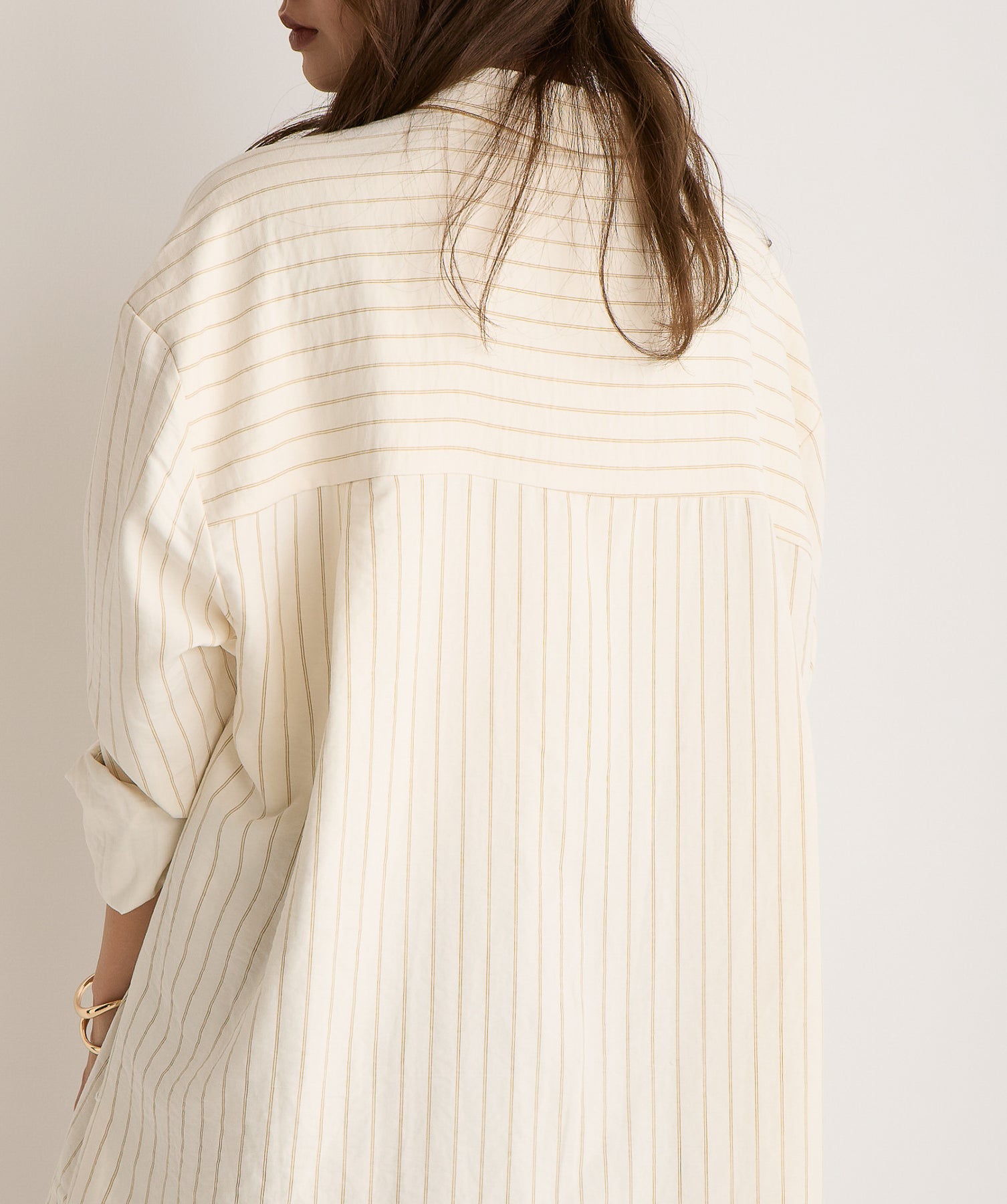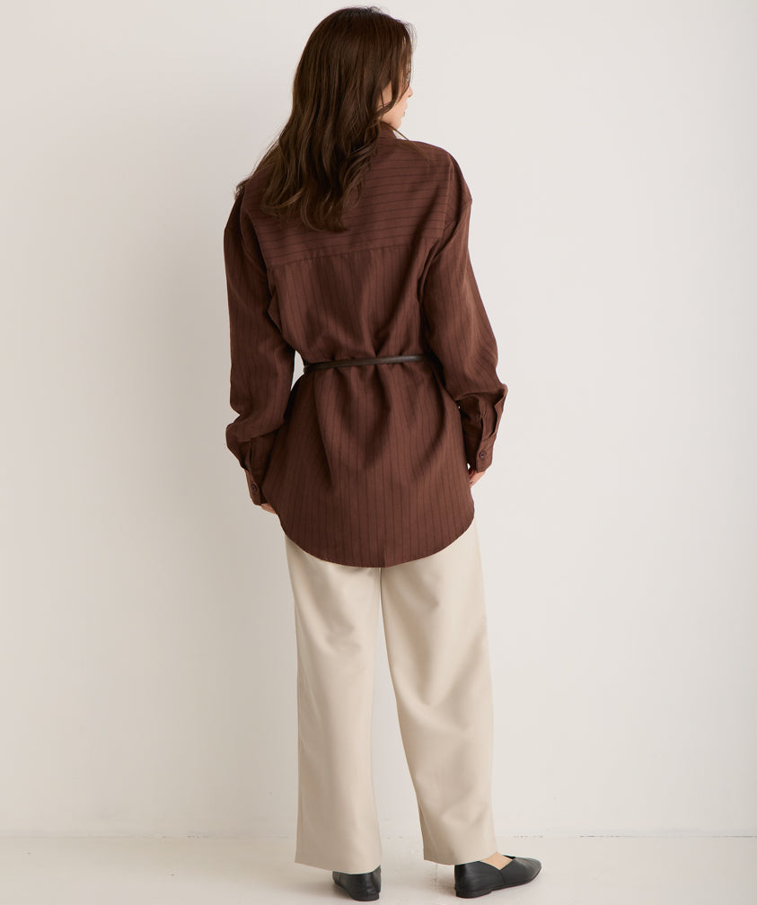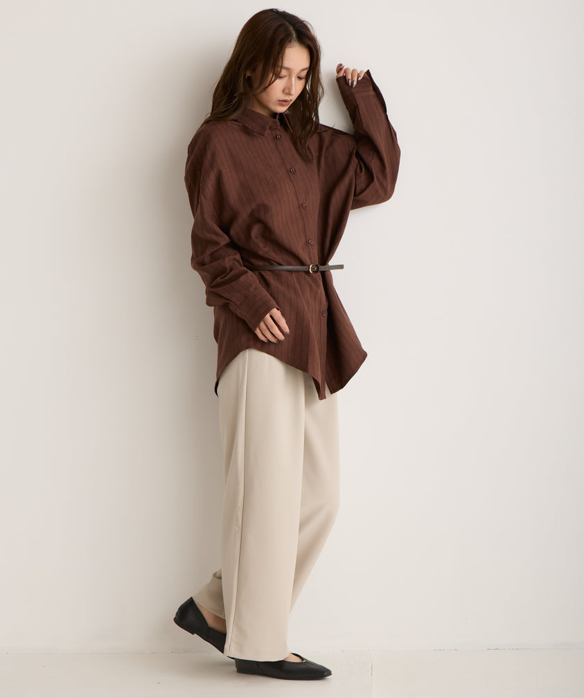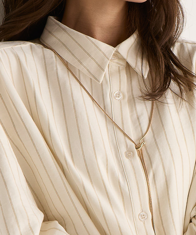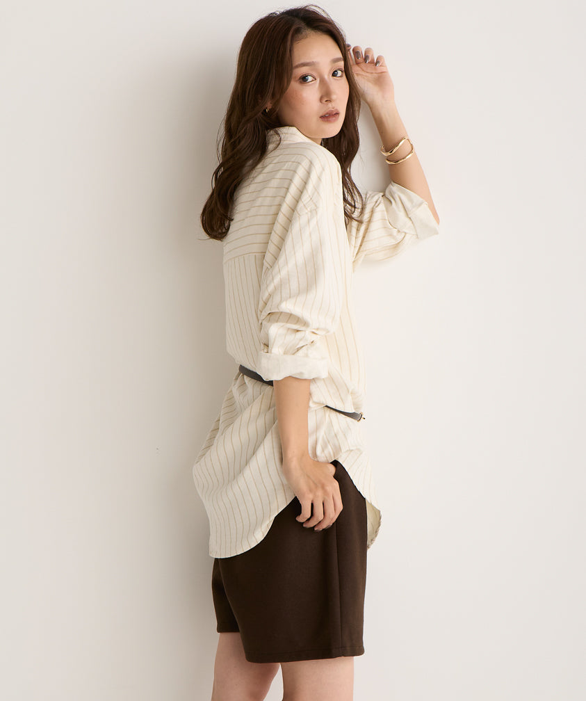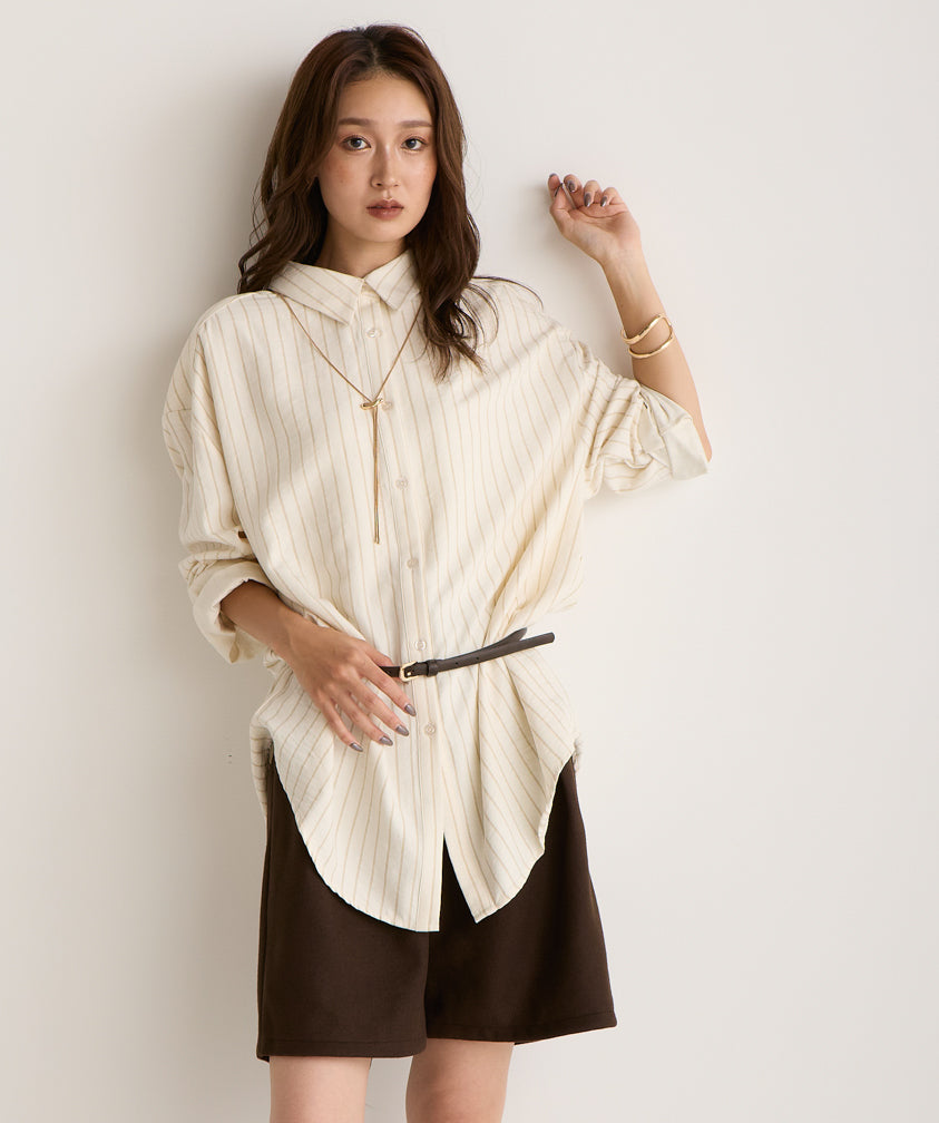 抜け感ときちんと感を両立、大人映えするストライプビッグシャツ。程よいボリュームのパワーショルダーが特徴のストライプ柄ビッグシャツ。肩周りに自然な立体感を持たせ、スタイルアップ効果も◎。落ち感のある滑らかな素材が体のラインを拾いすぎず、こなれた印象を演出します。ヒップが隠れる着丈で、アウトでもインでも決まるデザイン。きれいめパンツに合わせてオフィスカジュアルに、デニムやスカートと合わせてカジュアルダウンにも対応。羽織りとしても使える万能シャツは、シーズンレスで活躍する大人のワードローブにおすすめの一枚です。