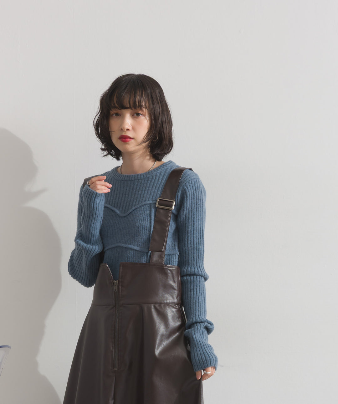 ビスチェデザインリブニットトップス