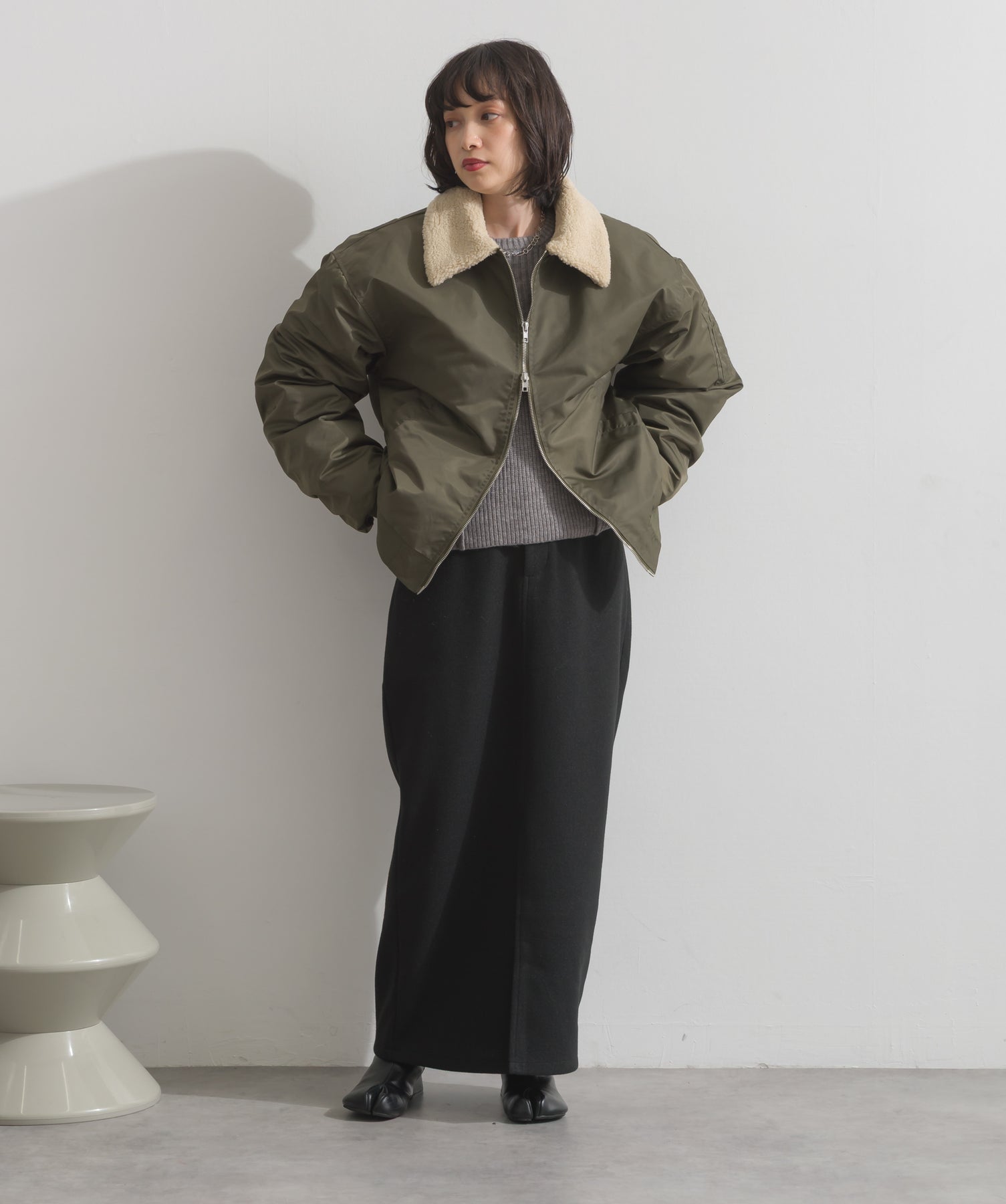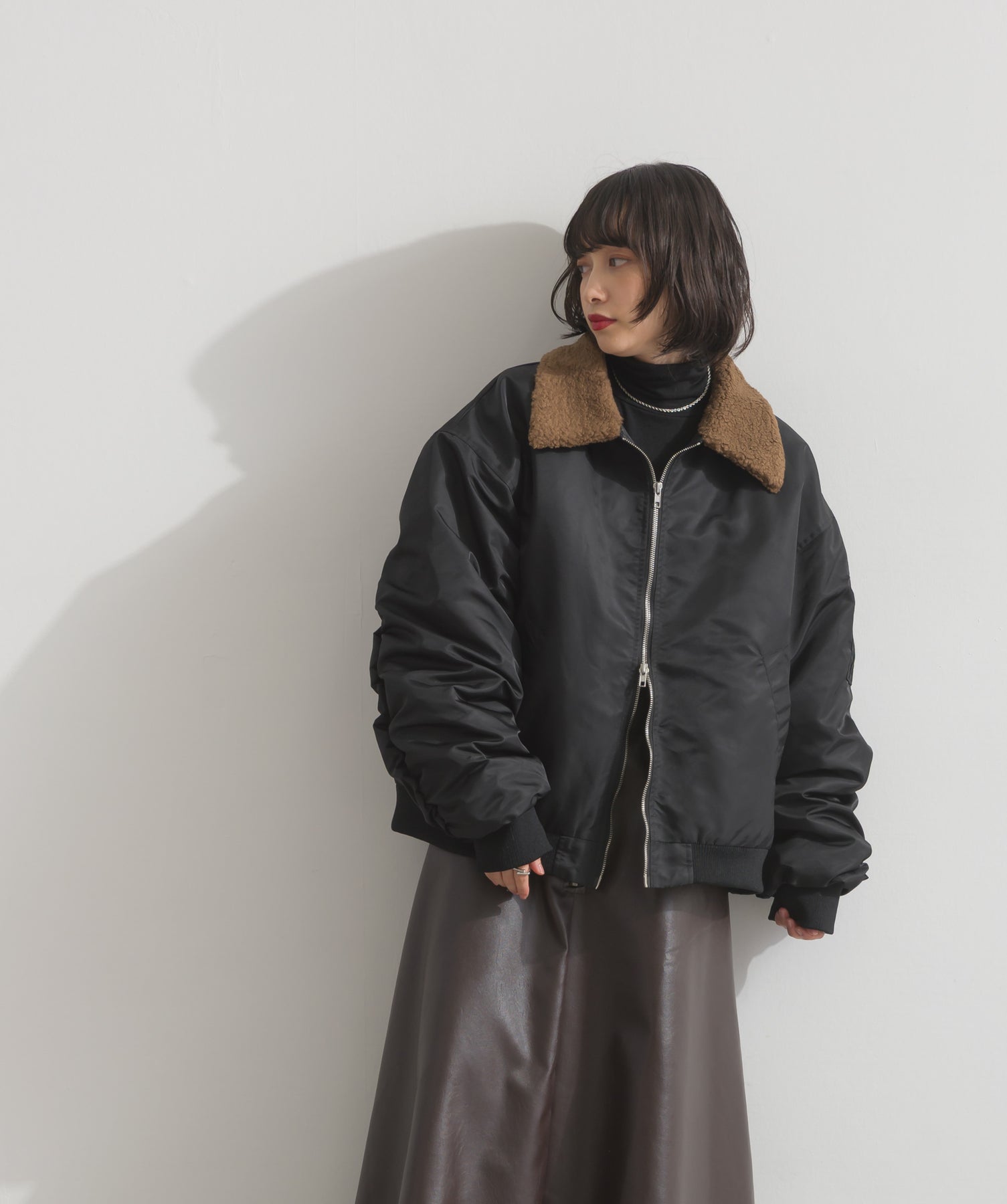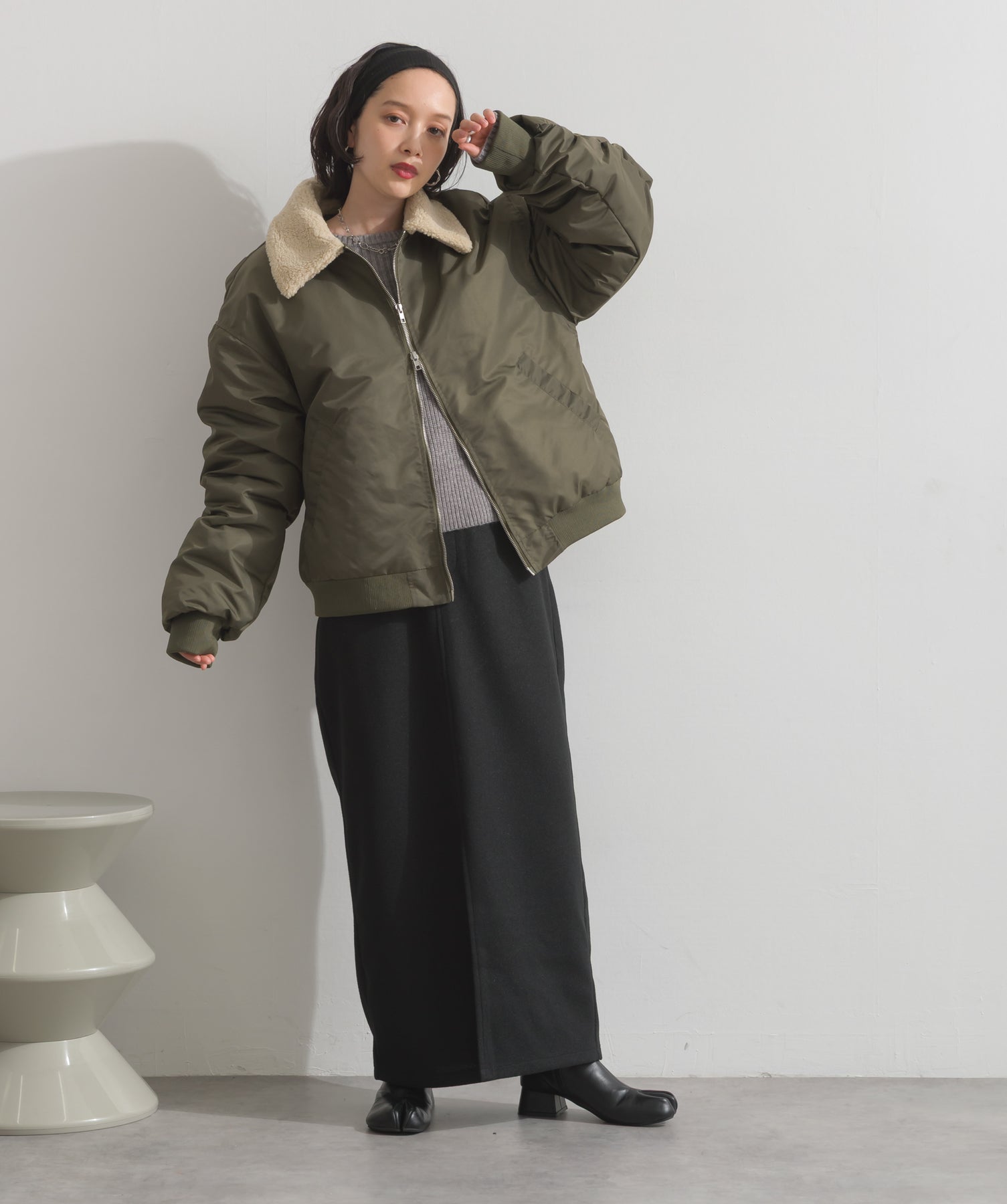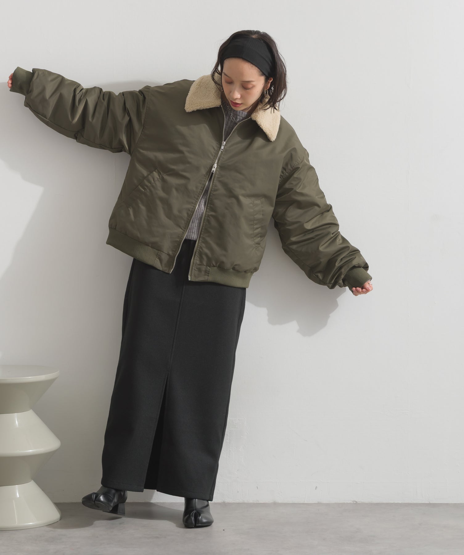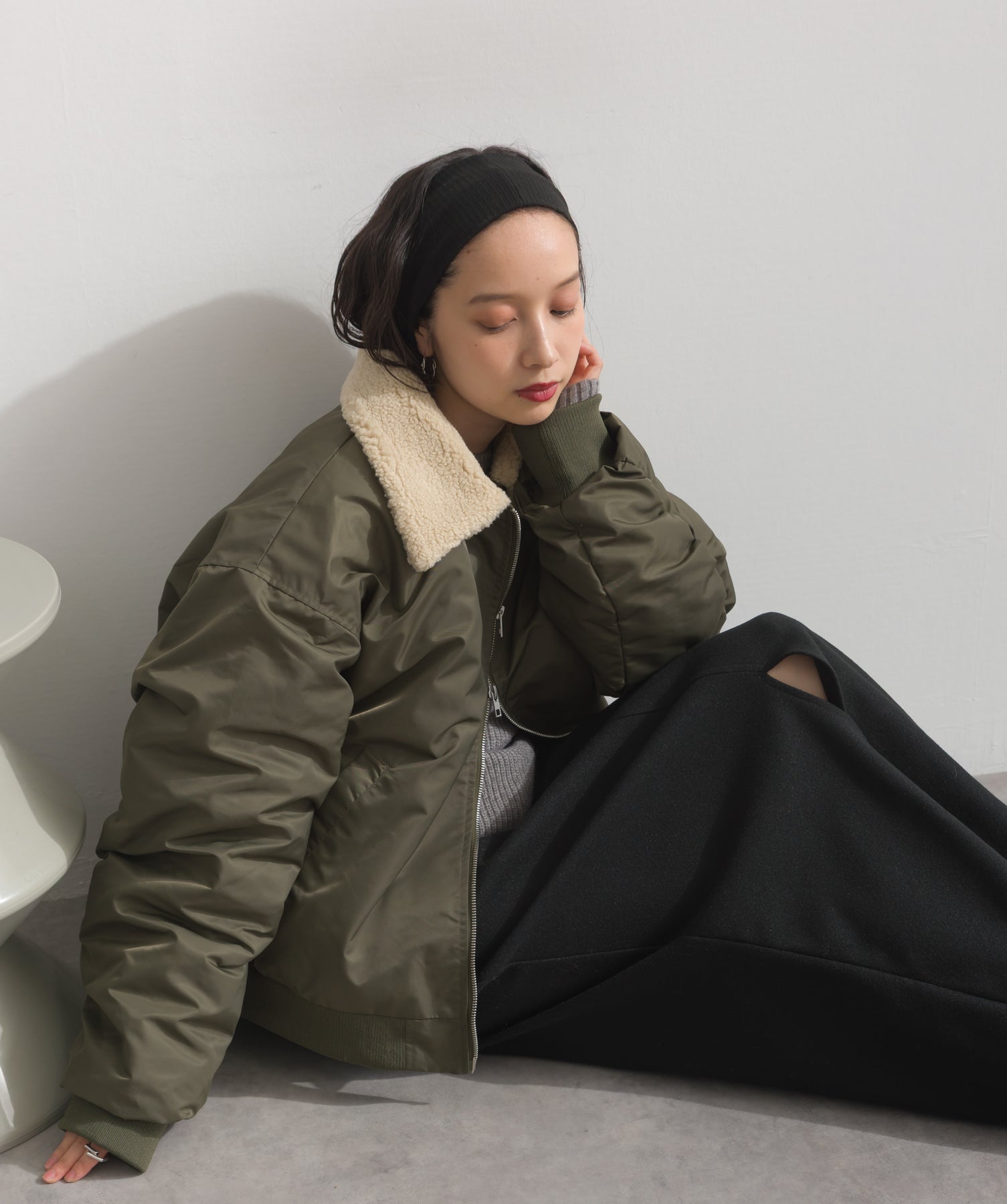クラシックなMA-1の要素をベースに、オーバーサイズシルエットとボリューム感のあるフェイクファー襟でアップデート。ジップの開閉で表情を変えられ、フロントを閉めればミリタリーライクに、開ければ抜け感あるストリートスタイルに。ヒップが隠れる丈感で防寒力も高く、ワンピースやスラックスとの相性も抜群。トレンドと実用性を両立した、今季マストなアウターです。
