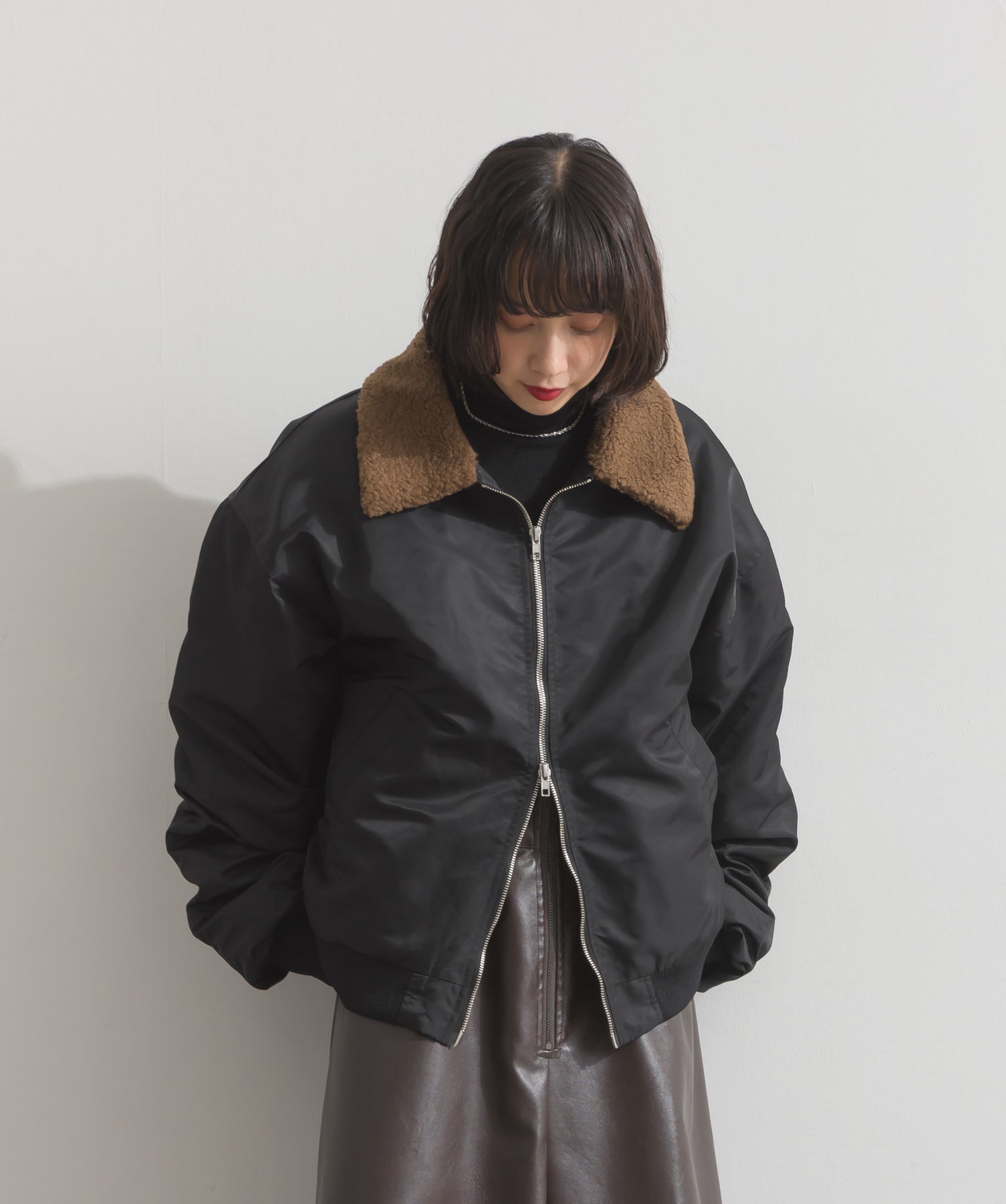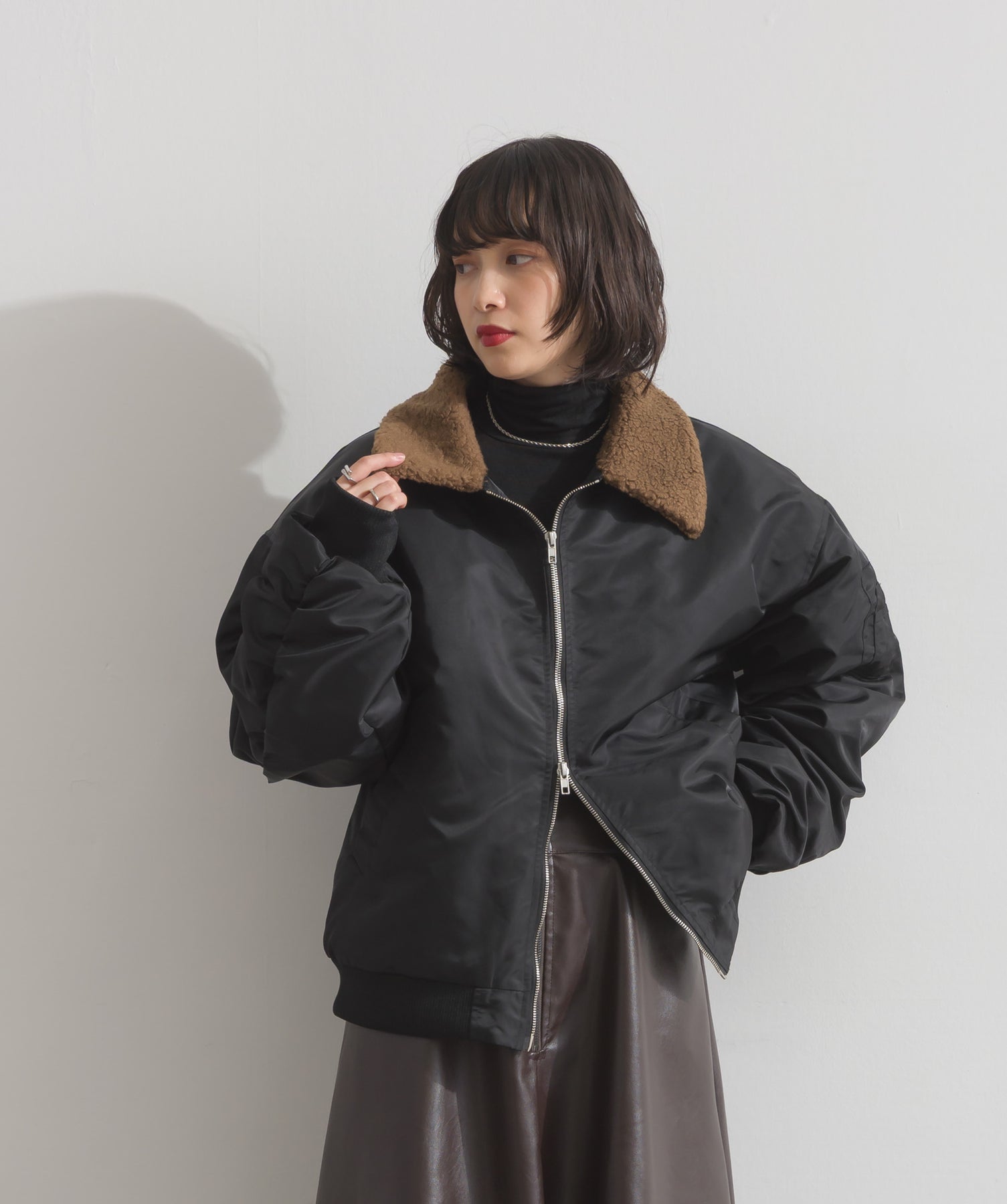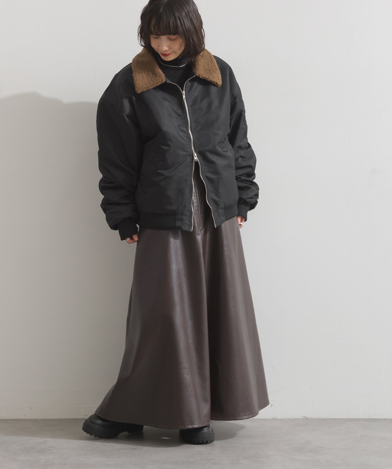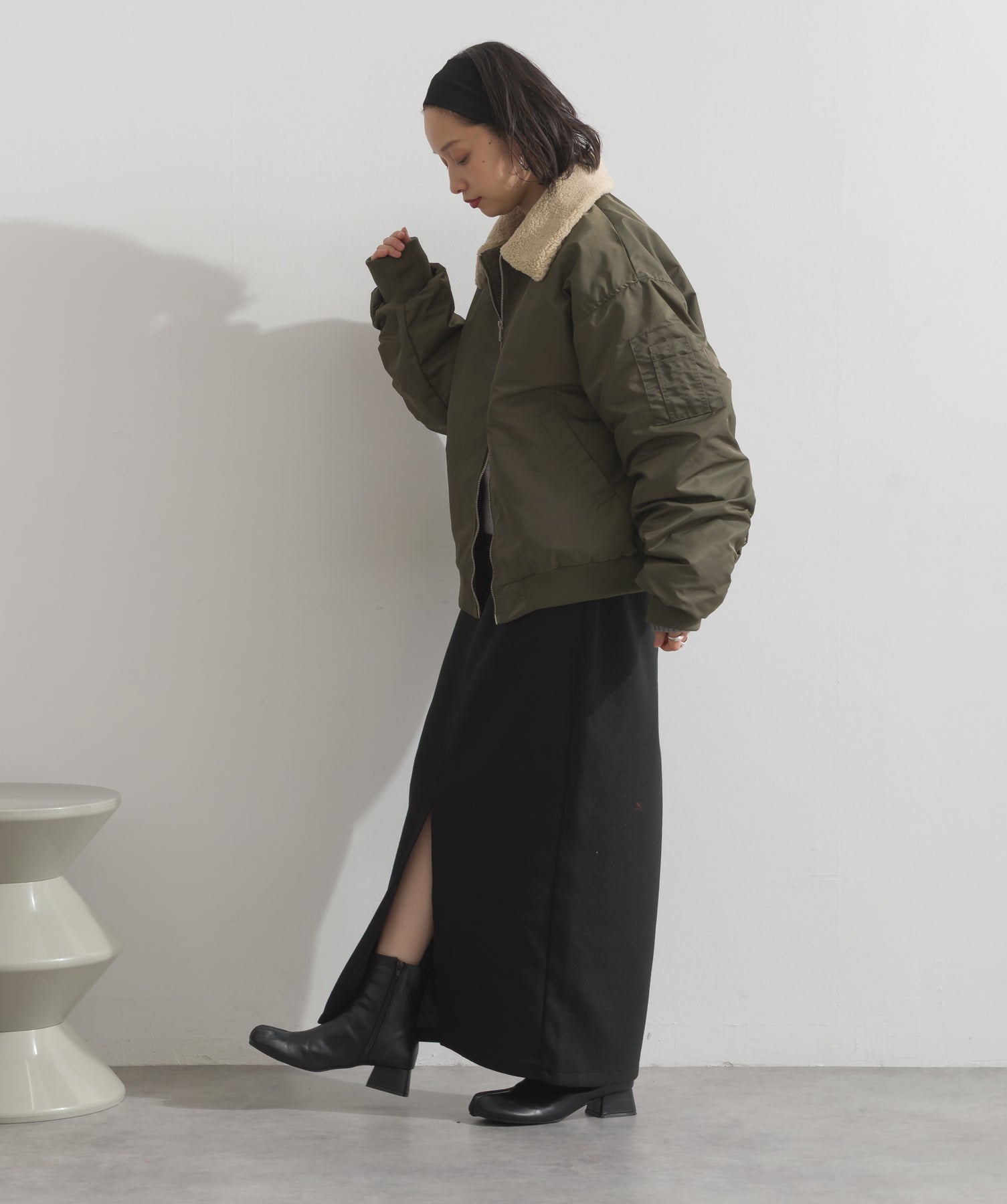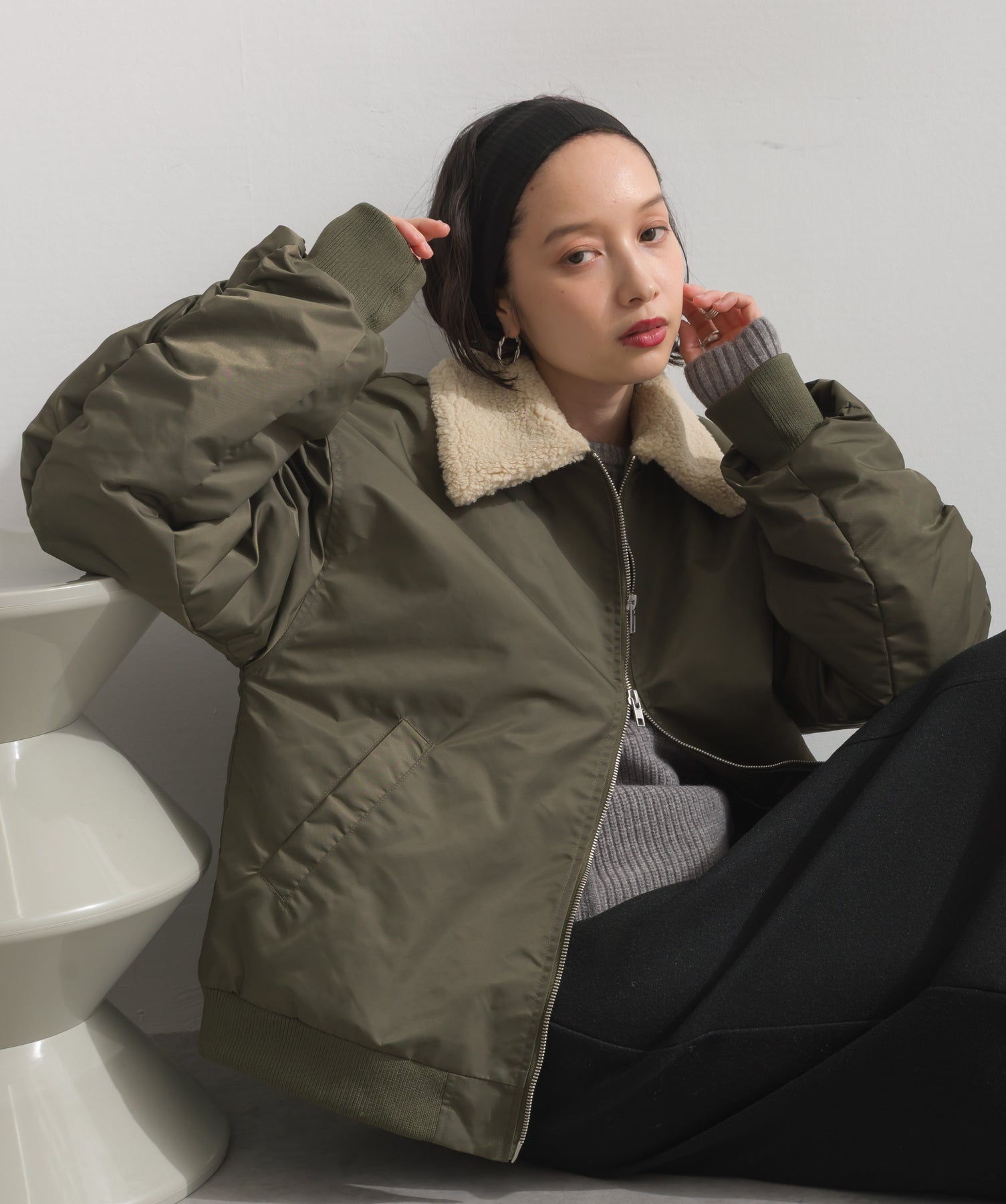 クラシックなMA-1の要素をベースに、オーバーサイズシルエットとボリューム感のあるフェイクファー襟でアップデート。ジップの開閉で表情を変えられ、フロントを閉めればミリタリーライクに、開ければ抜け感あるストリートスタイルに。ヒップが隠れる丈感で防寒力も高く、ワンピースやスラックスとの相性も抜群。トレンドと実用性を両立した、今季マストなアウターです。