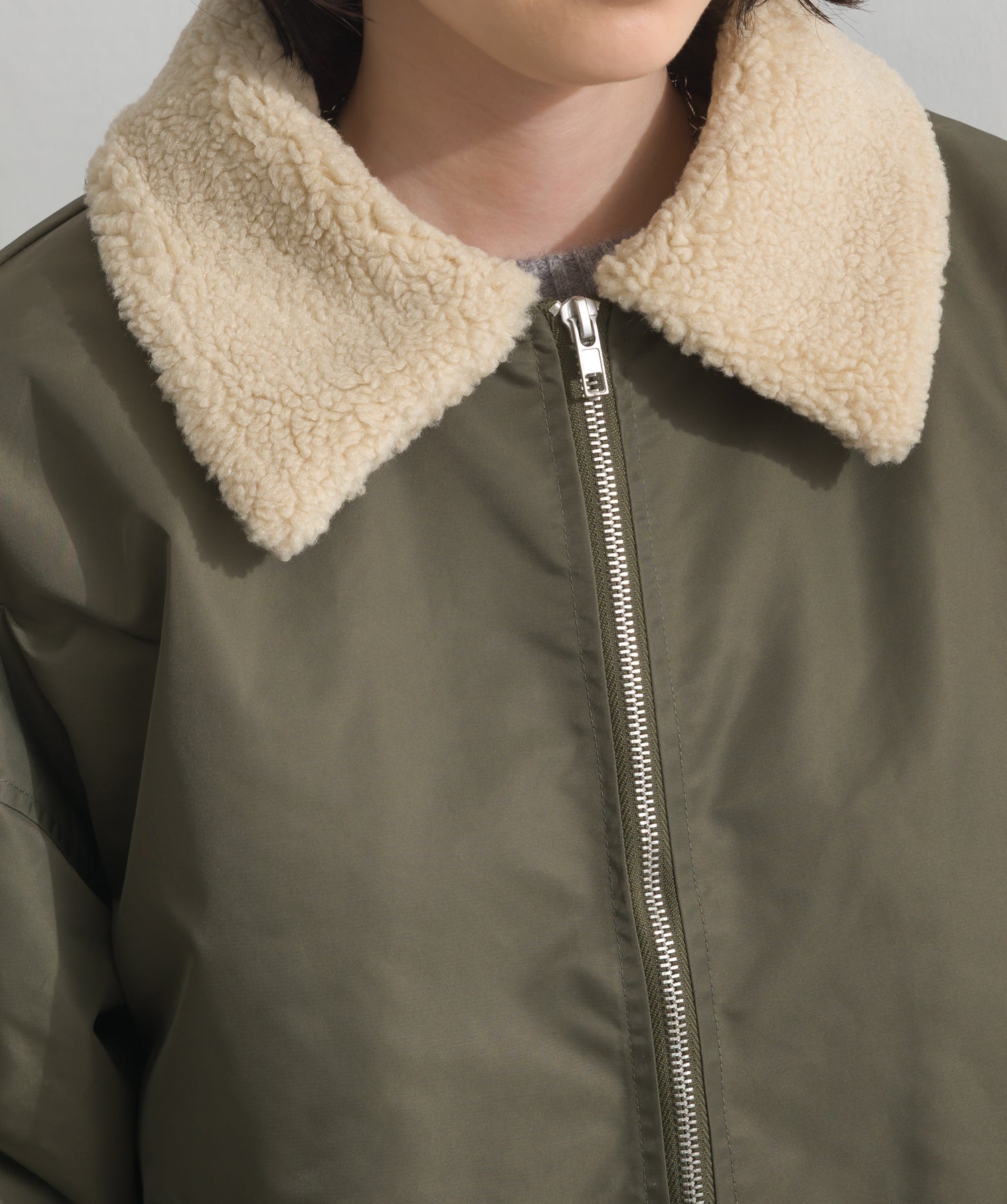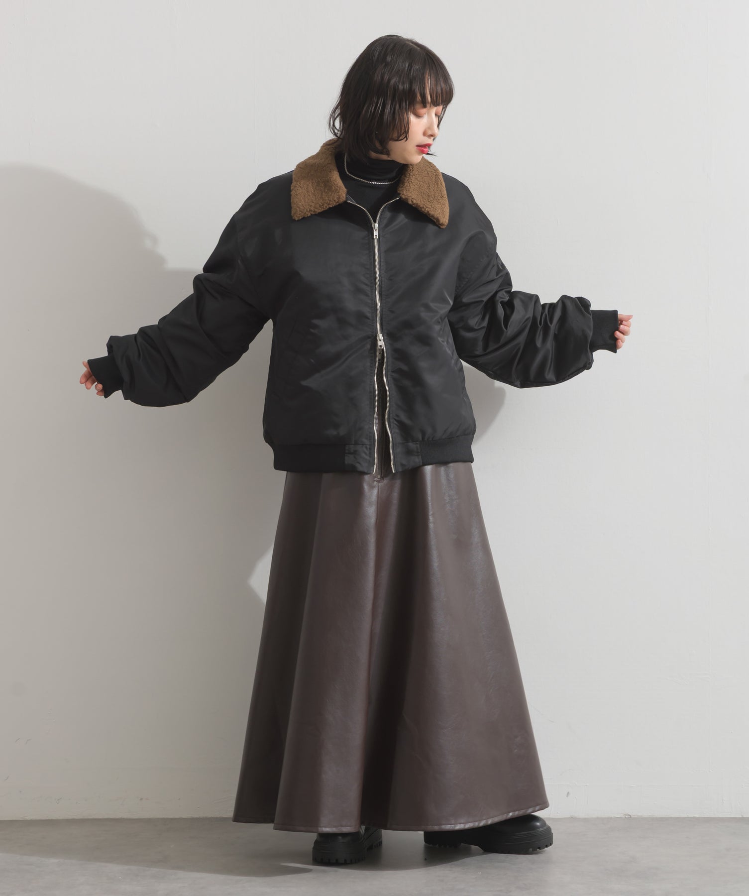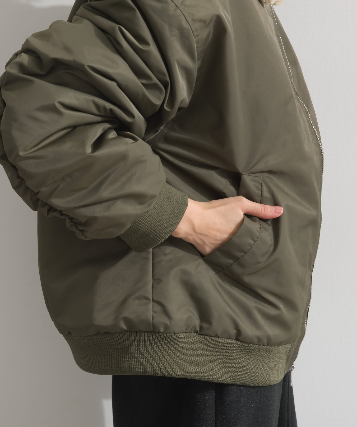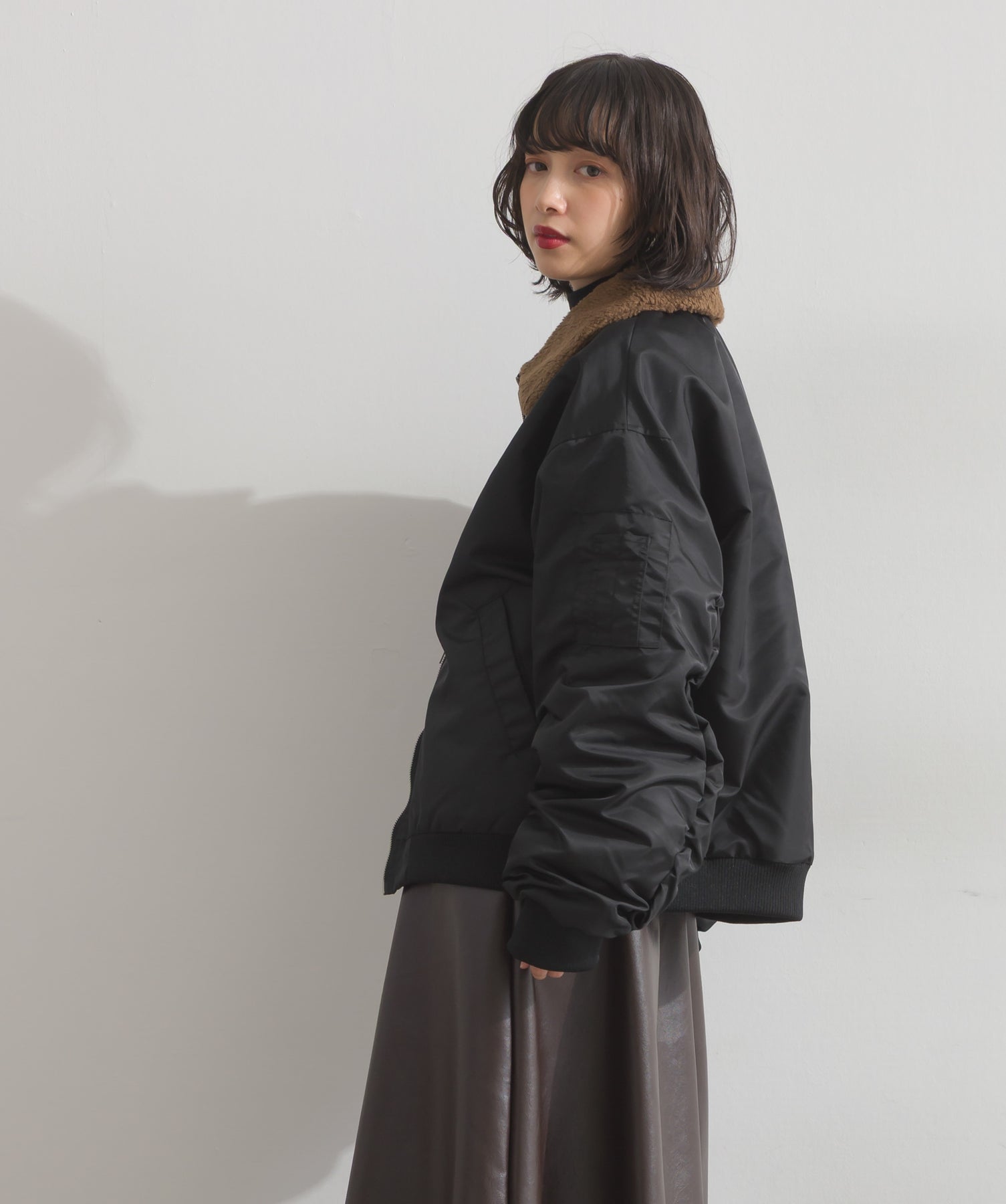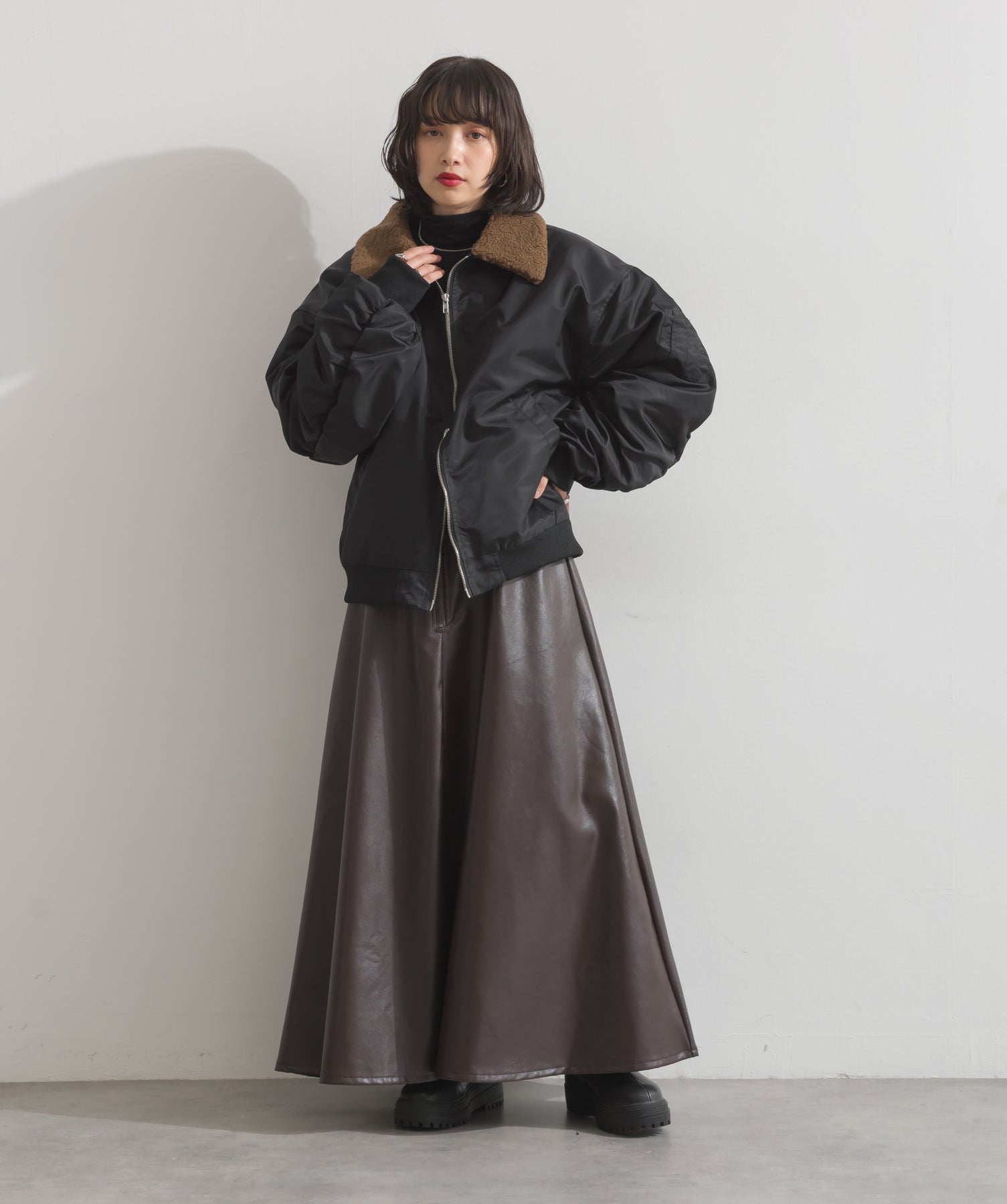 クラシックなMA-1の要素をベースに、オーバーサイズシルエットとボリューム感のあるフェイクファー襟でアップデート。ジップの開閉で表情を変えられ、フロントを閉めればミリタリーライクに、開ければ抜け感あるストリートスタイルに。ヒップが隠れる丈感で防寒力も高く、ワンピースやスラックスとの相性も抜群。トレンドと実用性を両立した、今季マストなアウターです。