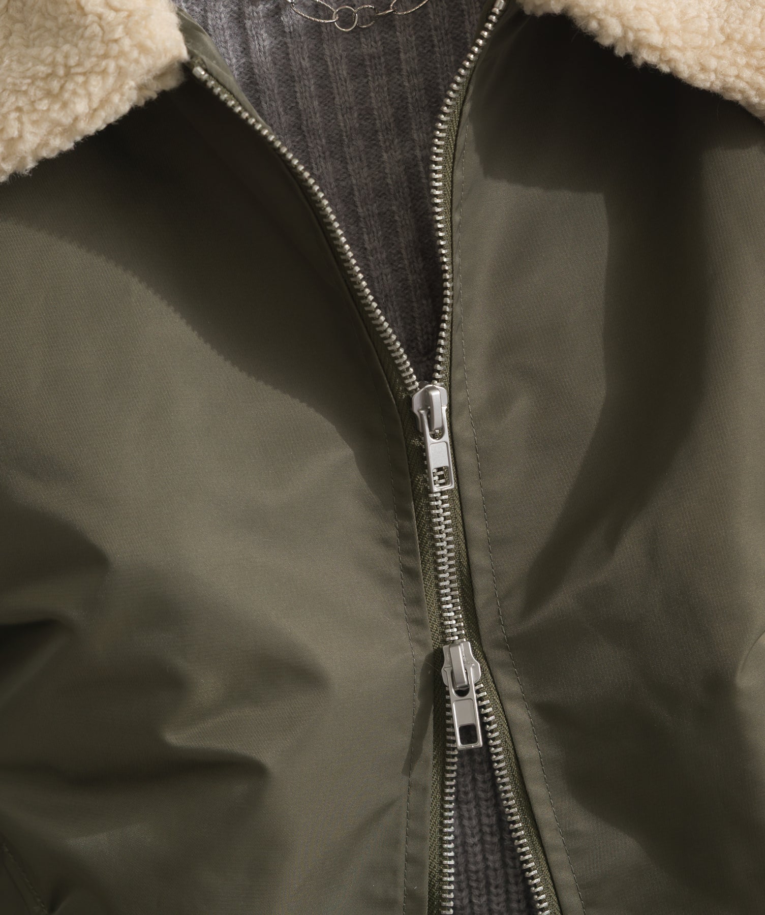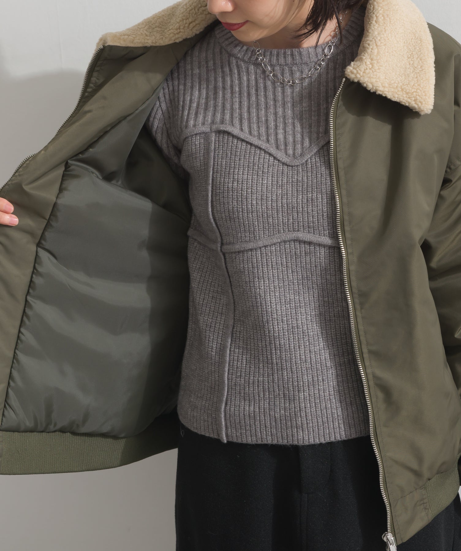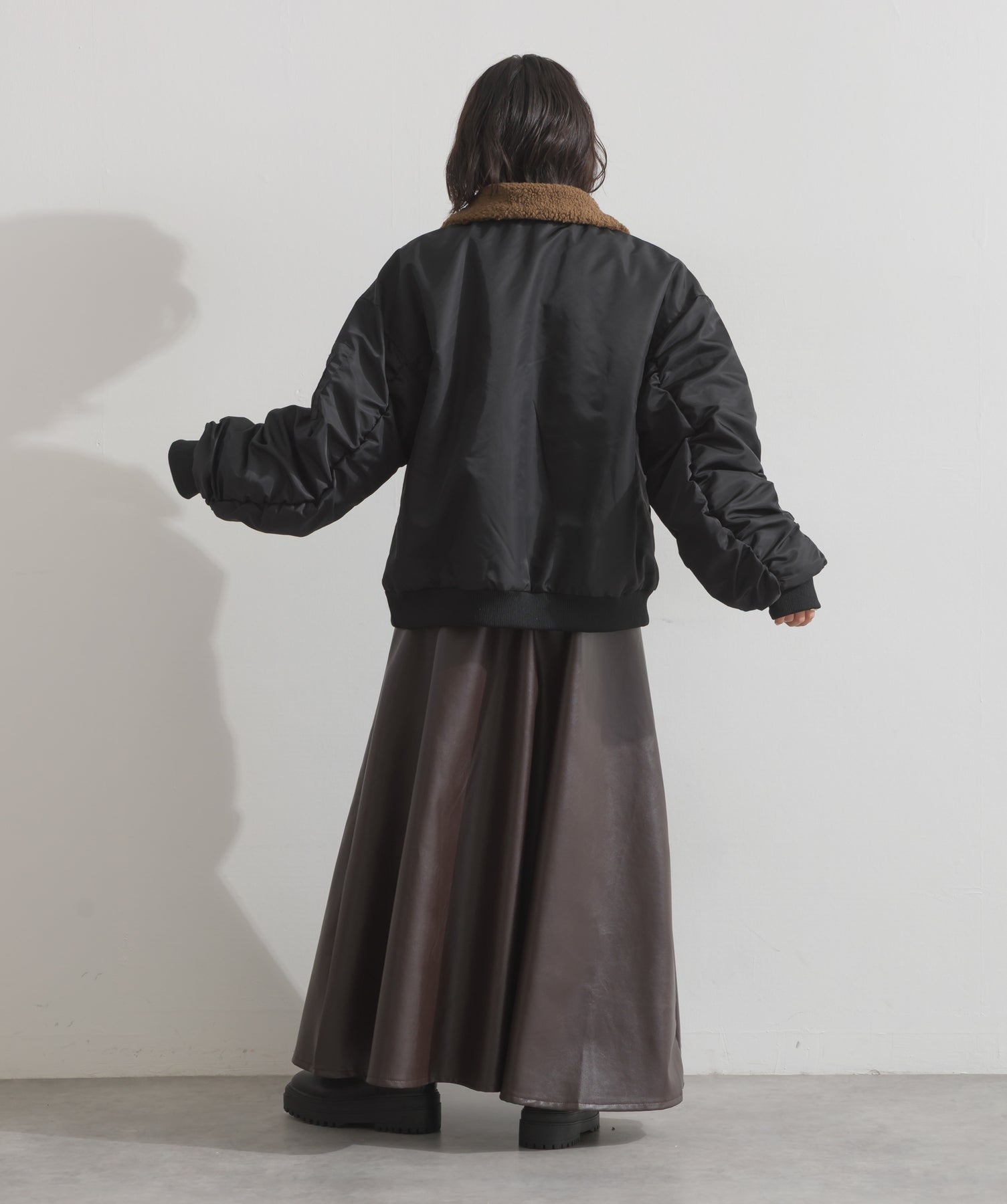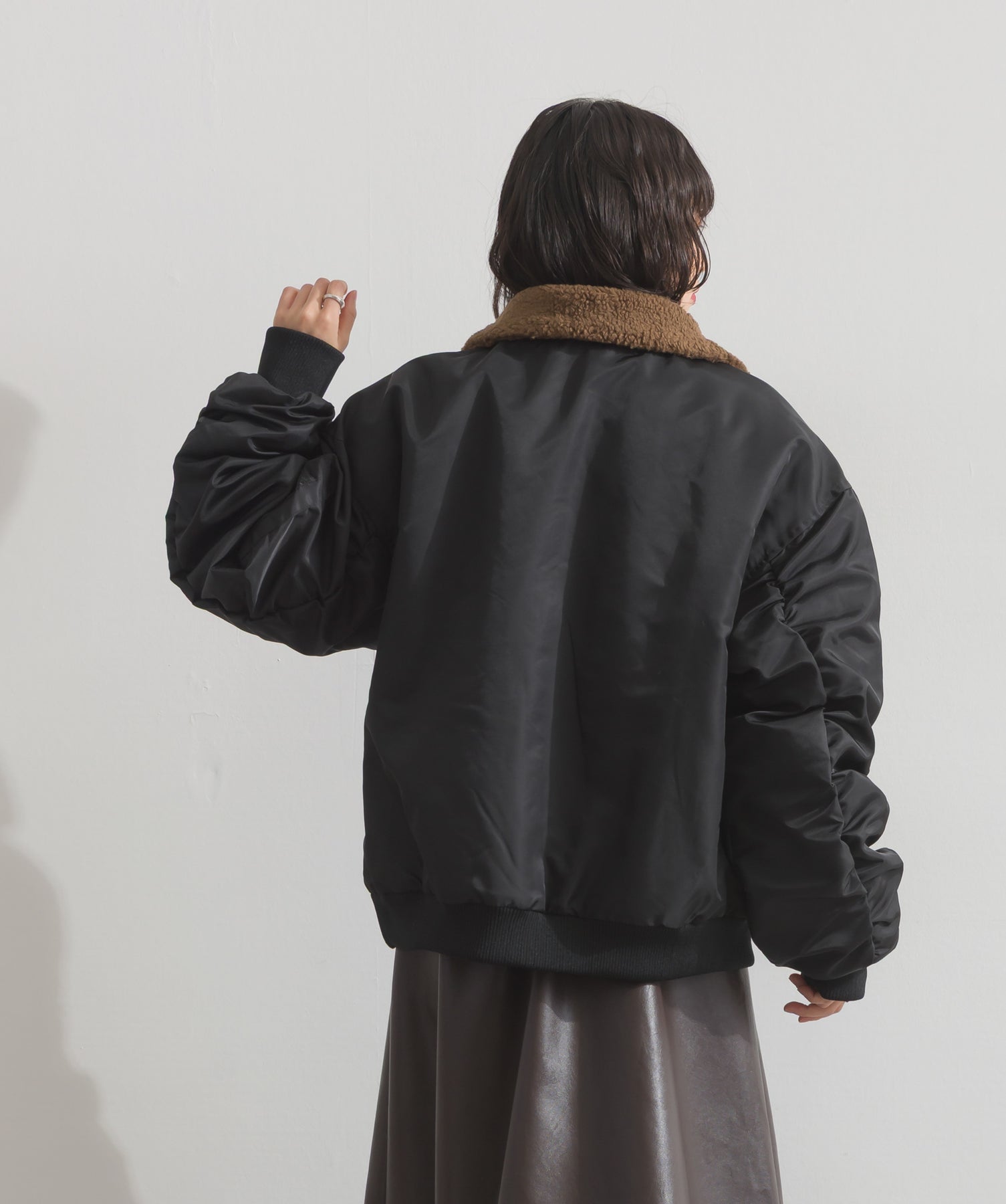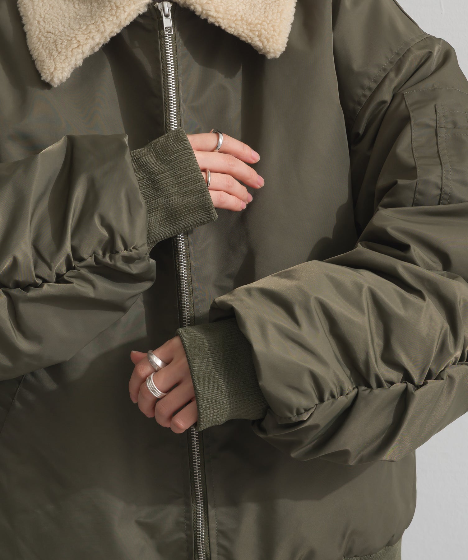 クラシックなMA-1の要素をベースに、オーバーサイズシルエットとボリューム感のあるフェイクファー襟でアップデート。ジップの開閉で表情を変えられ、フロントを閉めればミリタリーライクに、開ければ抜け感あるストリートスタイルに。ヒップが隠れる丈感で防寒力も高く、ワンピースやスラックスとの相性も抜群。トレンドと実用性を両立した、今季マストなアウターです。