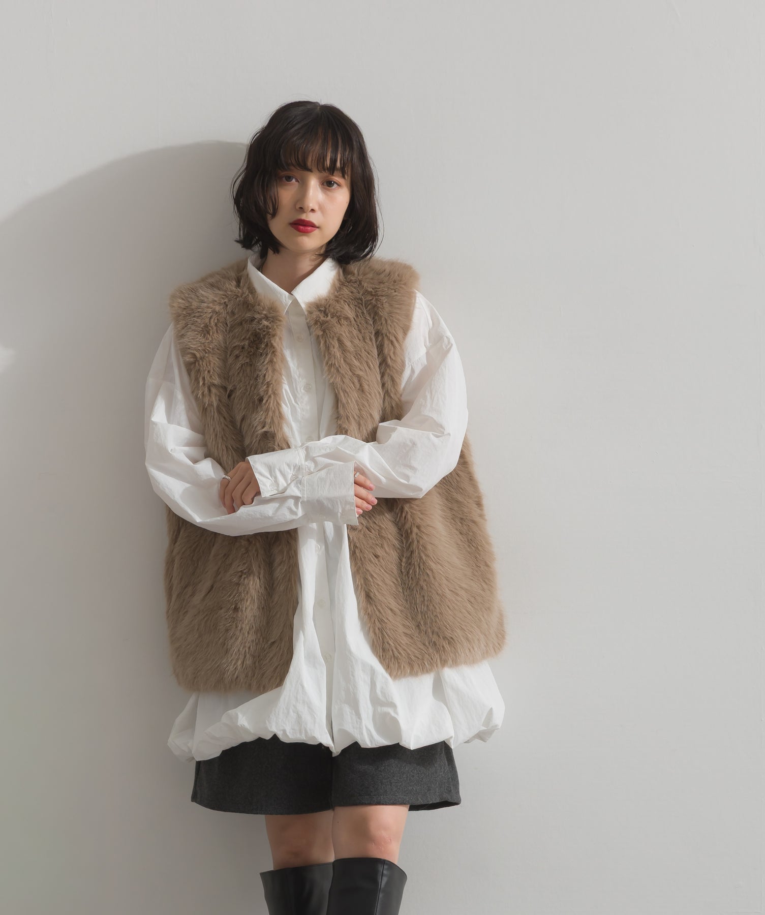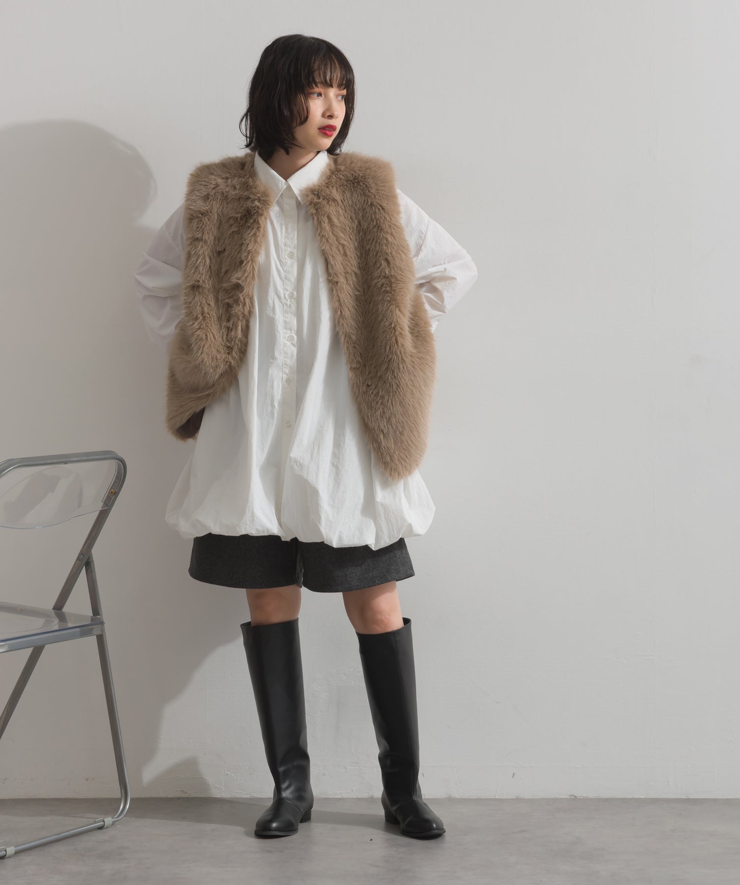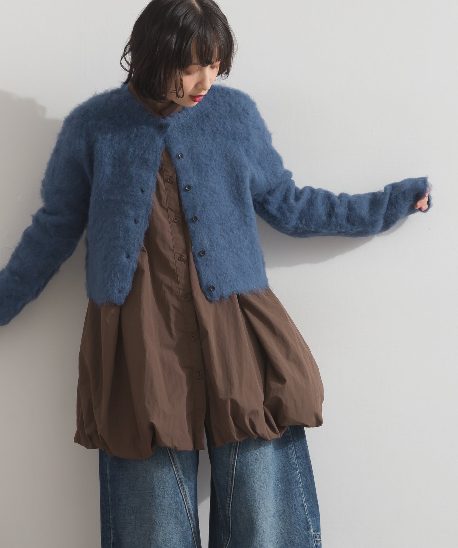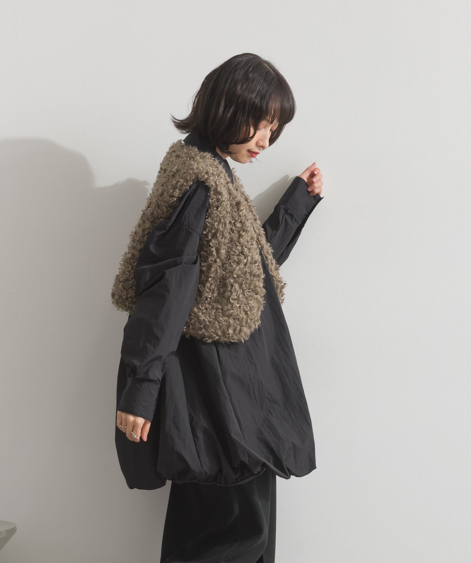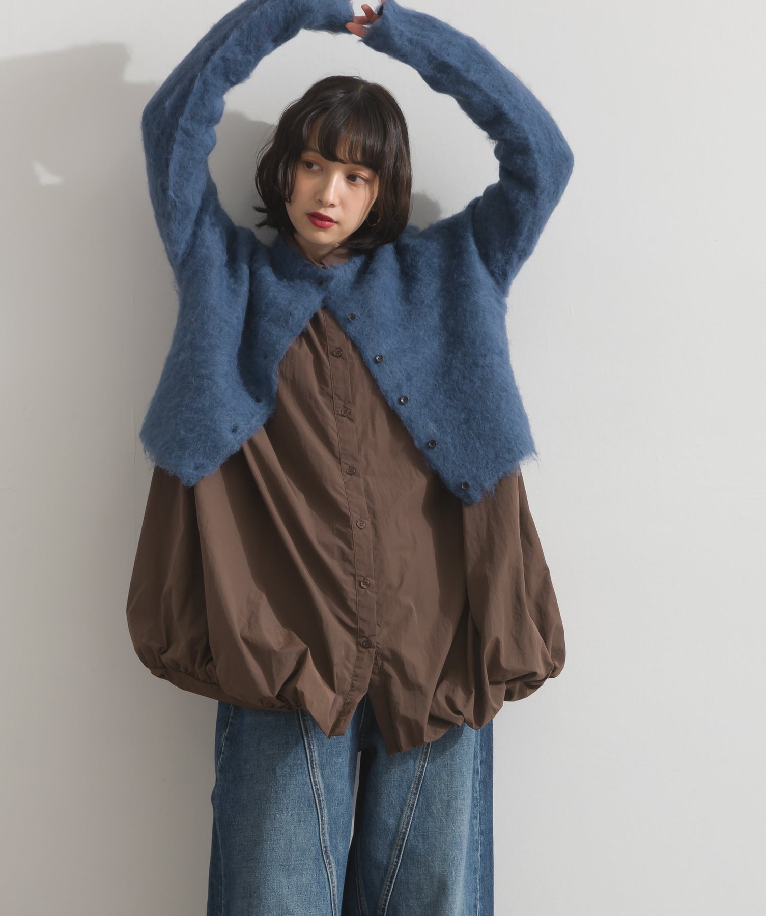 大胆なフォルムで差をつける。シンプル×立体感が冴えるバルーンシャツ。-material-軽やかでハリのあるナイロンタフタ素材を使用。ほのかな光沢感が上品さをプラスし、さらっと羽織るだけでシーズンムードを高めてくれる質感です。-design-裾に向かって膨らむバルーンシルエットが個性を引き立てる一枚。前後差のある丈感とオーバーサイズデザインで、こなれた抜け感を演出します。比翼仕立てのフロントが洗練された印象を与え、モードにもカジュアルにも振れる万能アイテム。デニムやタイトスカートとの相性も抜群で、幅広いスタイリングが楽しめます。
