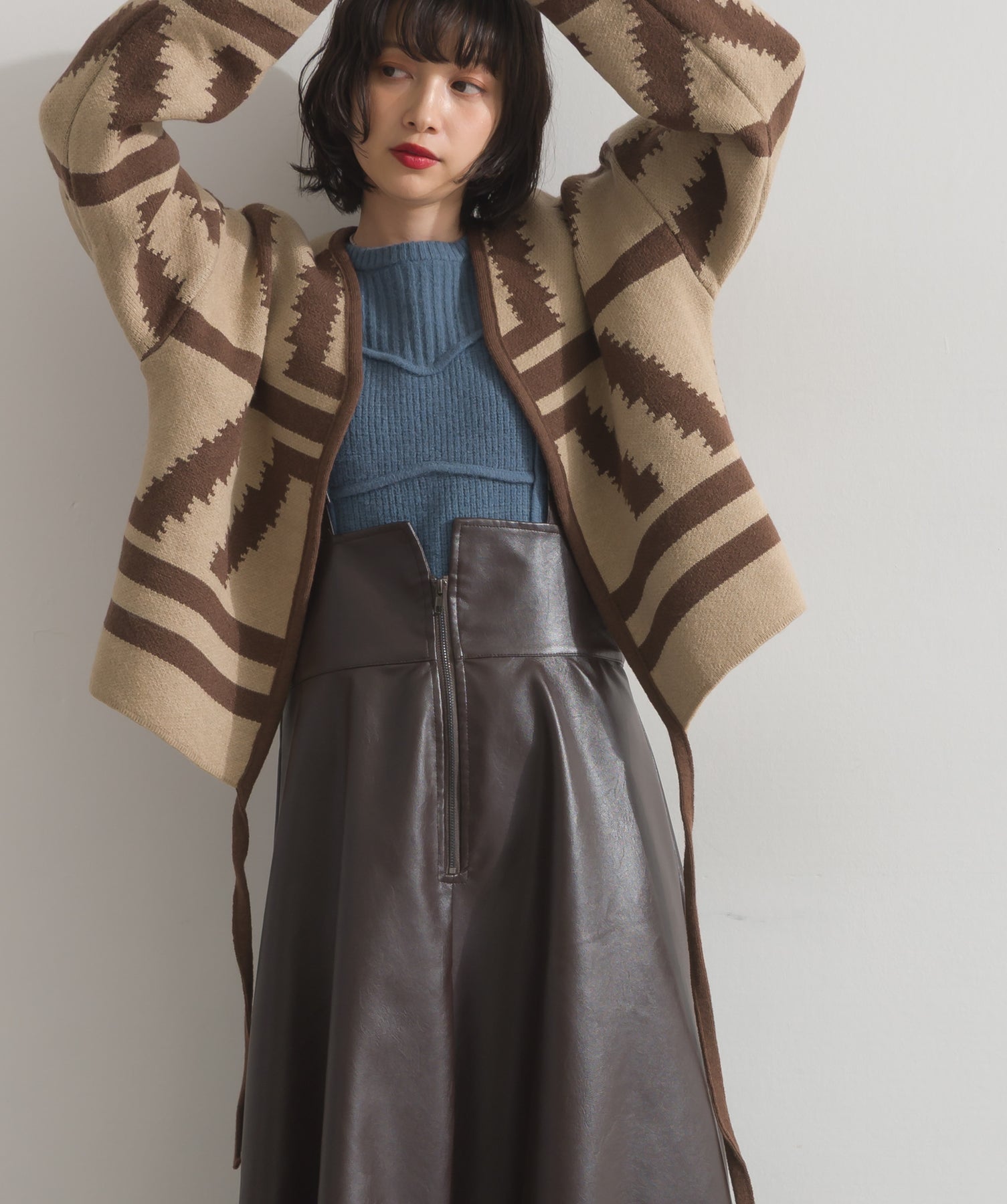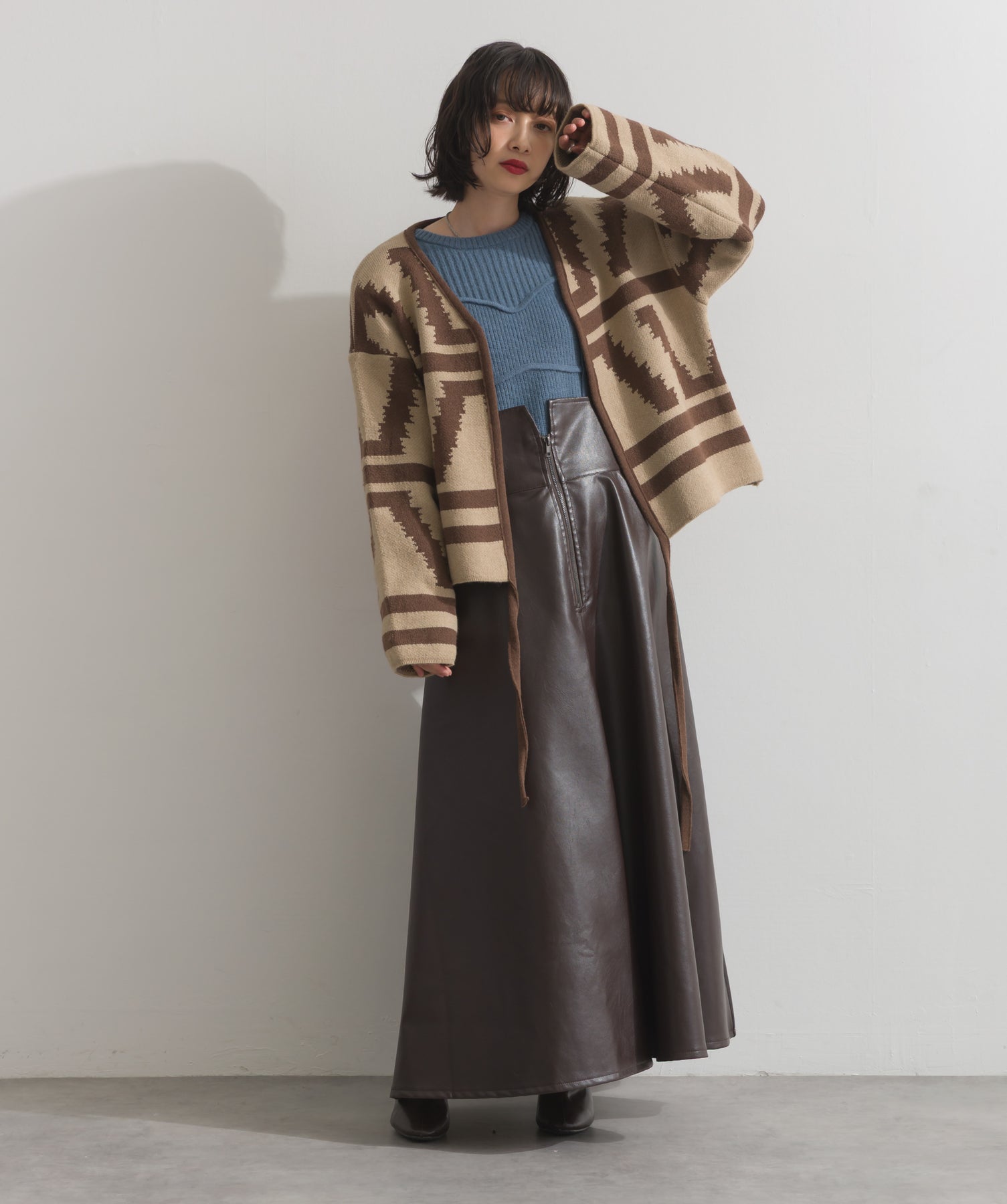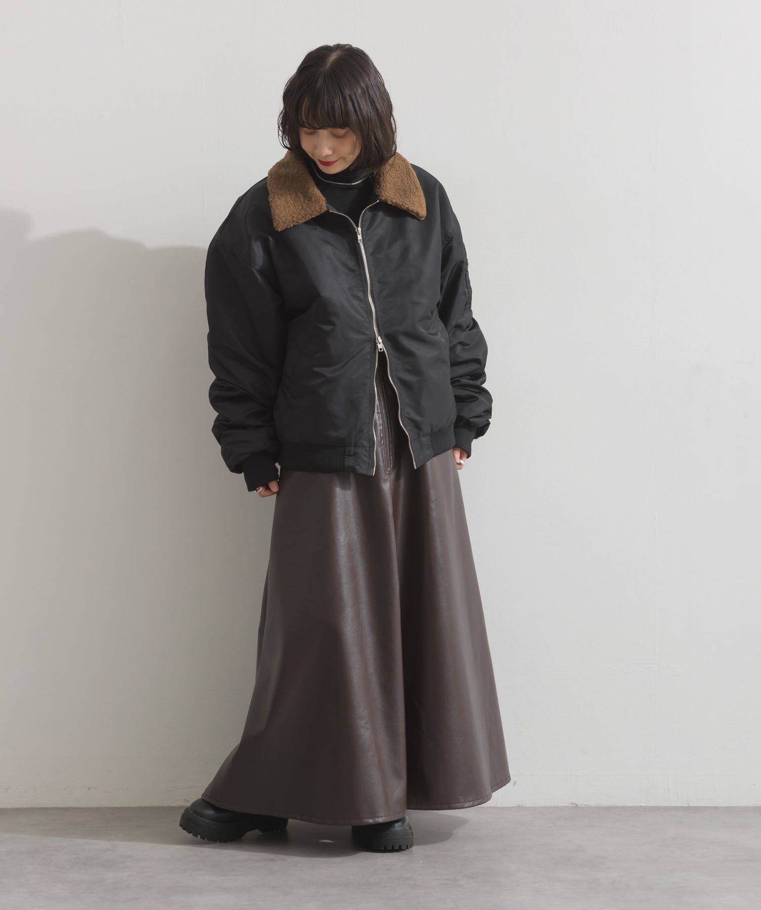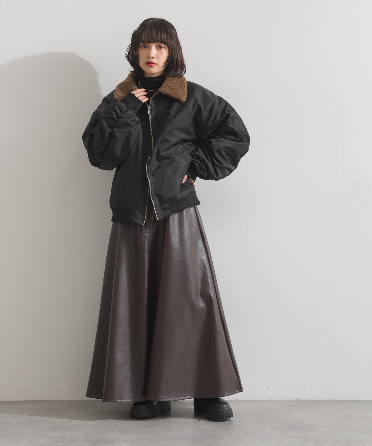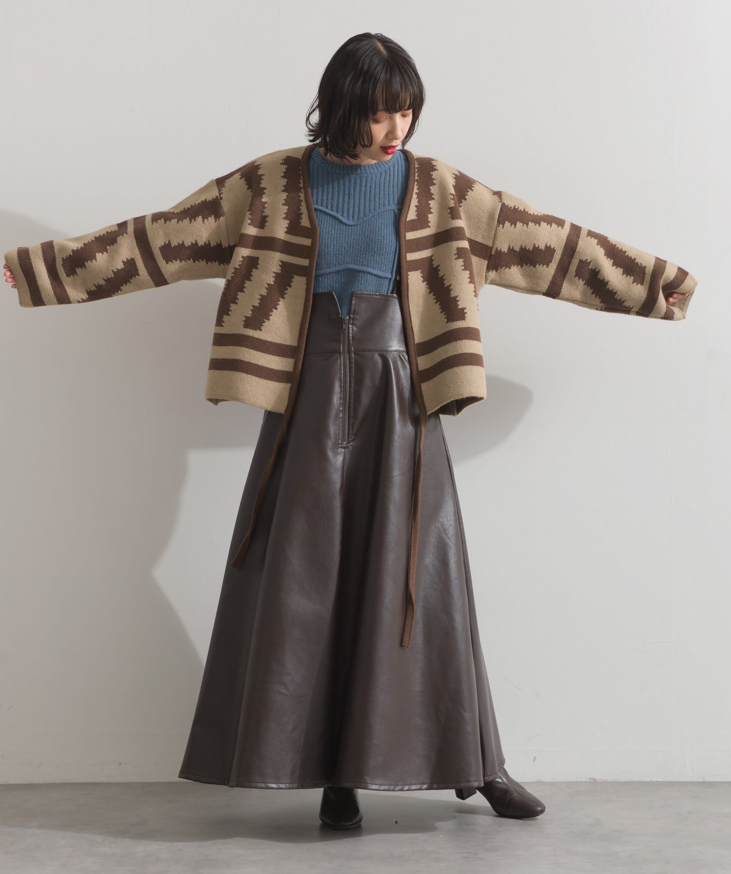 存在感で魅せる。エッジィにキマるフェイクレザージャンスカ。-material-リアルレザー見えする上質なフェイクレザー素材を使用。ほどよい厚みとハリがありつつも、柔らかく軽やかな着心地。オールシーズン活躍できる扱いやすさも魅力。-design-Aラインに広がる美シルエットが印象的なジップアップ仕様のジャンスカ。 アジャスター付きの肩紐で着丈調整が可能。ハードすぎないフェミニンなラインが、大人カジュアルにもモードにもフィット。インナー次第でロングシーズン着まわせる、スタイリング自在な1着です。