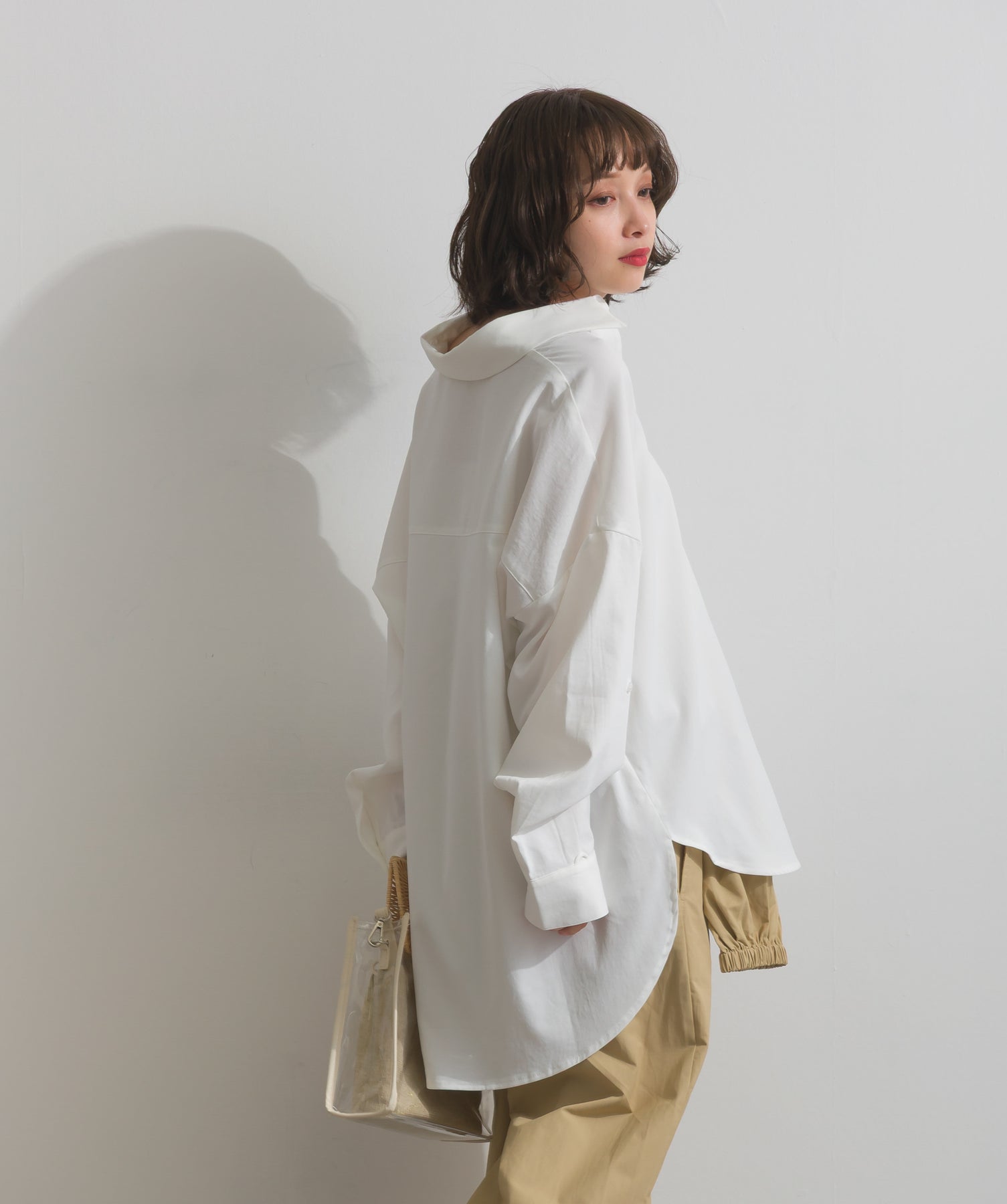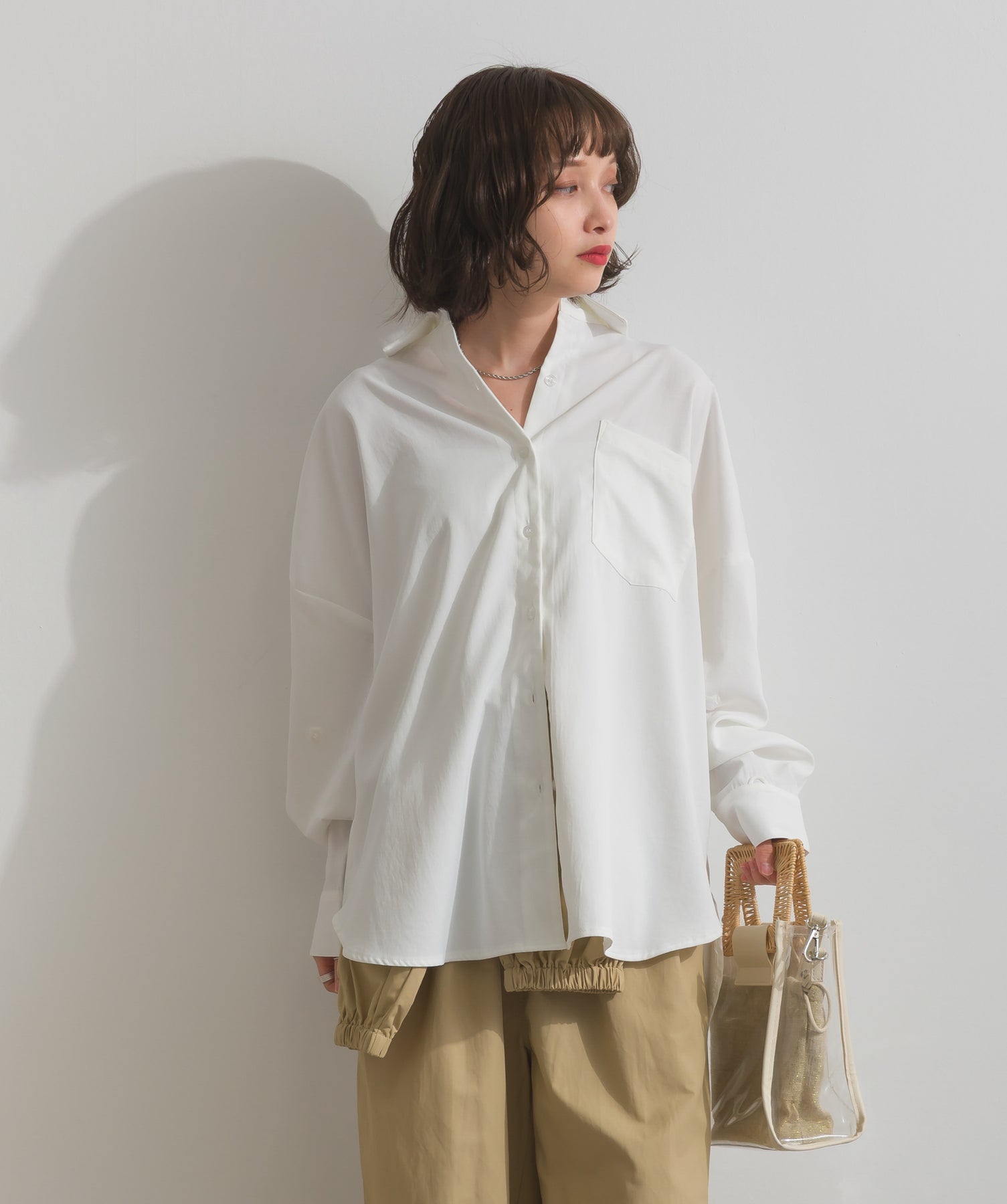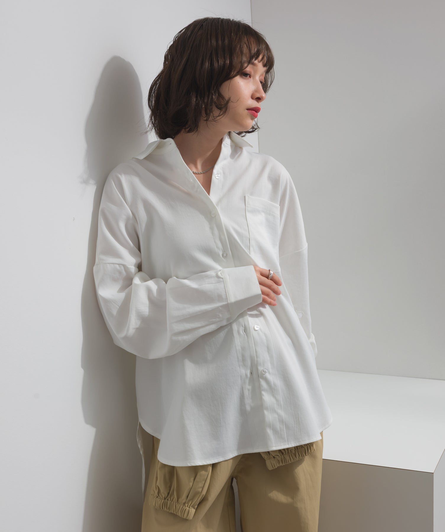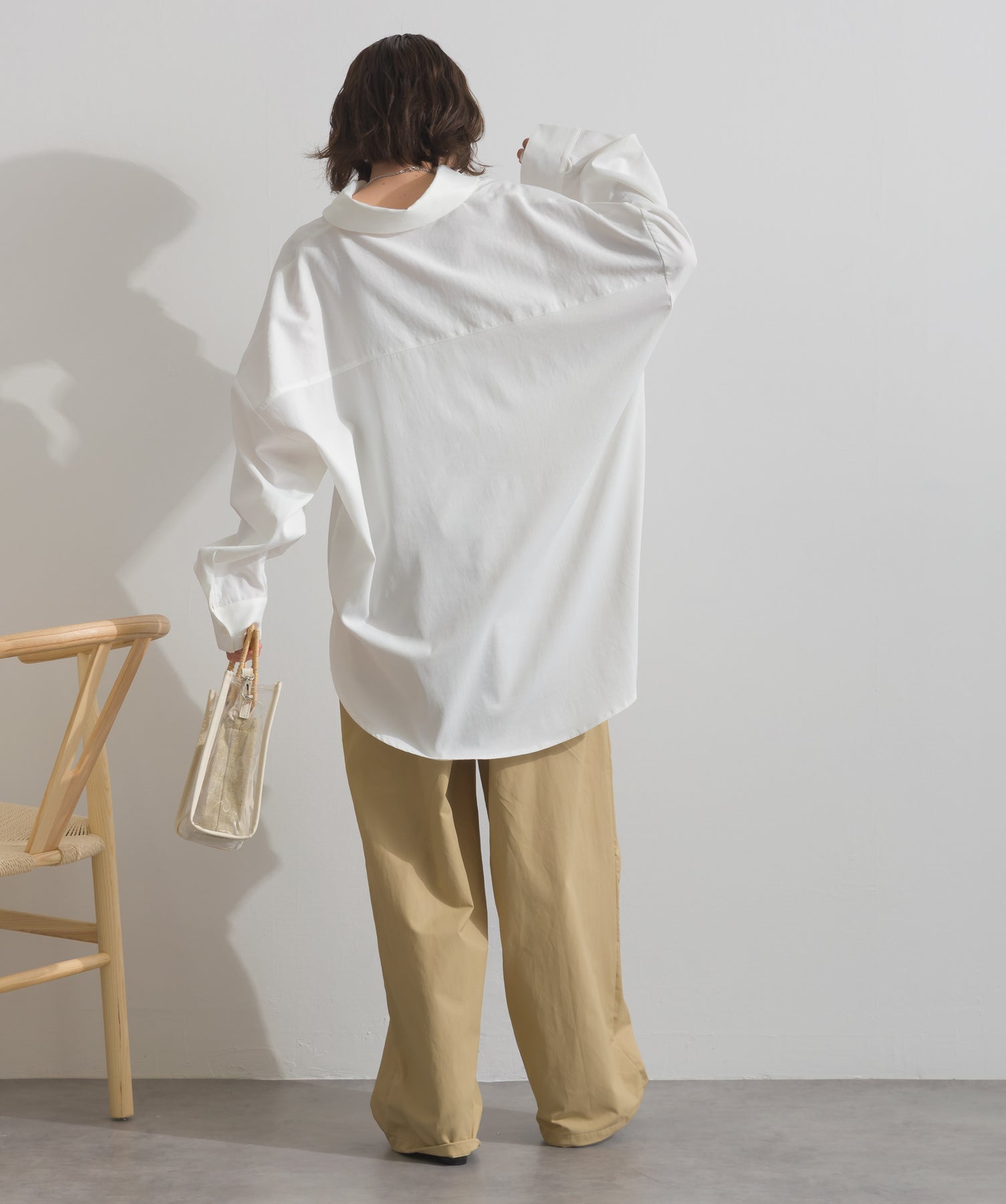 シンプルに魅せる、大人の余裕-material-程よくハリ感のあるコットン混素材を使用。さらりとした肌触りで着心地も快適。シーズンレスで着用可能な生地感が魅力です。-design-こなれ感を纏うオーバーサイズシルエットのシャツ。ミニマルなフロントデザインに、袖部分の切り替えでスリーブの雰囲気をアレンジできる2WAY仕様。1枚でさらりと着ても、羽織としても活躍する万能アイテムです。バックスタイルまで美しいドロップショルダーが、抜け感と女性らしさをプラス。洗練されたスタイリングが叶う、モードにもナチュラルにも振れる一枚。