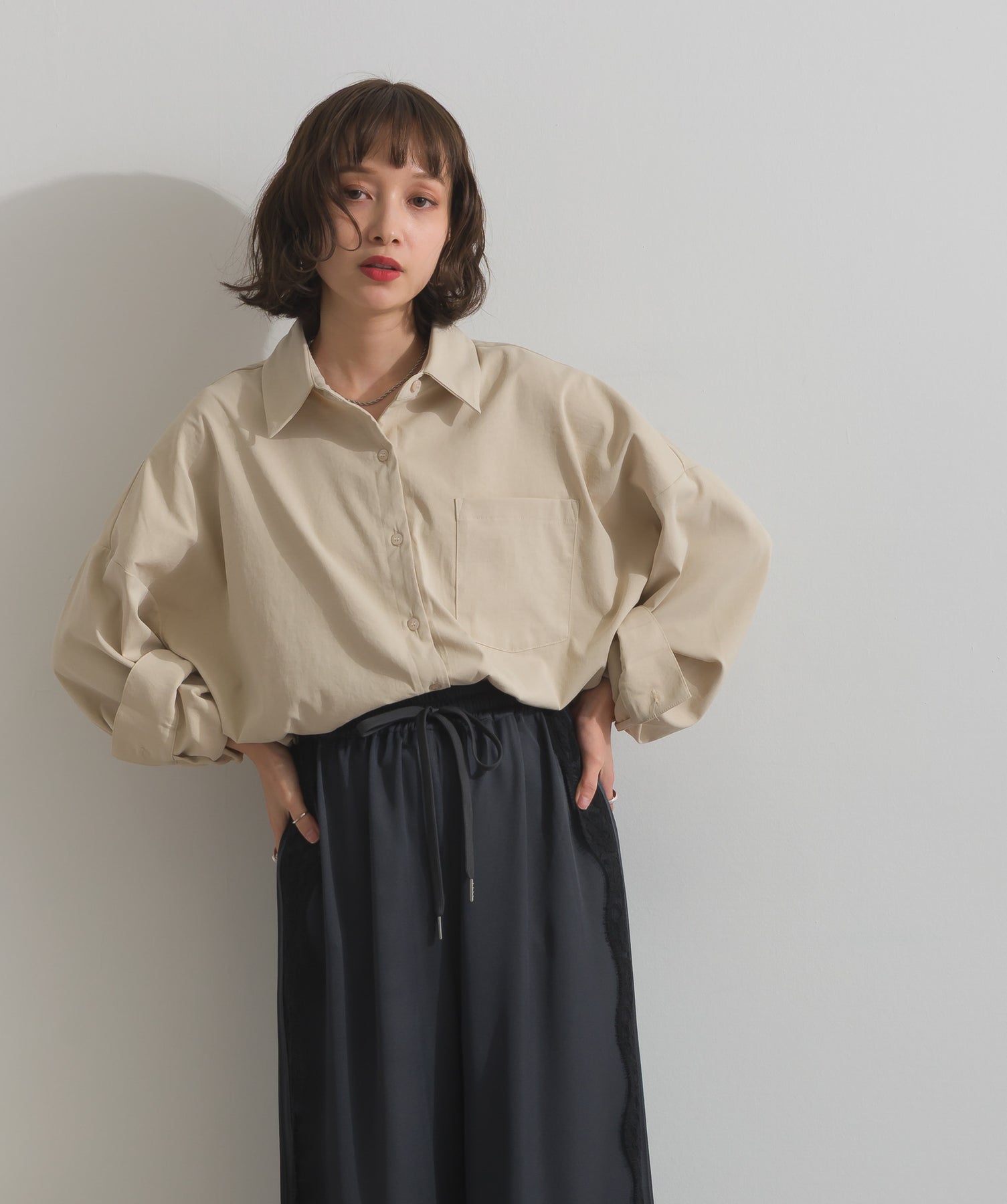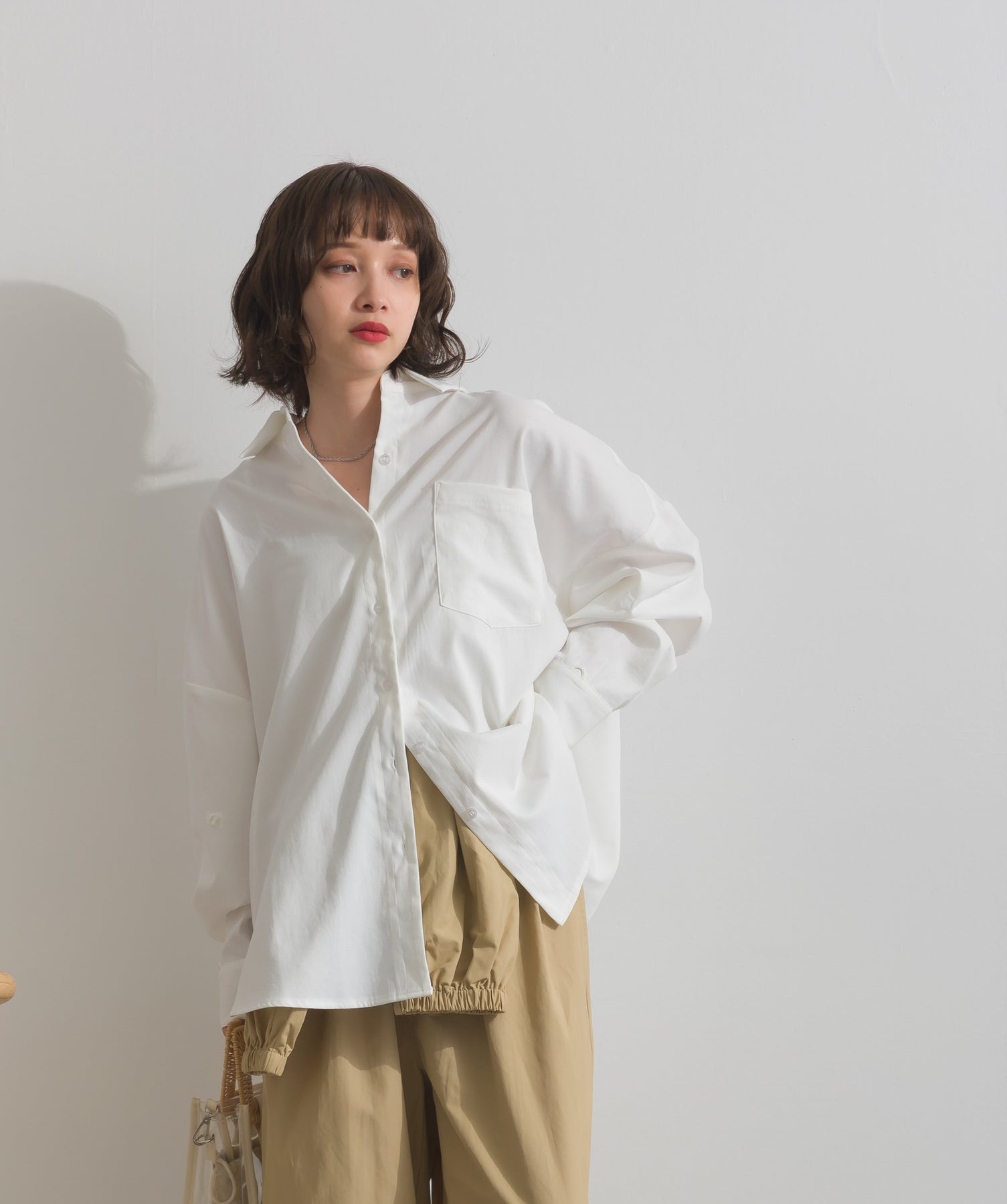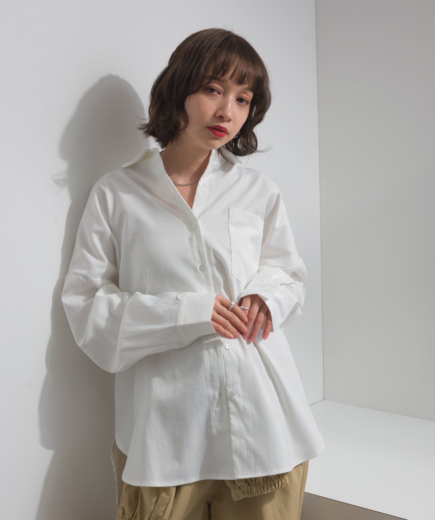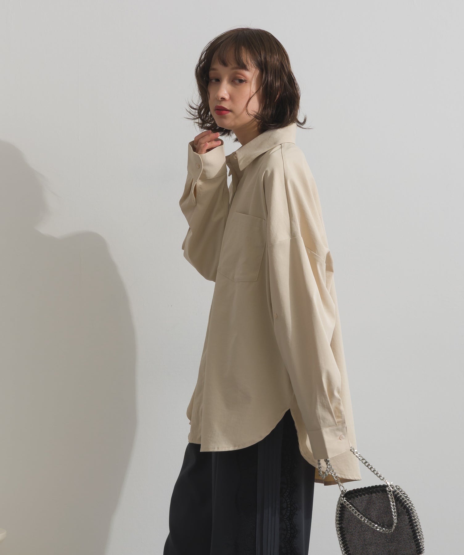 シンプルに魅せる、大人の余裕-material-程よくハリ感のあるコットン混素材を使用。さらりとした肌触りで着心地も快適。シーズンレスで着用可能な生地感が魅力です。-design-こなれ感を纏うオーバーサイズシルエットのシャツ。ミニマルなフロントデザインに、袖部分の切り替えでスリーブの雰囲気をアレンジできる2WAY仕様。1枚でさらりと着ても、羽織としても活躍する万能アイテムです。バックスタイルまで美しいドロップショルダーが、抜け感と女性らしさをプラス。洗練されたスタイリングが叶う、モードにもナチュラルにも振れる一枚。