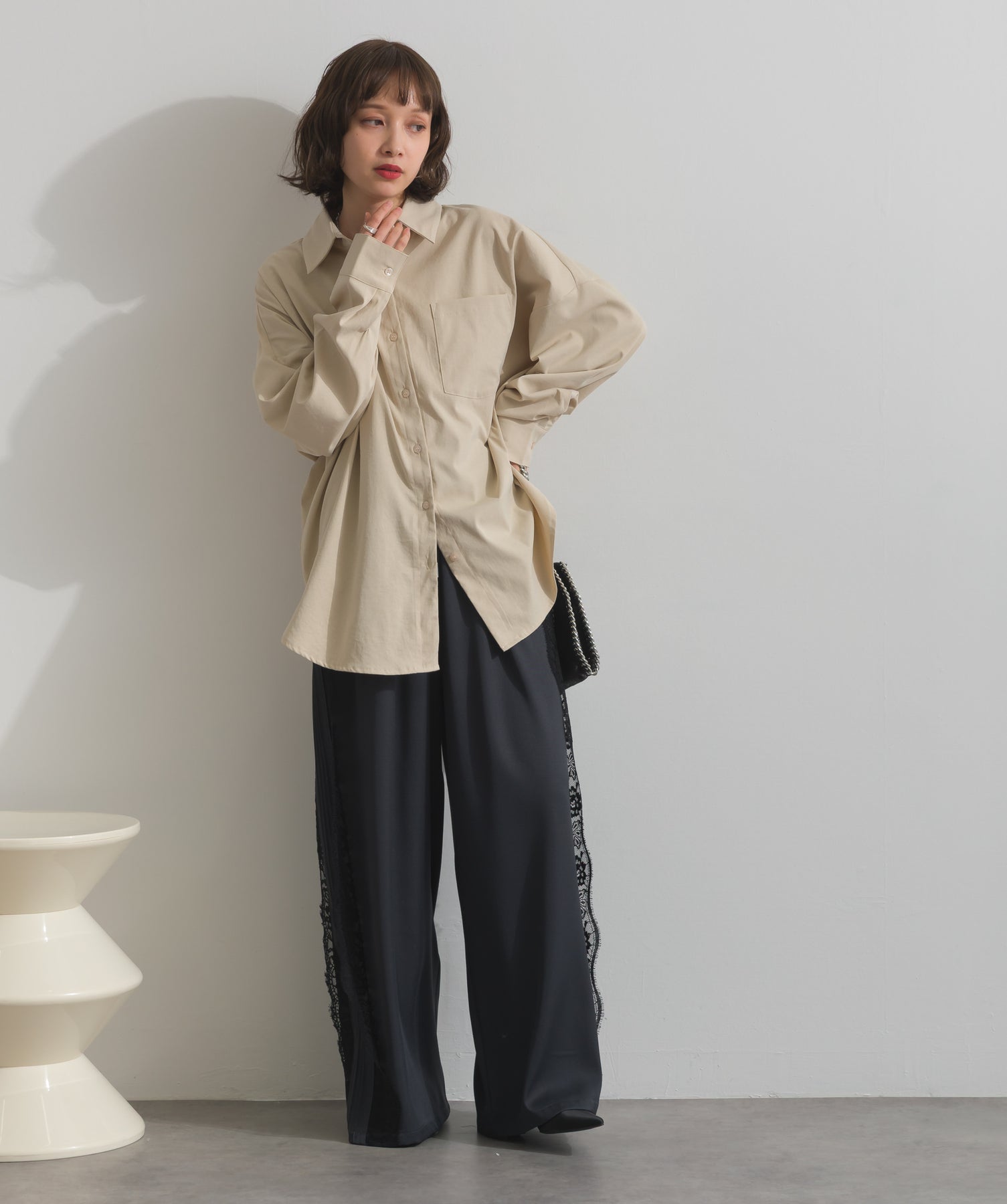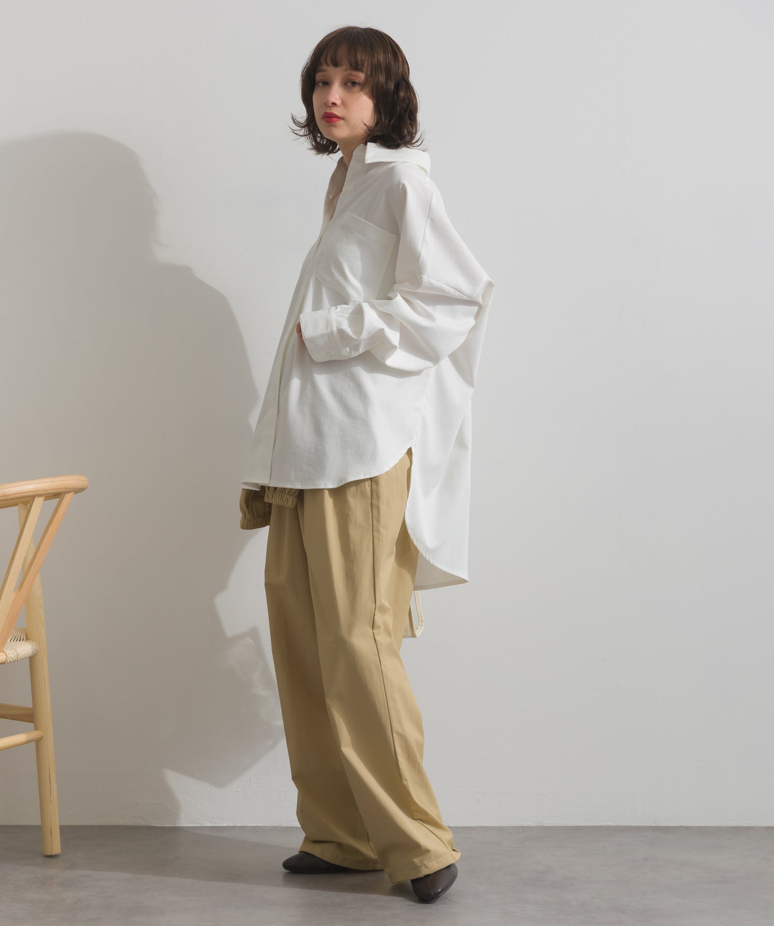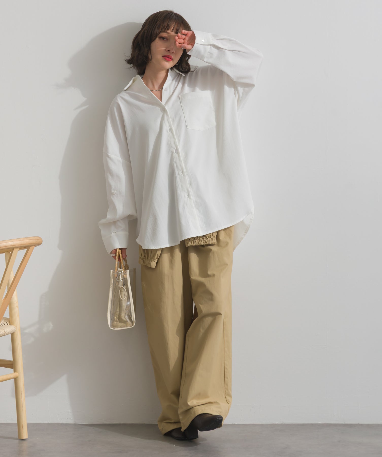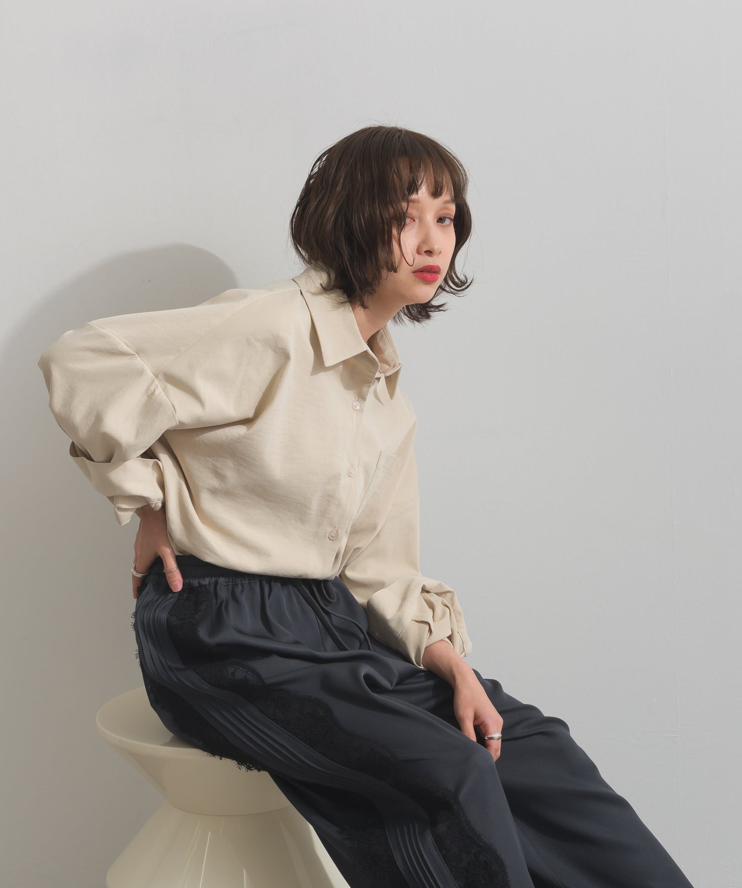 シンプルに魅せる、大人の余裕-material-程よくハリ感のあるコットン混素材を使用。さらりとした肌触りで着心地も快適。シーズンレスで着用可能な生地感が魅力です。-design-こなれ感を纏うオーバーサイズシルエットのシャツ。ミニマルなフロントデザインに、袖部分の切り替えでスリーブの雰囲気をアレンジできる2WAY仕様。1枚でさらりと着ても、羽織としても活躍する万能アイテムです。バックスタイルまで美しいドロップショルダーが、抜け感と女性らしさをプラス。洗練されたスタイリングが叶う、モードにもナチュラルにも振れる一枚。