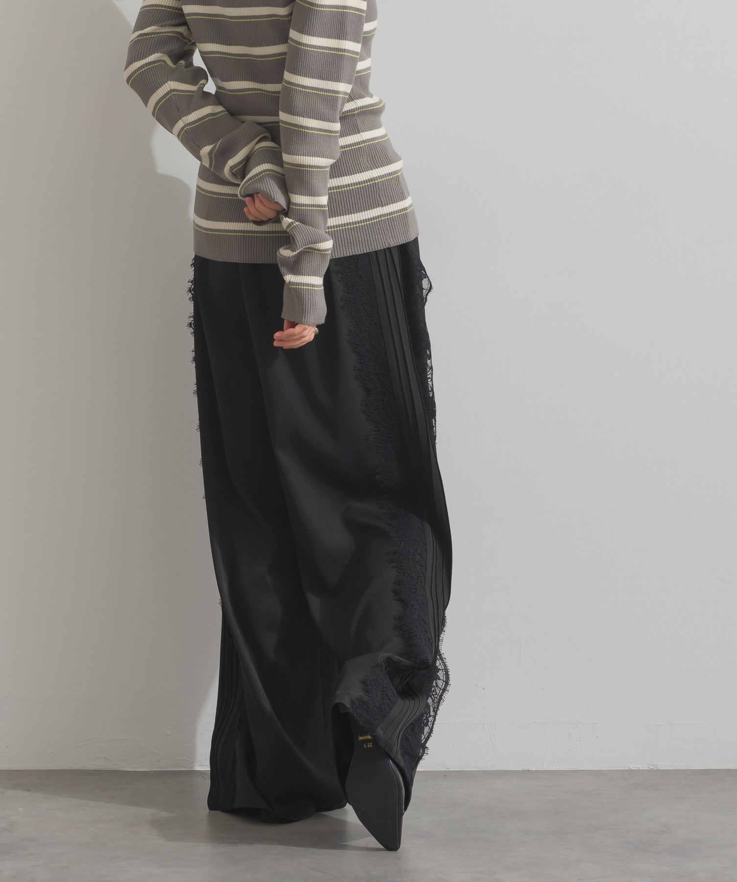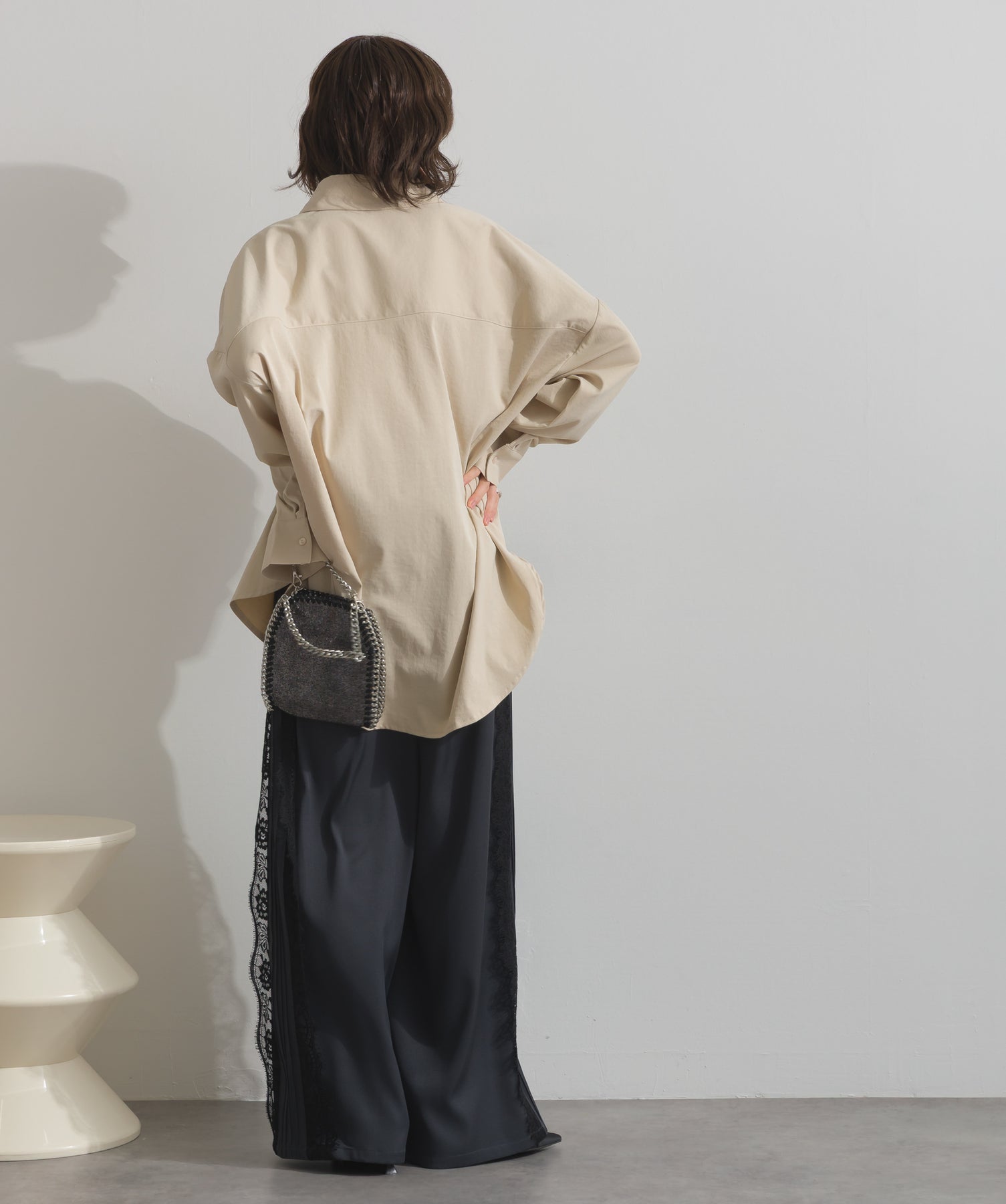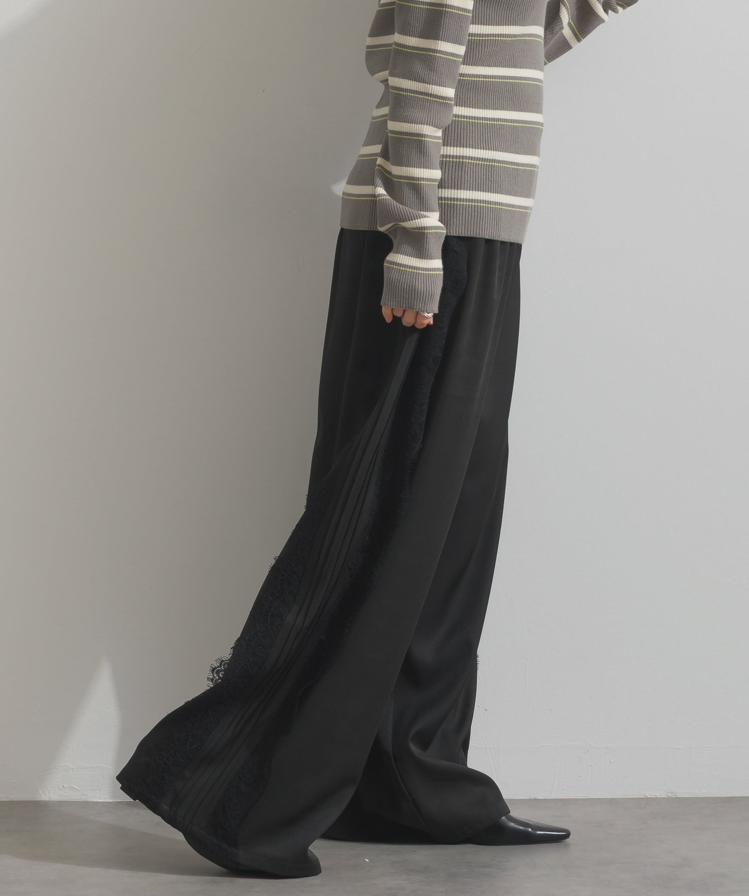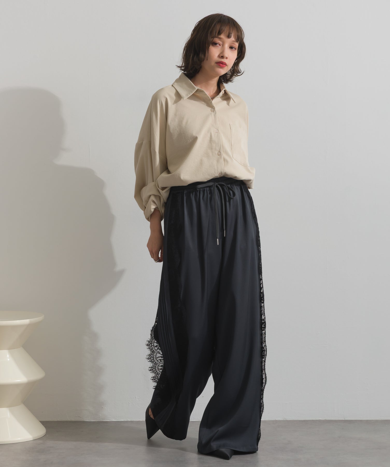 甘さとモードを両立する、レース×ワイドの新定番。繊細なレースがサイドを彩る、媚びないフェミニン。動くたびに揺れるニュアンスが、スタイリングを格上げ。-material-さらりとしたタッチと落ち感が美しい、軽量ポリエステル素材を採用。シーズンレスで着用できる快適な着心地と、シワになりにくいイージーケア性も魅力。ウエストはゴム+ドローストリング仕様でリラクシーなフィット感に。-design-サイドにあしらったレースラインが、ワイドシルエットに華やかさを添えるデザインパンツ。センターをスッキリ見せつつ、レースの甘さを抑えた絶妙なバランス感がポイント。ルーズなトップスやスウェットと合わせてカジュアルダウンしても、きれいめトップスと合わせてエレガントにも。ワントーンでまとめられているため、合わせるアイテムを選ばず、コーディネートの幅が広がる1本です。