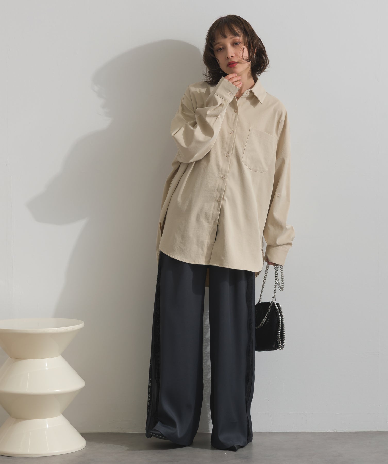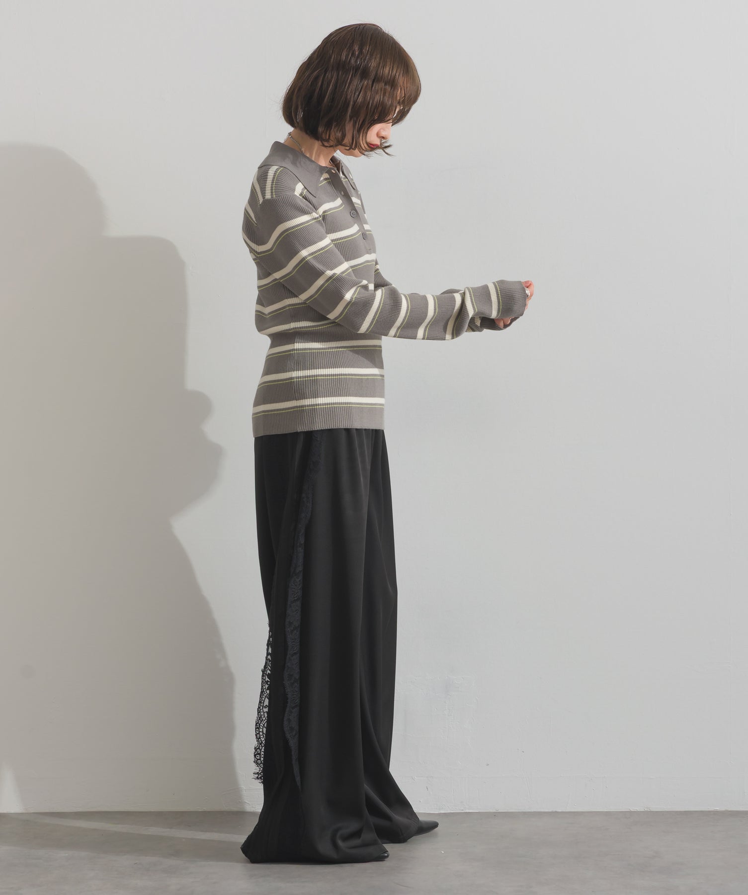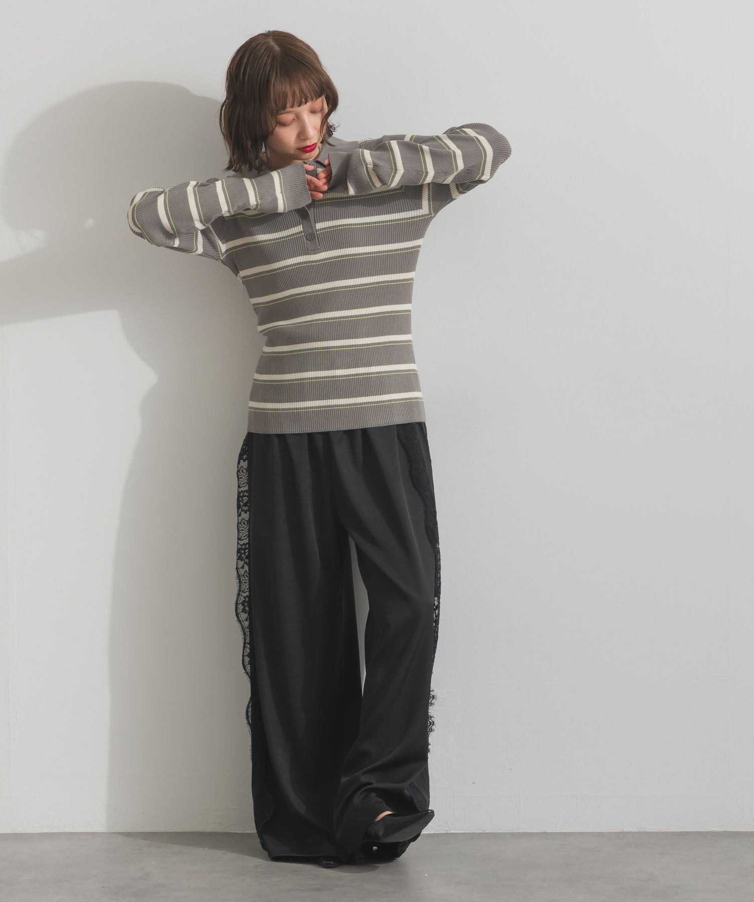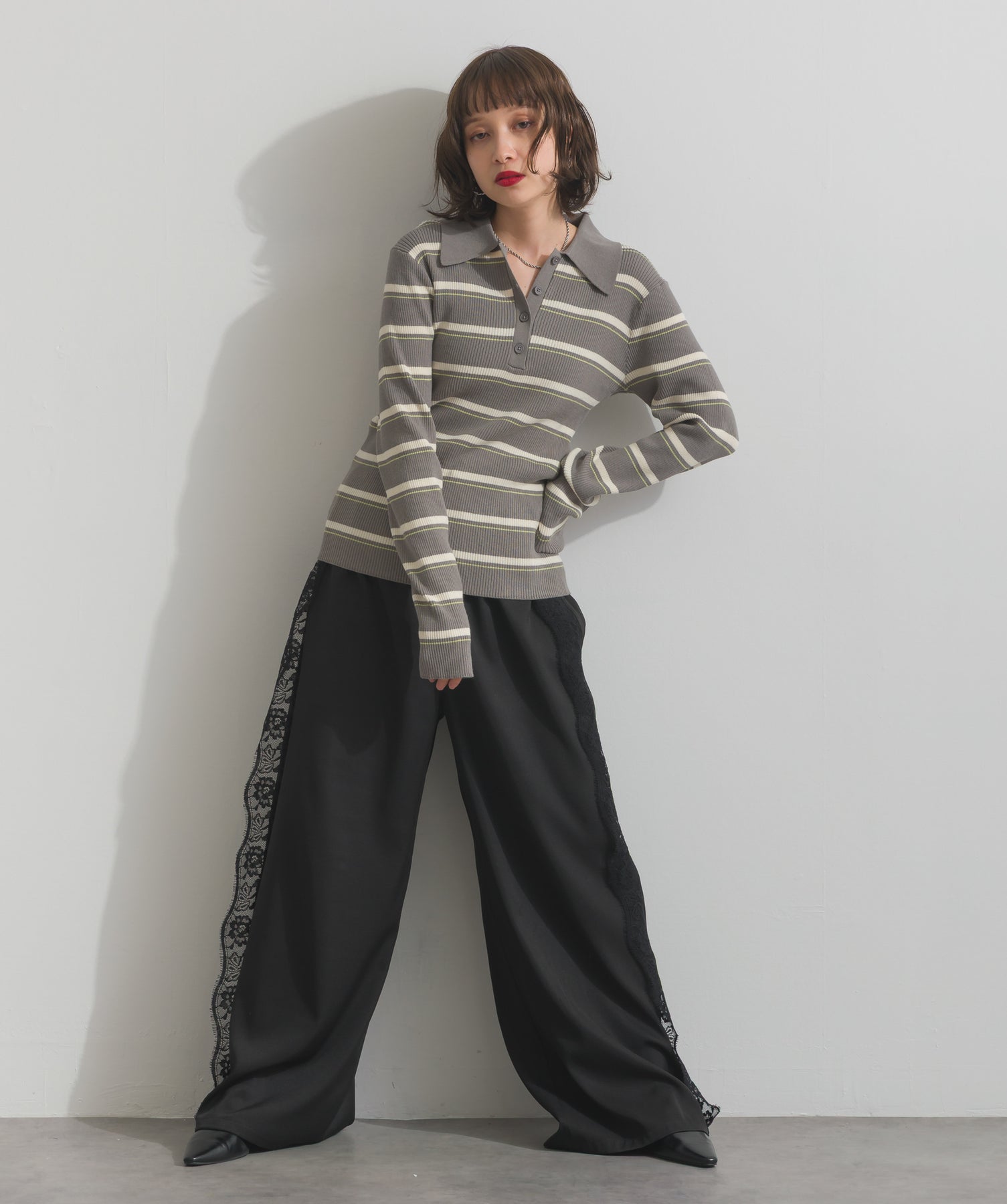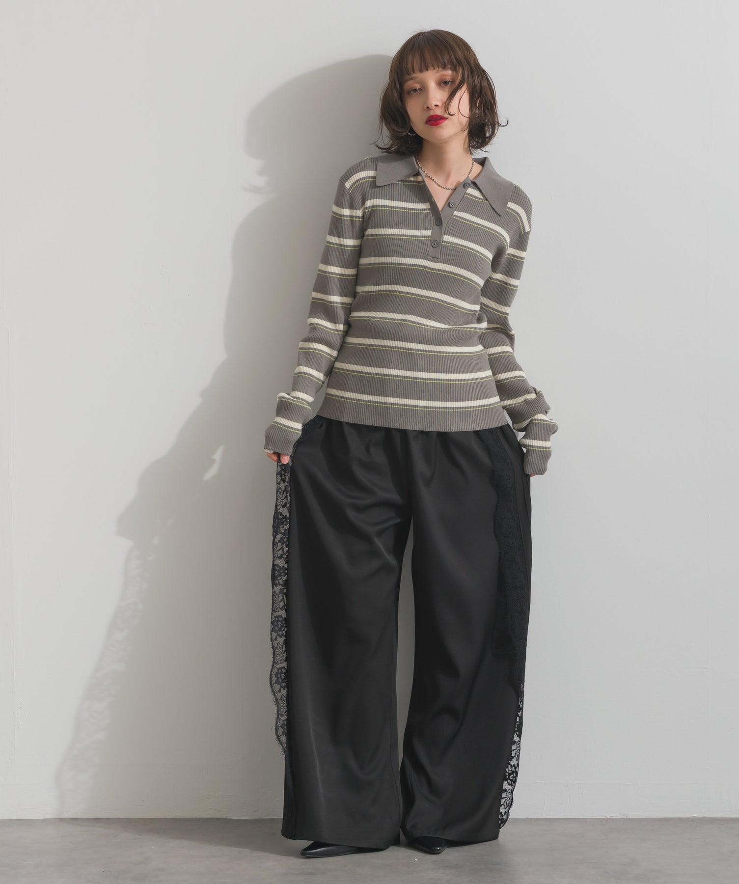 甘さとモードを両立する、レース×ワイドの新定番。繊細なレースがサイドを彩る、媚びないフェミニン。動くたびに揺れるニュアンスが、スタイリングを格上げ。-material-さらりとしたタッチと落ち感が美しい、軽量ポリエステル素材を採用。シーズンレスで着用できる快適な着心地と、シワになりにくいイージーケア性も魅力。ウエストはゴム+ドローストリング仕様でリラクシーなフィット感に。-design-サイドにあしらったレースラインが、ワイドシルエットに華やかさを添えるデザインパンツ。センターをスッキリ見せつつ、レースの甘さを抑えた絶妙なバランス感がポイント。ルーズなトップスやスウェットと合わせてカジュアルダウンしても、きれいめトップスと合わせてエレガントにも。ワントーンでまとめられているため、合わせるアイテムを選ばず、コーディネートの幅が広がる1本です。