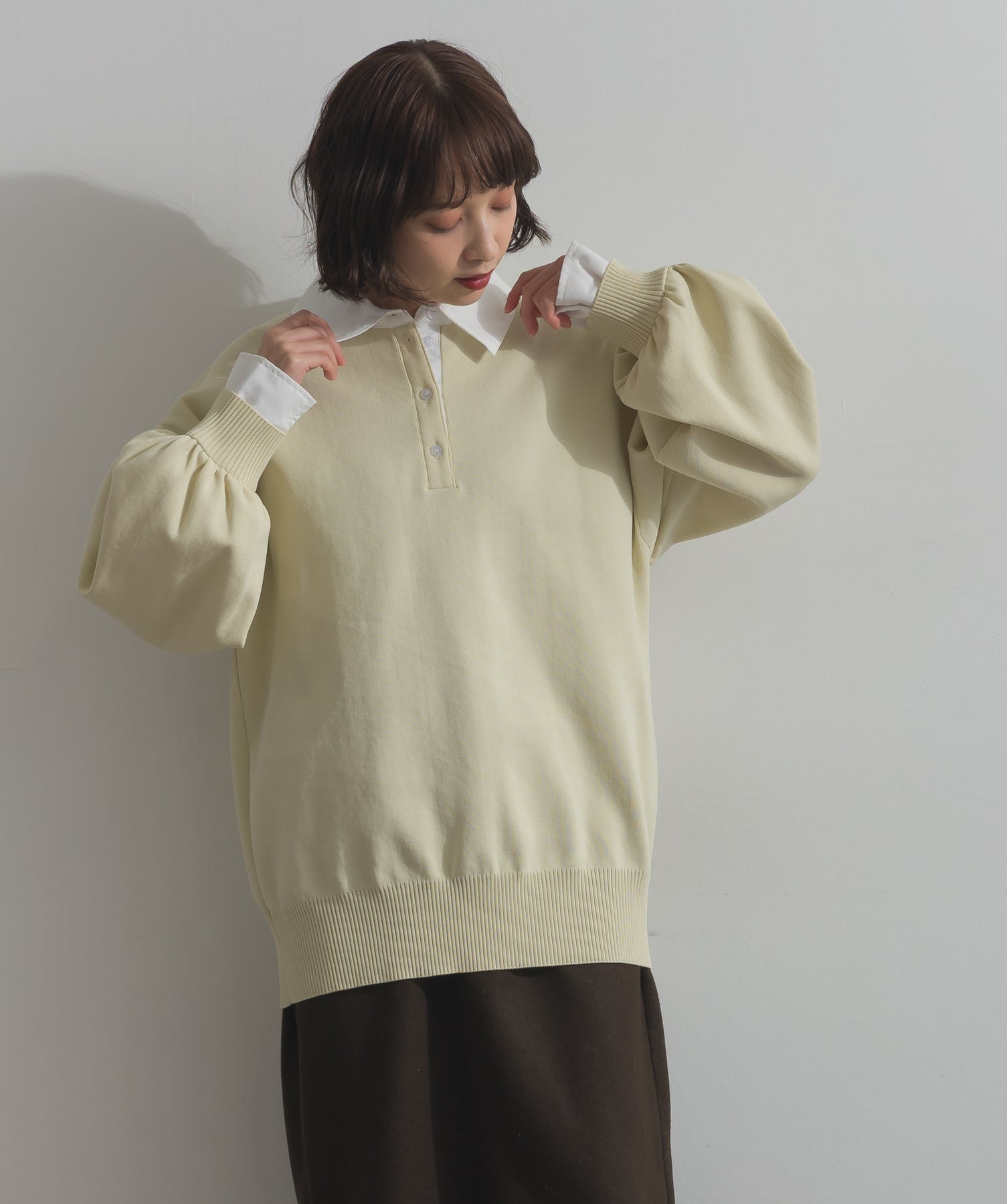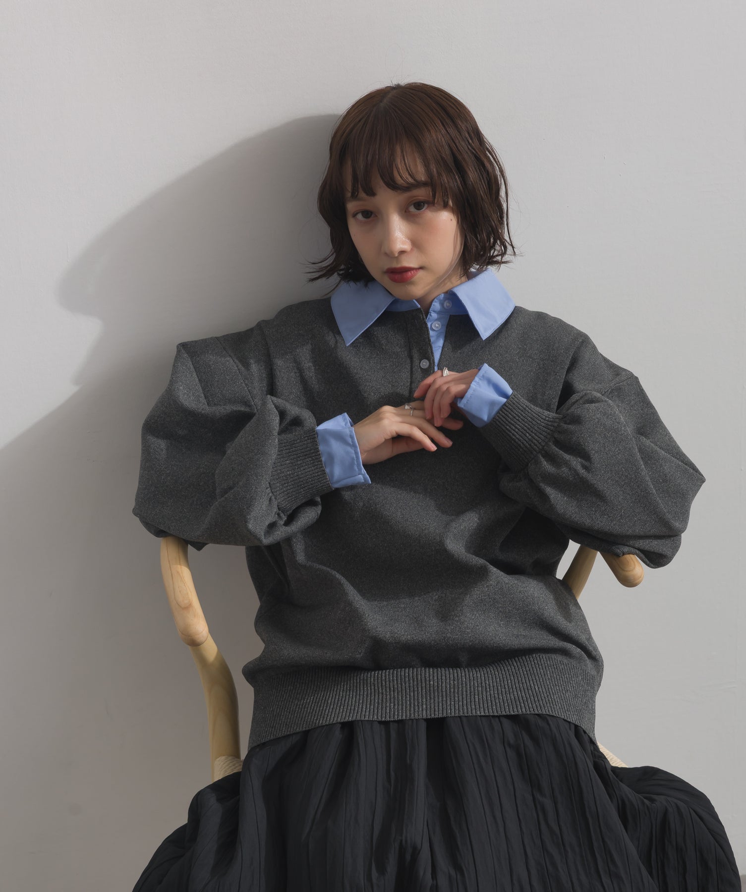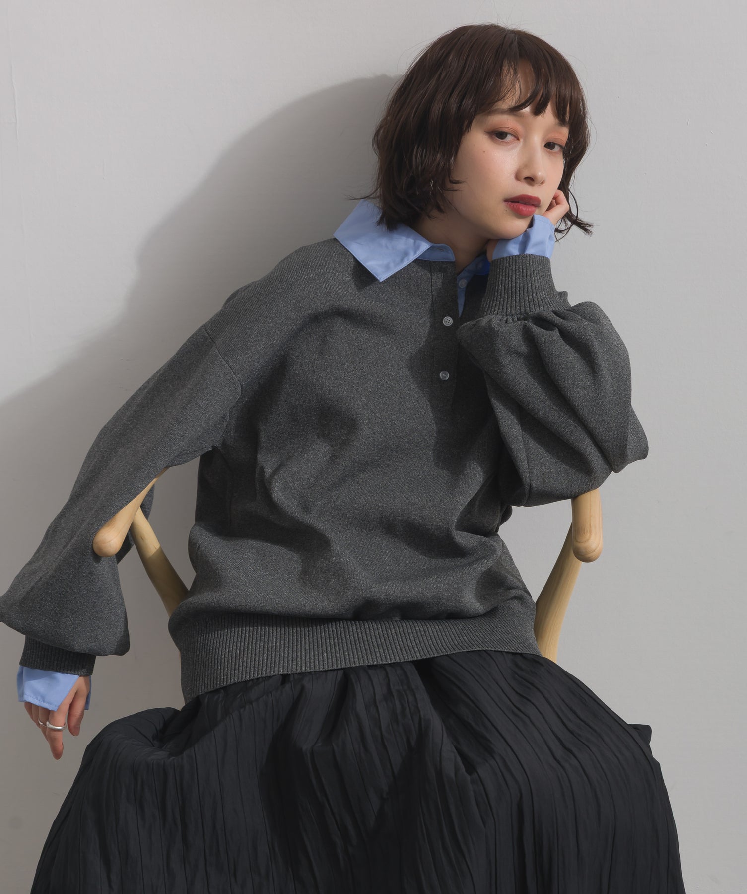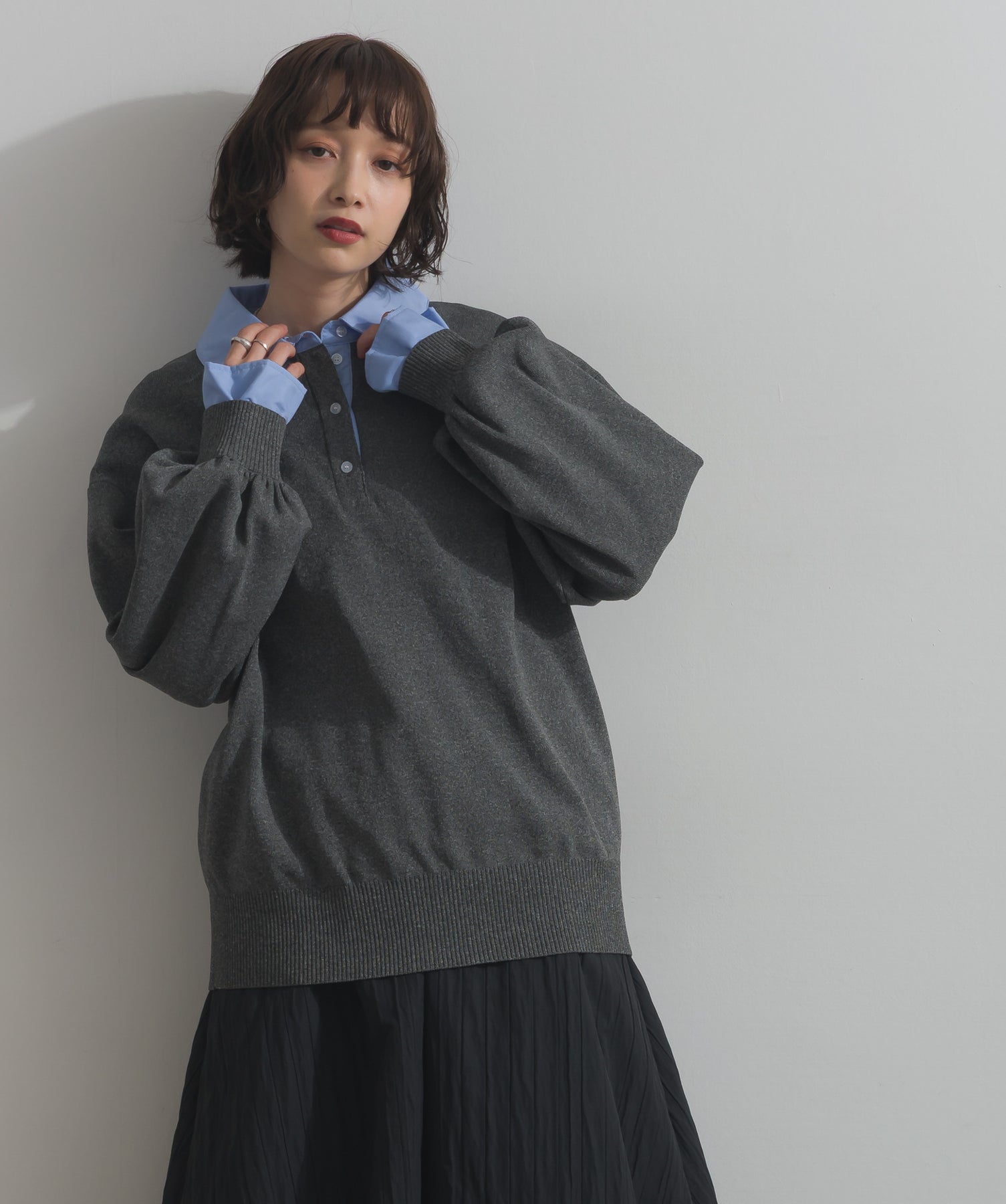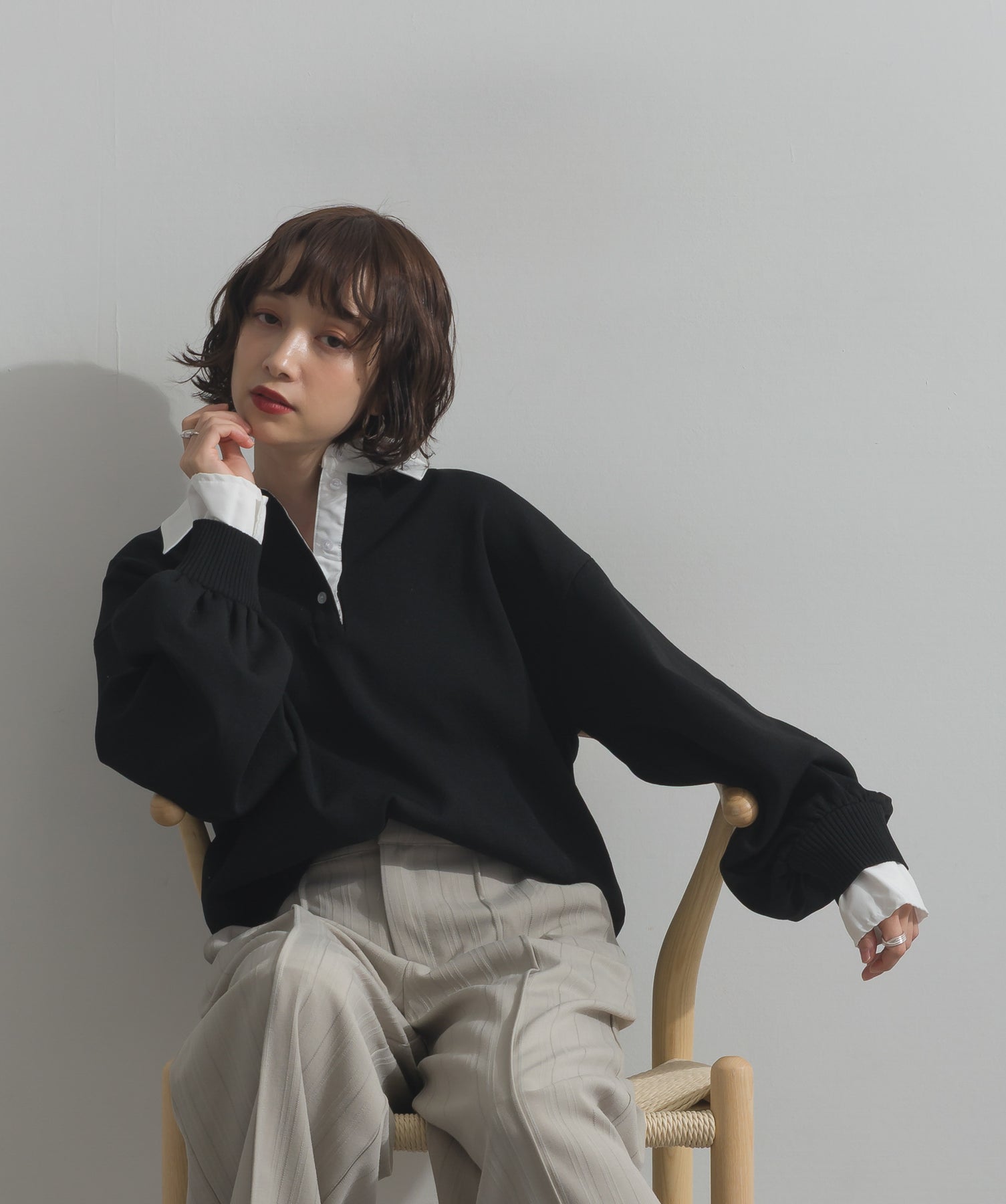 シャツをレイヤードしたようなデザインがポイントの襟付きポロトップス。レギュラーカラーを重ねたようなデザインが特徴で、シンプルに着るだけでもこなれた印象に仕上がります。袖口や裾はリブ仕立てでメリハリを効かせ、全体をすっきりと引き締めた印象に。トレンド感あるボリュームスリーブが女性らしさを引き立てます。カジュアルにもきれいめにも馴染む万能トップスです。