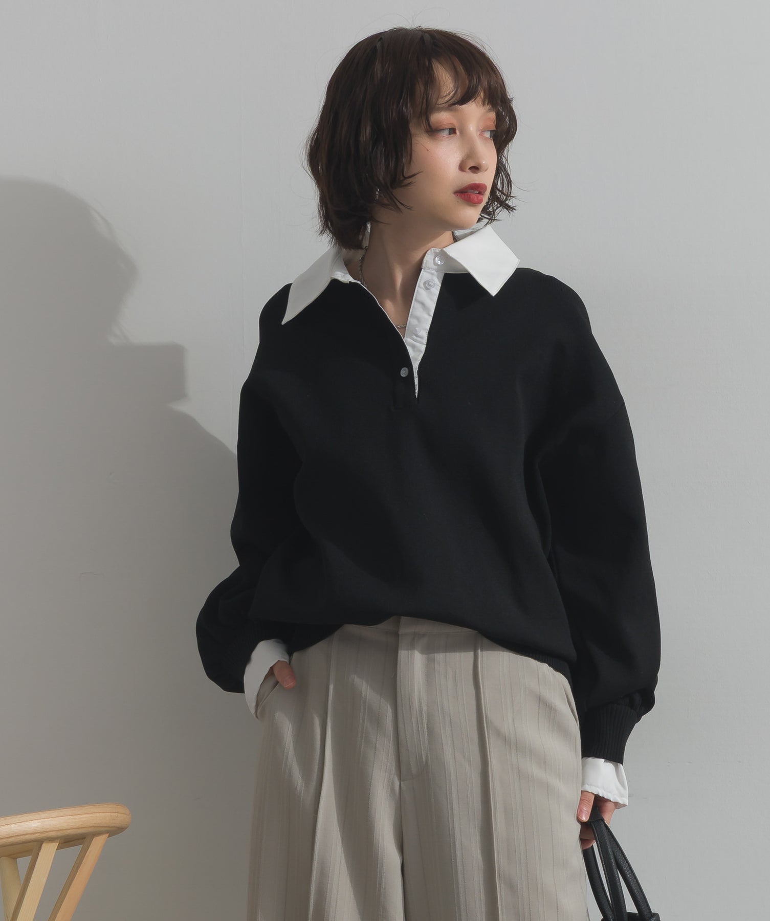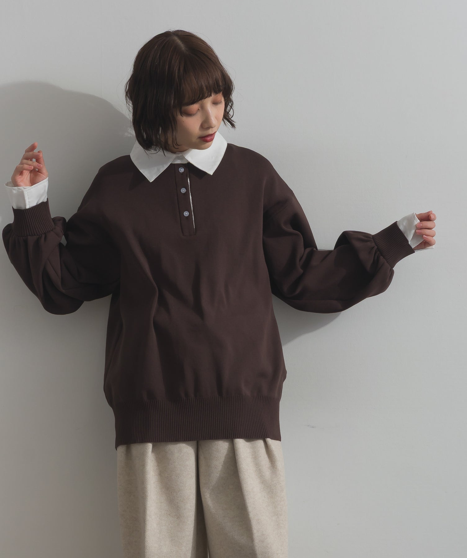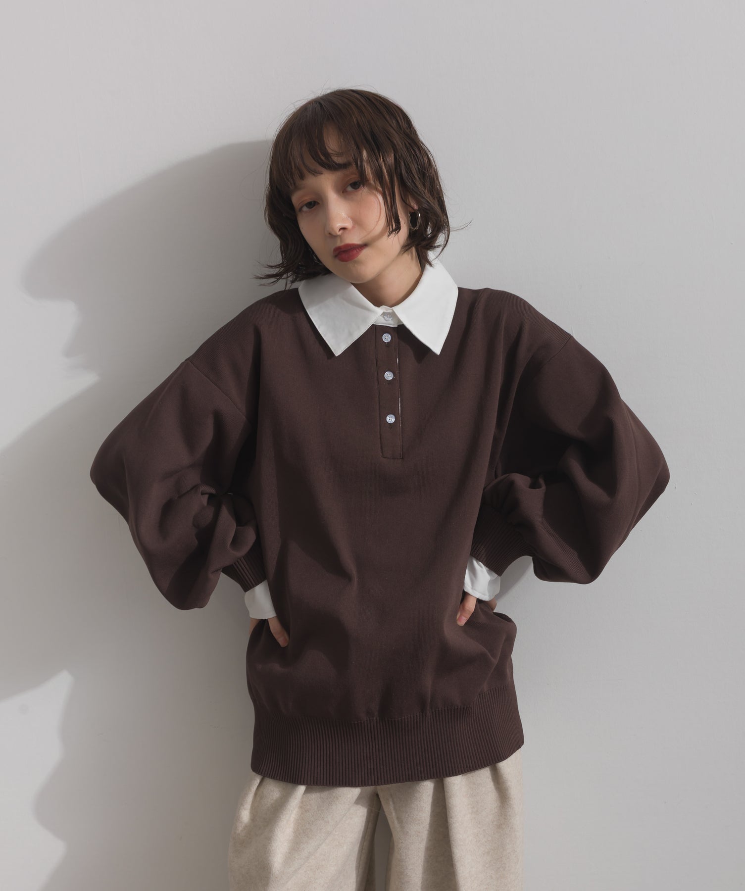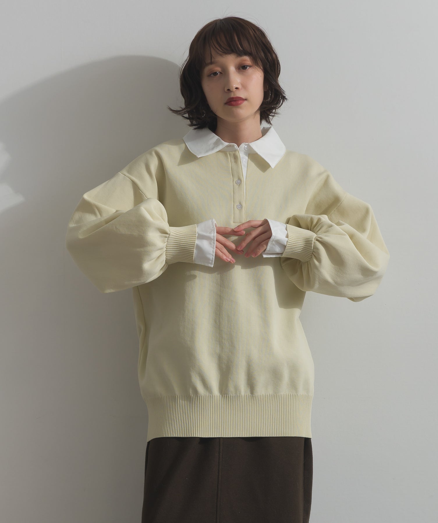 シャツをレイヤードしたようなデザインがポイントの襟付きポロトップス。レギュラーカラーを重ねたようなデザインが特徴で、シンプルに着るだけでもこなれた印象に仕上がります。袖口や裾はリブ仕立てでメリハリを効かせ、全体をすっきりと引き締めた印象に。トレンド感あるボリュームスリーブが女性らしさを引き立てます。カジュアルにもきれいめにも馴染む万能トップスです。