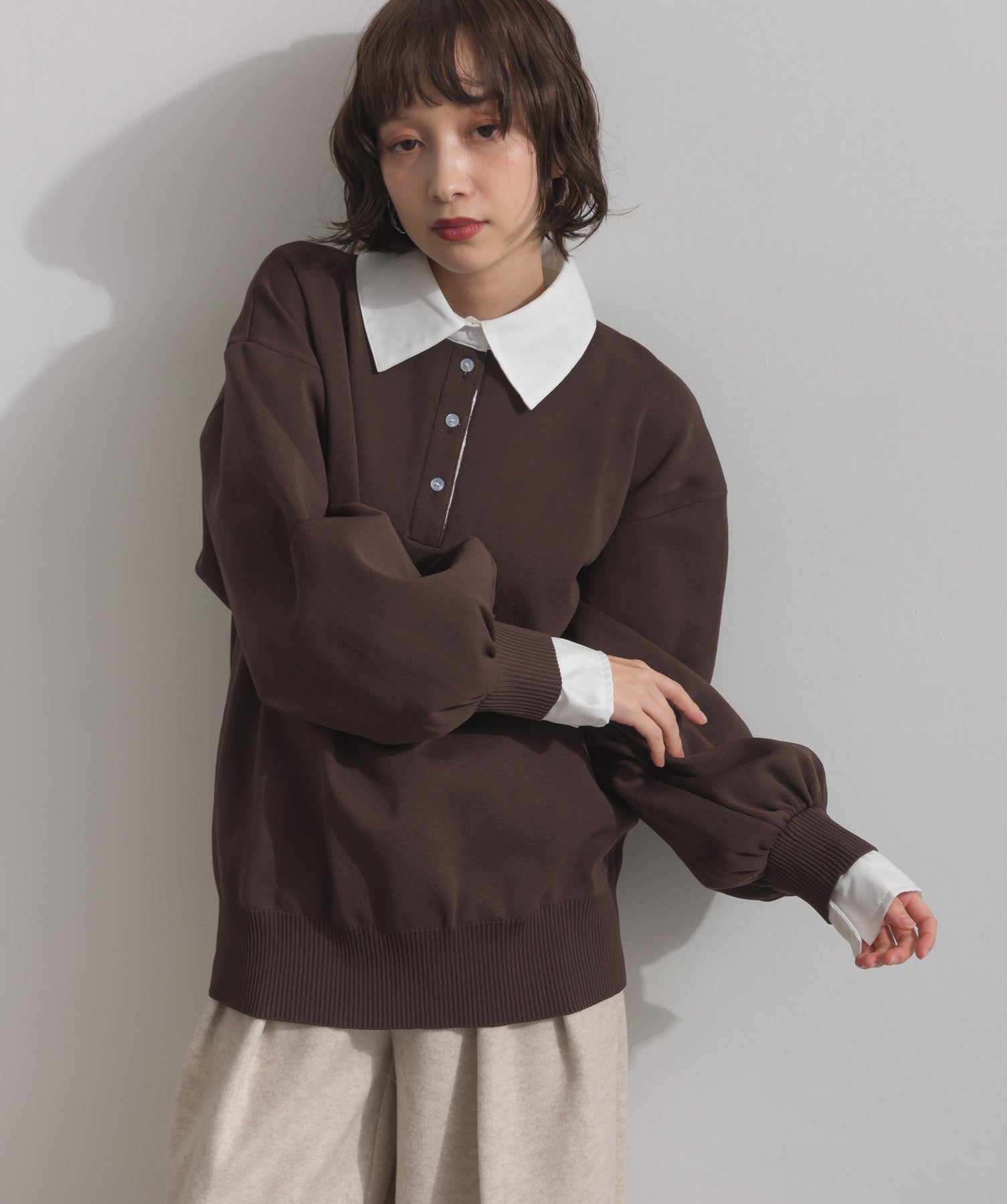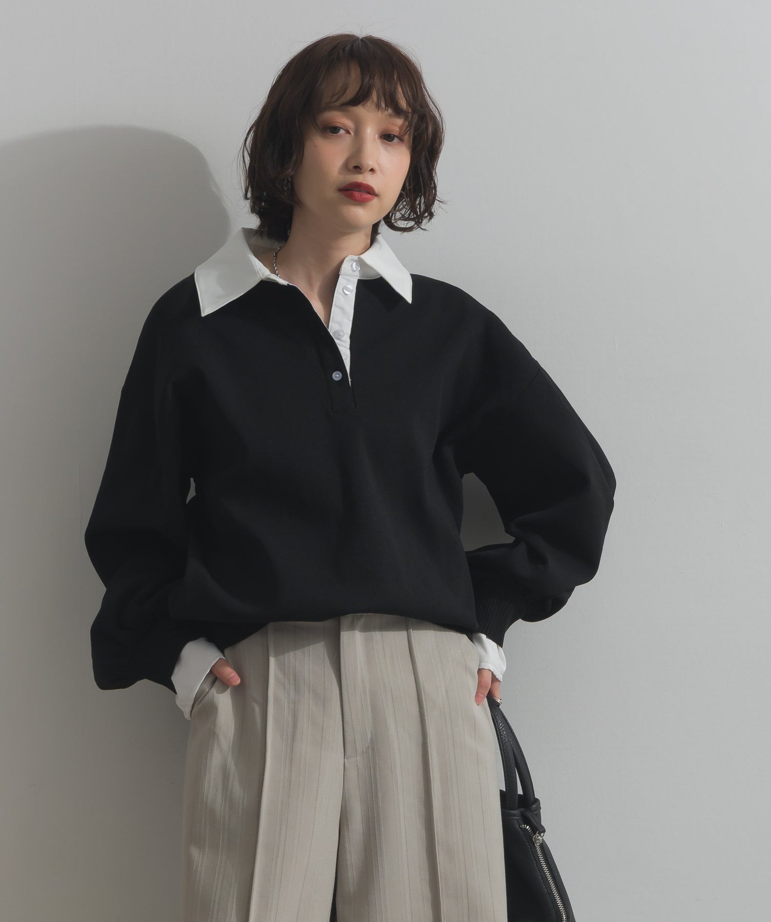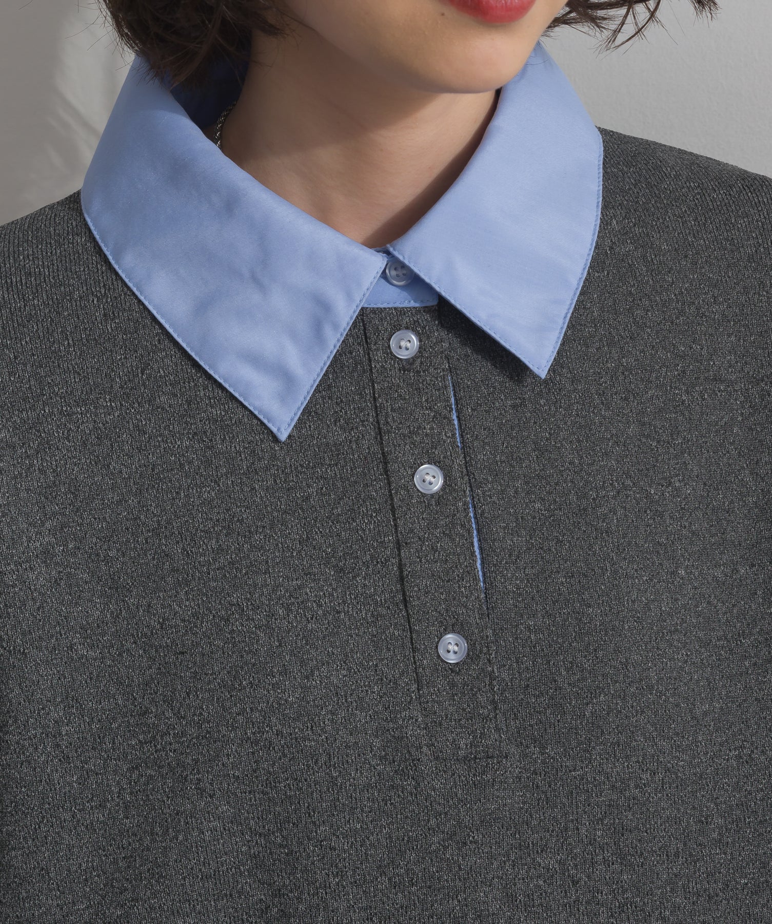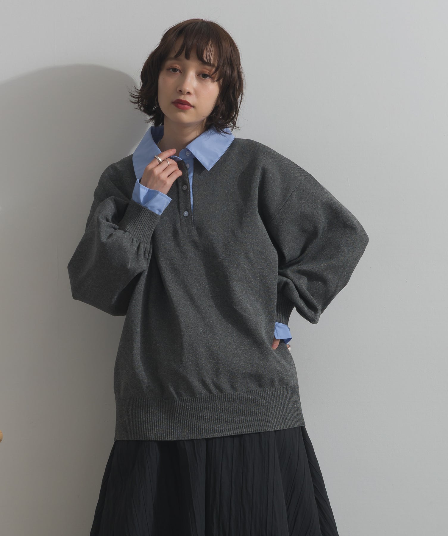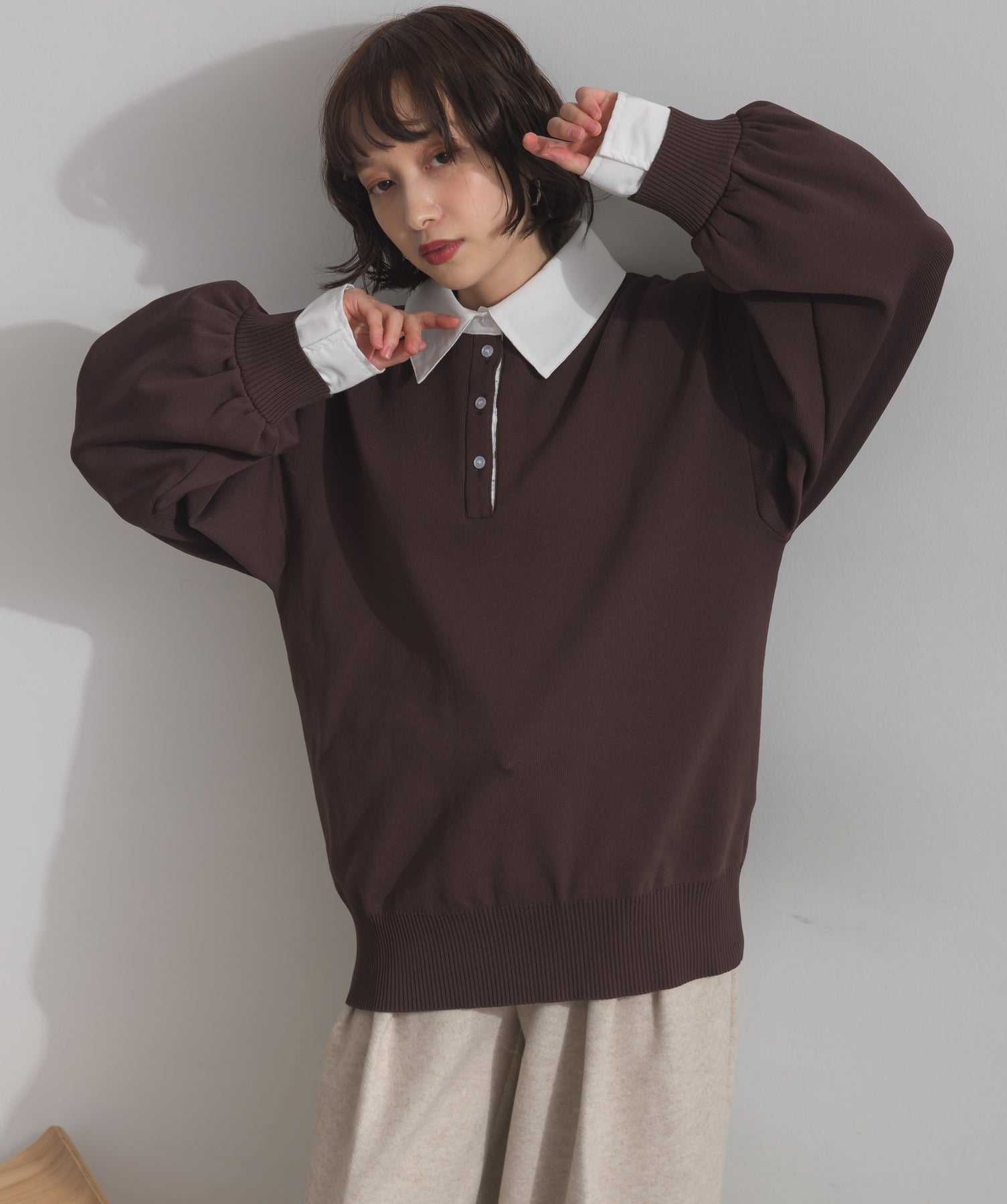 シャツをレイヤードしたようなデザインがポイントの襟付きポロトップス。レギュラーカラーを重ねたようなデザインが特徴で、シンプルに着るだけでもこなれた印象に仕上がります。袖口や裾はリブ仕立てでメリハリを効かせ、全体をすっきりと引き締めた印象に。トレンド感あるボリュームスリーブが女性らしさを引き立てます。カジュアルにもきれいめにも馴染む万能トップスです。