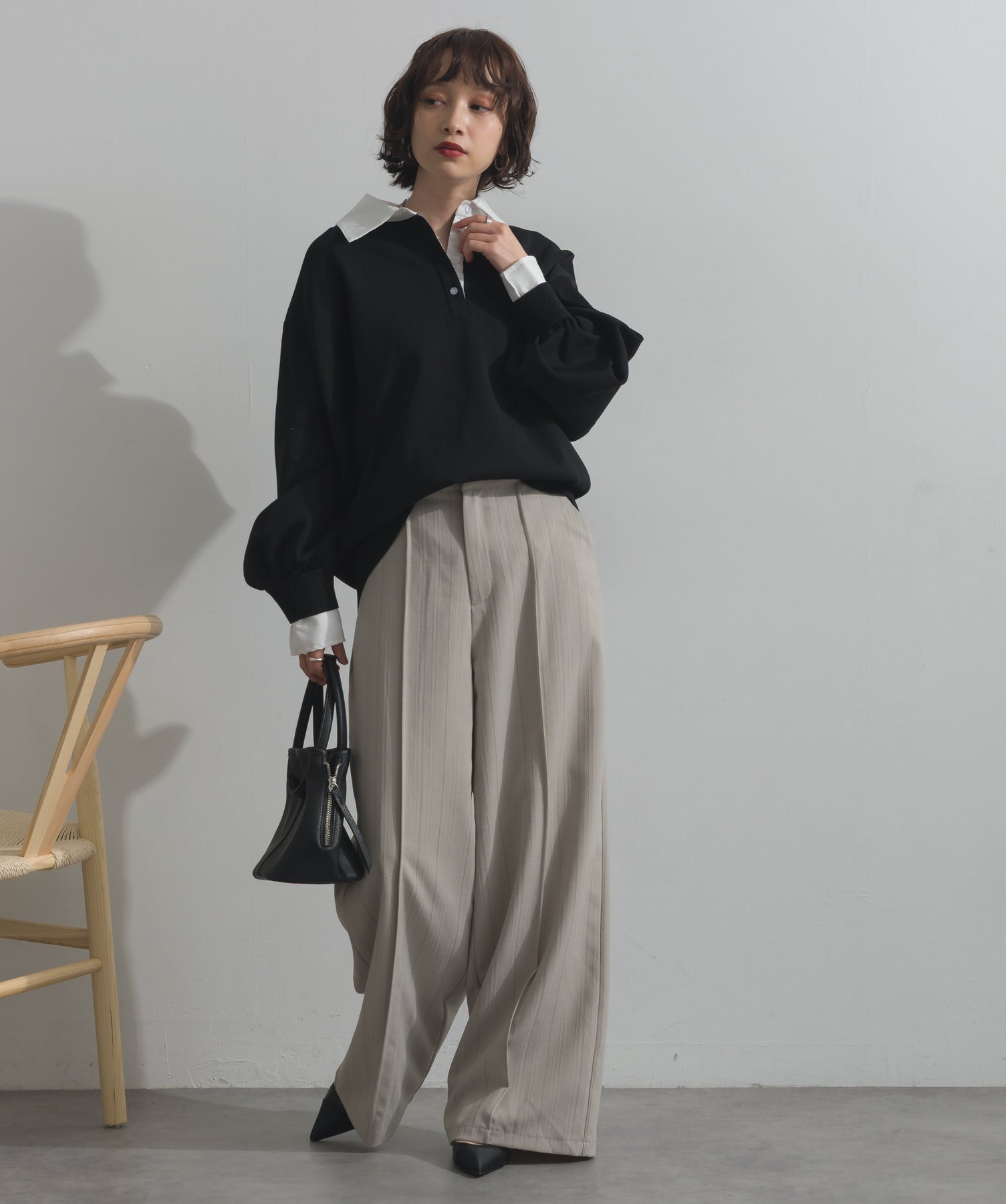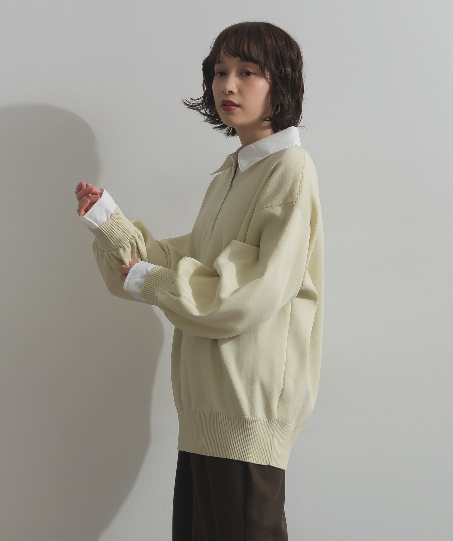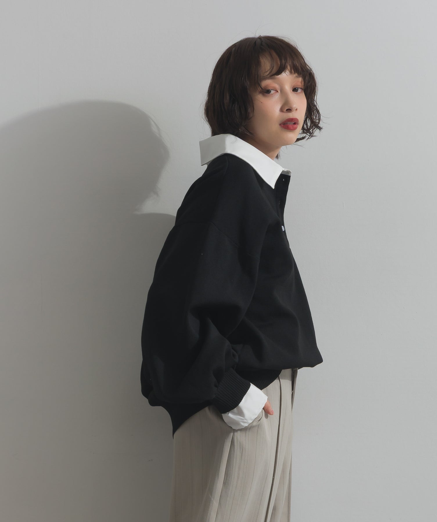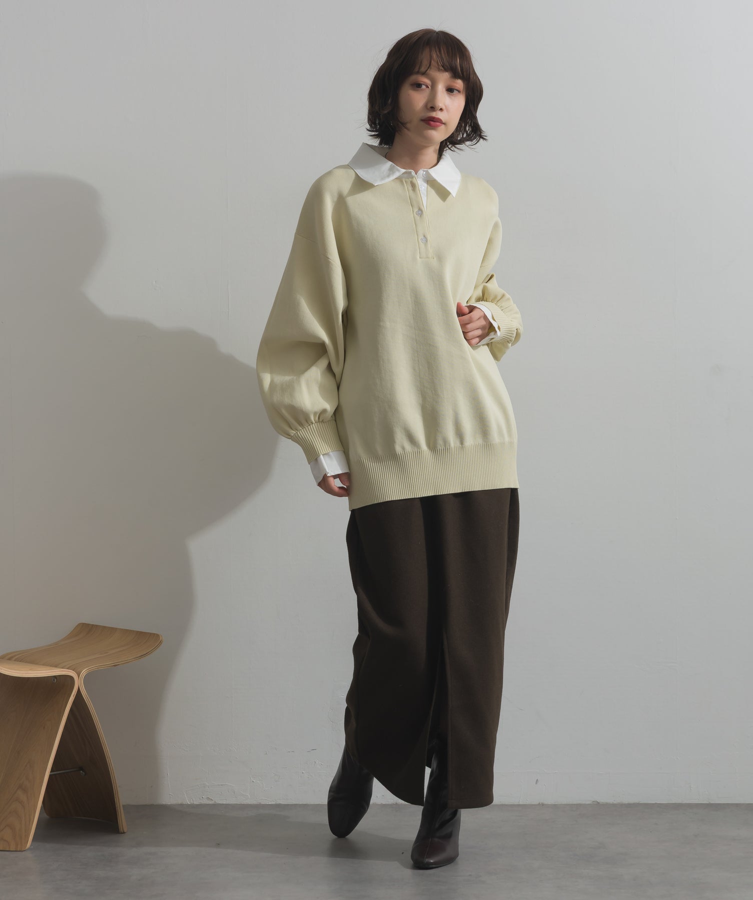 シャツをレイヤードしたようなデザインがポイントの襟付きポロトップス。レギュラーカラーを重ねたようなデザインが特徴で、シンプルに着るだけでもこなれた印象に仕上がります。袖口や裾はリブ仕立てでメリハリを効かせ、全体をすっきりと引き締めた印象に。トレンド感あるボリュームスリーブが女性らしさを引き立てます。カジュアルにもきれいめにも馴染む万能トップスです。