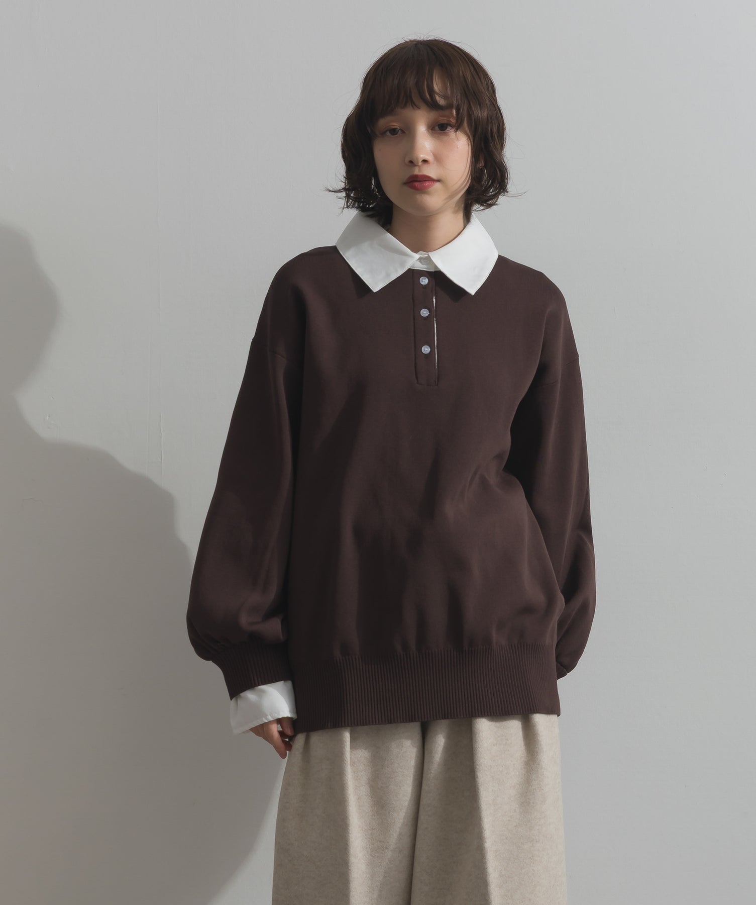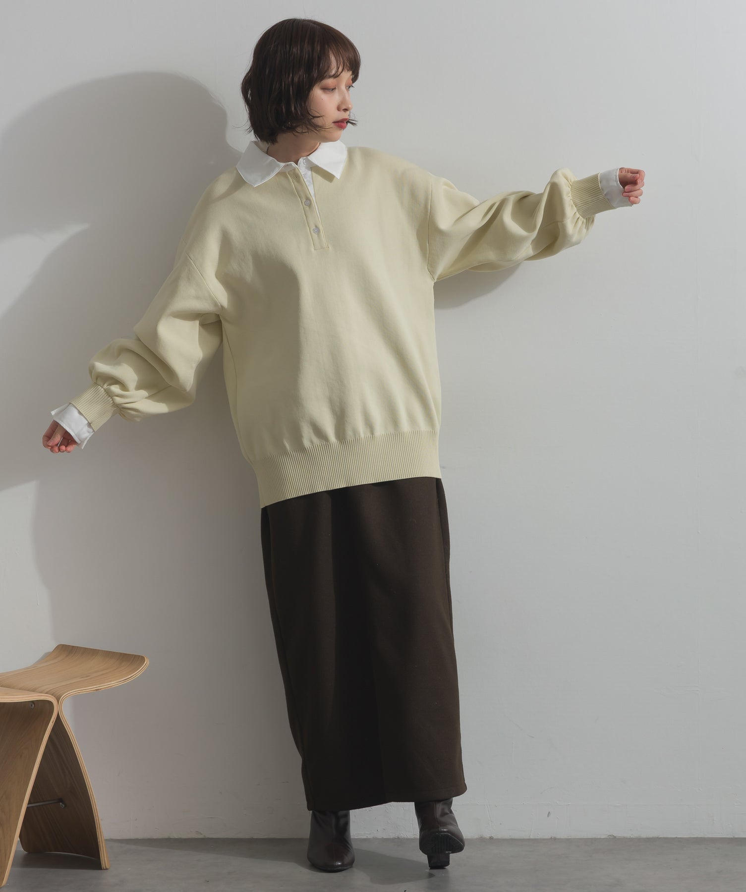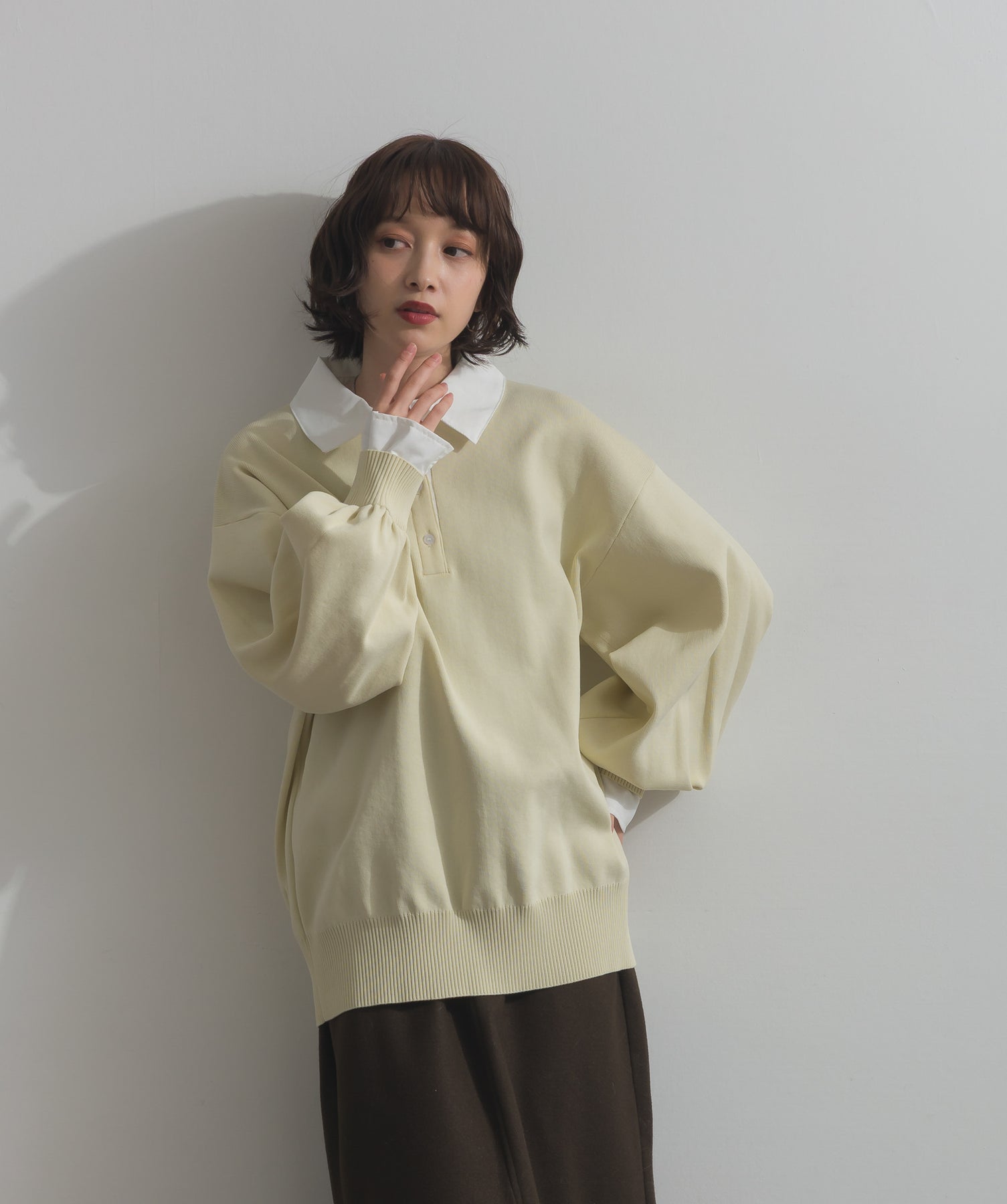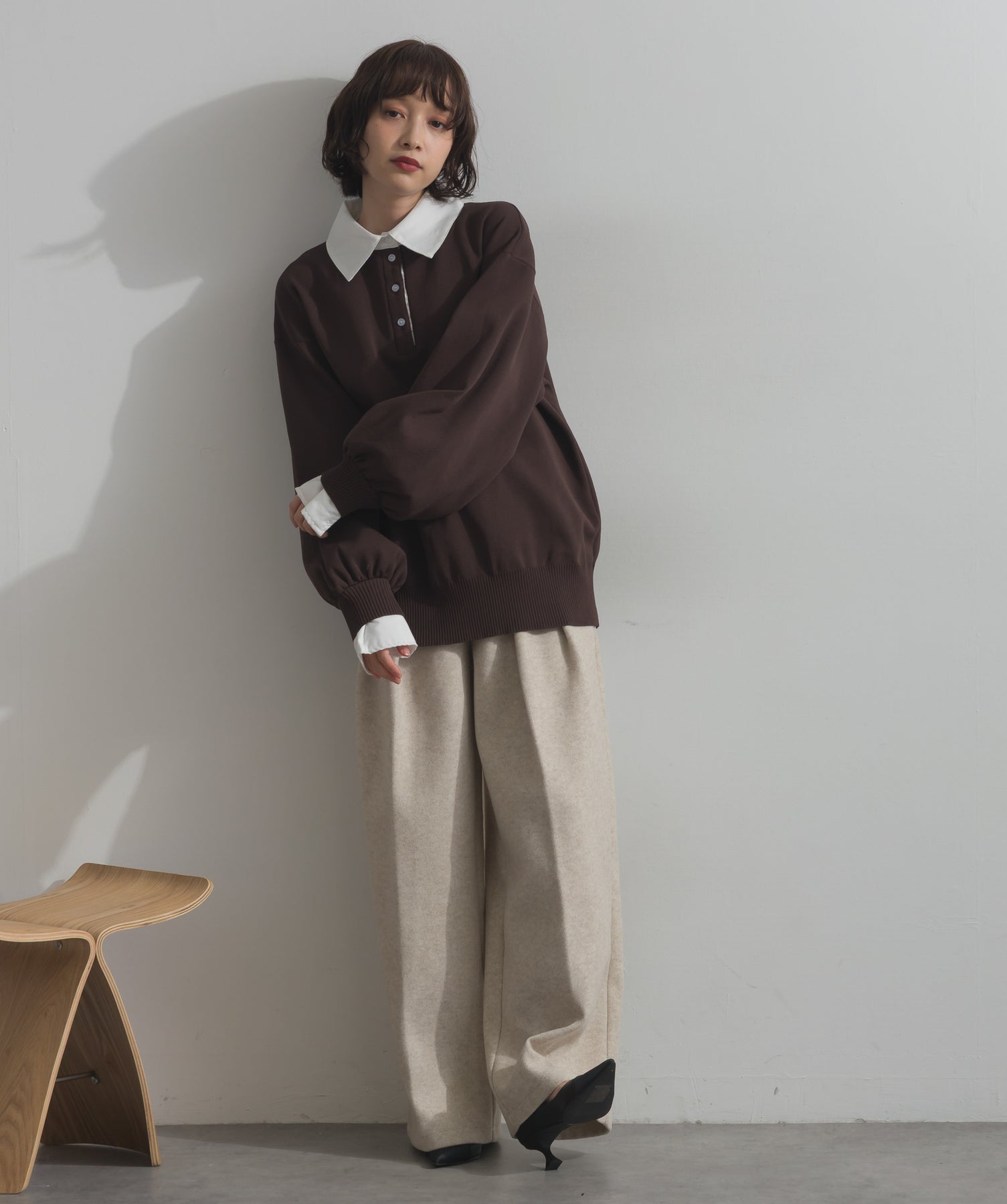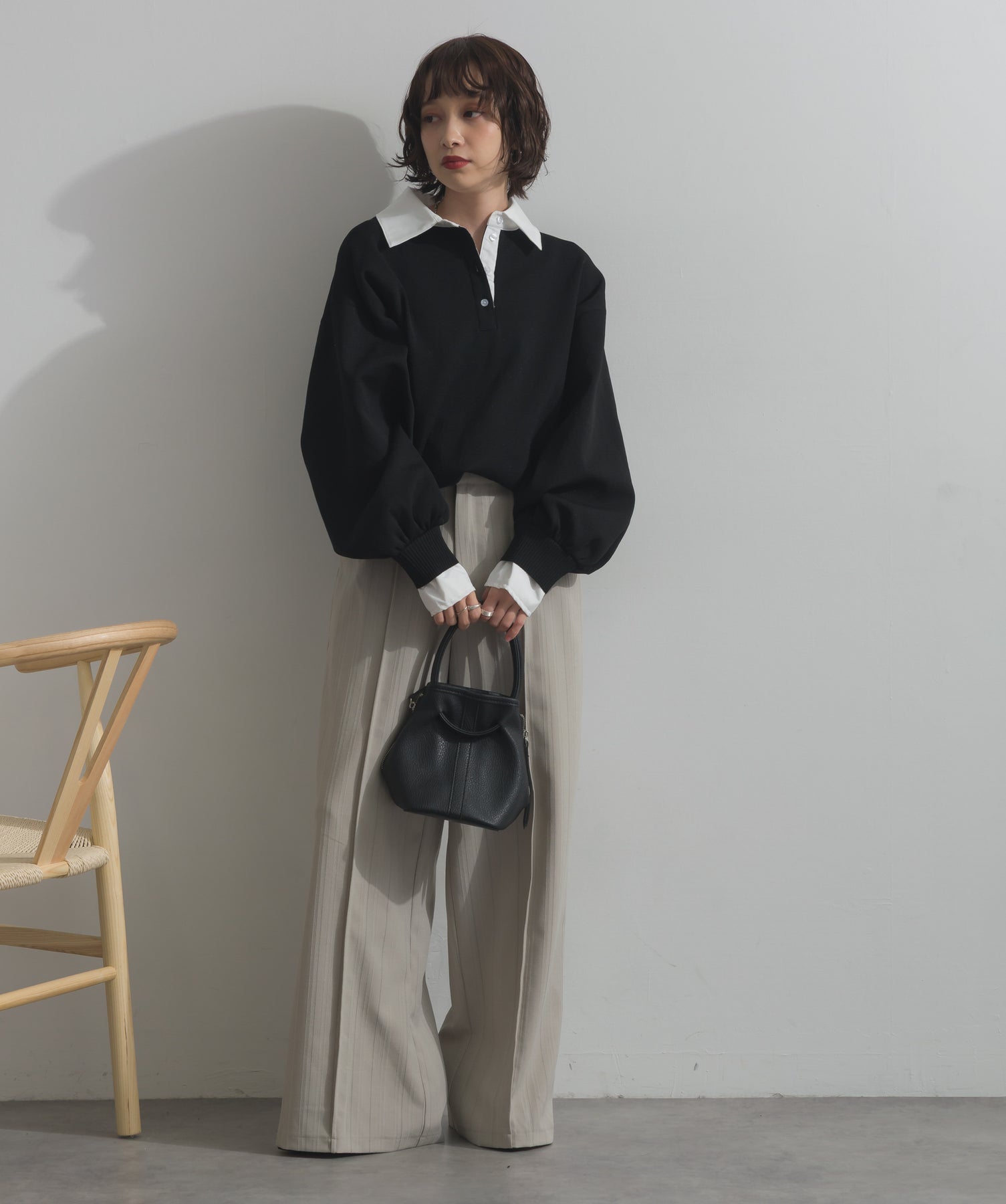 シャツをレイヤードしたようなデザインがポイントの襟付きポロトップス。レギュラーカラーを重ねたようなデザインが特徴で、シンプルに着るだけでもこなれた印象に仕上がります。袖口や裾はリブ仕立てでメリハリを効かせ、全体をすっきりと引き締めた印象に。トレンド感あるボリュームスリーブが女性らしさを引き立てます。カジュアルにもきれいめにも馴染む万能トップスです。
