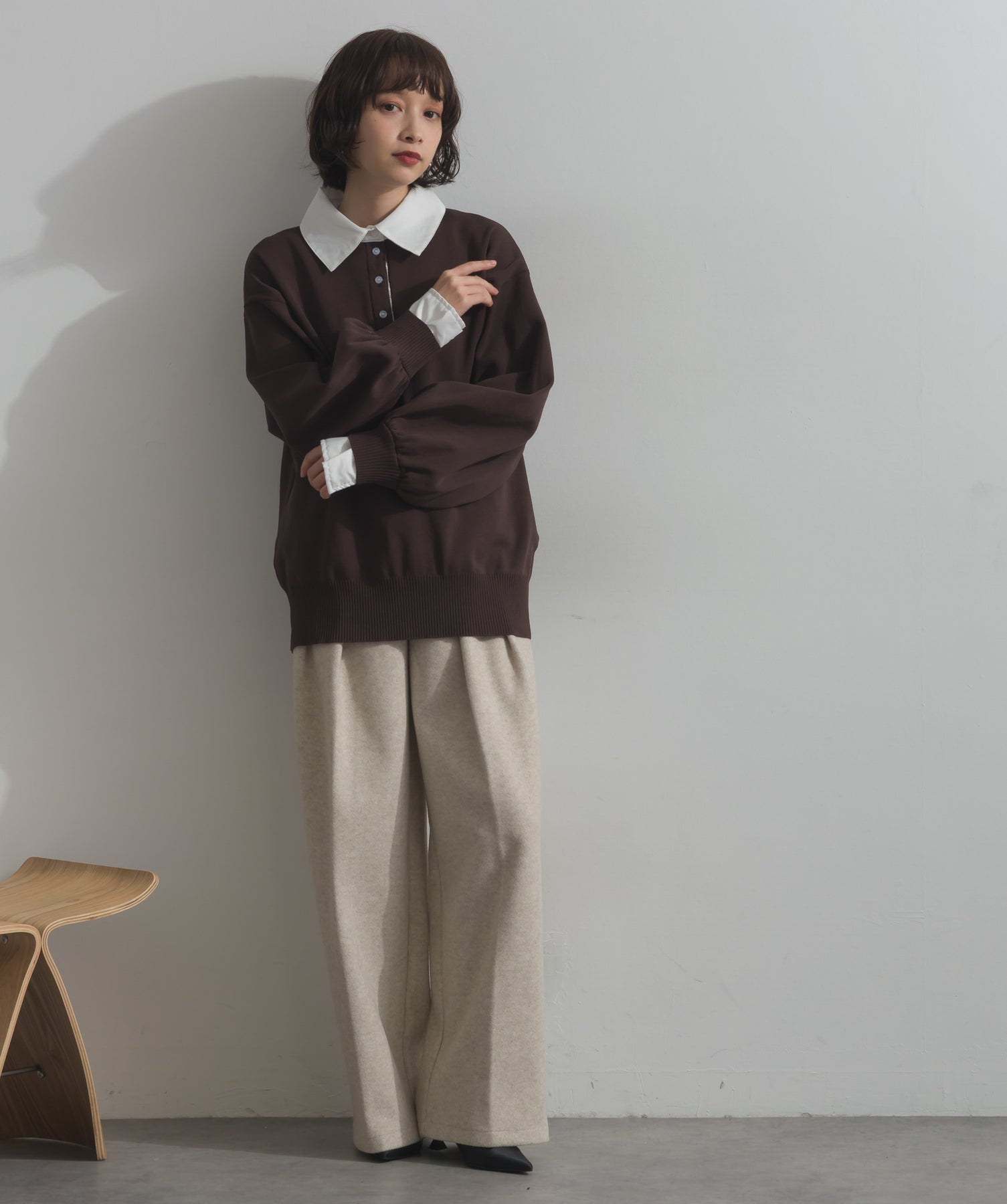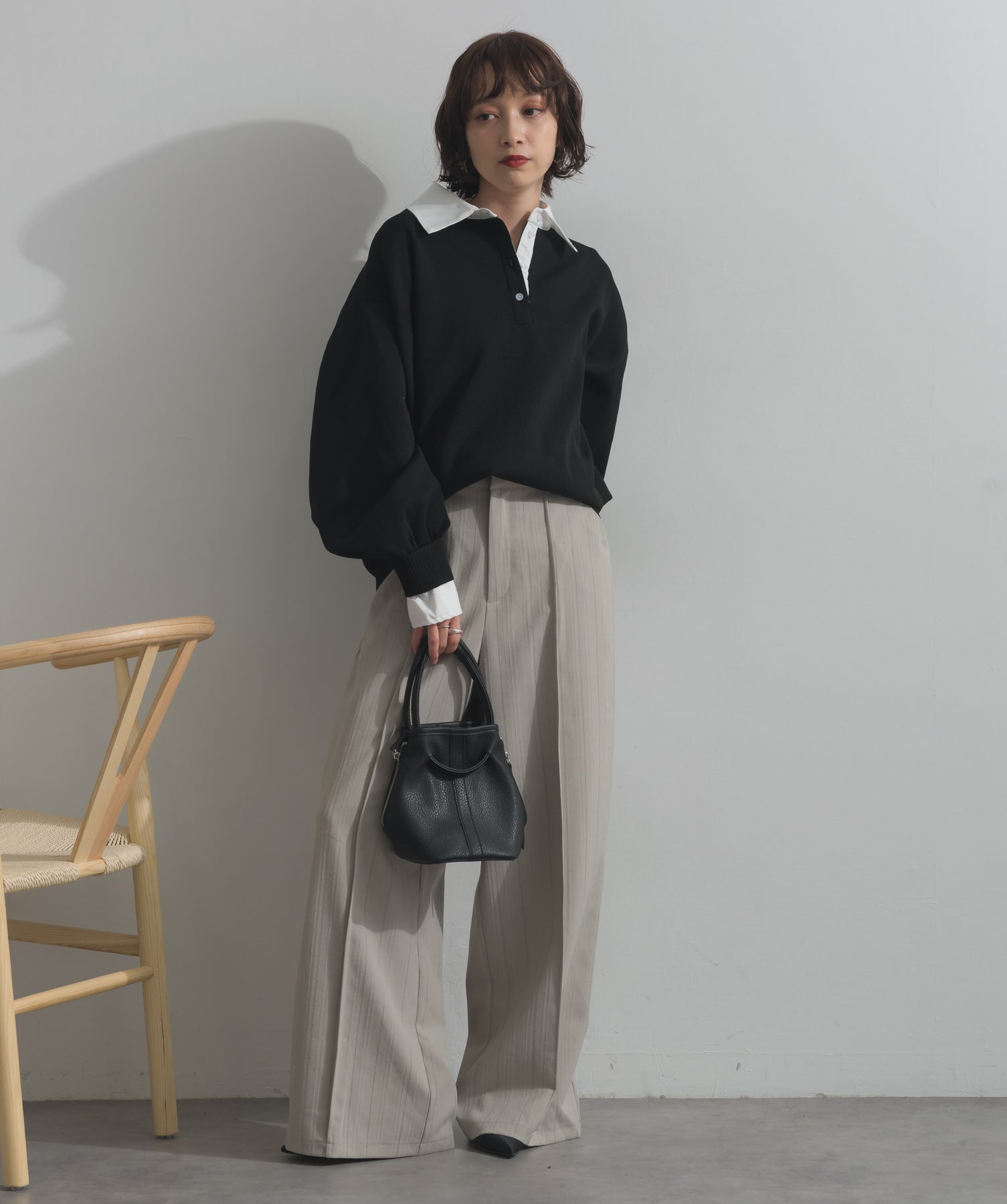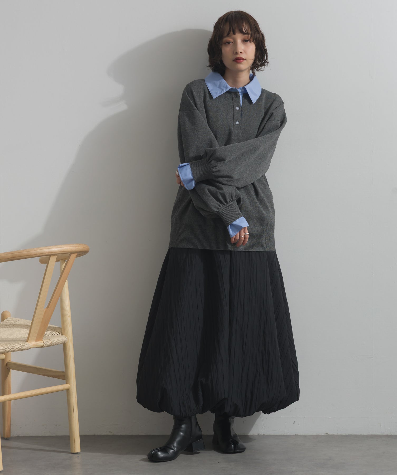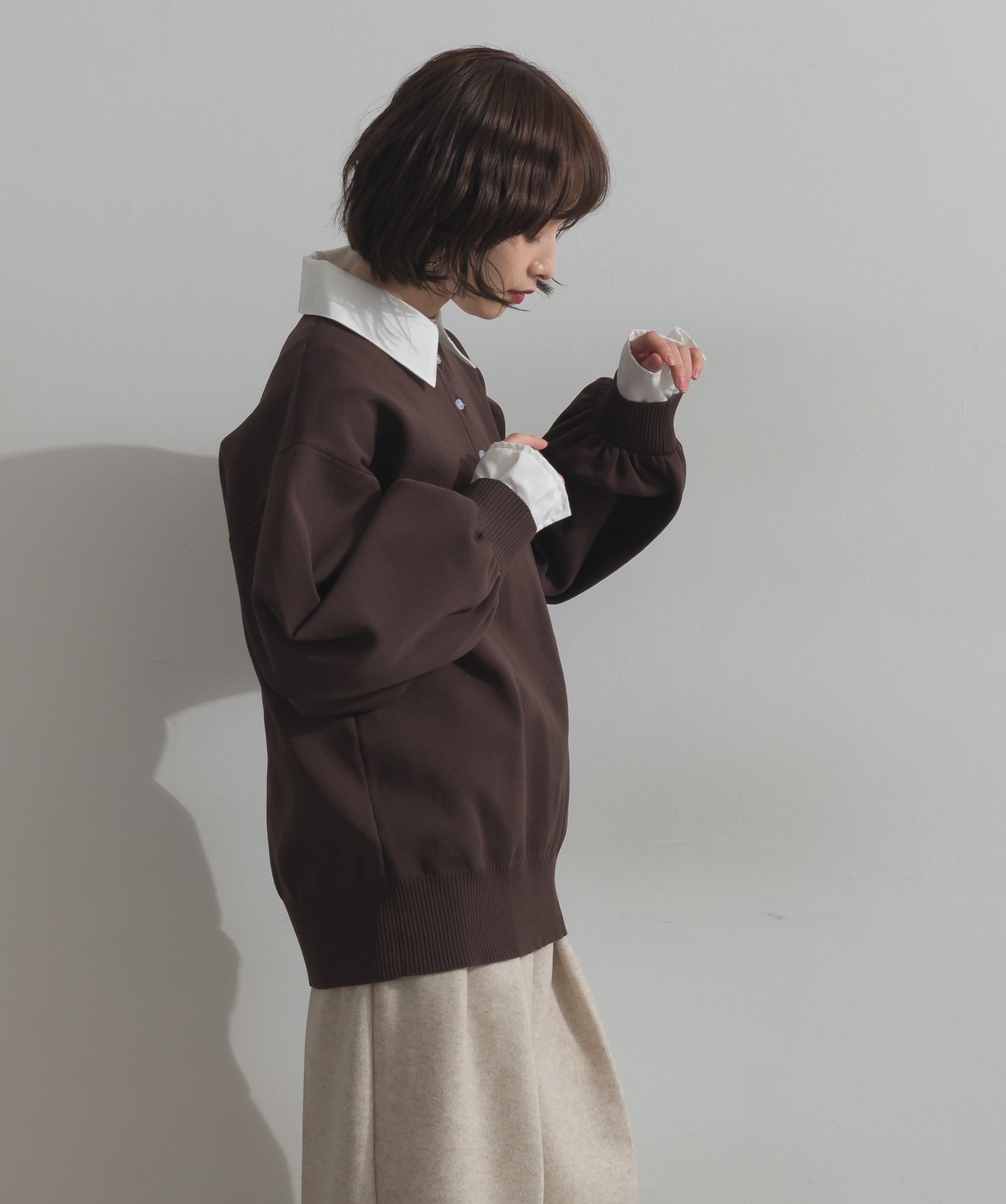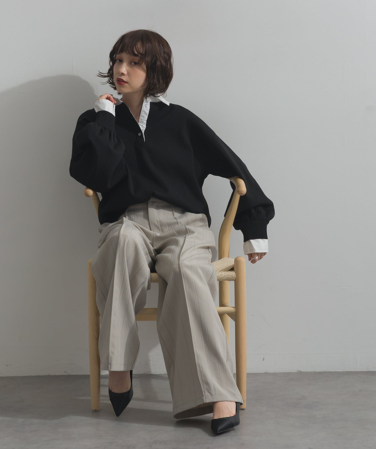 シャツをレイヤードしたようなデザインがポイントの襟付きポロトップス。レギュラーカラーを重ねたようなデザインが特徴で、シンプルに着るだけでもこなれた印象に仕上がります。袖口や裾はリブ仕立てでメリハリを効かせ、全体をすっきりと引き締めた印象に。トレンド感あるボリュームスリーブが女性らしさを引き立てます。カジュアルにもきれいめにも馴染む万能トップスです。