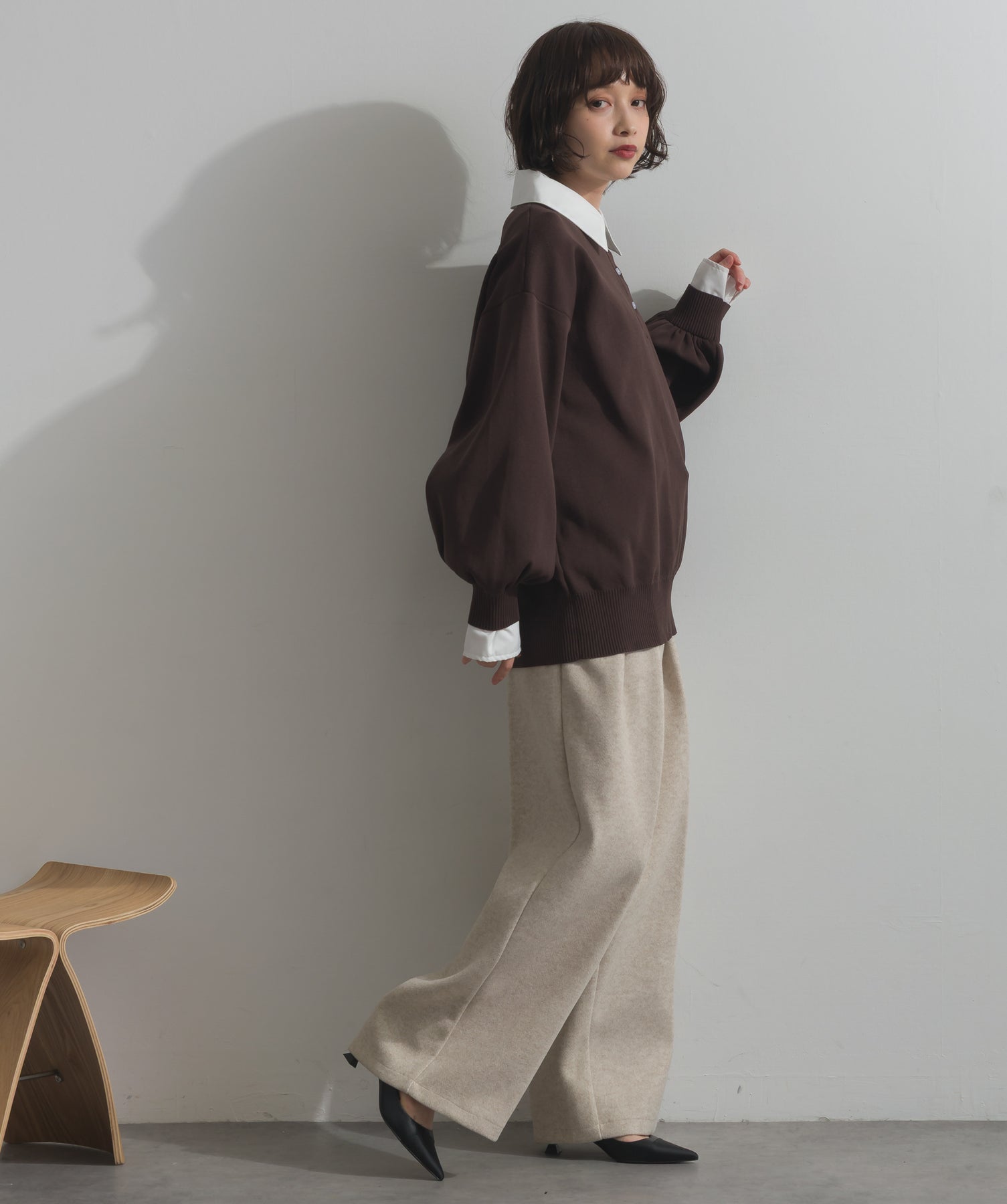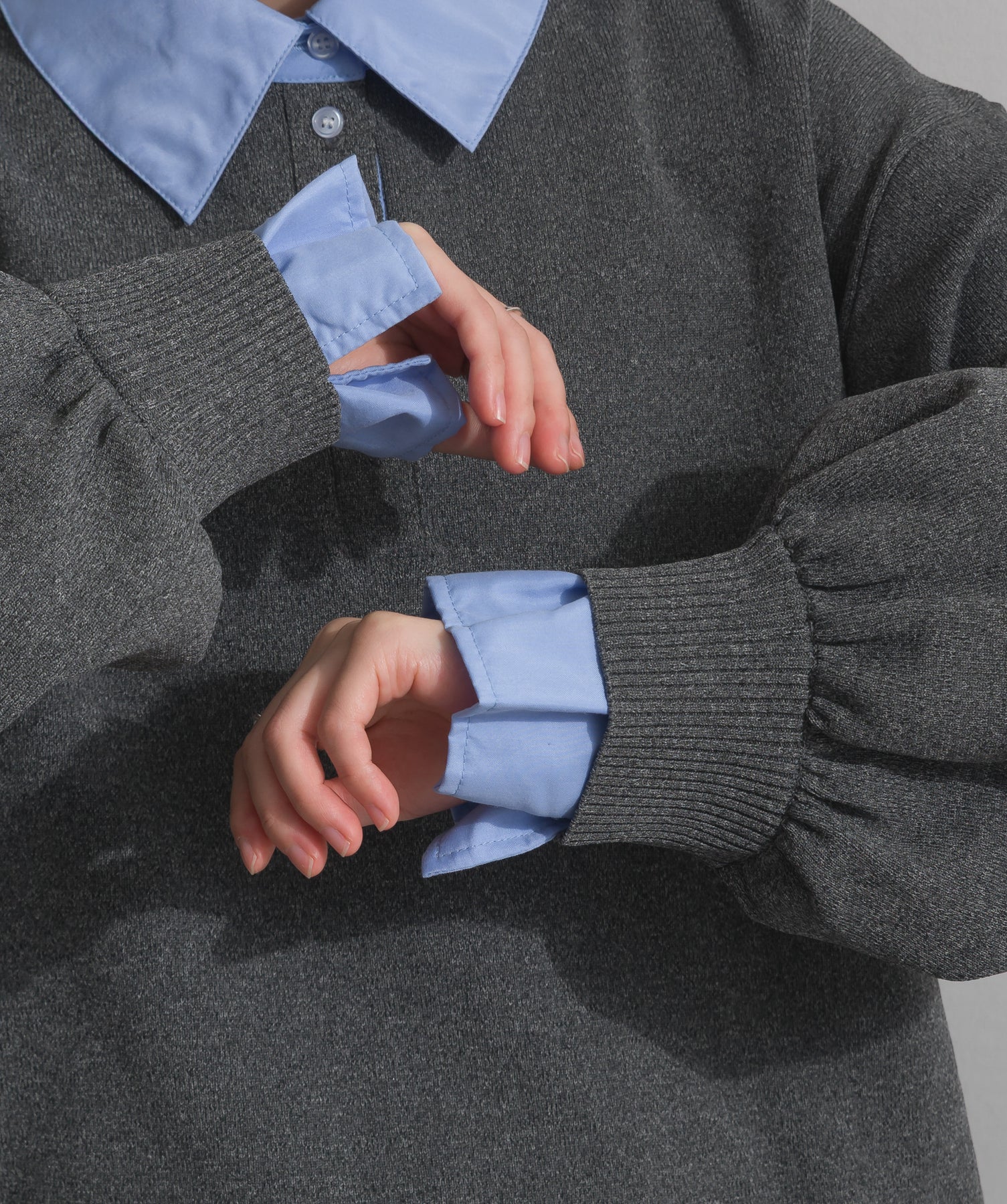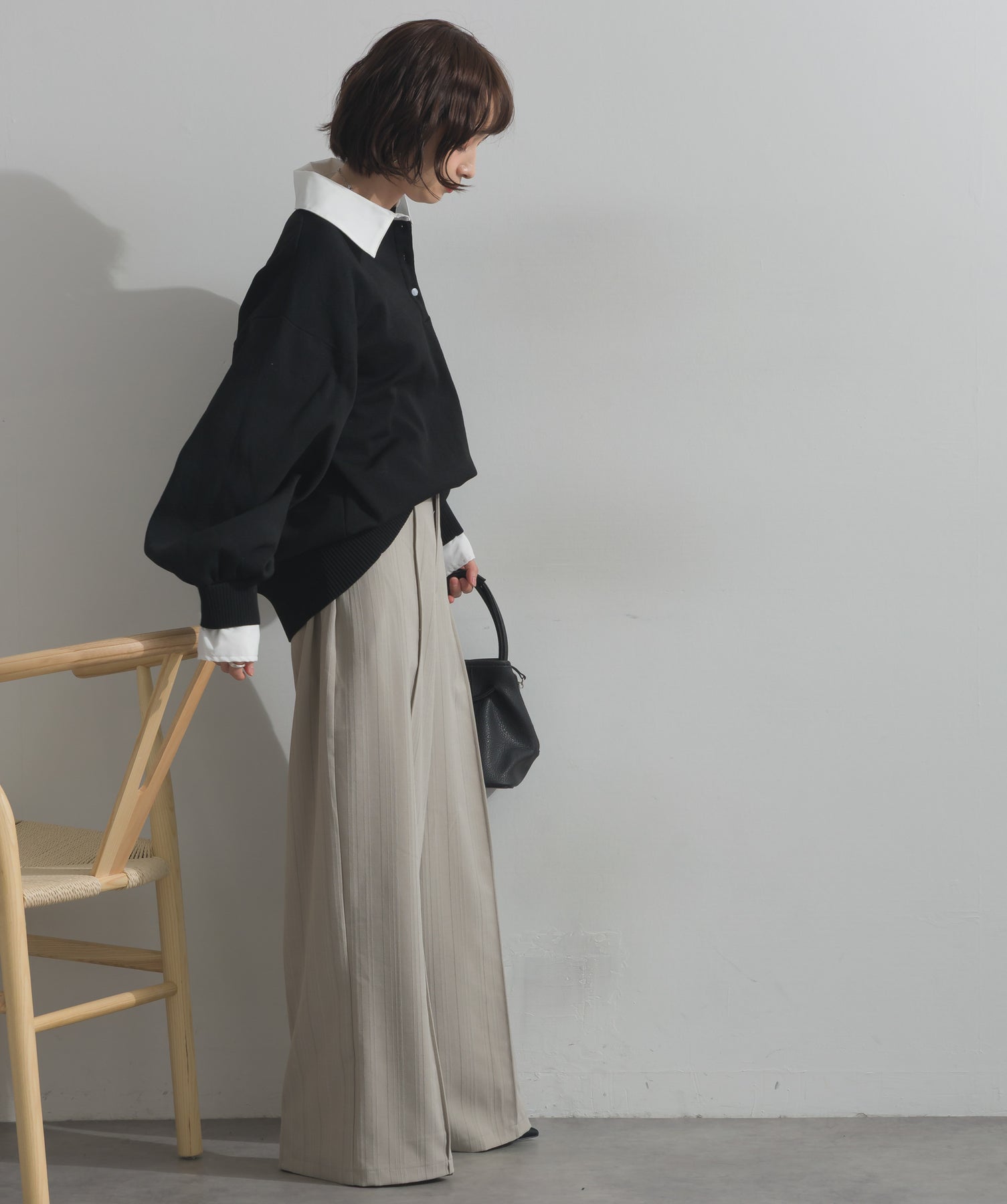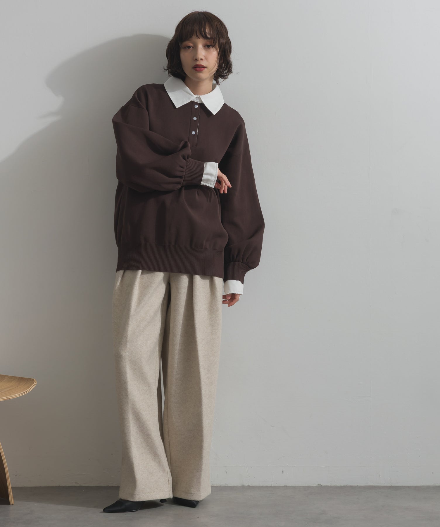シャツをレイヤードしたようなデザインがポイントの襟付きポロトップス。レギュラーカラーを重ねたようなデザインが特徴で、シンプルに着るだけでもこなれた印象に仕上がります。袖口や裾はリブ仕立てでメリハリを効かせ、全体をすっきりと引き締めた印象に。トレンド感あるボリュームスリーブが女性らしさを引き立てます。カジュアルにもきれいめにも馴染む万能トップスです。