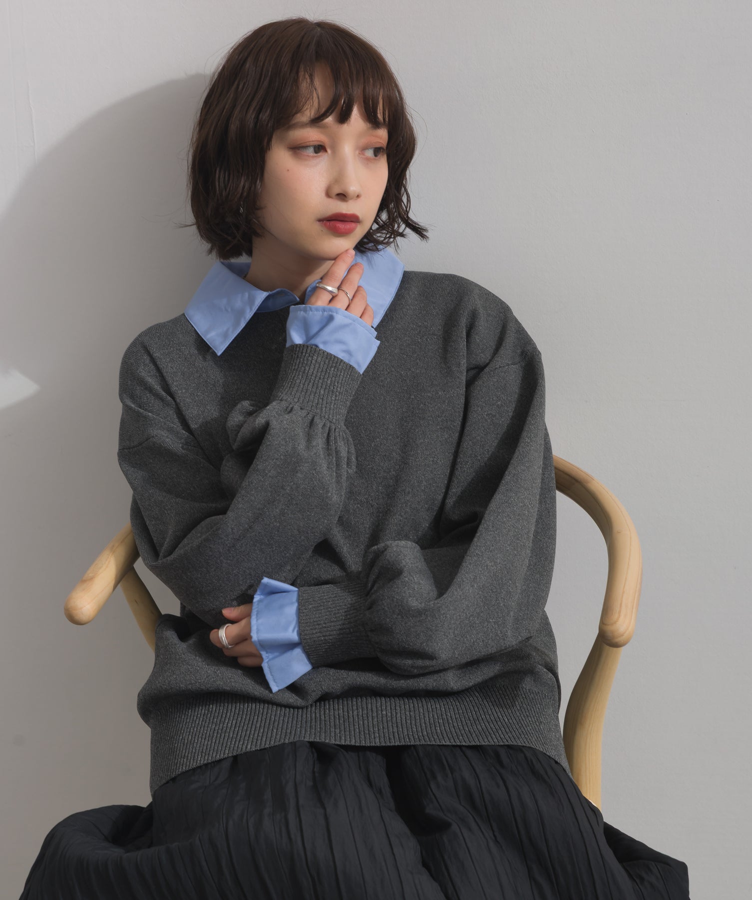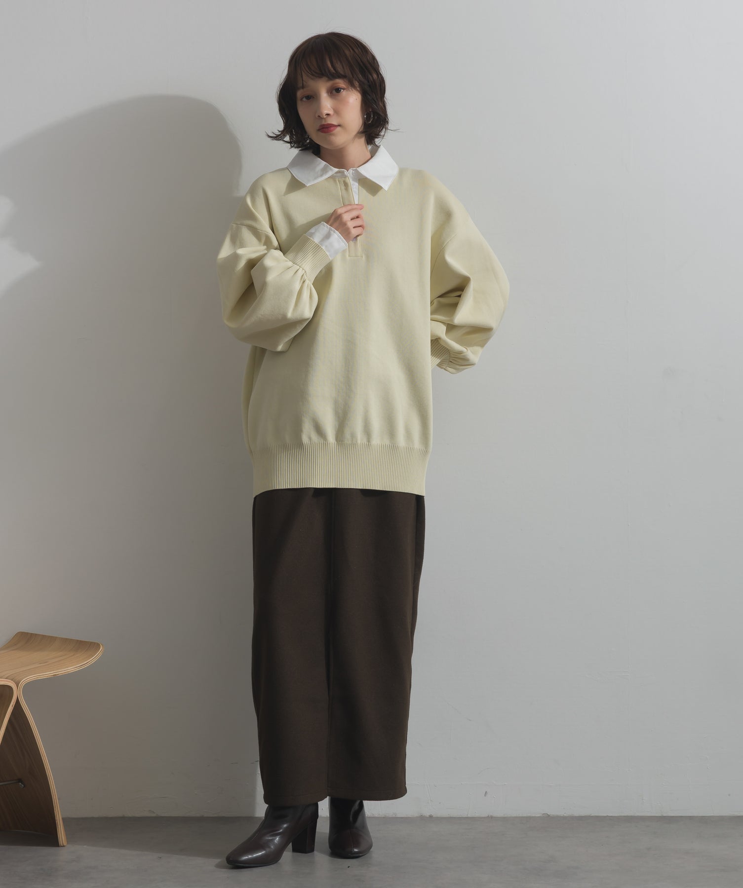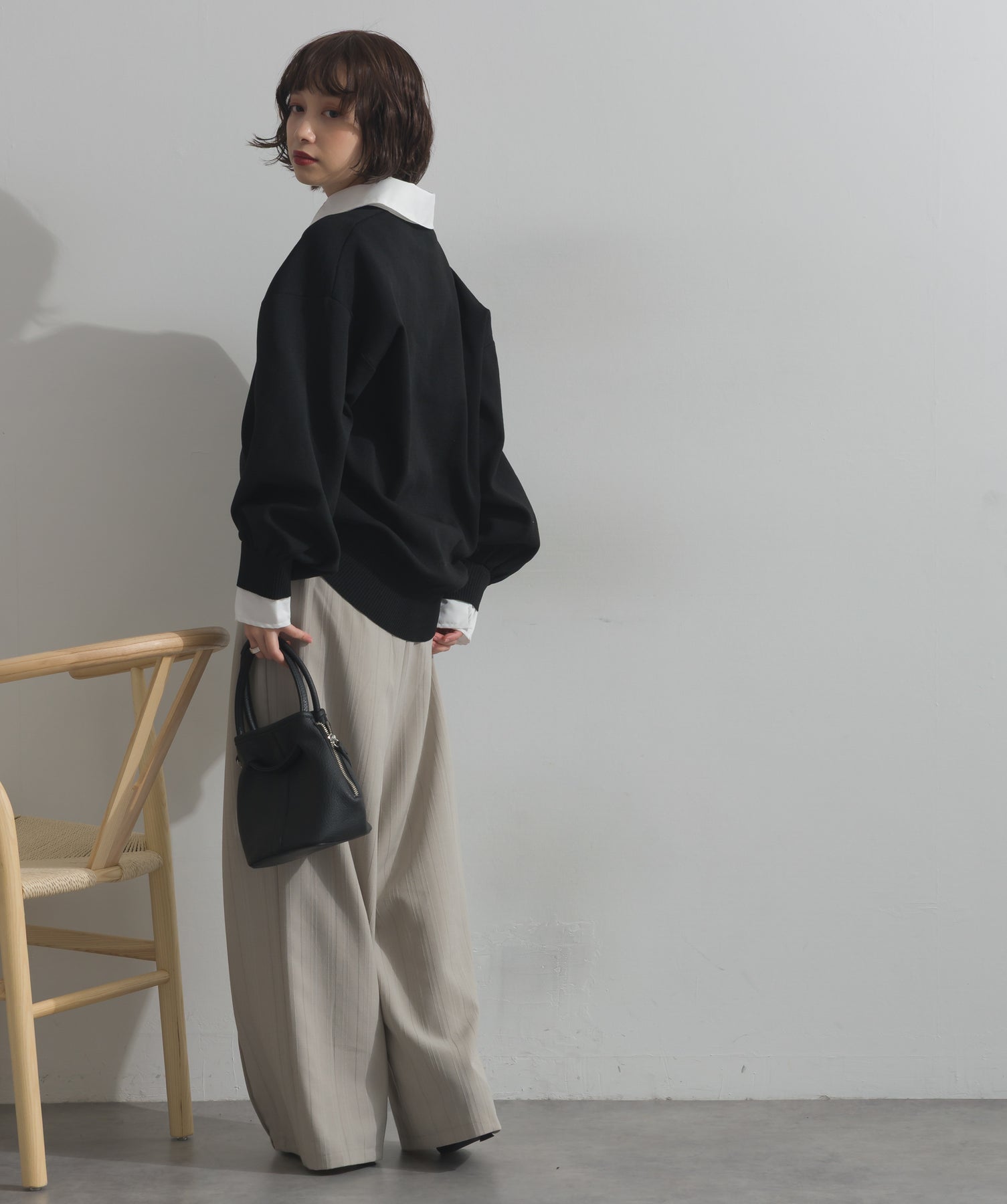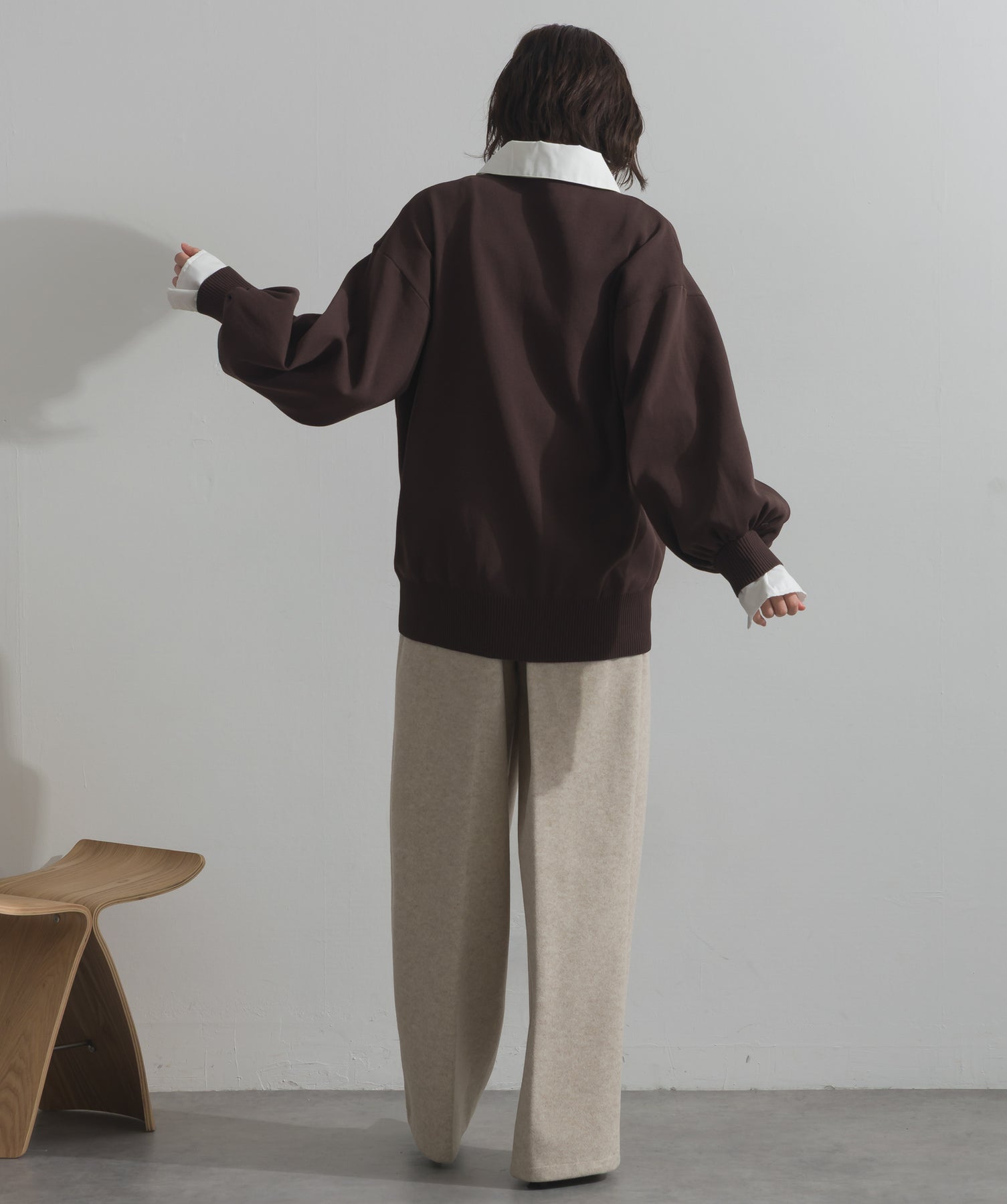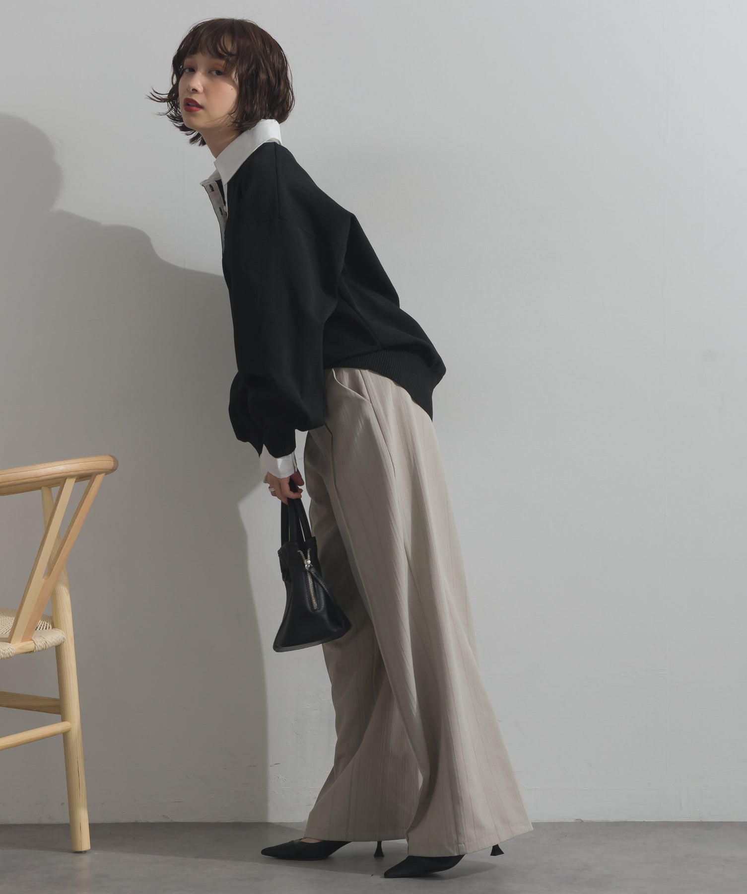 シャツをレイヤードしたようなデザインがポイントの襟付きポロトップス。レギュラーカラーを重ねたようなデザインが特徴で、シンプルに着るだけでもこなれた印象に仕上がります。袖口や裾はリブ仕立てでメリハリを効かせ、全体をすっきりと引き締めた印象に。トレンド感あるボリュームスリーブが女性らしさを引き立てます。カジュアルにもきれいめにも馴染む万能トップスです。