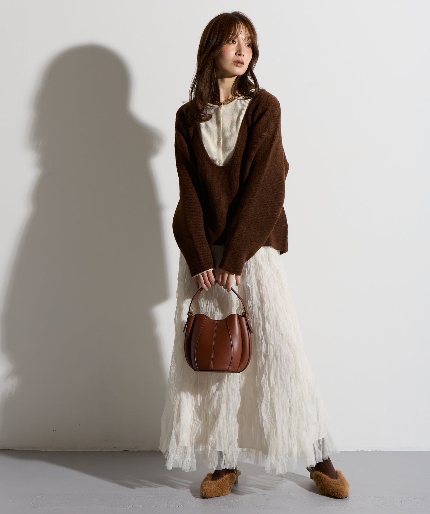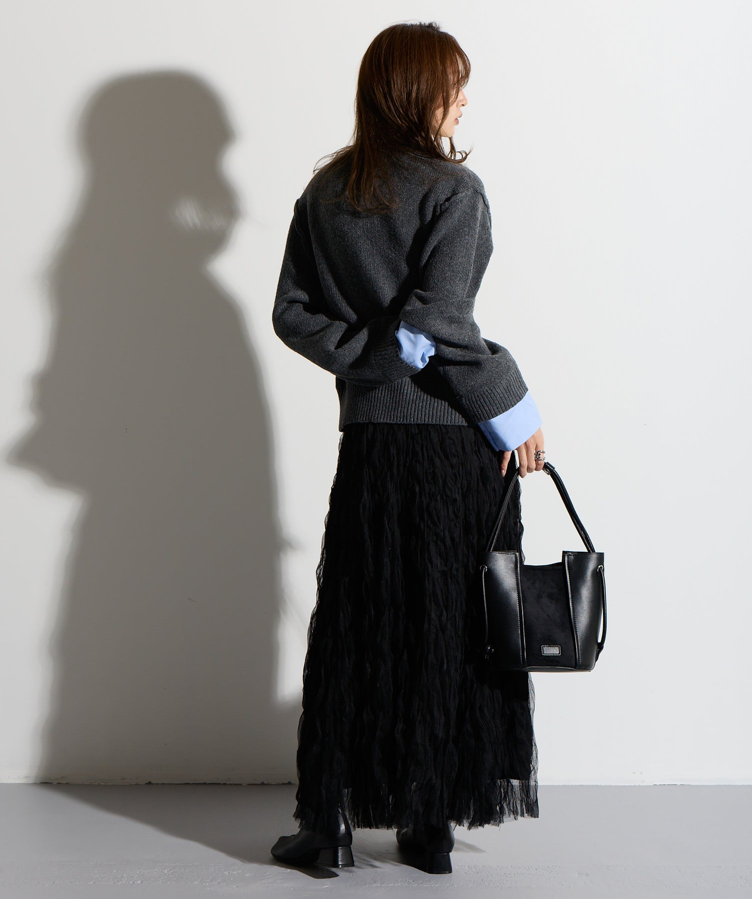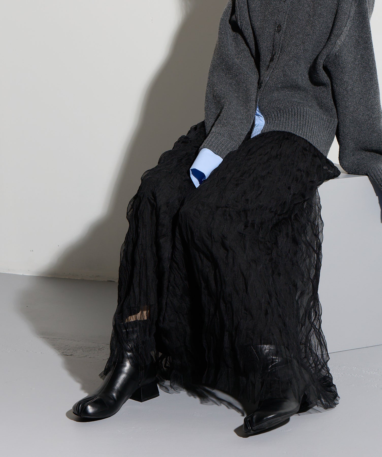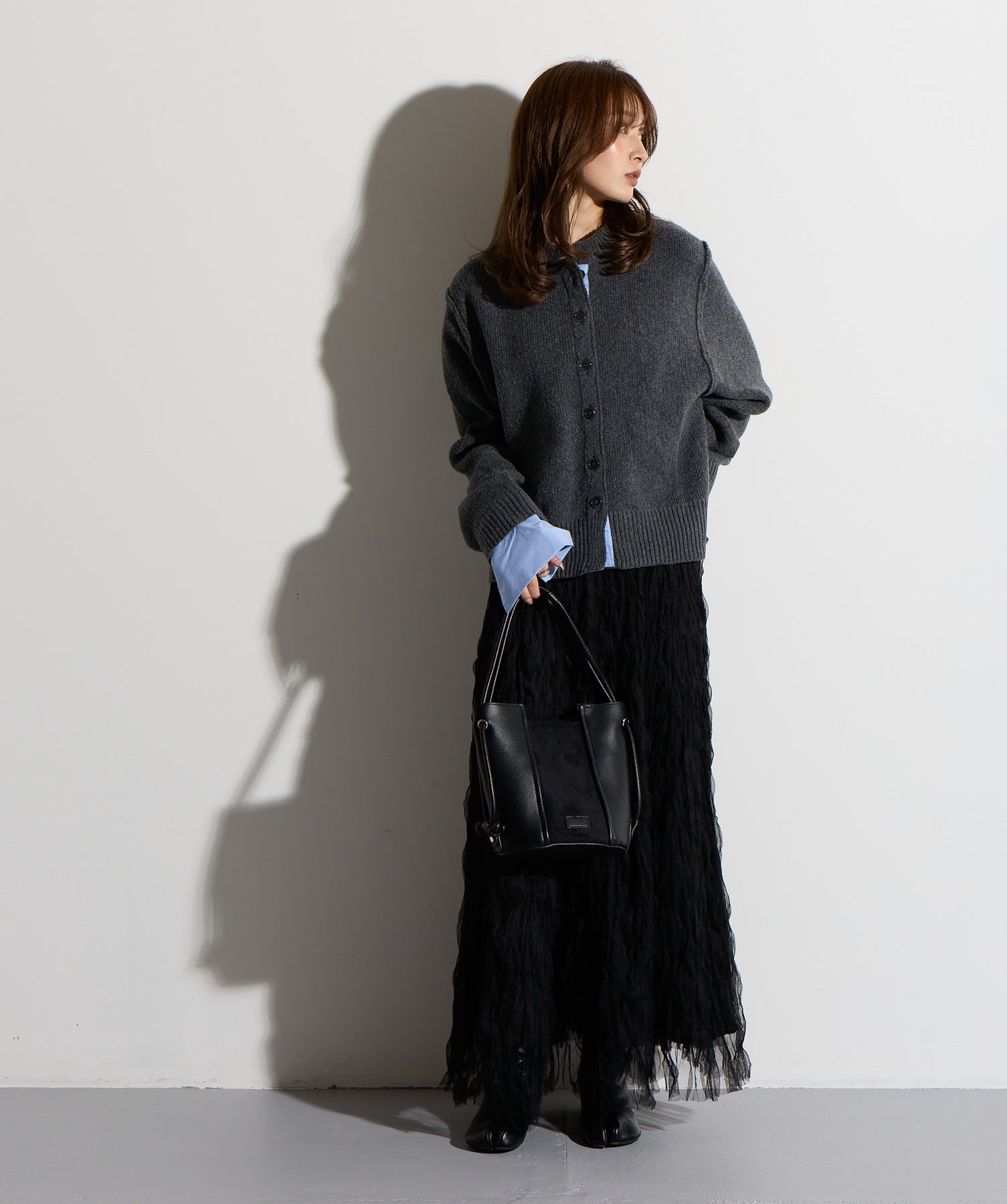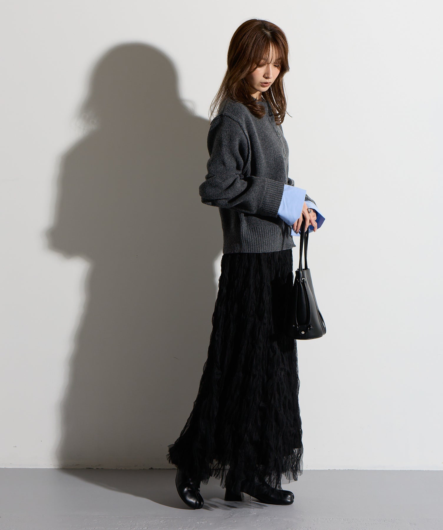 揺れ感も空気感も纏う、唯一無二の存在感。ドラマティックなワッシャースカート。-material-軽やかで透け感のあるワッシャーレース素材を贅沢に使用。柔らかなチュールに波打つような凹凸感をプラスすることで、表情豊かで動きのある仕上がりに。裏地付きで透けすぎず、1枚で安心して着用いただけます。-design-ウエストから裾にかけてふんわりと広がるフレアシルエットが、歩くたびに揺れて目を惹くデザイン。シンプルなトップスと合わせるだけでスタイリングが決まる主役級の1枚。ウエストは総ゴム仕様でストレスフリーな穿き心地も魅力。スニーカーでカジュアルダウン、ヒールでレディに、と幅広い着こなしに対応します。