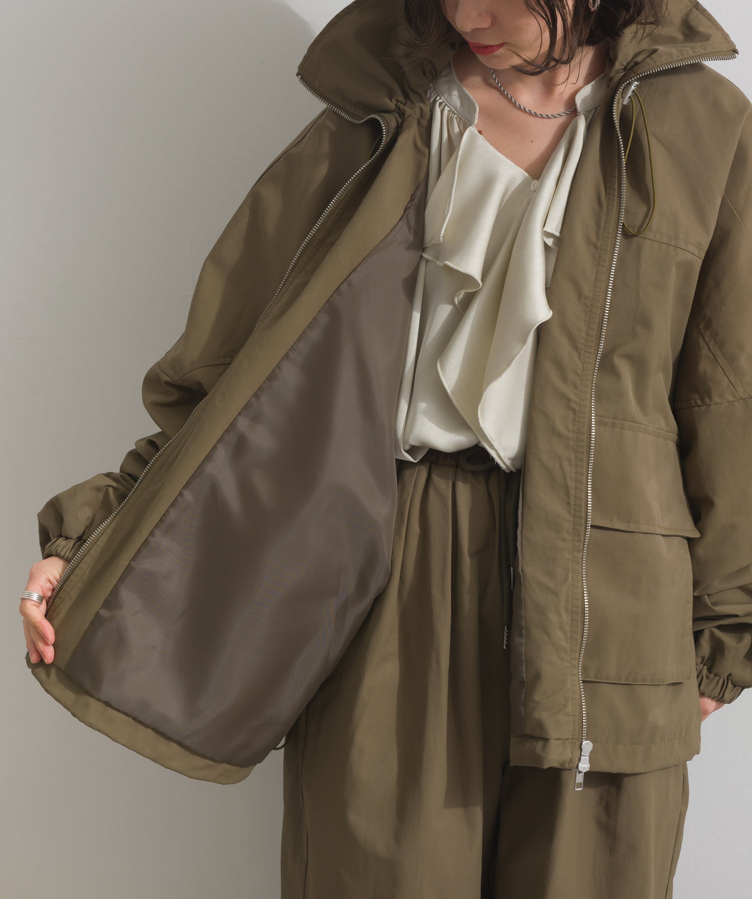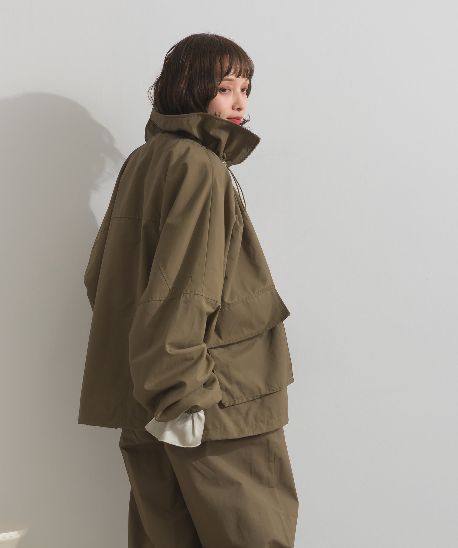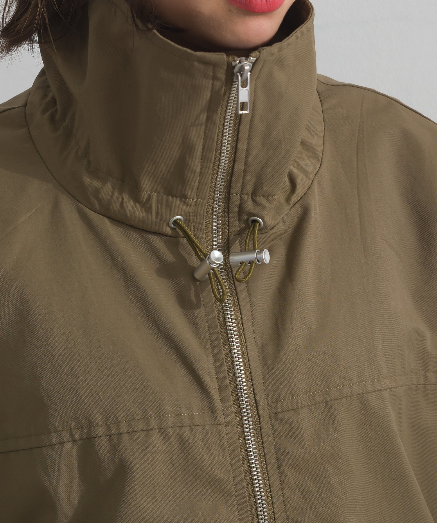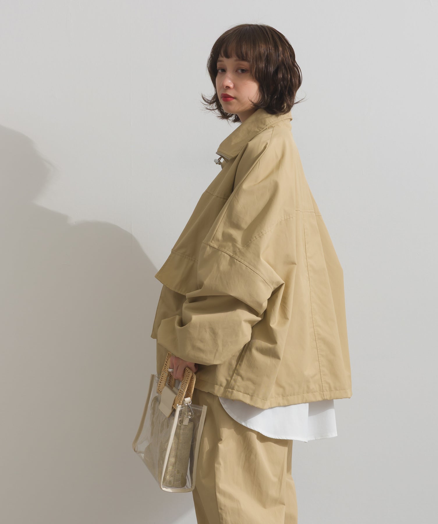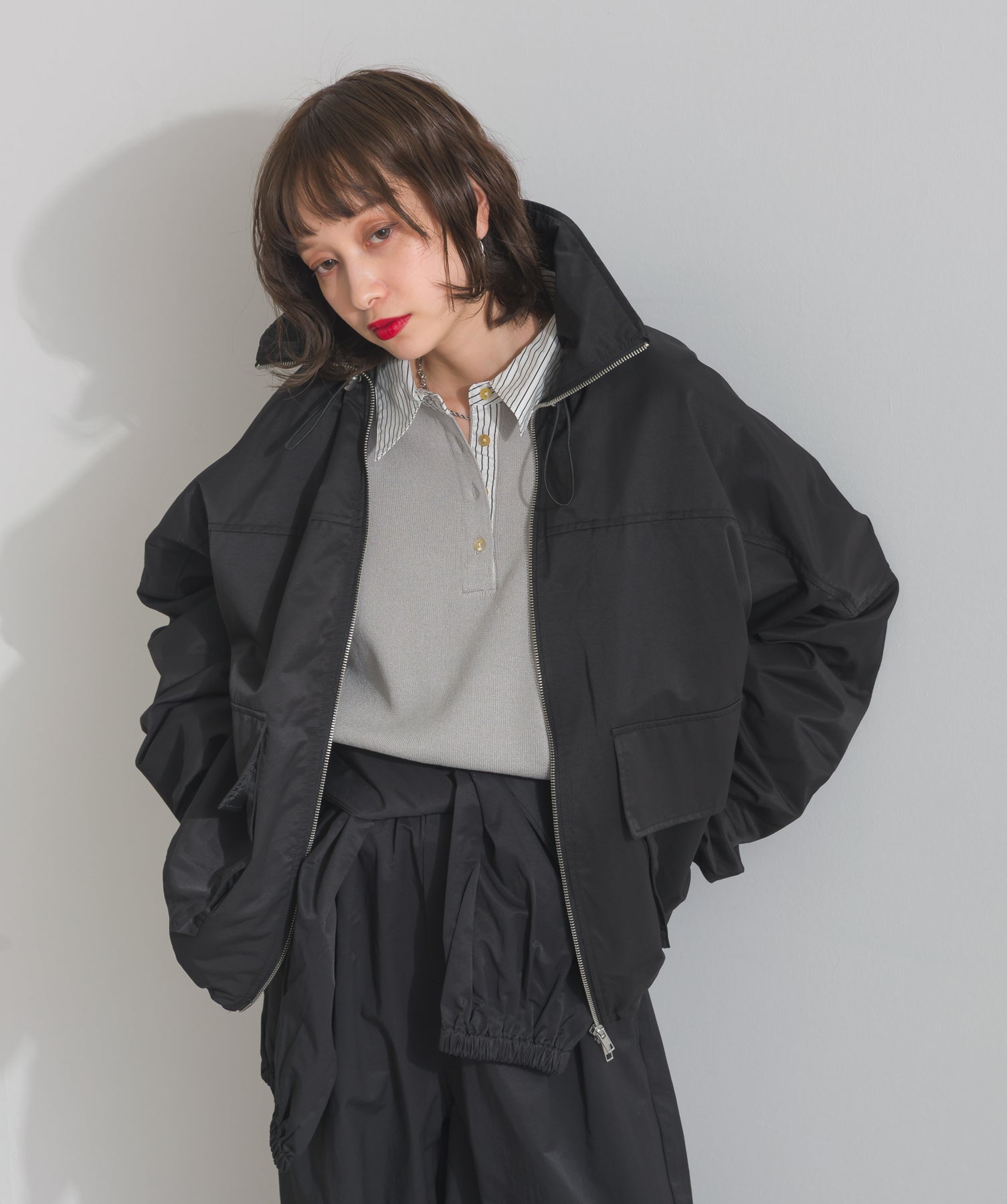 オーバーすぎない、抜けすぎない。ちょうどいい主役アウター。ミニマルなデザインにモードなボリューム感を添えた、大人のための軽アウター。-material-軽量ながらも程よいハリ感を持つ合繊ツイル素材を使用。ツイルならではの滑らかな表面感と、シワになりにくい高機能性が魅力。裏地なしでもしっかりとした風合いで、ロングシーズン活躍できる万能素材です。-design-首元を立たせてモードに、開けてラフに着られるスタンドネック仕様。ドロップショルダーとワイドスリーブでリラックス感を持たせながらも、裾のドローコードでシルエット調整が可能。フロントのフラップポケットが程よいアクセントとなり、アウトドアテイストを取り入れつつもタウンユースにフィットするデザイン。合わせるボトムスを選ばない丈感と、3色展開のニュアンスカラーで着回し力も抜群。