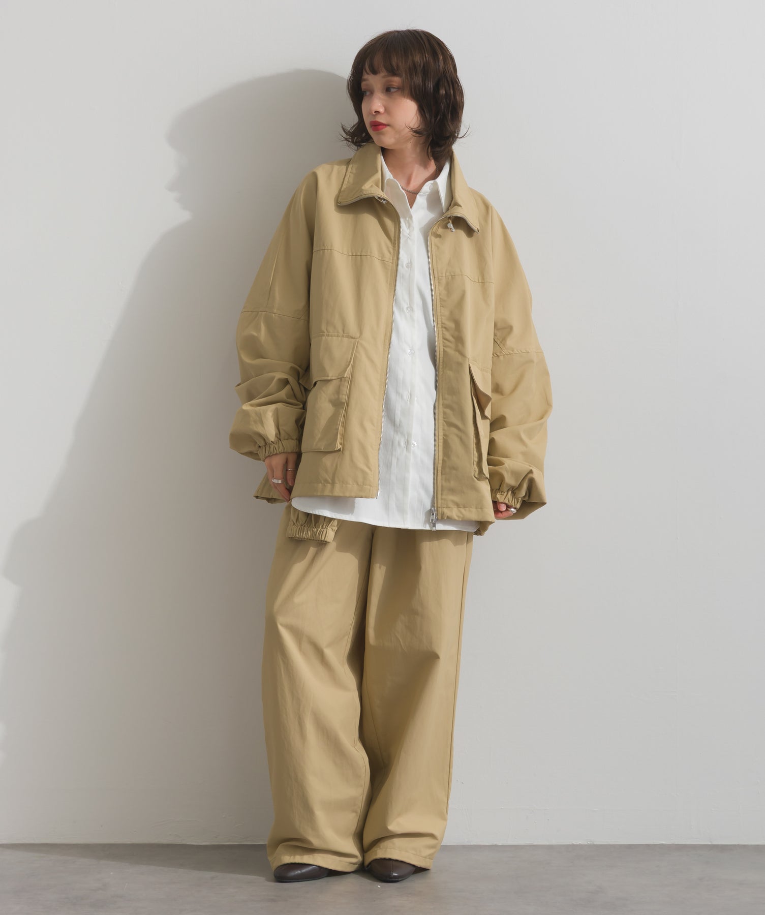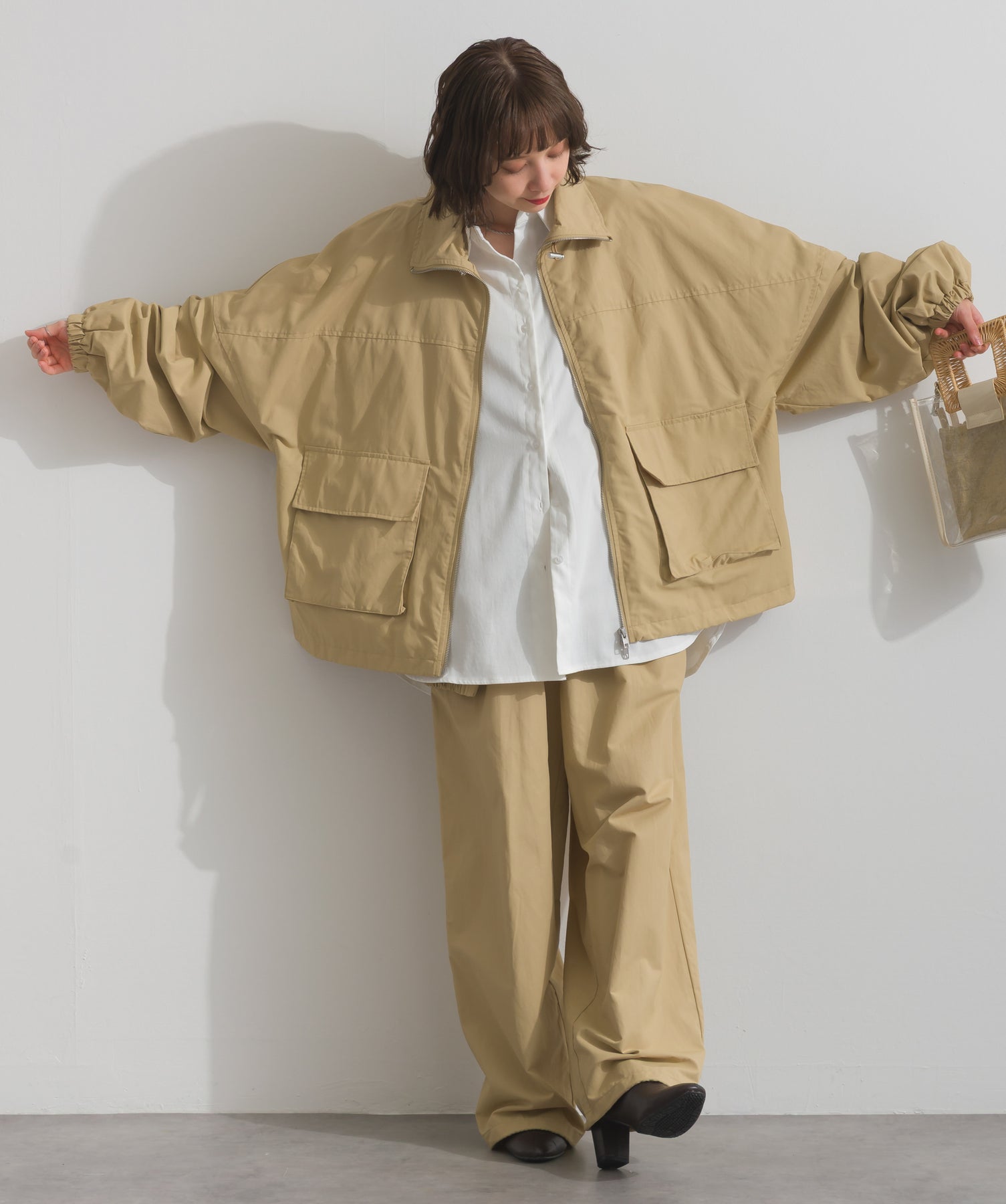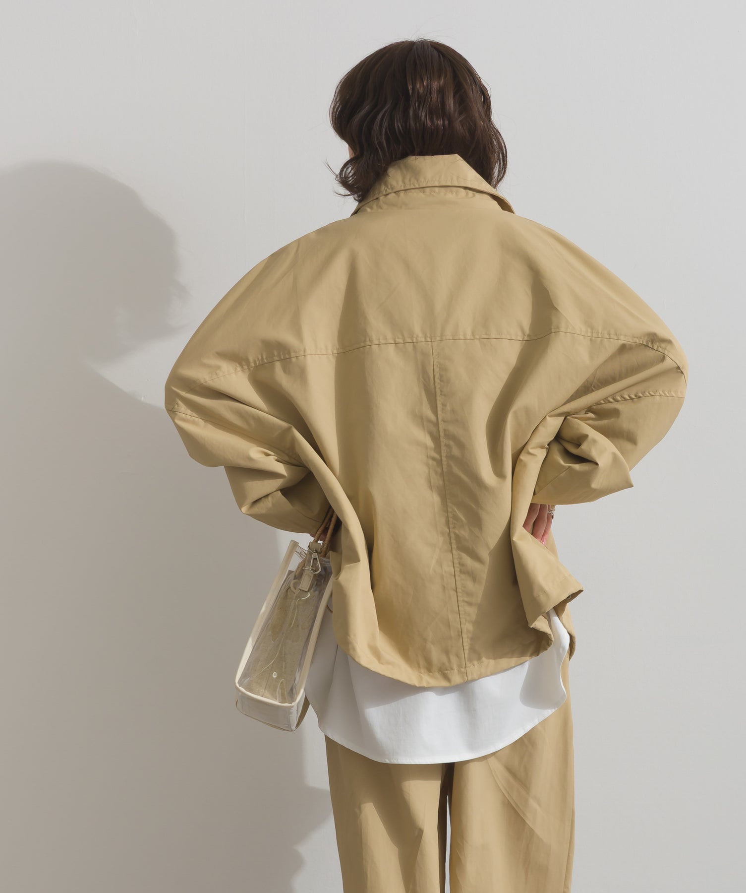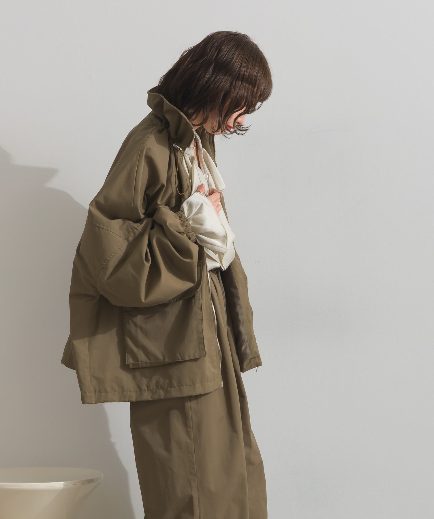 オーバーすぎない、抜けすぎない。ちょうどいい主役アウター。ミニマルなデザインにモードなボリューム感を添えた、大人のための軽アウター。-material-軽量ながらも程よいハリ感を持つ合繊ツイル素材を使用。ツイルならではの滑らかな表面感と、シワになりにくい高機能性が魅力。裏地なしでもしっかりとした風合いで、ロングシーズン活躍できる万能素材です。-design-首元を立たせてモードに、開けてラフに着られるスタンドネック仕様。ドロップショルダーとワイドスリーブでリラックス感を持たせながらも、裾のドローコードでシルエット調整が可能。フロントのフラップポケットが程よいアクセントとなり、アウトドアテイストを取り入れつつもタウンユースにフィットするデザイン。合わせるボトムスを選ばない丈感と、3色展開のニュアンスカラーで着回し力も抜群。