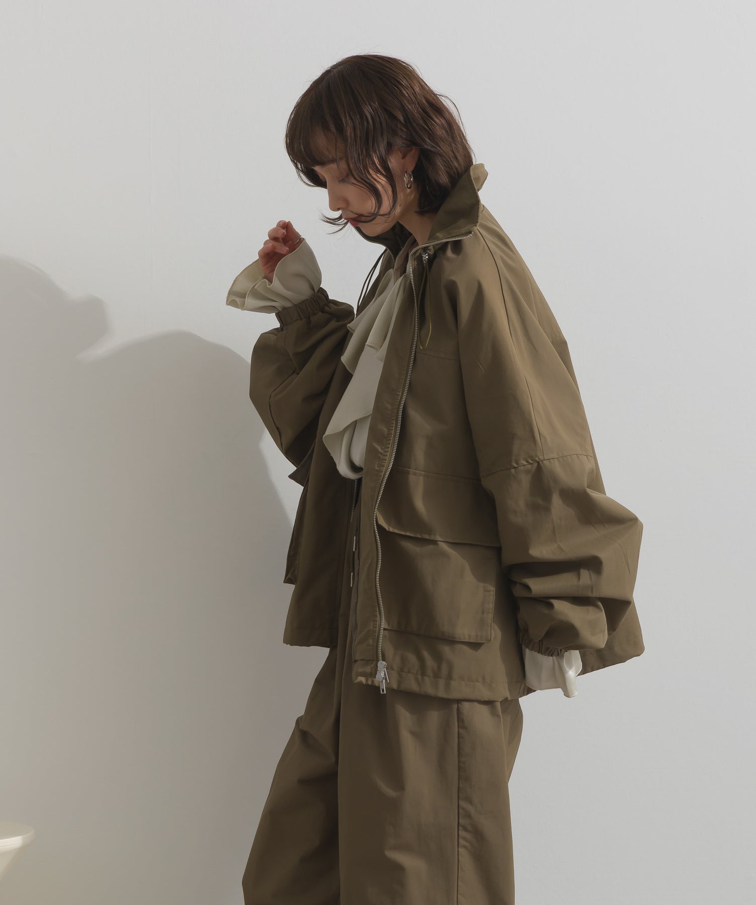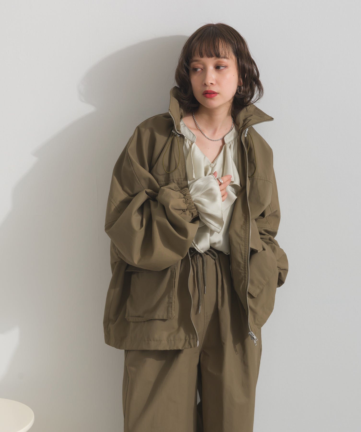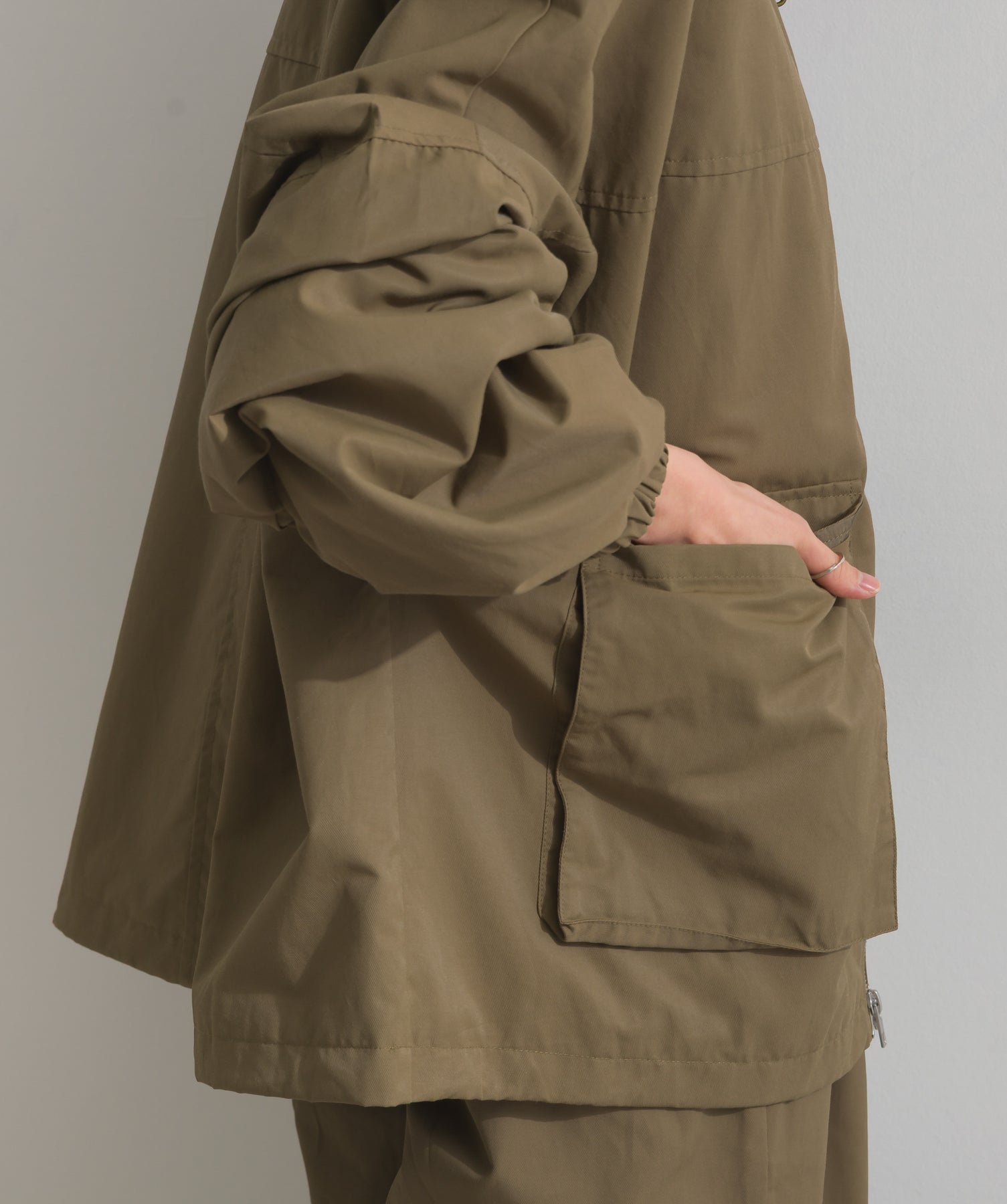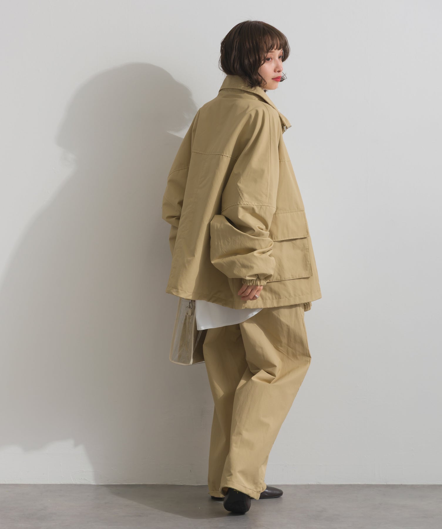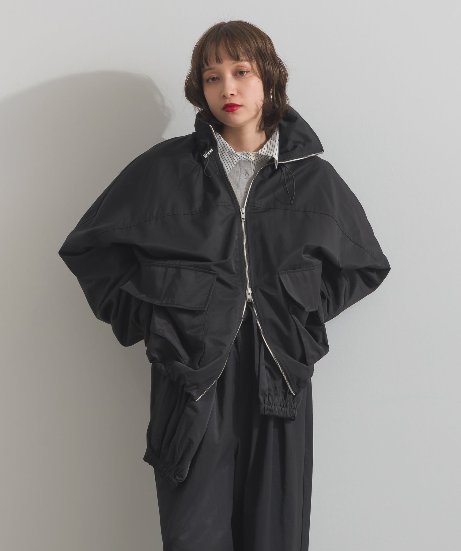 オーバーすぎない、抜けすぎない。ちょうどいい主役アウター。ミニマルなデザインにモードなボリューム感を添えた、大人のための軽アウター。-material-軽量ながらも程よいハリ感を持つ合繊ツイル素材を使用。ツイルならではの滑らかな表面感と、シワになりにくい高機能性が魅力。裏地なしでもしっかりとした風合いで、ロングシーズン活躍できる万能素材です。-design-首元を立たせてモードに、開けてラフに着られるスタンドネック仕様。ドロップショルダーとワイドスリーブでリラックス感を持たせながらも、裾のドローコードでシルエット調整が可能。フロントのフラップポケットが程よいアクセントとなり、アウトドアテイストを取り入れつつもタウンユースにフィットするデザイン。合わせるボトムスを選ばない丈感と、3色展開のニュアンスカラーで着回し力も抜群。