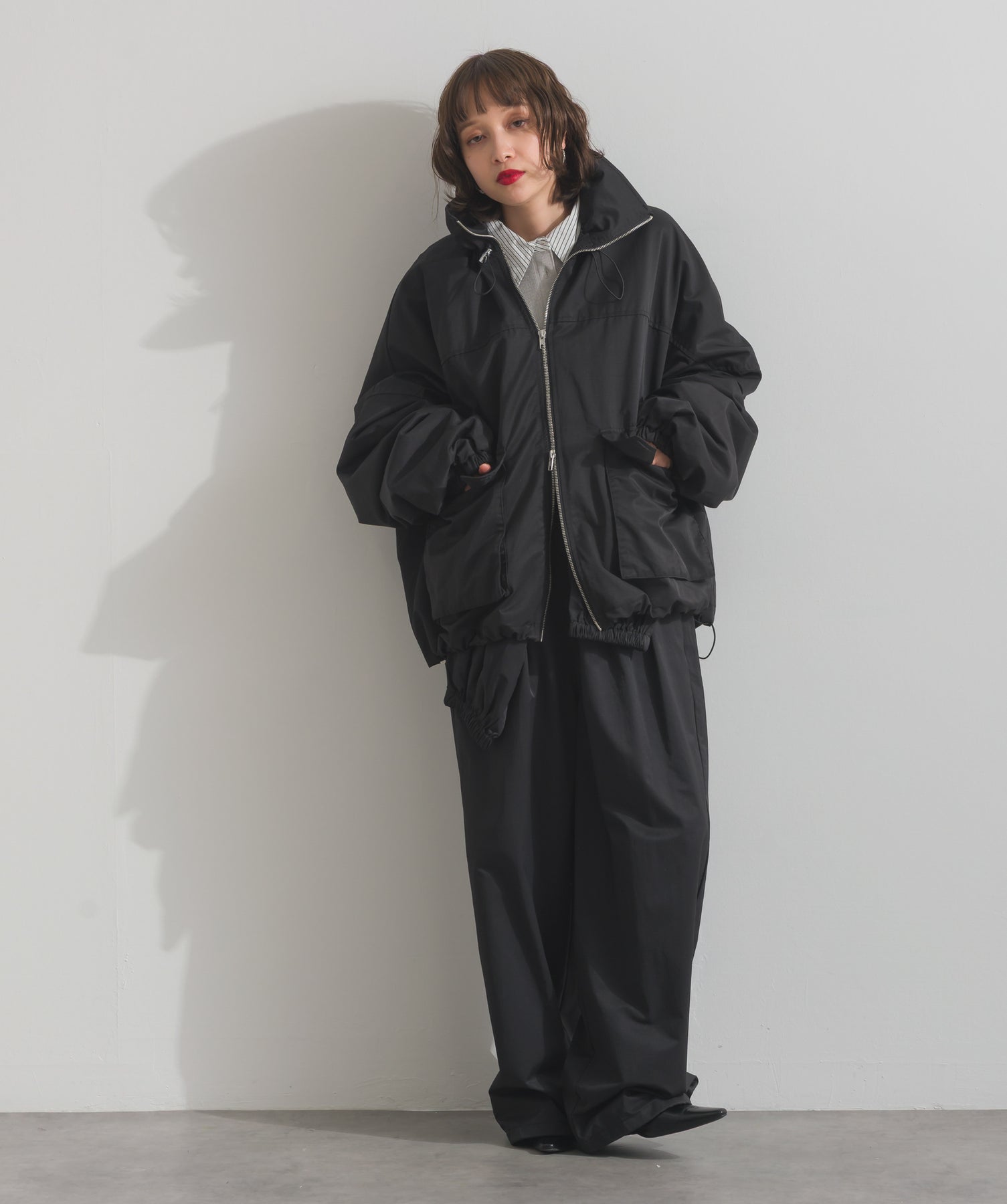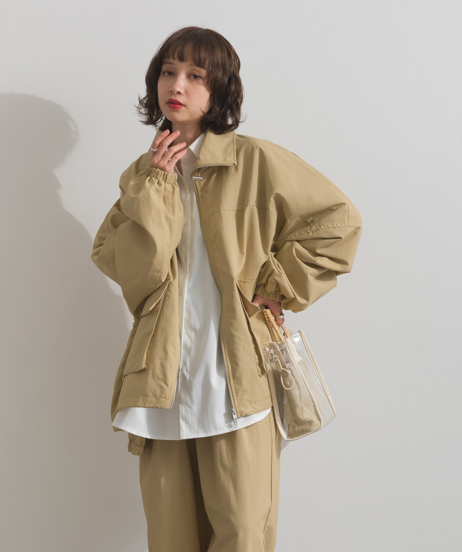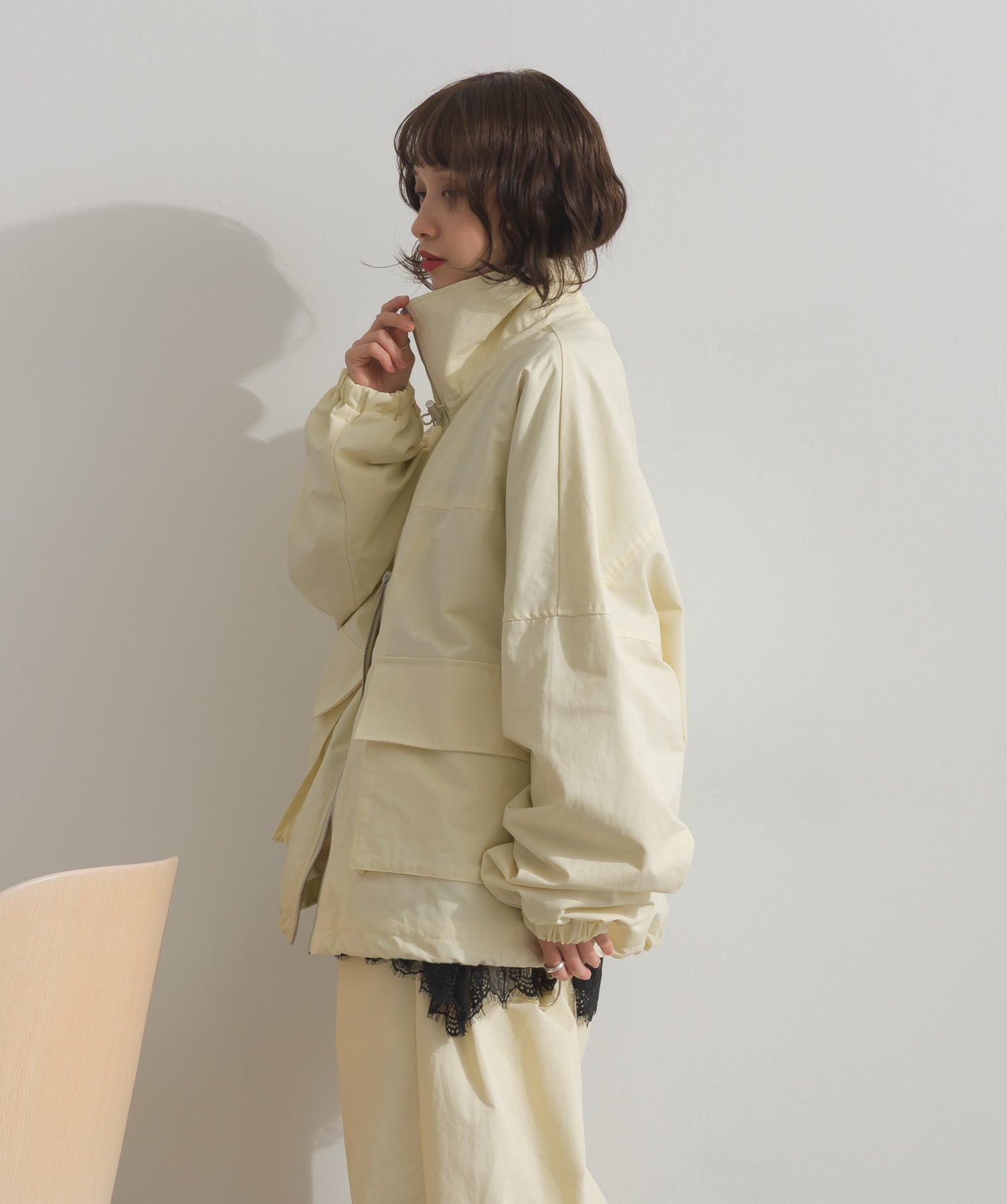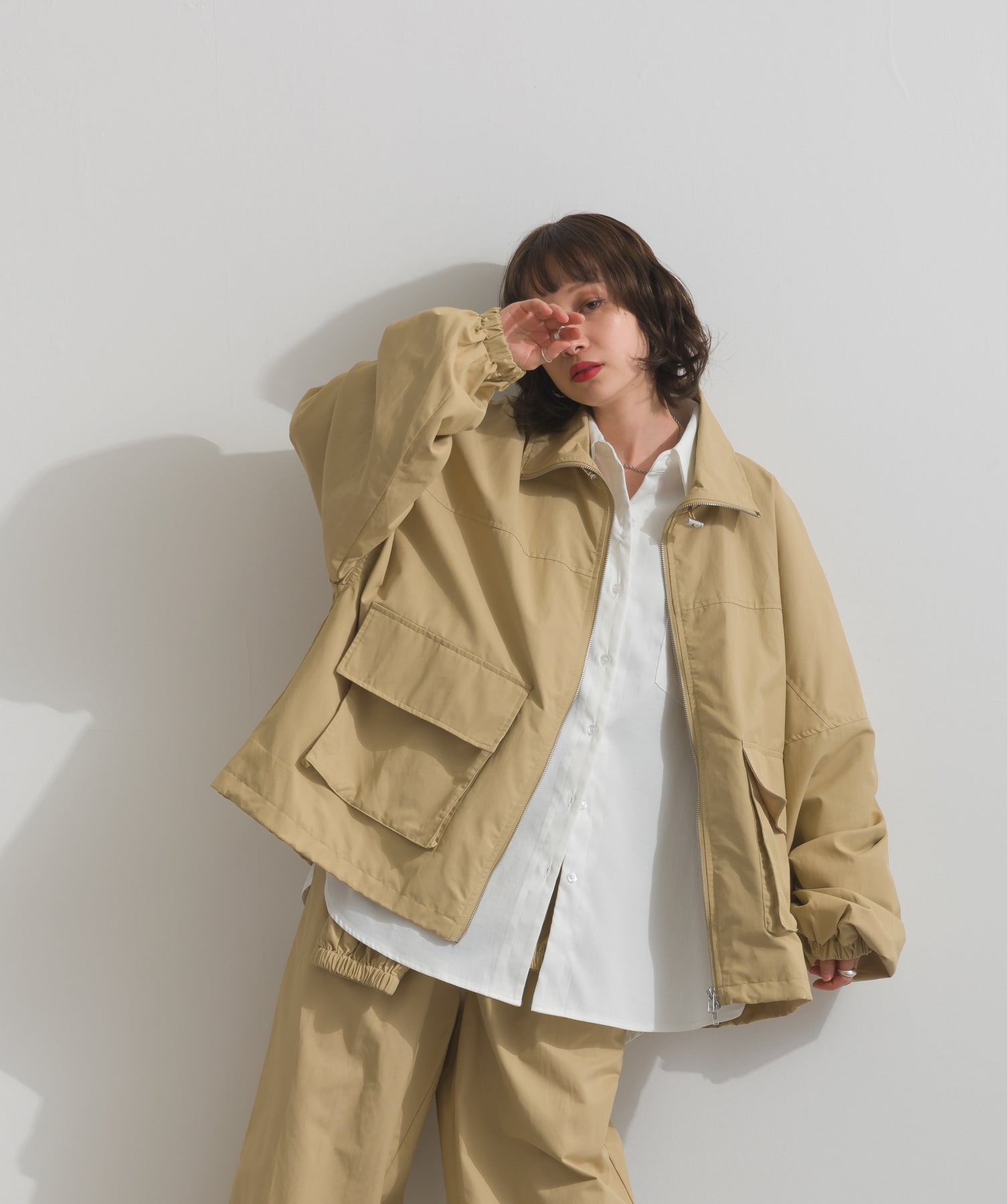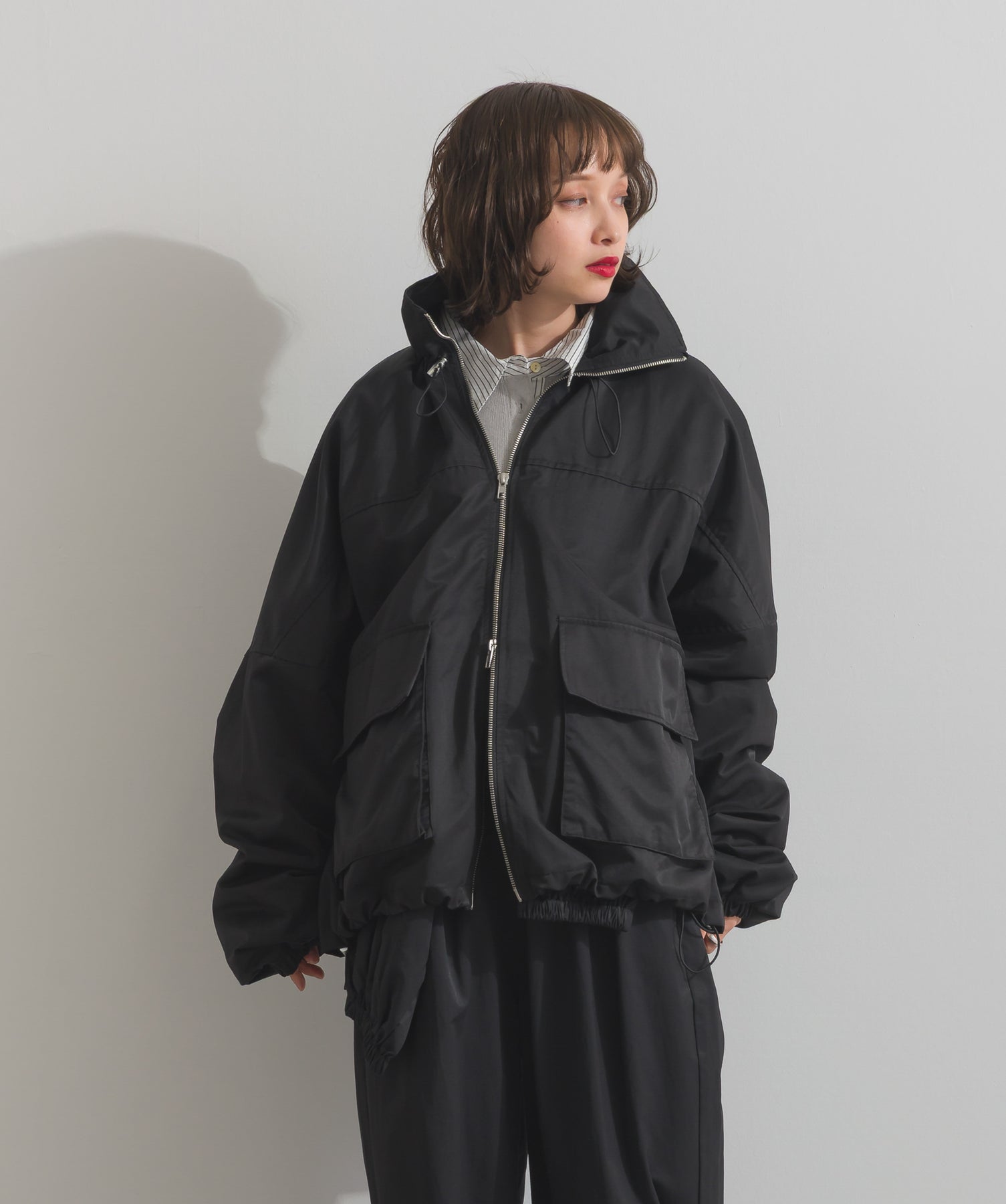 オーバーすぎない、抜けすぎない。ちょうどいい主役アウター。ミニマルなデザインにモードなボリューム感を添えた、大人のための軽アウター。-material-軽量ながらも程よいハリ感を持つ合繊ツイル素材を使用。ツイルならではの滑らかな表面感と、シワになりにくい高機能性が魅力。裏地なしでもしっかりとした風合いで、ロングシーズン活躍できる万能素材です。-design-首元を立たせてモードに、開けてラフに着られるスタンドネック仕様。ドロップショルダーとワイドスリーブでリラックス感を持たせながらも、裾のドローコードでシルエット調整が可能。フロントのフラップポケットが程よいアクセントとなり、アウトドアテイストを取り入れつつもタウンユースにフィットするデザイン。合わせるボトムスを選ばない丈感と、3色展開のニュアンスカラーで着回し力も抜群。