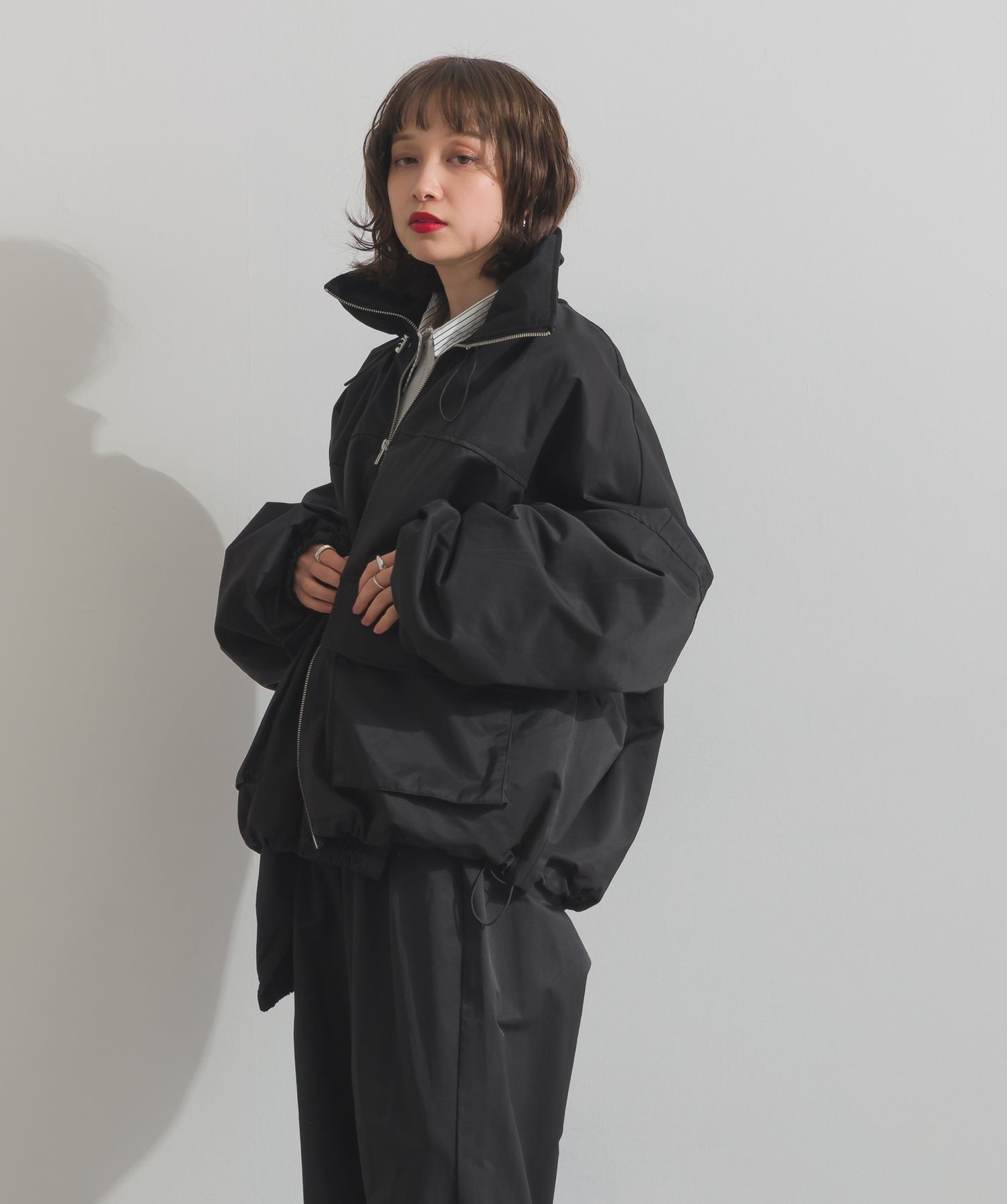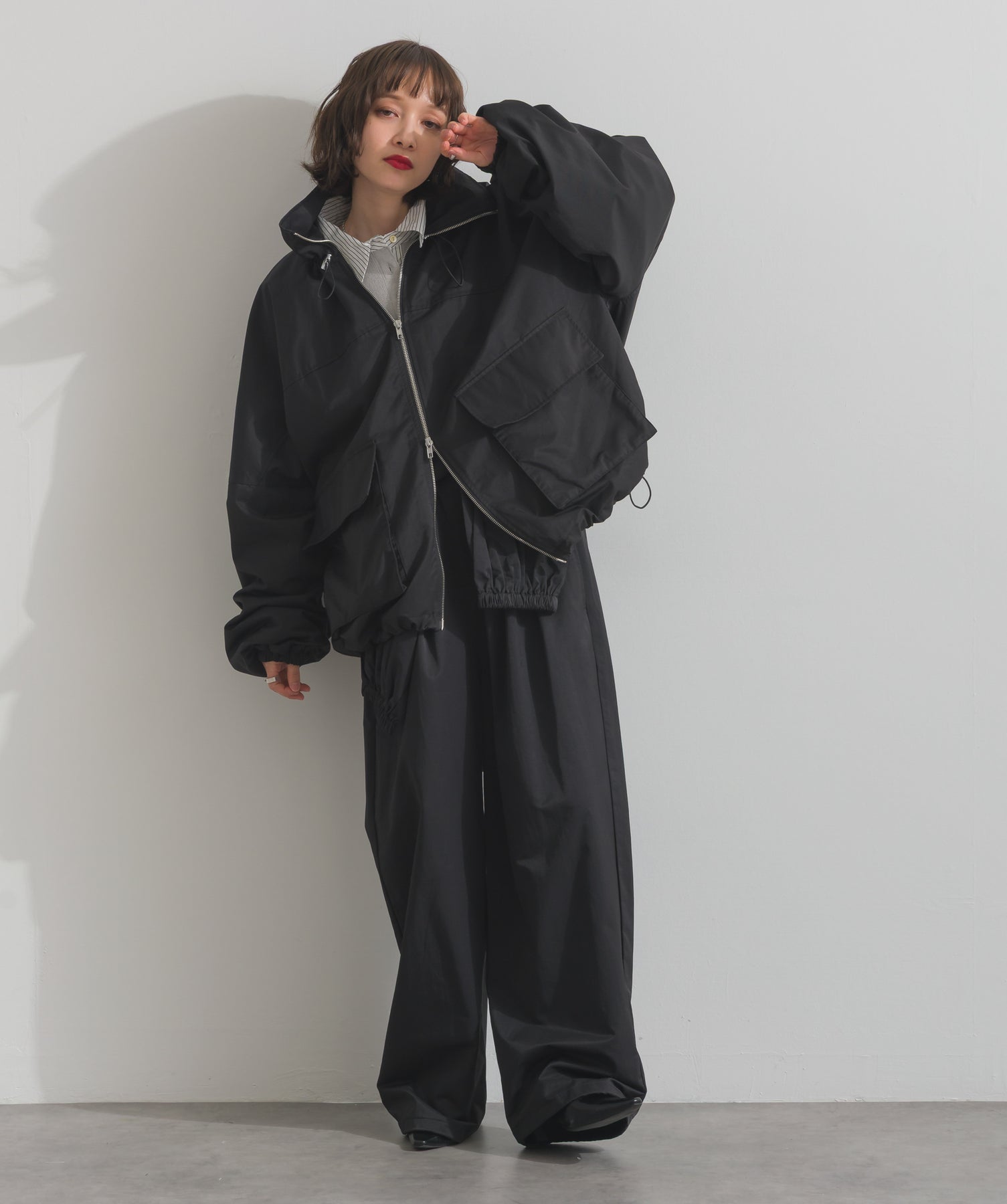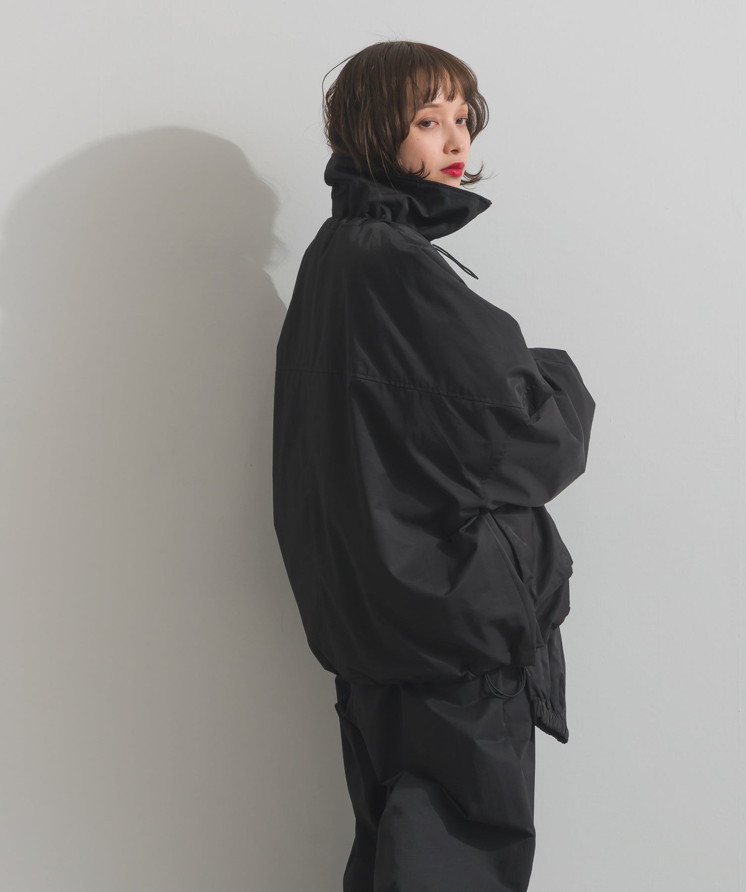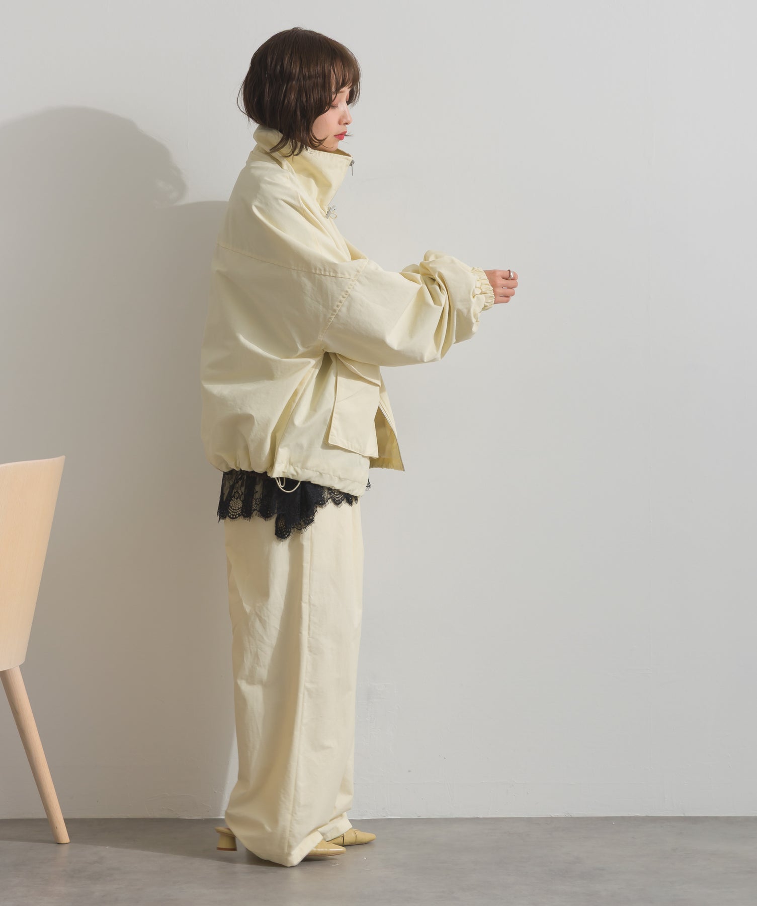 オーバーすぎない、抜けすぎない。ちょうどいい主役アウター。ミニマルなデザインにモードなボリューム感を添えた、大人のための軽アウター。-material-軽量ながらも程よいハリ感を持つ合繊ツイル素材を使用。ツイルならではの滑らかな表面感と、シワになりにくい高機能性が魅力。裏地なしでもしっかりとした風合いで、ロングシーズン活躍できる万能素材です。-design-首元を立たせてモードに、開けてラフに着られるスタンドネック仕様。ドロップショルダーとワイドスリーブでリラックス感を持たせながらも、裾のドローコードでシルエット調整が可能。フロントのフラップポケットが程よいアクセントとなり、アウトドアテイストを取り入れつつもタウンユースにフィットするデザイン。合わせるボトムスを選ばない丈感と、3色展開のニュアンスカラーで着回し力も抜群。
