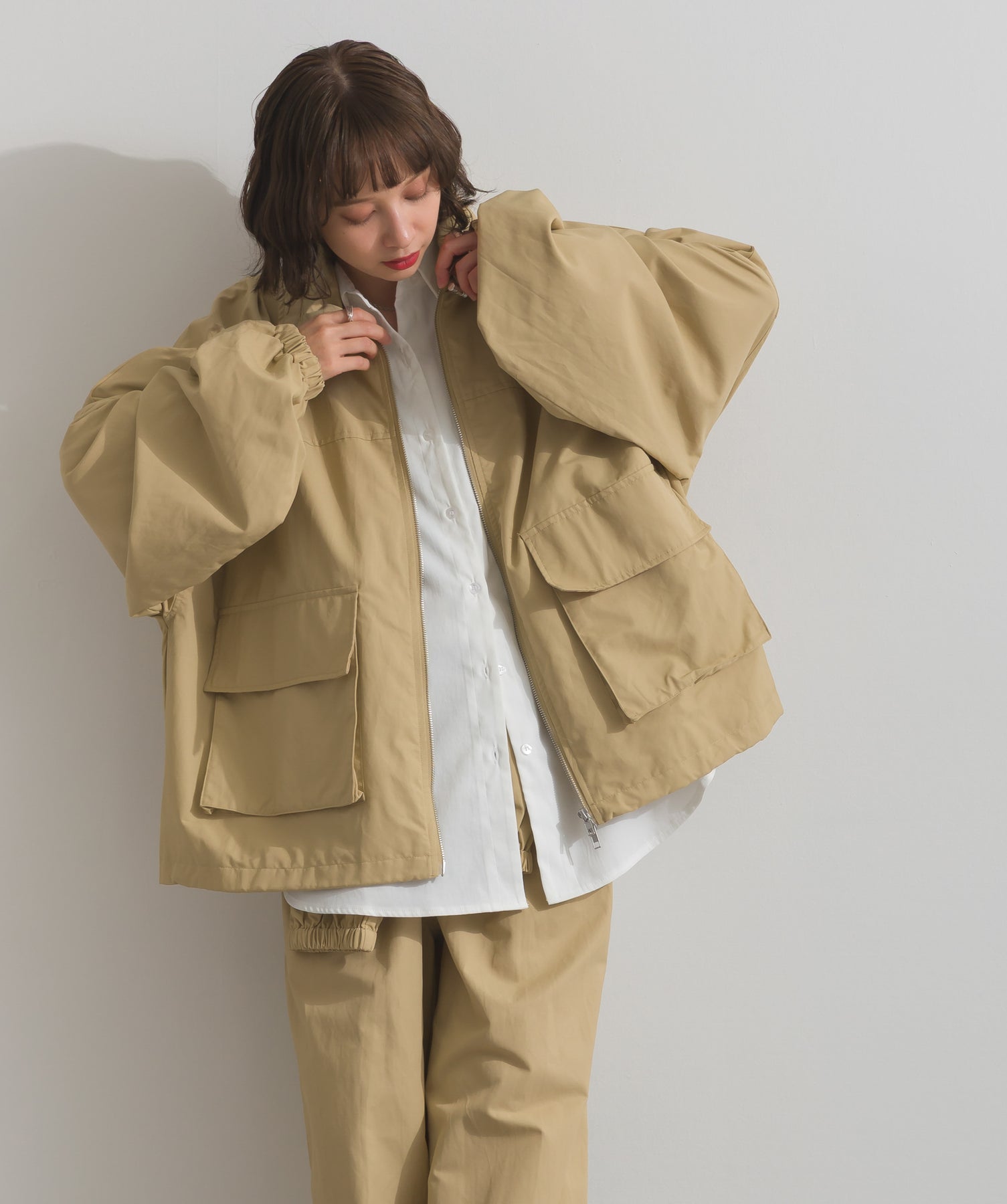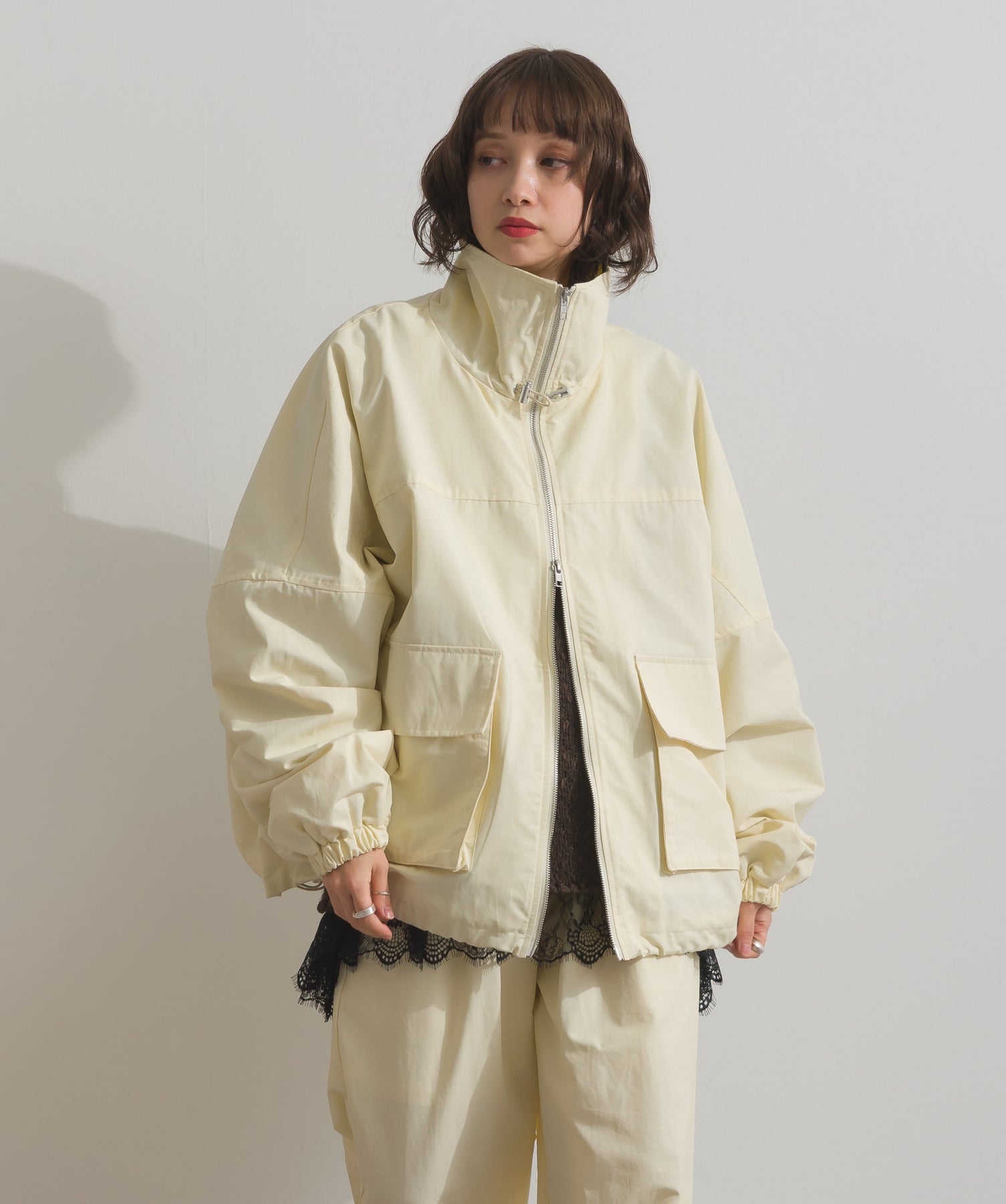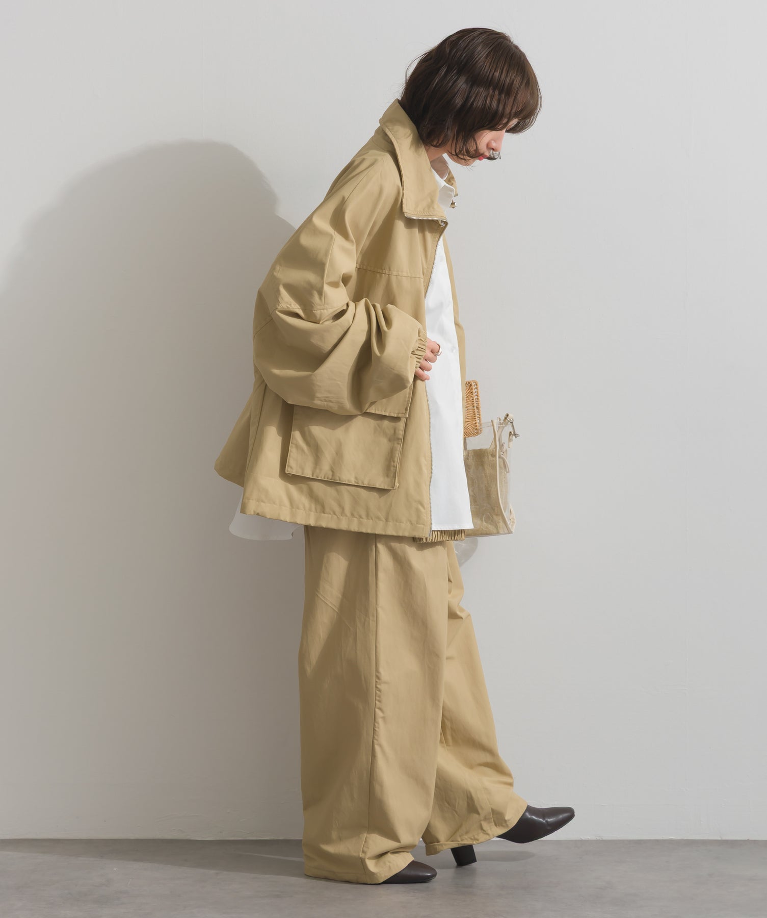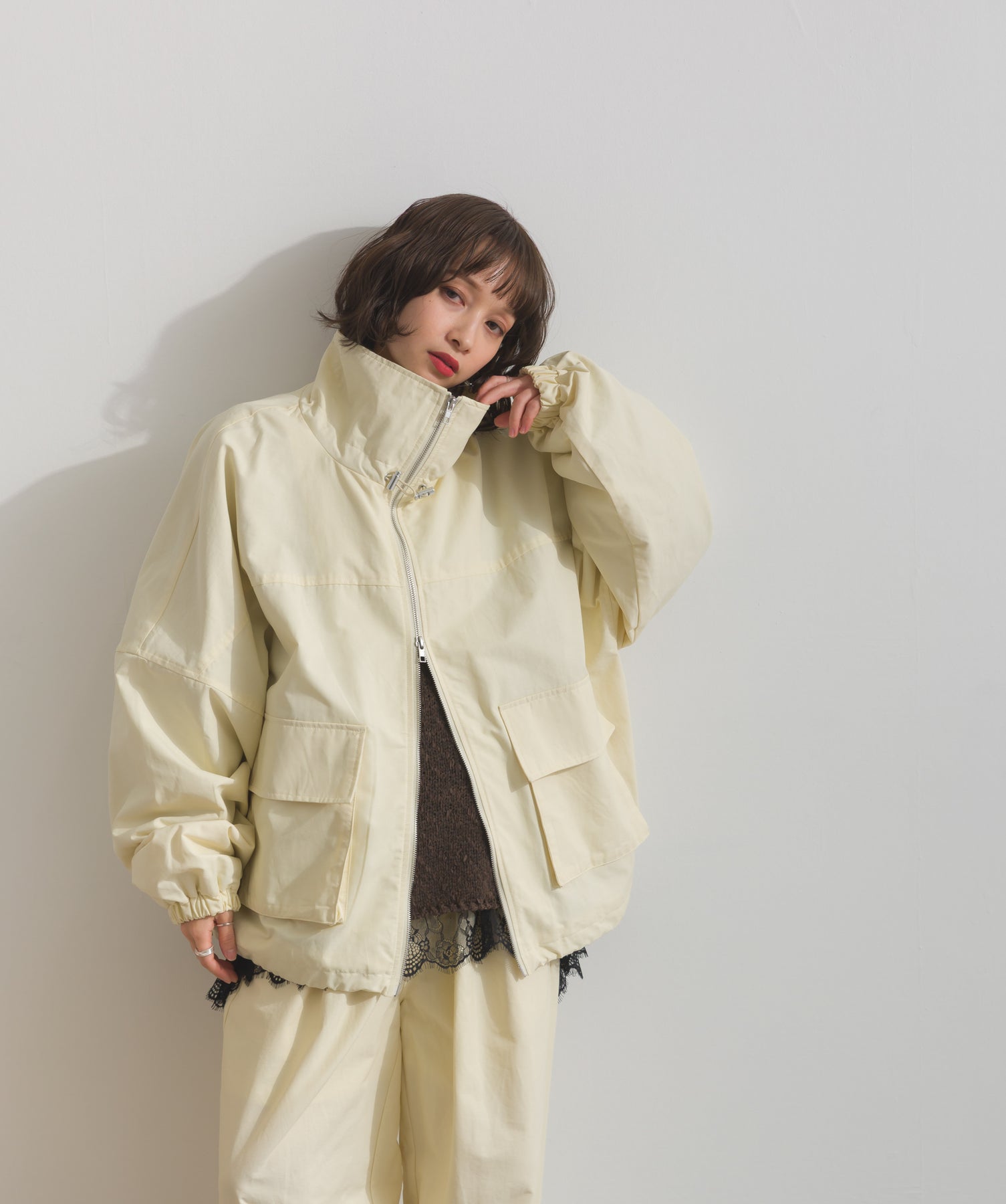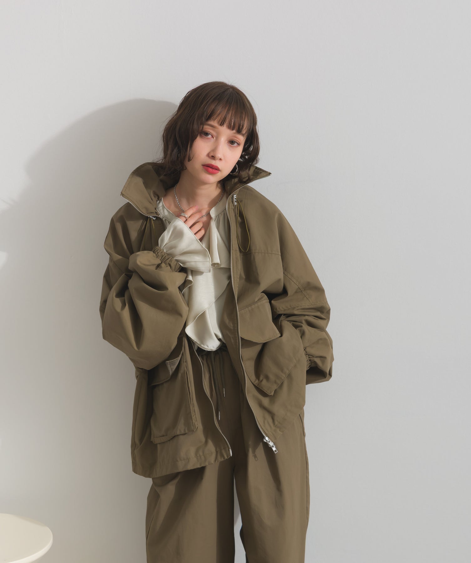 オーバーすぎない、抜けすぎない。ちょうどいい主役アウター。ミニマルなデザインにモードなボリューム感を添えた、大人のための軽アウター。-material-軽量ながらも程よいハリ感を持つ合繊ツイル素材を使用。ツイルならではの滑らかな表面感と、シワになりにくい高機能性が魅力。裏地なしでもしっかりとした風合いで、ロングシーズン活躍できる万能素材です。-design-首元を立たせてモードに、開けてラフに着られるスタンドネック仕様。ドロップショルダーとワイドスリーブでリラックス感を持たせながらも、裾のドローコードでシルエット調整が可能。フロントのフラップポケットが程よいアクセントとなり、アウトドアテイストを取り入れつつもタウンユースにフィットするデザイン。合わせるボトムスを選ばない丈感と、3色展開のニュアンスカラーで着回し力も抜群。