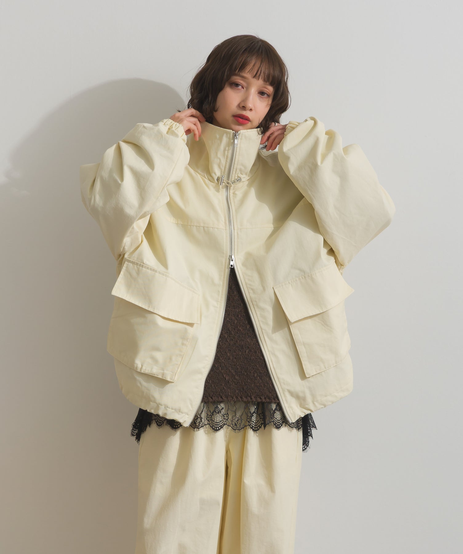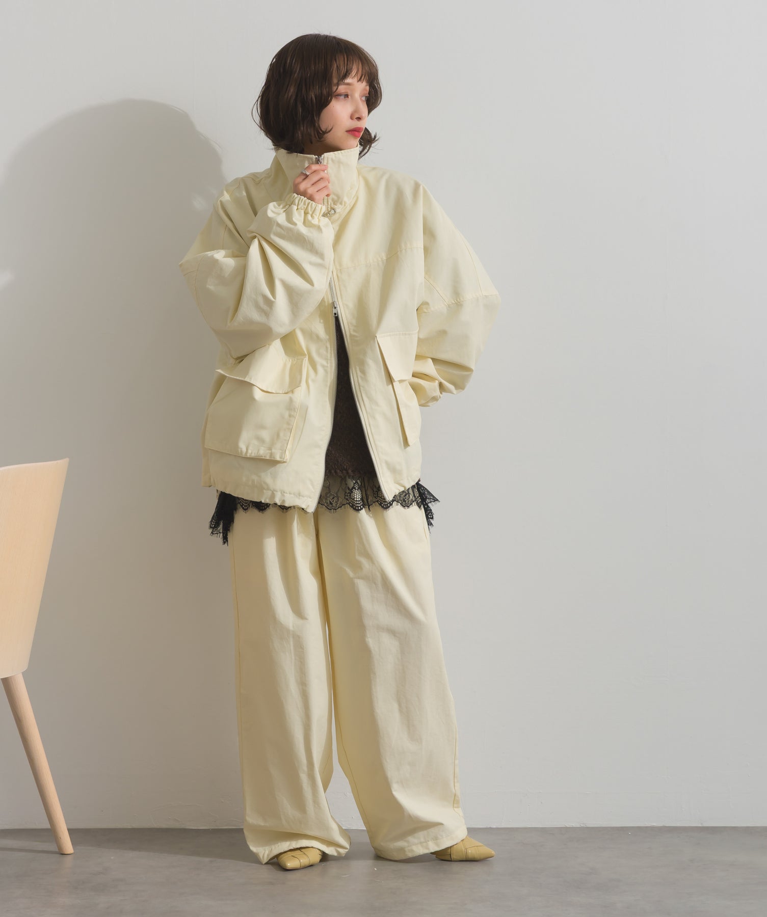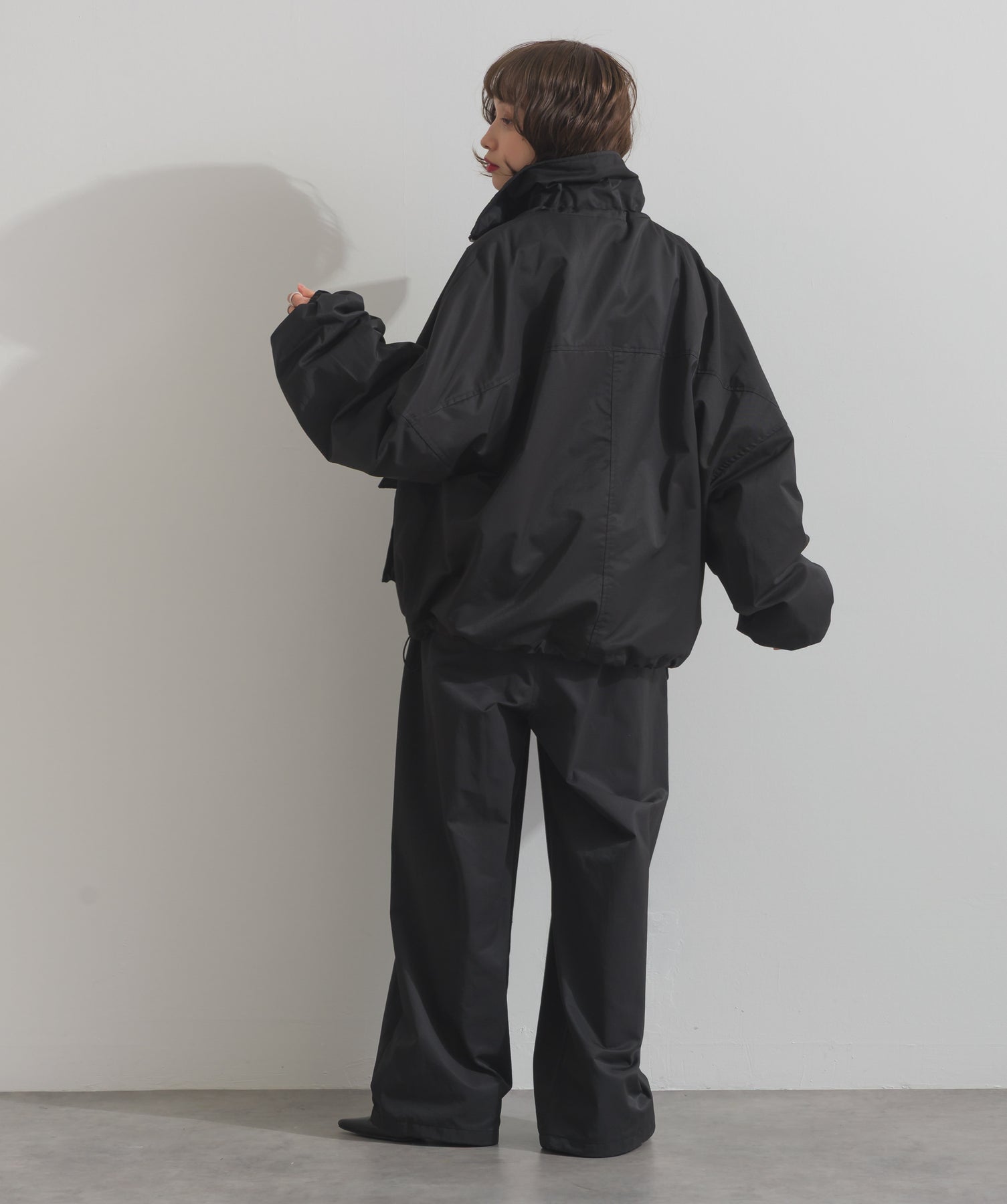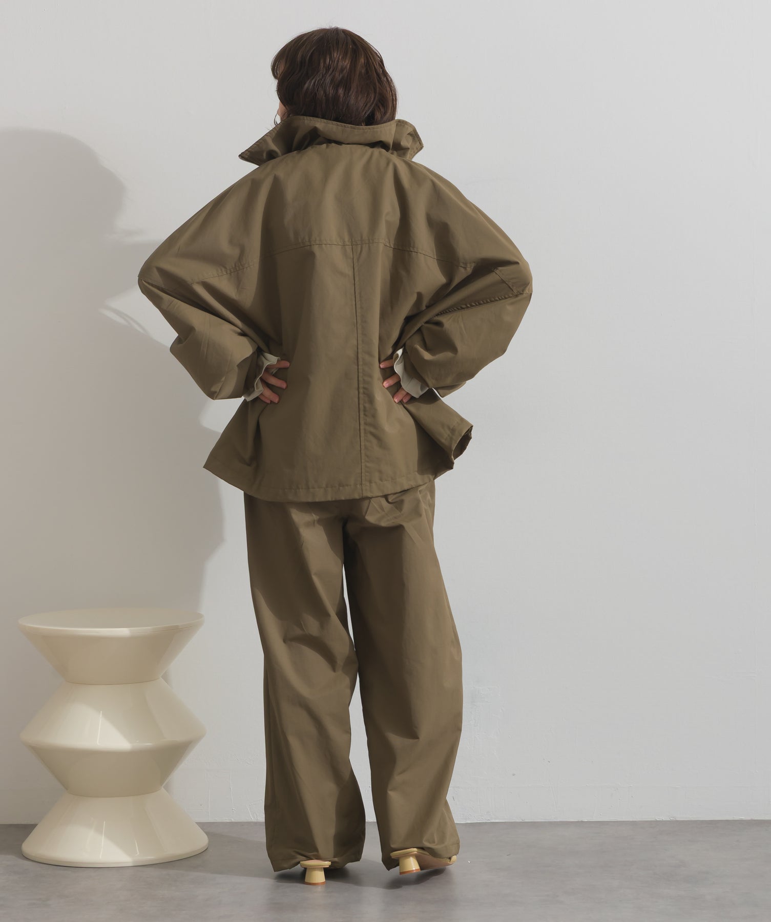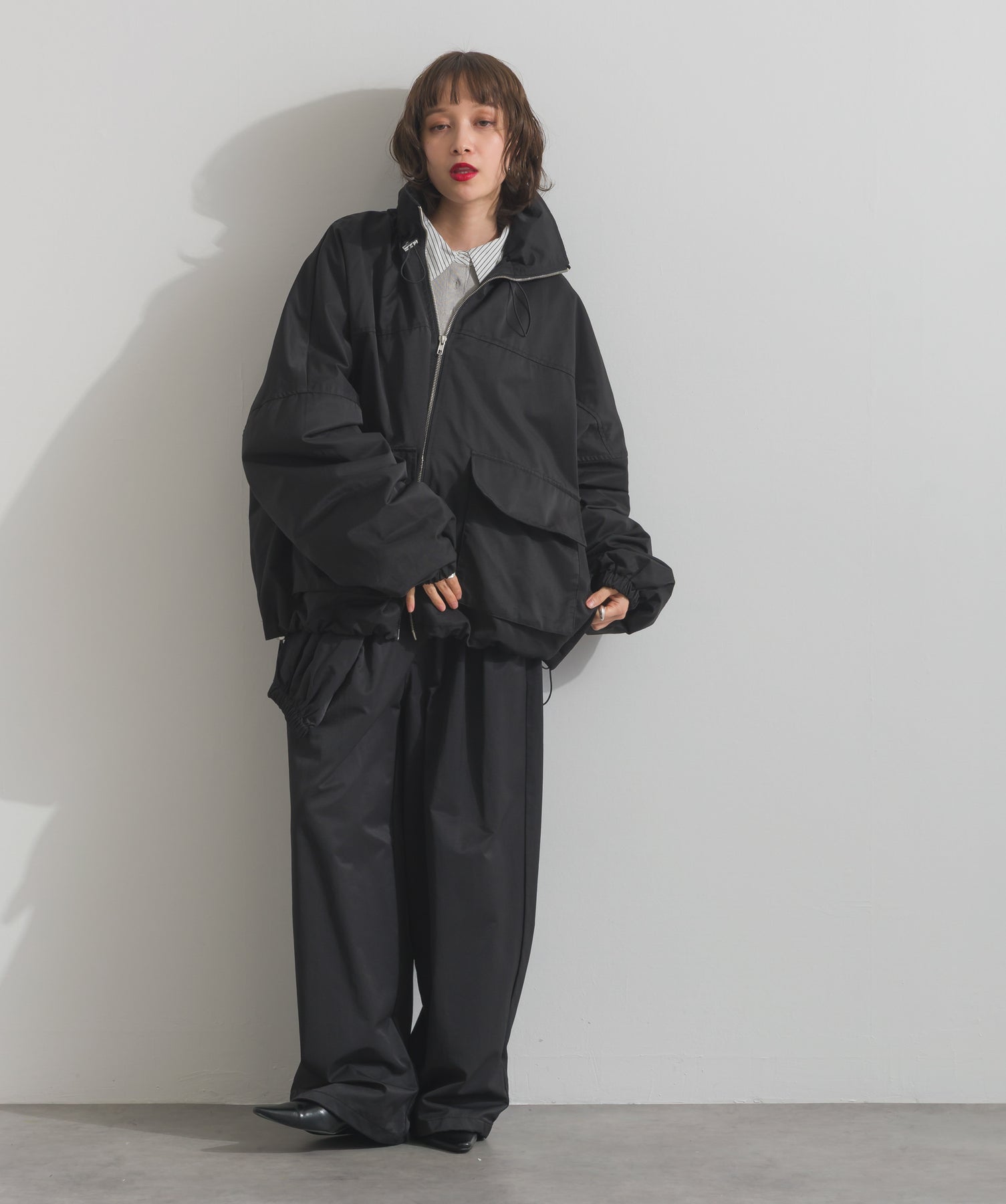 オーバーすぎない、抜けすぎない。ちょうどいい主役アウター。ミニマルなデザインにモードなボリューム感を添えた、大人のための軽アウター。-material-軽量ながらも程よいハリ感を持つ合繊ツイル素材を使用。ツイルならではの滑らかな表面感と、シワになりにくい高機能性が魅力。裏地なしでもしっかりとした風合いで、ロングシーズン活躍できる万能素材です。-design-首元を立たせてモードに、開けてラフに着られるスタンドネック仕様。ドロップショルダーとワイドスリーブでリラックス感を持たせながらも、裾のドローコードでシルエット調整が可能。フロントのフラップポケットが程よいアクセントとなり、アウトドアテイストを取り入れつつもタウンユースにフィットするデザイン。合わせるボトムスを選ばない丈感と、3色展開のニュアンスカラーで着回し力も抜群。