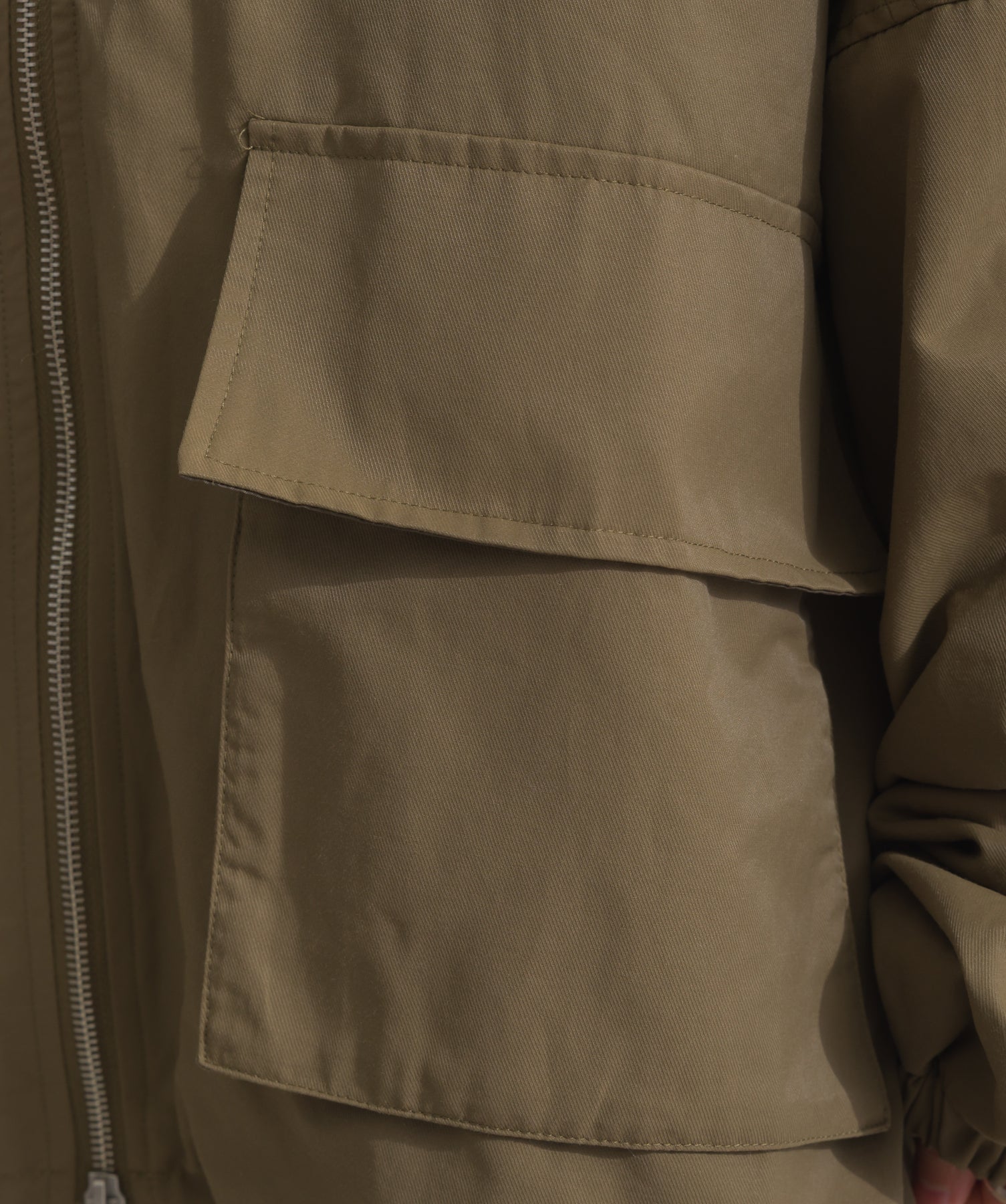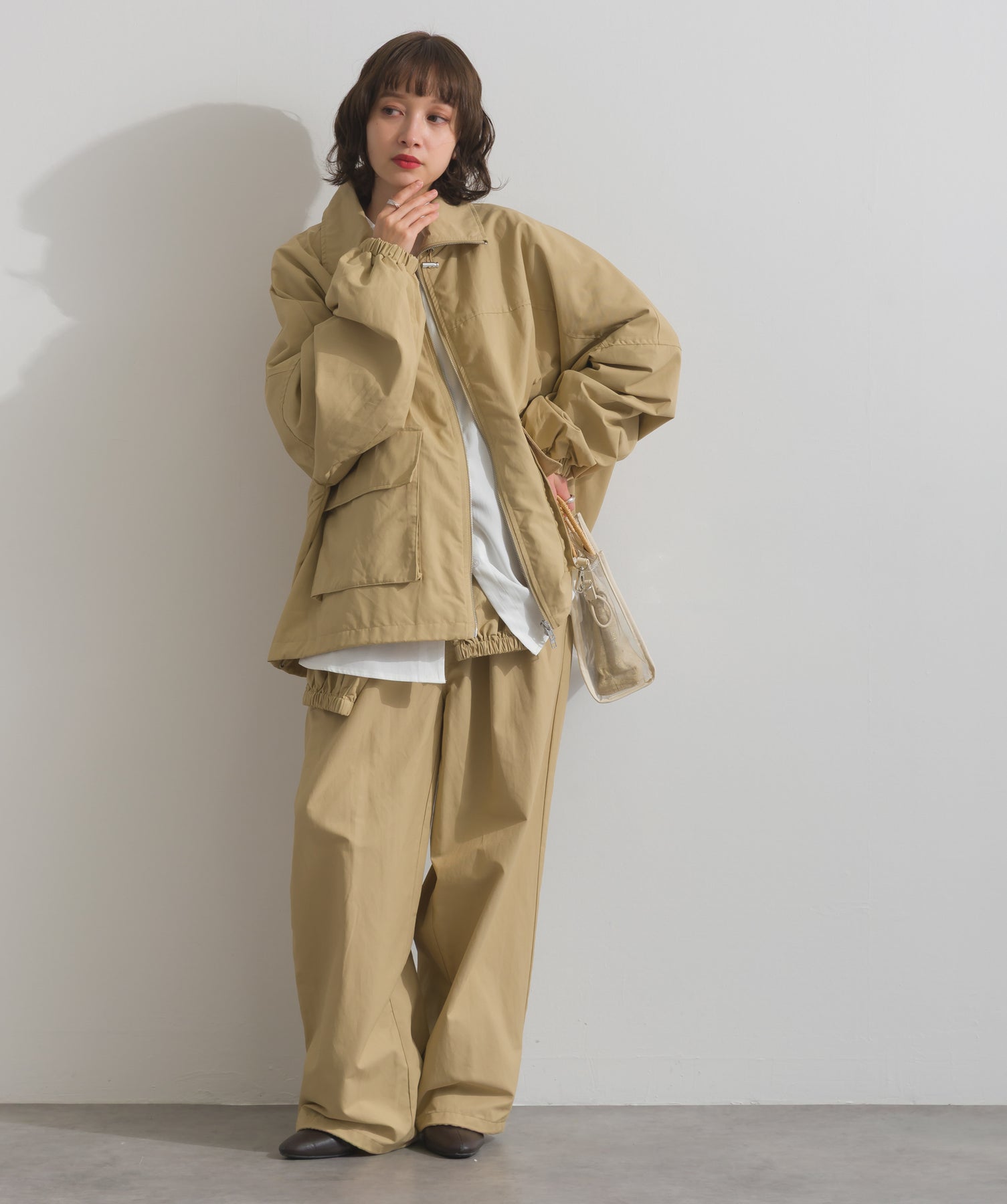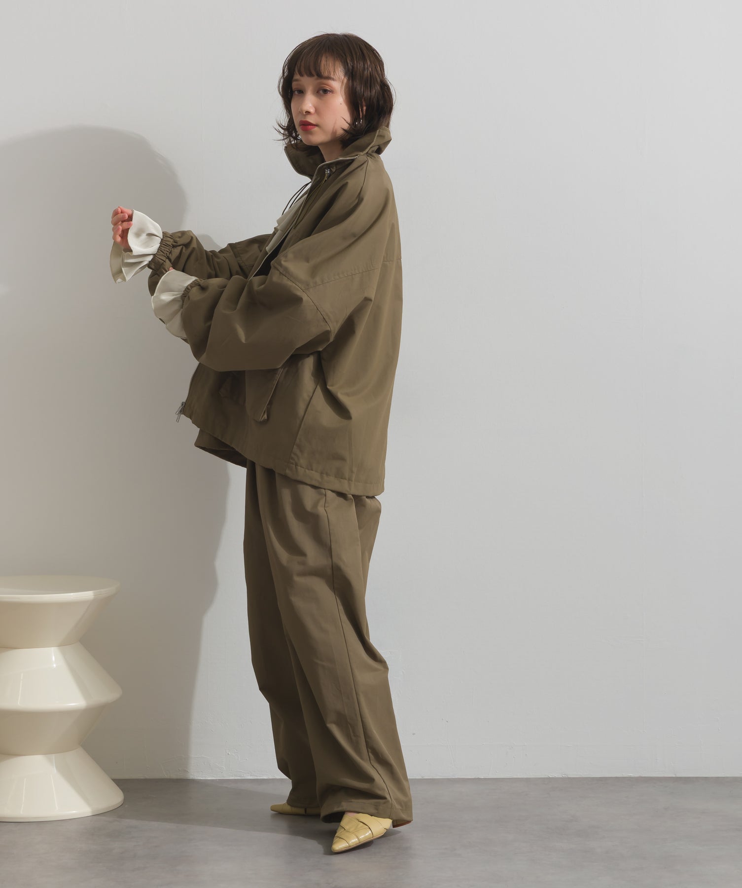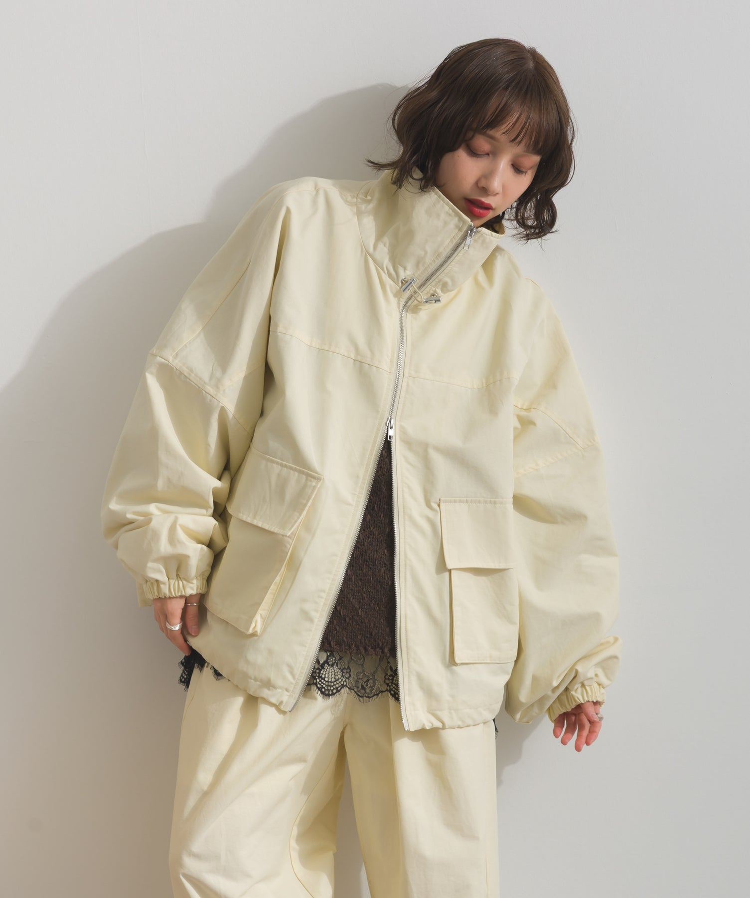 オーバーすぎない、抜けすぎない。ちょうどいい主役アウター。ミニマルなデザインにモードなボリューム感を添えた、大人のための軽アウター。-material-軽量ながらも程よいハリ感を持つ合繊ツイル素材を使用。ツイルならではの滑らかな表面感と、シワになりにくい高機能性が魅力。裏地なしでもしっかりとした風合いで、ロングシーズン活躍できる万能素材です。-design-首元を立たせてモードに、開けてラフに着られるスタンドネック仕様。ドロップショルダーとワイドスリーブでリラックス感を持たせながらも、裾のドローコードでシルエット調整が可能。フロントのフラップポケットが程よいアクセントとなり、アウトドアテイストを取り入れつつもタウンユースにフィットするデザイン。合わせるボトムスを選ばない丈感と、3色展開のニュアンスカラーで着回し力も抜群。