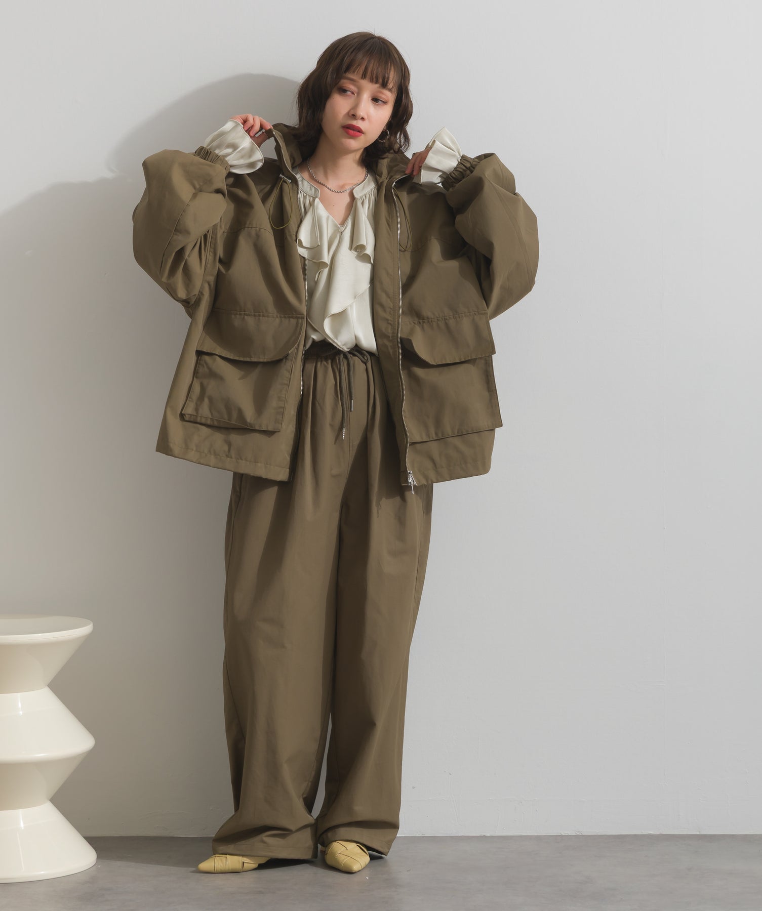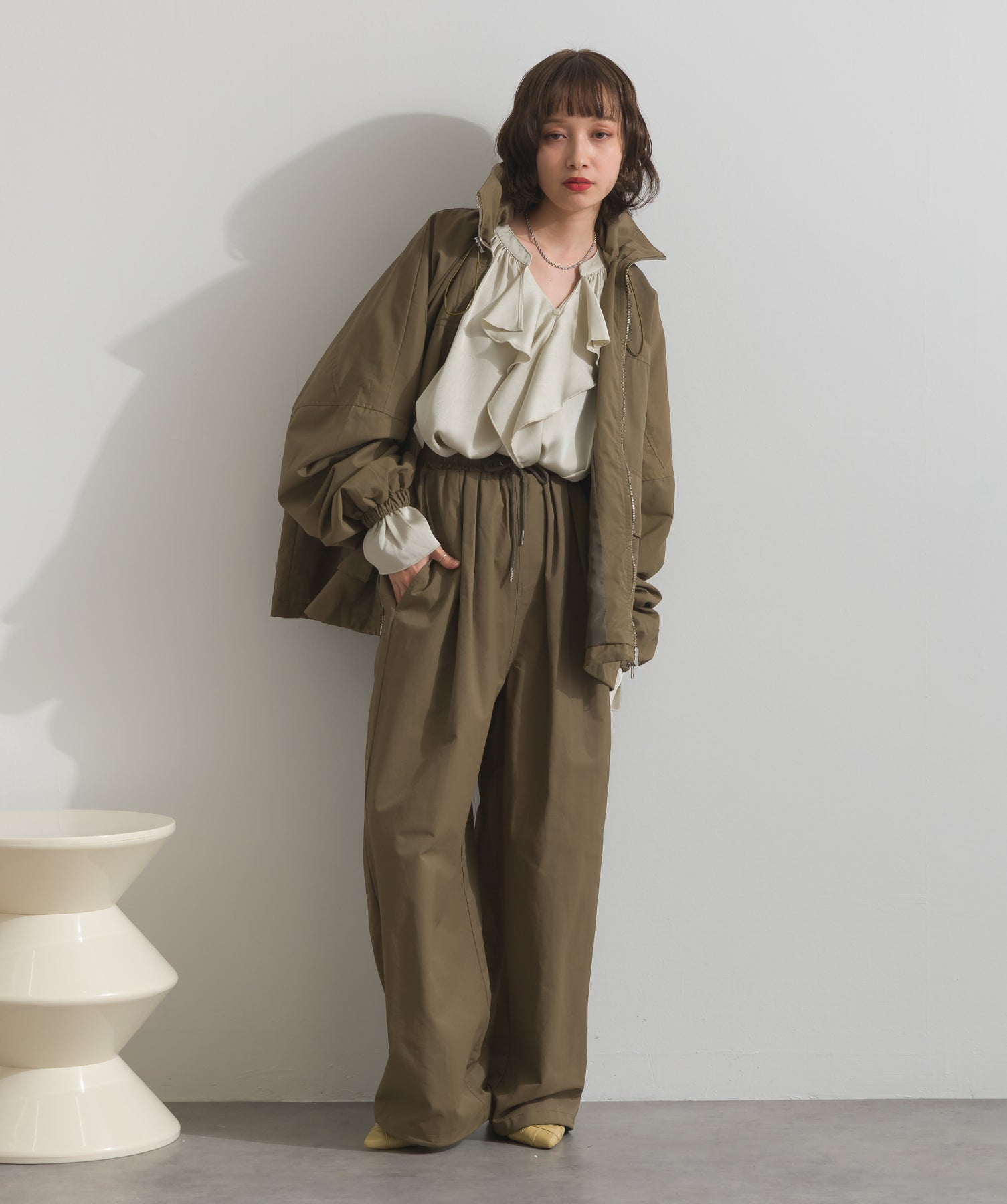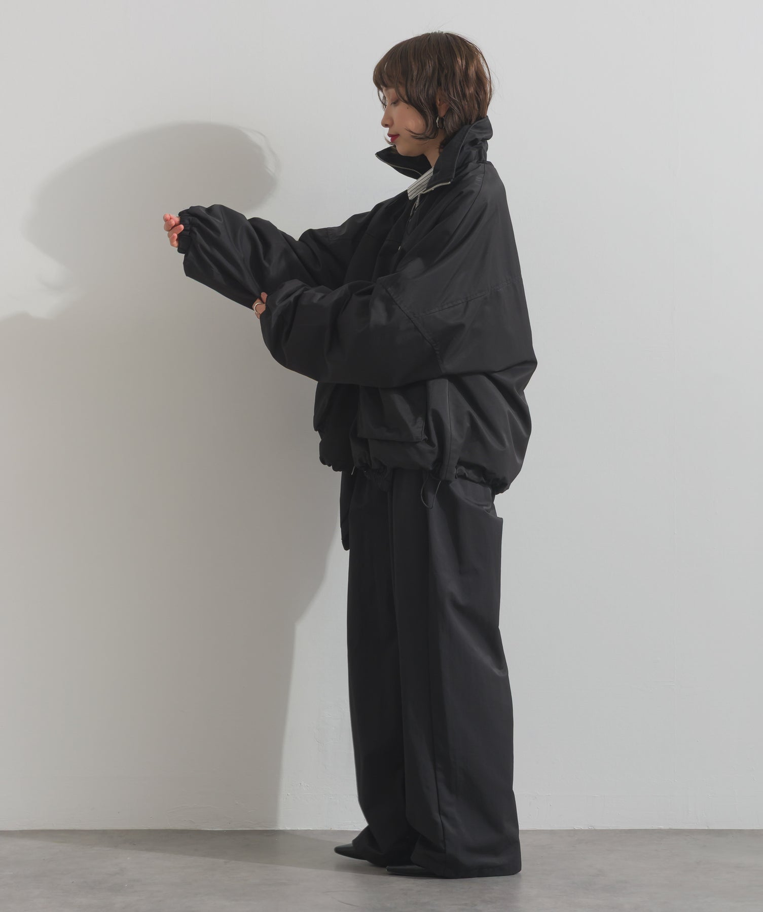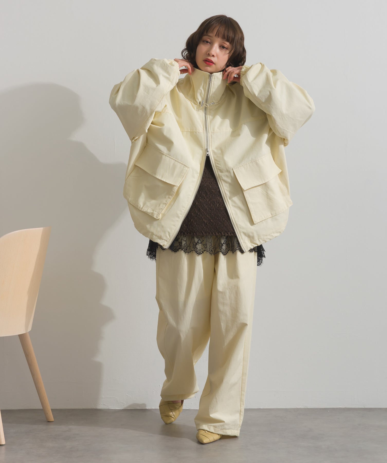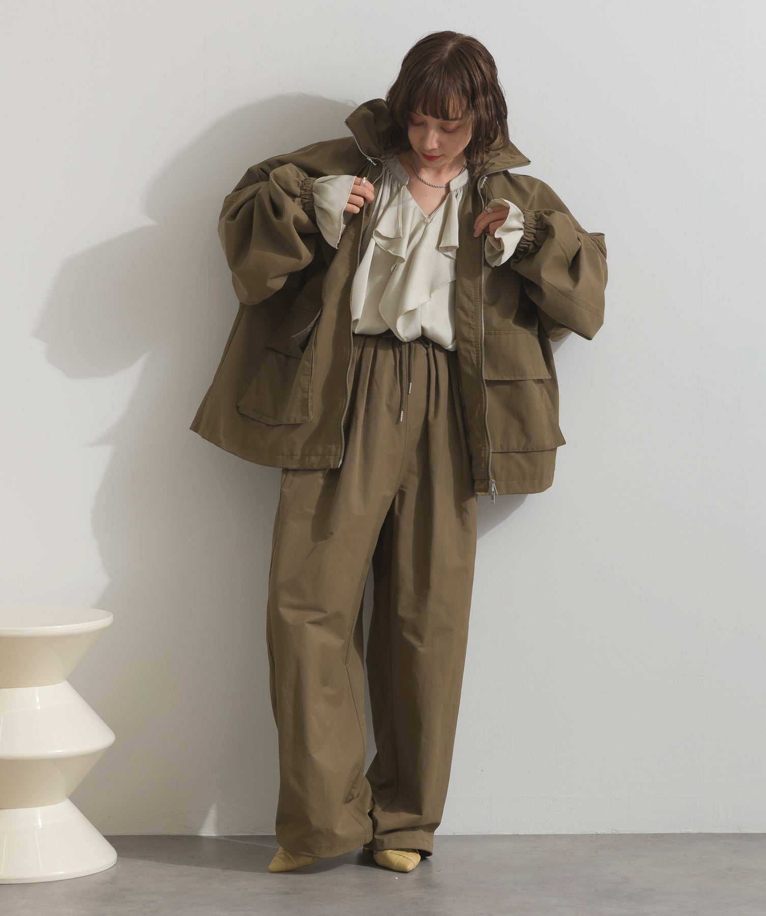 オーバーすぎない、抜けすぎない。ちょうどいい主役アウター。ミニマルなデザインにモードなボリューム感を添えた、大人のための軽アウター。-material-軽量ながらも程よいハリ感を持つ合繊ツイル素材を使用。ツイルならではの滑らかな表面感と、シワになりにくい高機能性が魅力。裏地なしでもしっかりとした風合いで、ロングシーズン活躍できる万能素材です。-design-首元を立たせてモードに、開けてラフに着られるスタンドネック仕様。ドロップショルダーとワイドスリーブでリラックス感を持たせながらも、裾のドローコードでシルエット調整が可能。フロントのフラップポケットが程よいアクセントとなり、アウトドアテイストを取り入れつつもタウンユースにフィットするデザイン。合わせるボトムスを選ばない丈感と、3色展開のニュアンスカラーで着回し力も抜群。