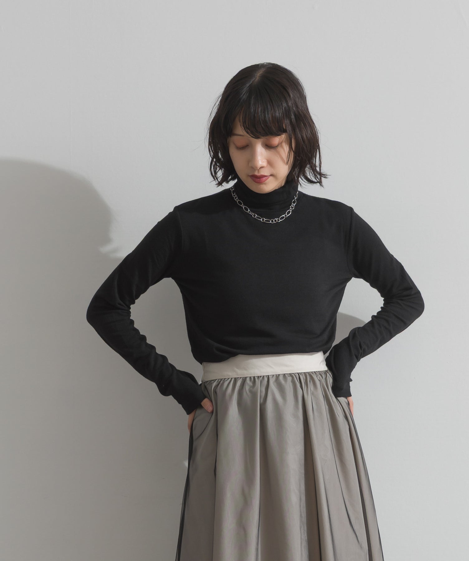 秋冬に欠かせない、名脇役トップス。首元に程よく高さを出せるモックネック仕様で、暖かさとこなれ感を両立した万能カットソー。滑らかな肌触りのカット素材で、インナー使いにも快適な着心地。アウターやシャツのインナーとしても重宝し、1枚でもサマになるシンプルなデザインが魅力。カジュアルからきれいめまで、幅広いコーディネートに活躍します。
