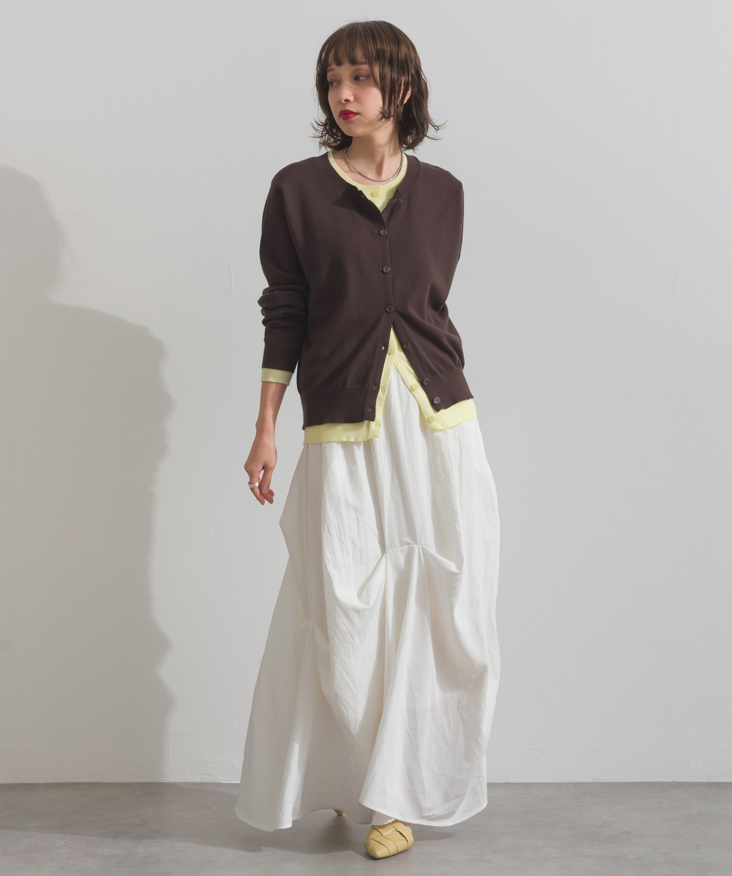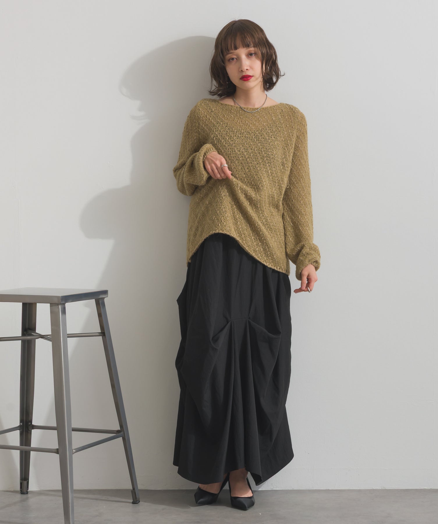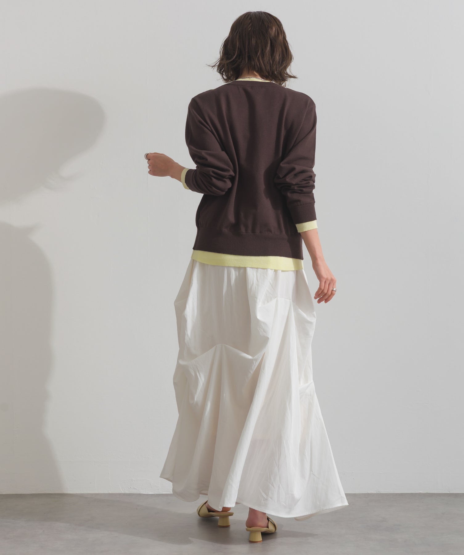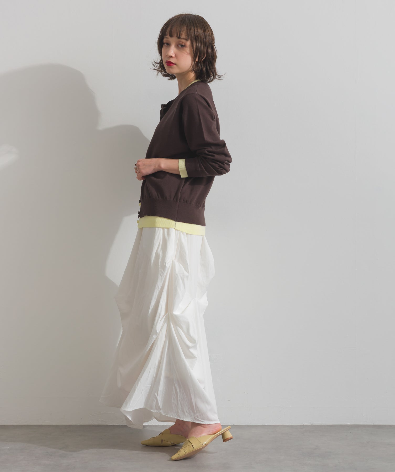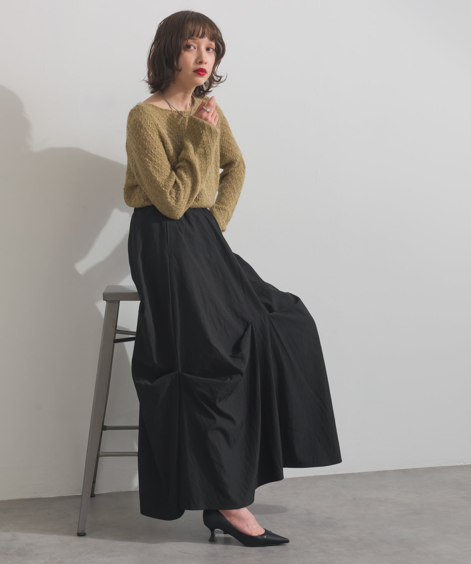 動きにアートを宿す、構築的タックの美学。-material-程よいハリ感とナチュラルなシワ加工が魅力のビンテージブロード素材。軽やかさと丈夫さを兼ね備えたコットン混生地で、シーズンレスに活躍します。透けにくく、素肌にも心地よい肌当たり。-design-アシンメトリーに施したランダムタックが、動きに合わせて立体的なシルエットを生み出す一枚。ウエストはゴム仕様で快適なフィット感を叶えつつ、ヒップまわりにボリュームを持たせすぎずすっきりとした印象に。モードにもナチュラルにも寄せられる万能デザインで、いつものコーデを格上げしてくれます。