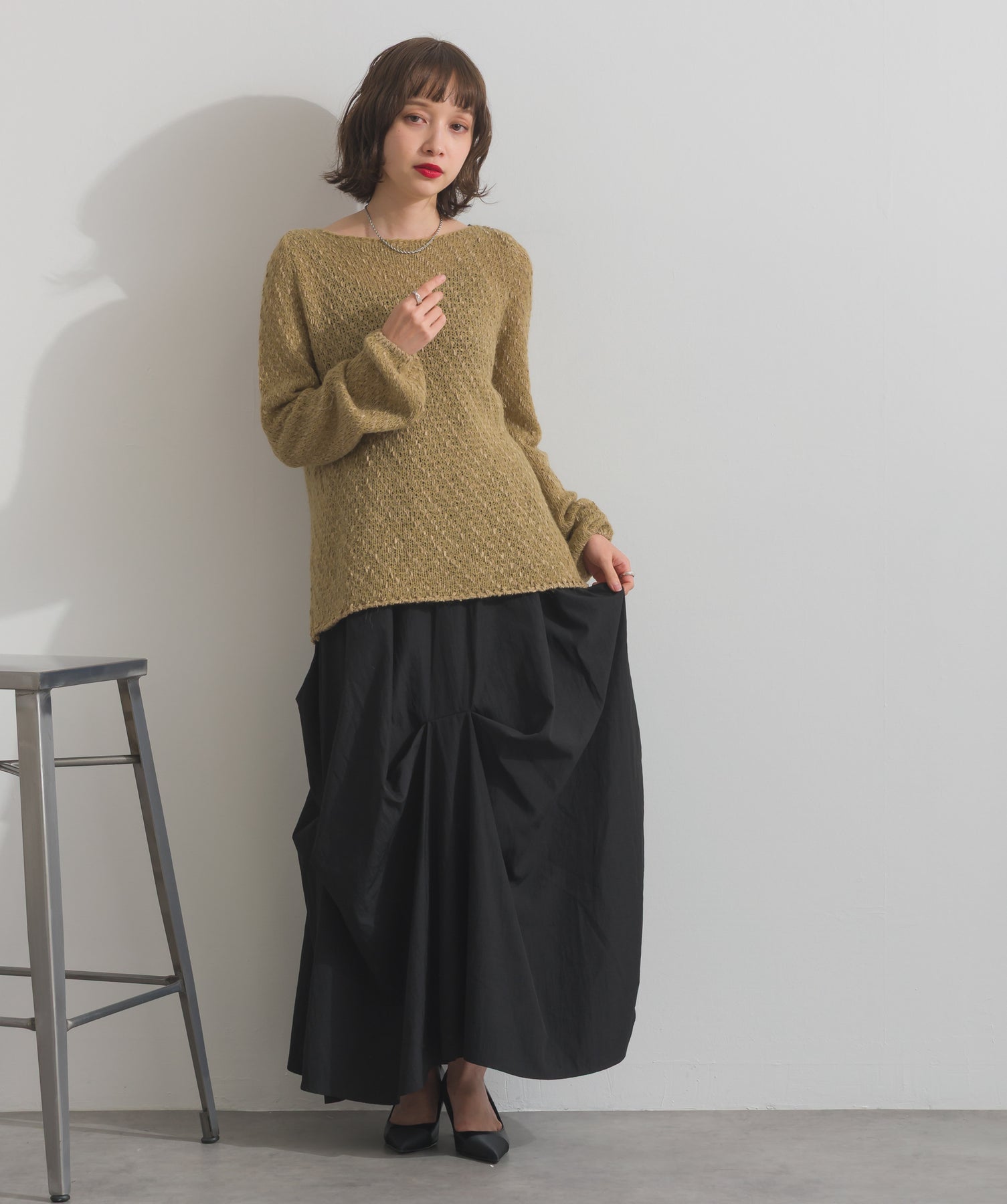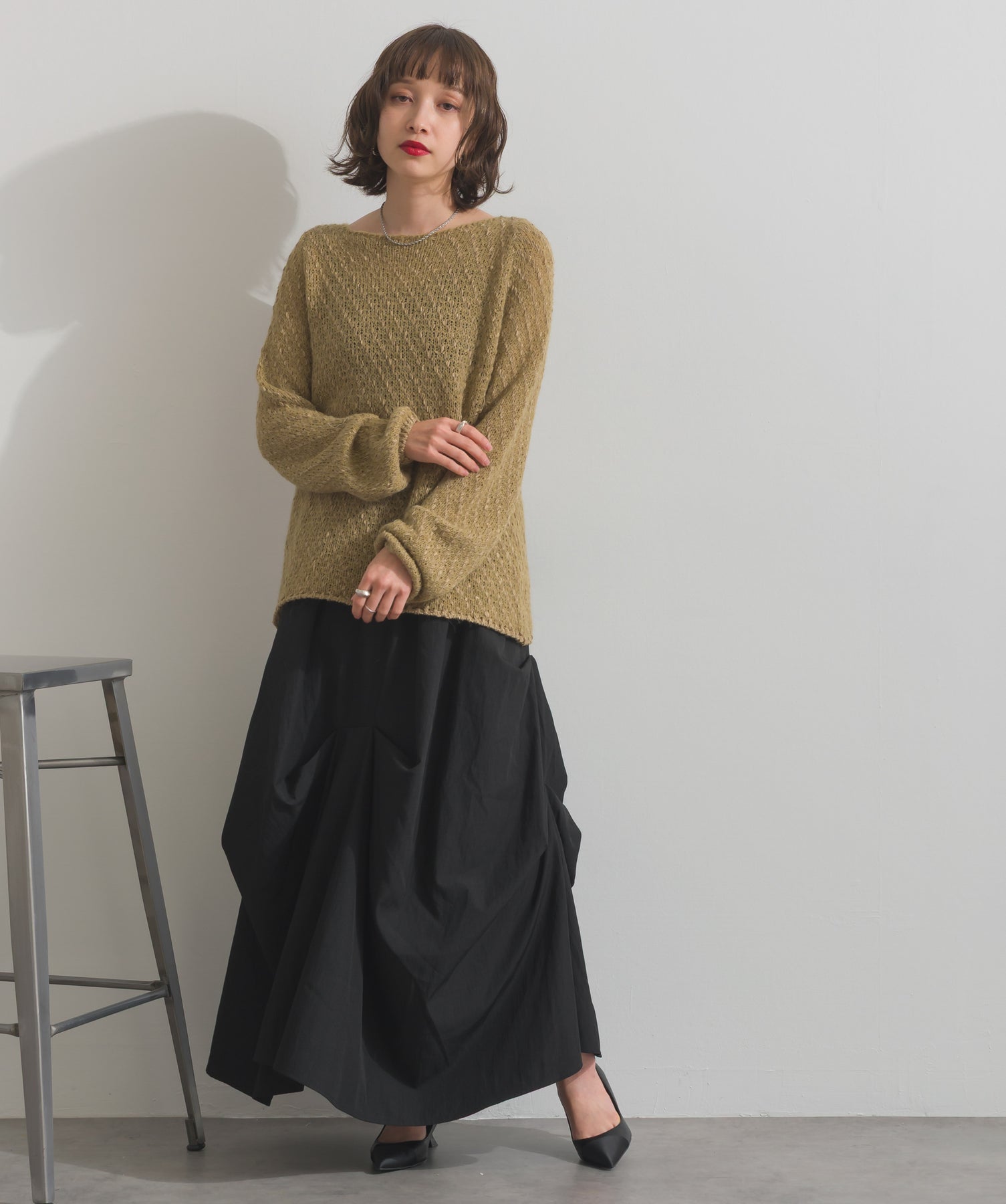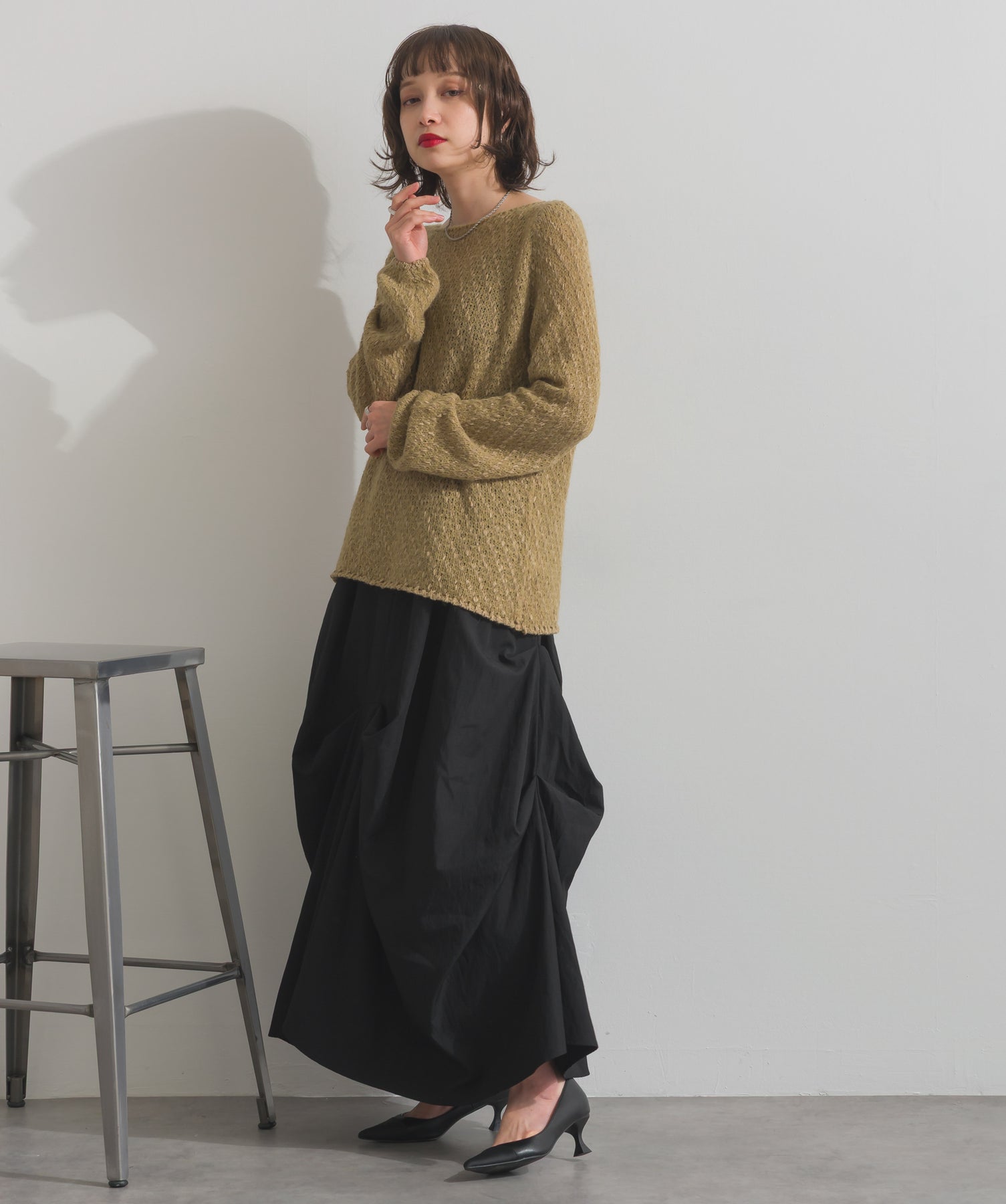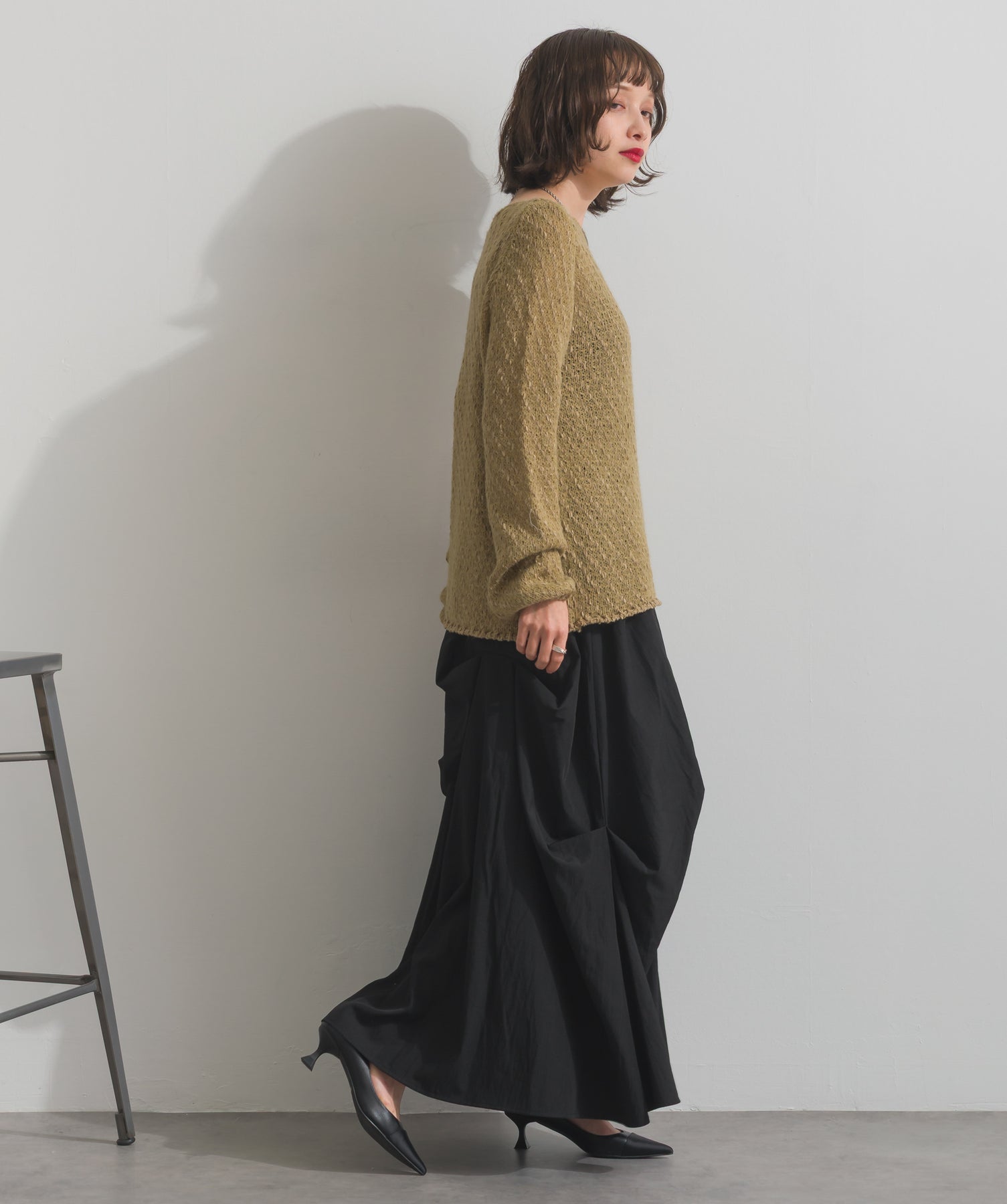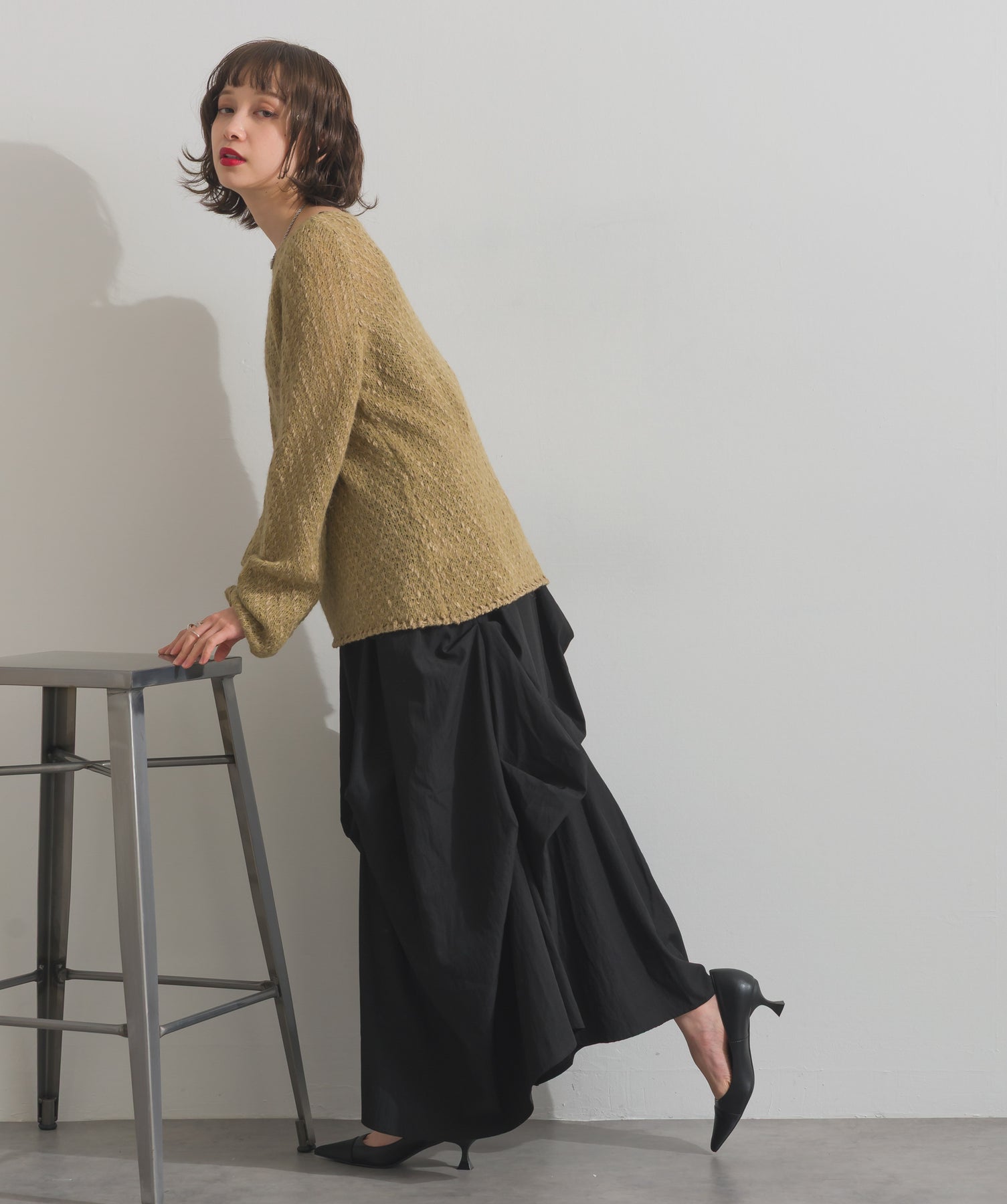 動きにアートを宿す、構築的タックの美学。-material-程よいハリ感とナチュラルなシワ加工が魅力のビンテージブロード素材。軽やかさと丈夫さを兼ね備えたコットン混生地で、シーズンレスに活躍します。透けにくく、素肌にも心地よい肌当たり。-design-アシンメトリーに施したランダムタックが、動きに合わせて立体的なシルエットを生み出す一枚。ウエストはゴム仕様で快適なフィット感を叶えつつ、ヒップまわりにボリュームを持たせすぎずすっきりとした印象に。モードにもナチュラルにも寄せられる万能デザインで、いつものコーデを格上げしてくれます。