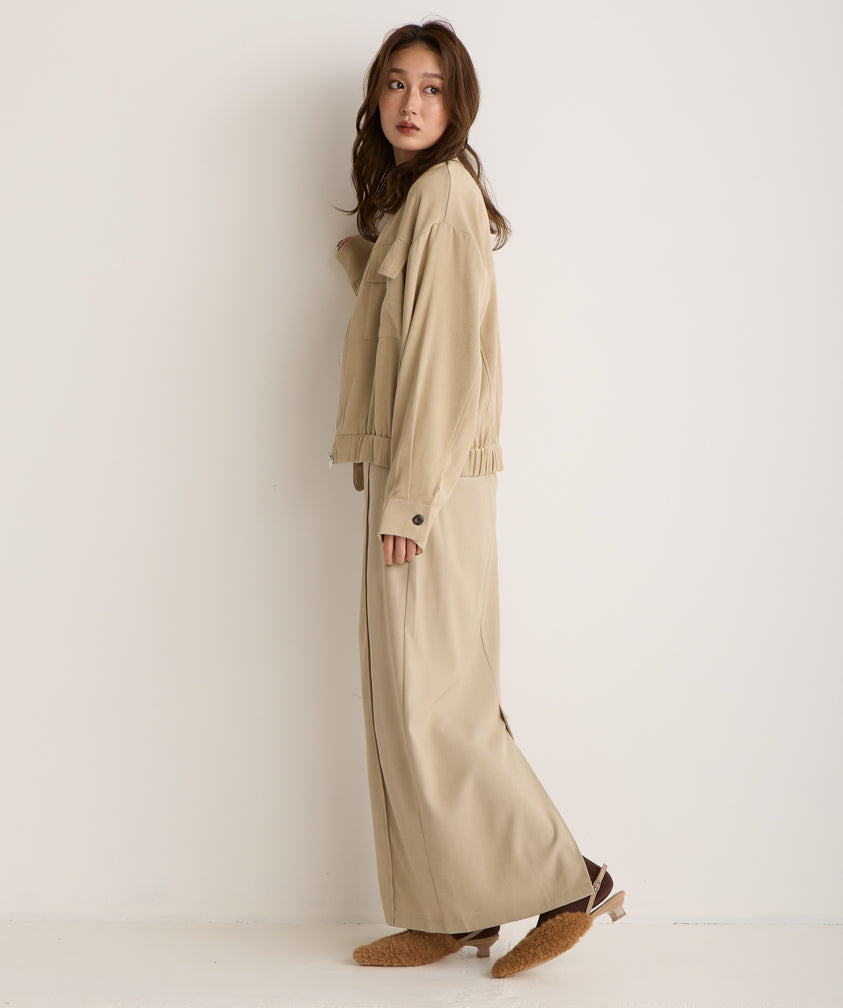 ゆとりのあるシルエットに、さりげないドロップショルダーが今っぽい抜け感を演出してくれる一枚です。フロントには大きめのフラップポケットを配し、実用性とデザイン性を兼ね備えた仕上がり。短めの丈感でバランスが取りやすく、ワイドパンツやロングスカートとも相性抜群。シンプルなトップスに羽織るだけでスタイルがまとまります。さらりとした質感の生地はシーズンレスで使いやすく、ニットやスウェットと重ねてもすっきり。デイリーからちょっとしたお出かけまで幅広く活躍する万能ブルゾンです。