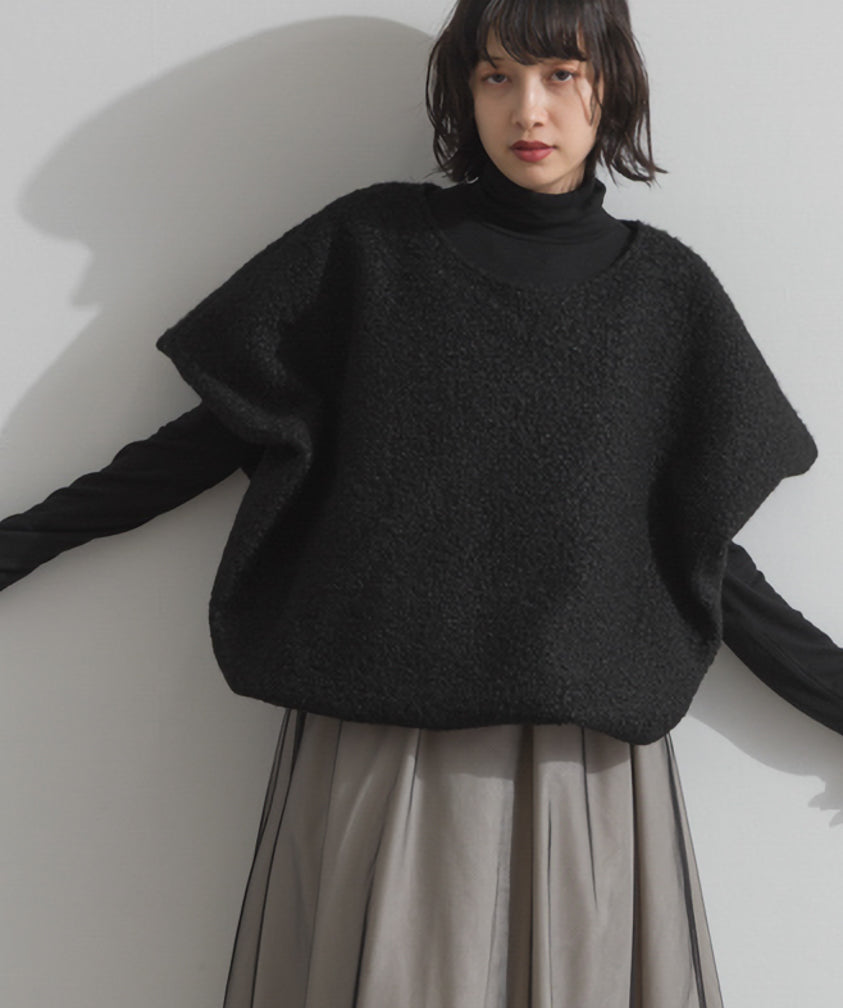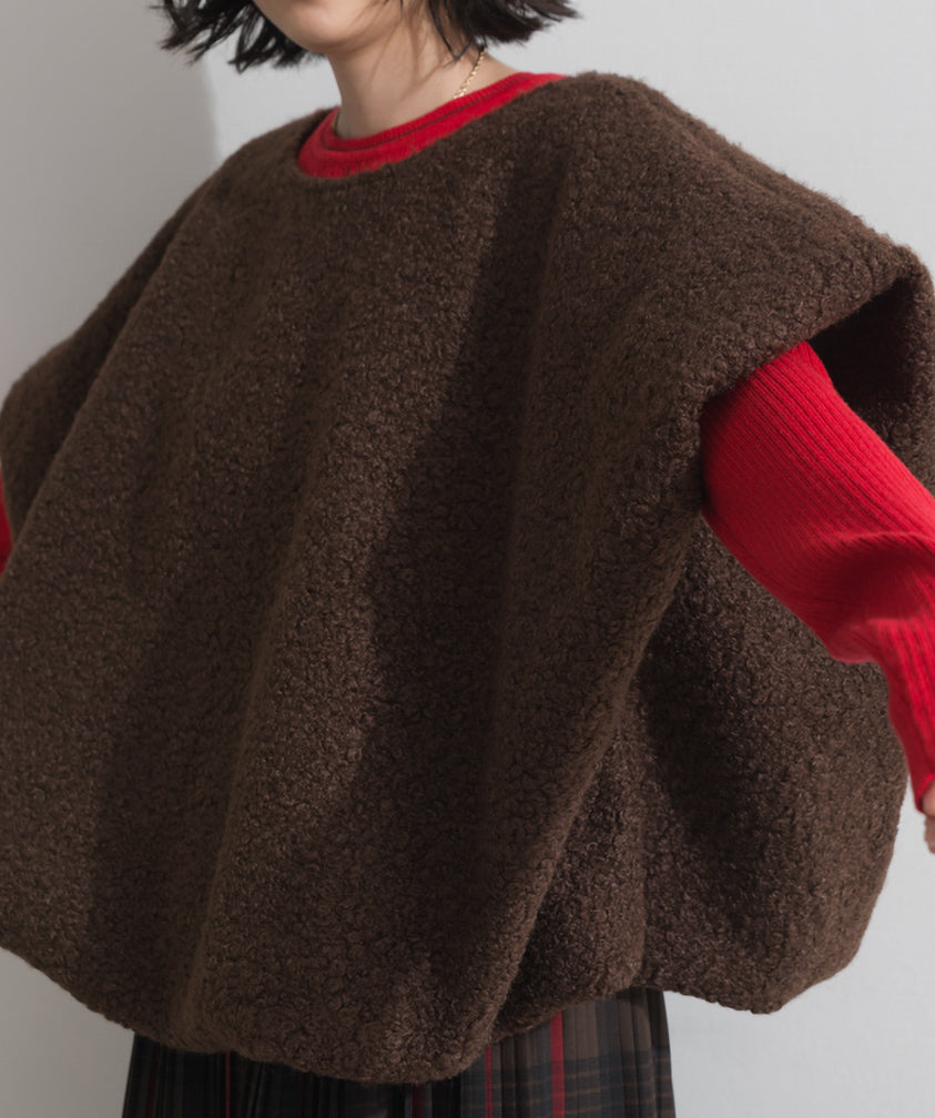 コーデに立体感をプラス。秋冬映えするツイードバルーンベスト。ふんわり丸みを帯びたバルーンシルエットが印象的なツイードベスト。表情豊かなループツイード素材がコーディネートに奥行きを与え、レイヤードスタイルを一気に旬顔に格上げしてくれます。 ゆったりとしたサイジングで、タートルやシャツとの重ね着にもぴったり。ヒップにかかる絶妙な丈感でバランス良く着こなせるのもポイント。カジュアルにもきれいめにも使える、着回し力の高い秋冬の主役ベストです。
