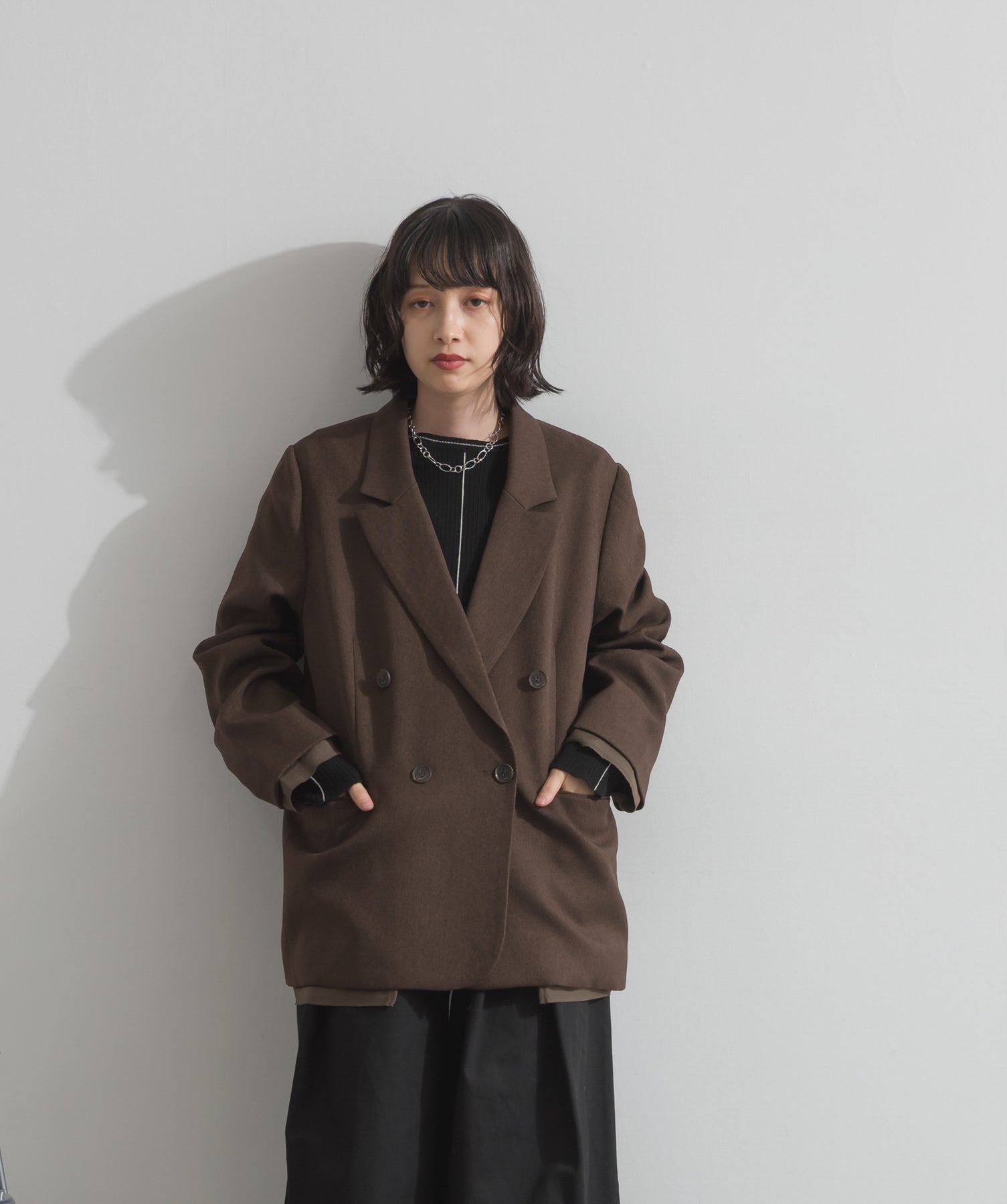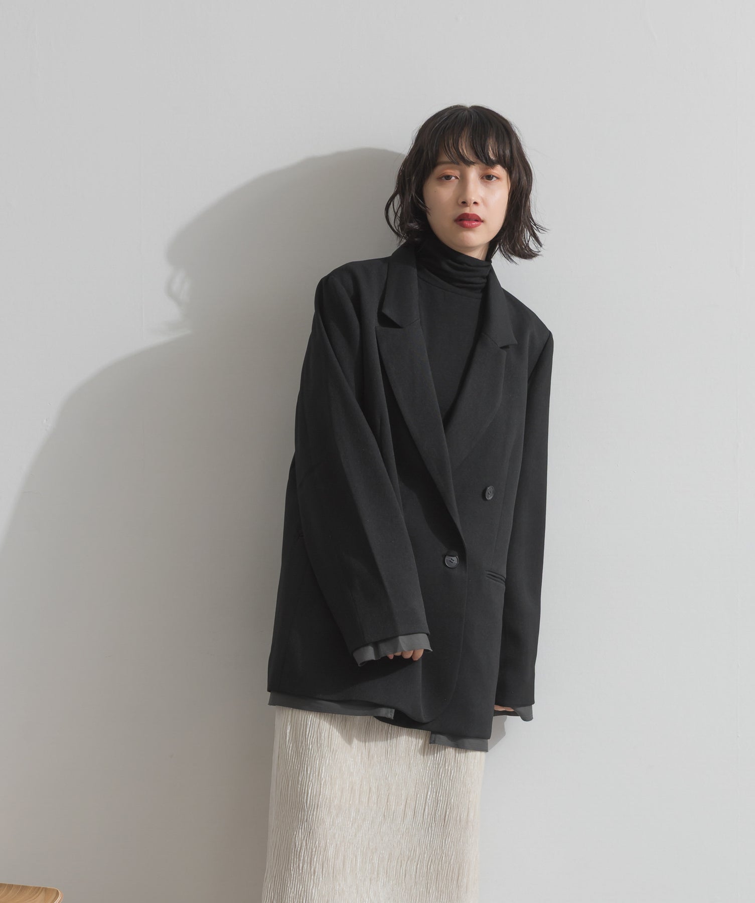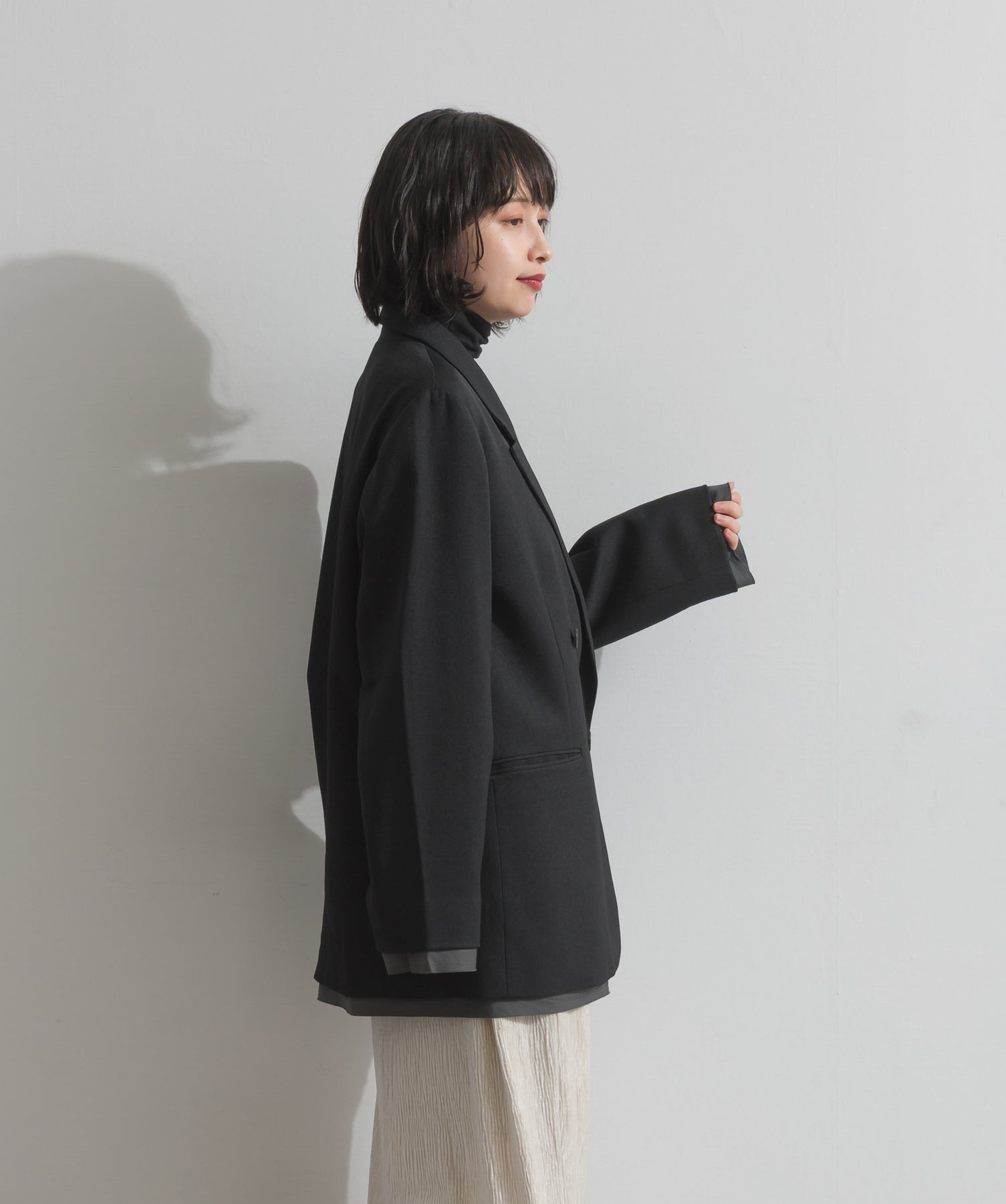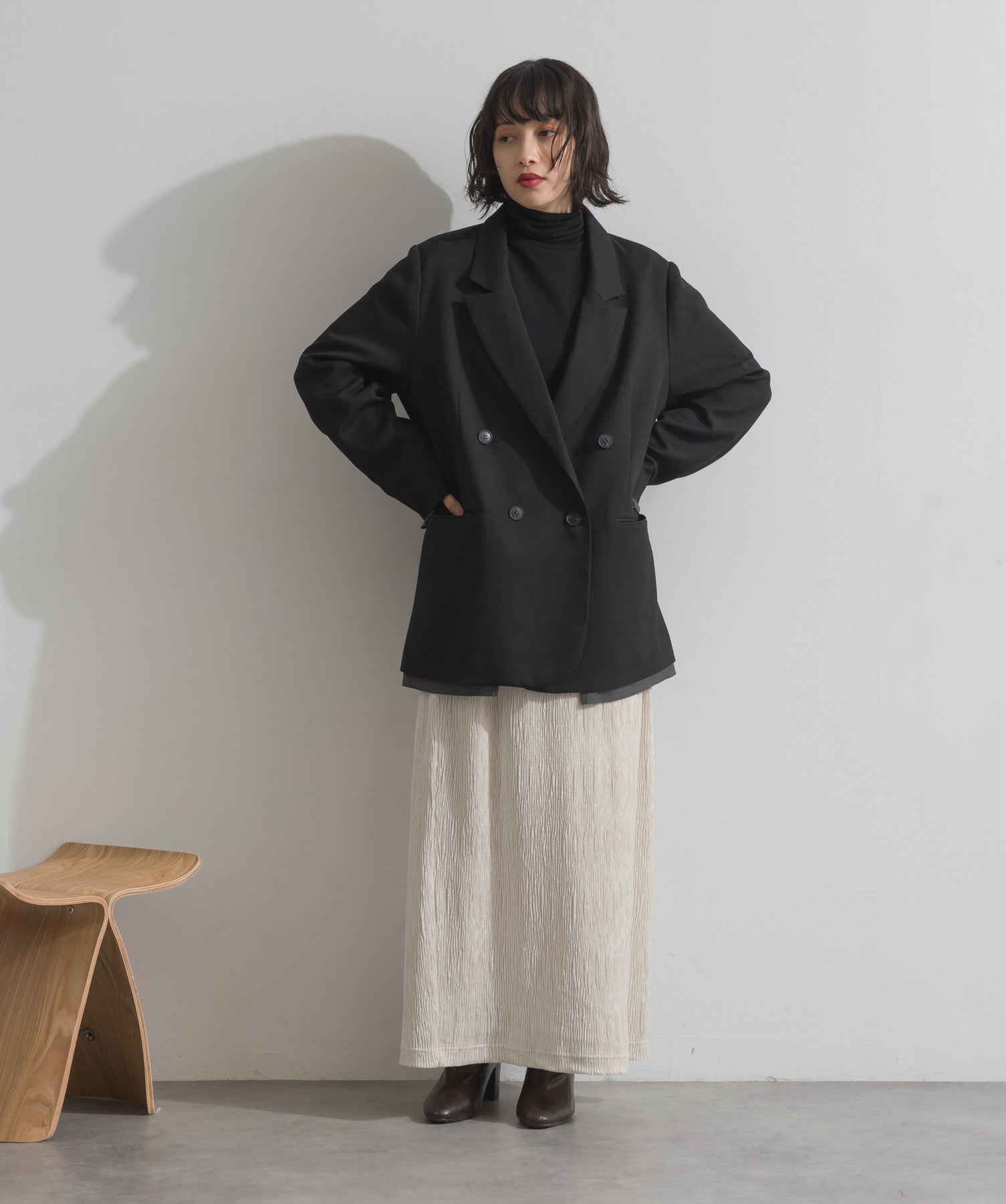 旬顔を叶える、大人のダブルブレストジャケット。さりげないストライプ柄が品よく映える、ポリスパン素材のダブルジャケット。ゆとりあるサイズ感と長めの丈感が今っぽく、さらっと羽織るだけでトレンド感のある着こなしに。ヒップが隠れる丈なので体型カバー効果も◎。Tシャツやタートル、ワンピースとのレイヤードもバランスよくまとまる万能アイテムです。
