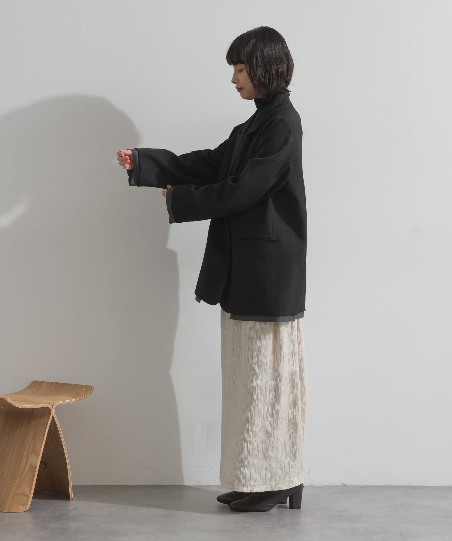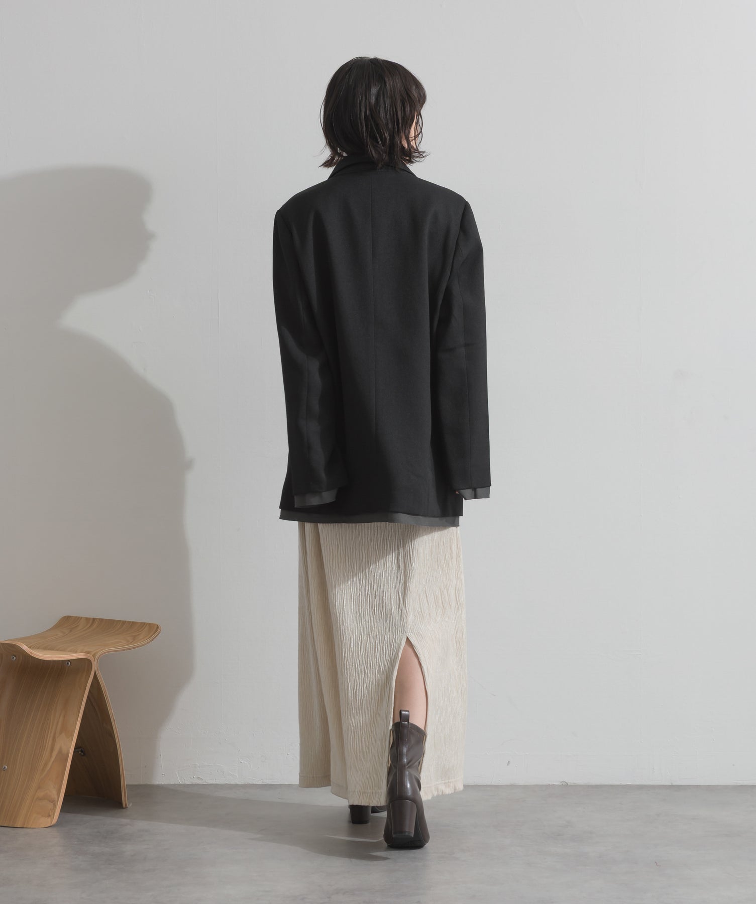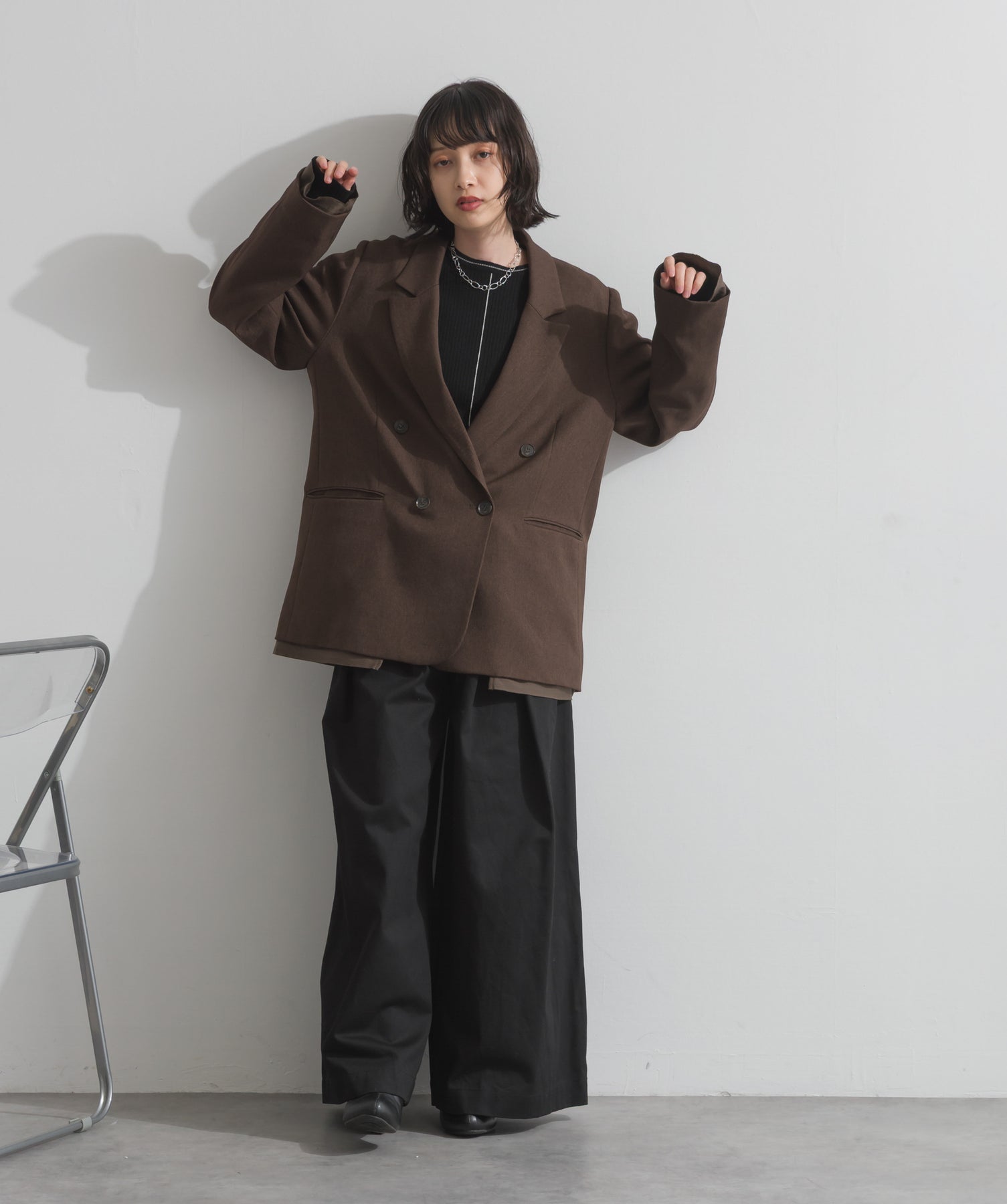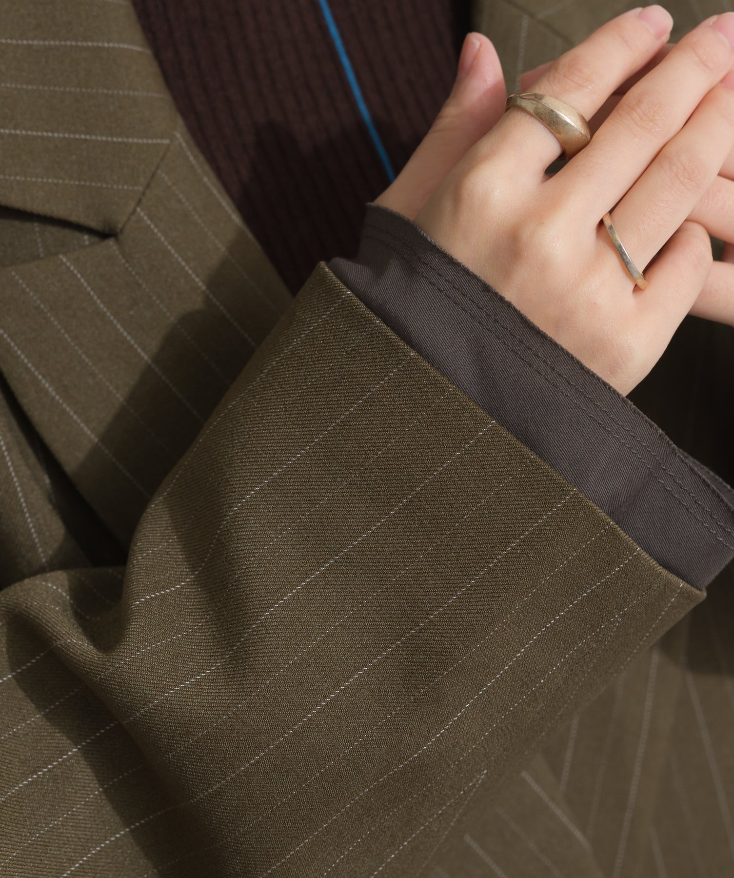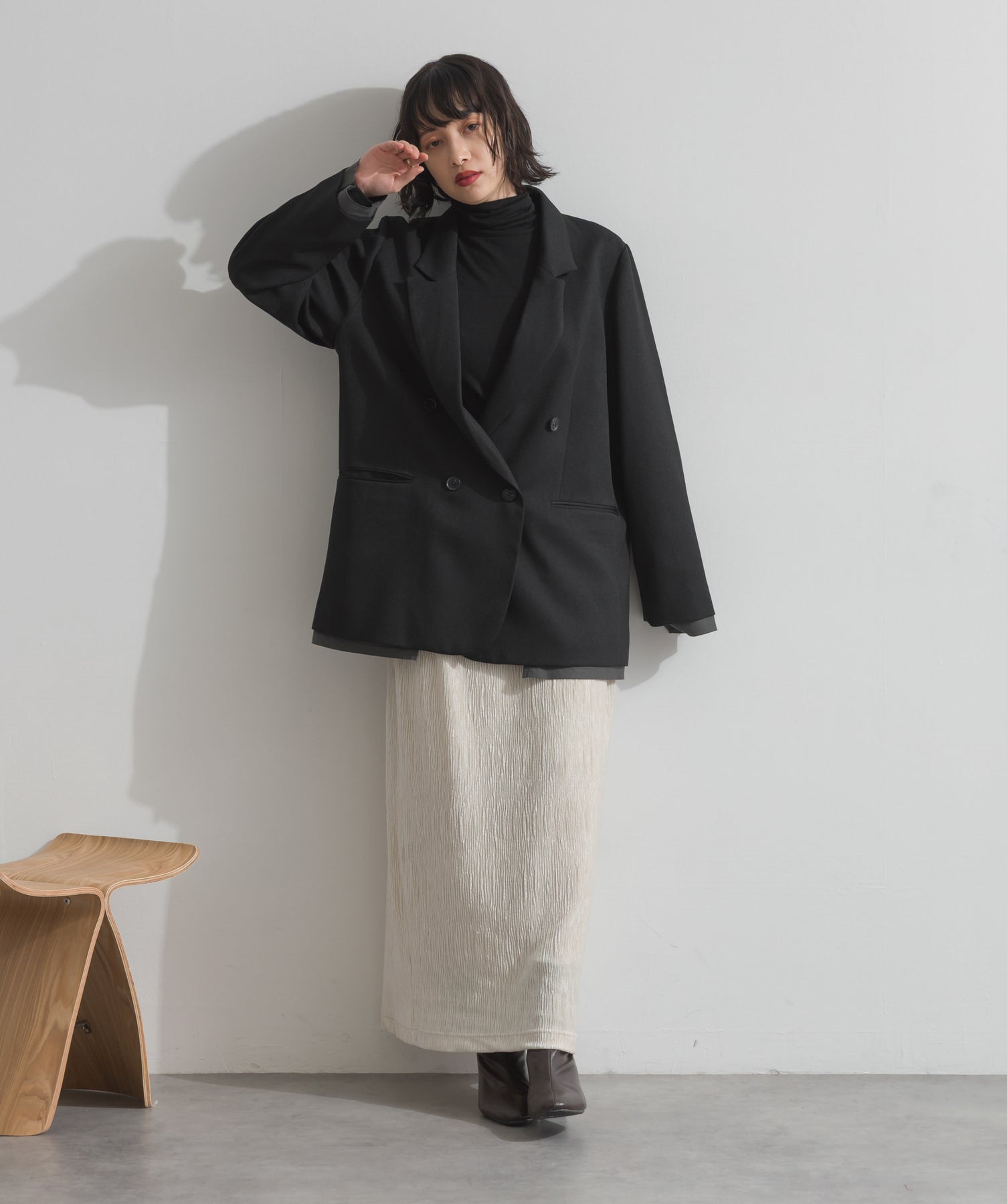 旬顔を叶える、大人のダブルブレストジャケット。さりげないストライプ柄が品よく映える、ポリスパン素材のダブルジャケット。ゆとりあるサイズ感と長めの丈感が今っぽく、さらっと羽織るだけでトレンド感のある着こなしに。ヒップが隠れる丈なので体型カバー効果も◎。Tシャツやタートル、ワンピースとのレイヤードもバランスよくまとまる万能アイテムです。