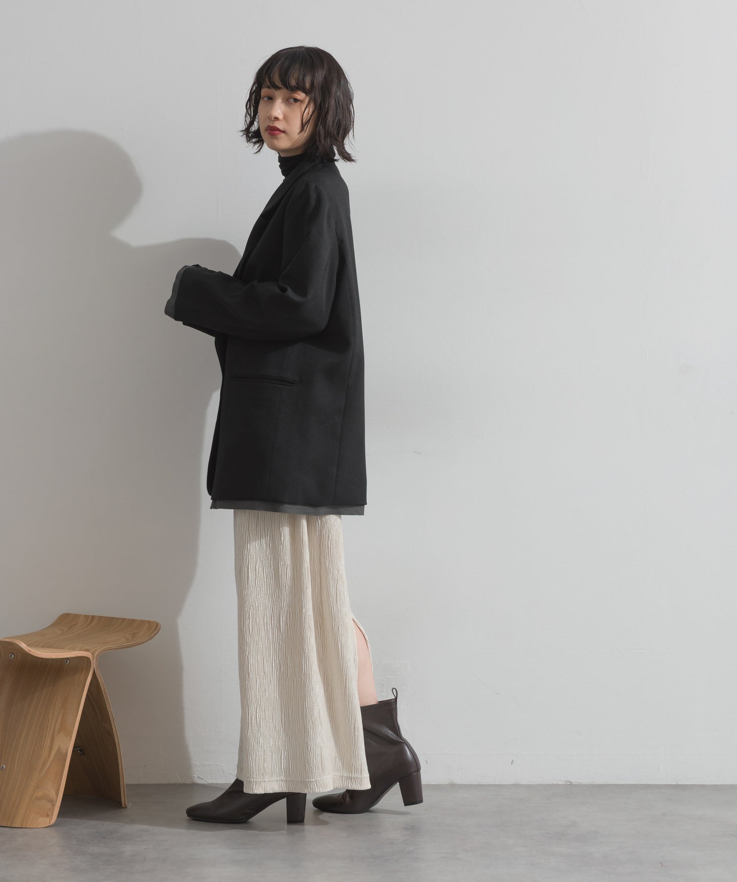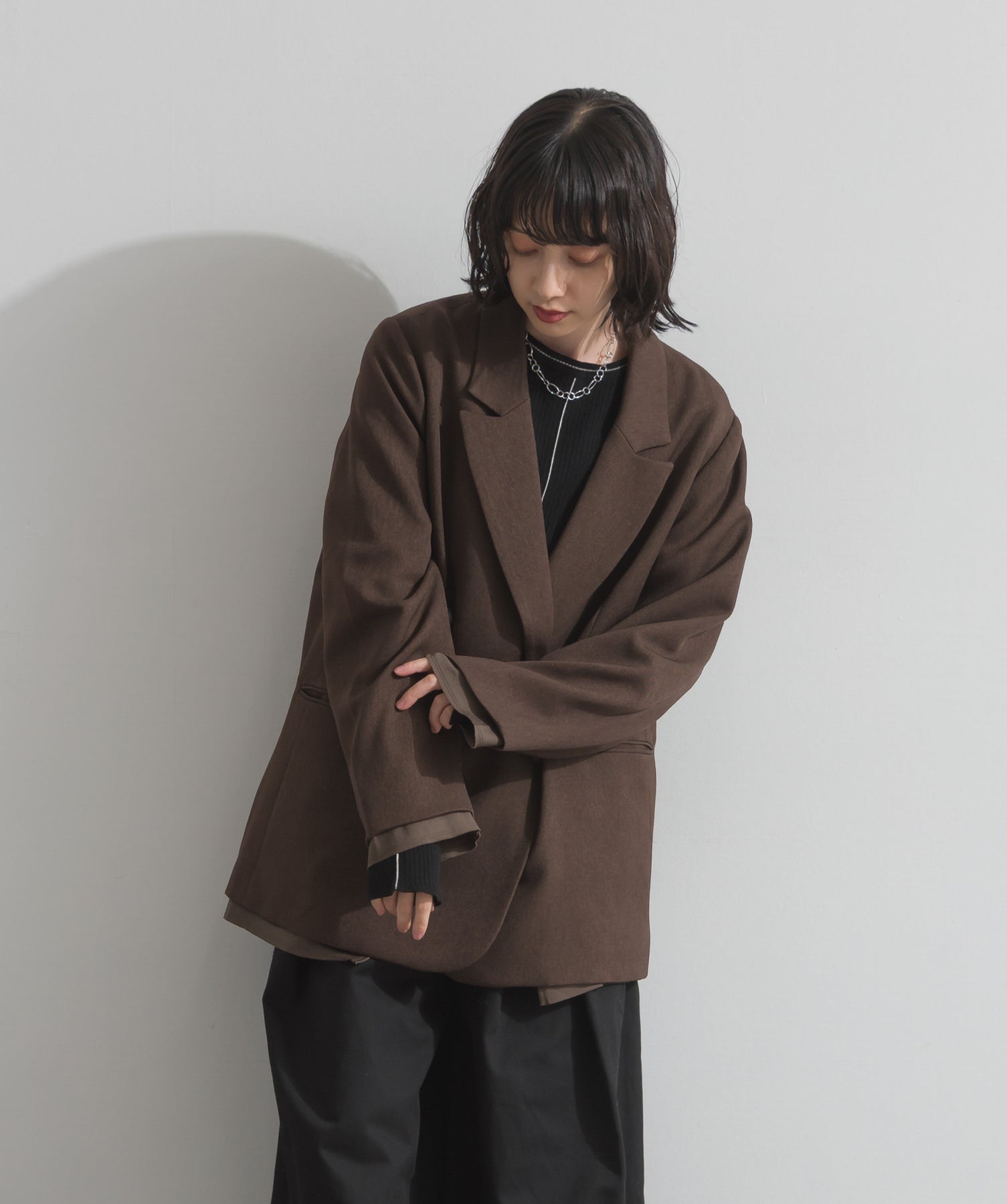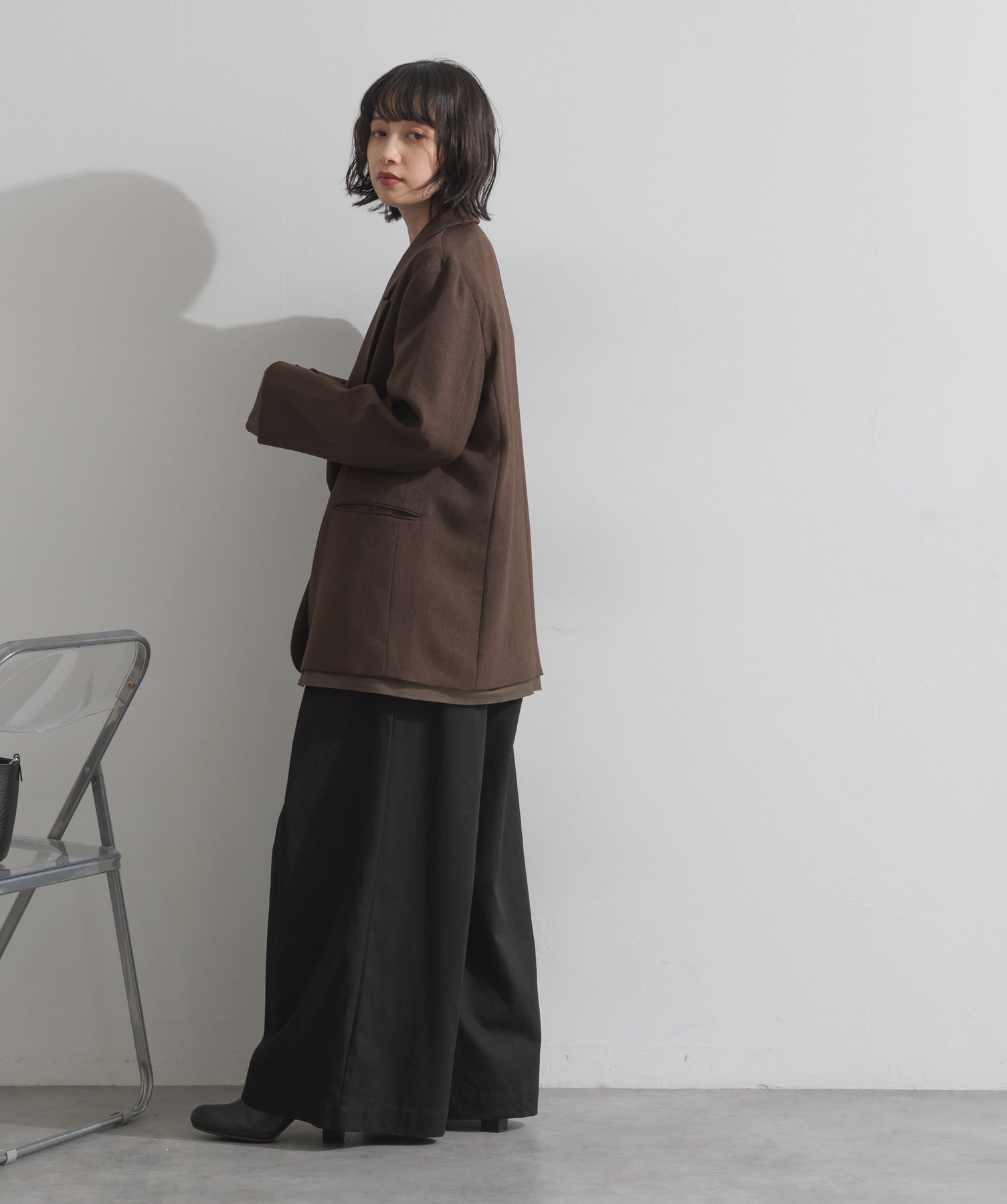 ・素材:(ブラック、ブラウン)表地:ポリエステル100% 裏地:ポリエステル100% 別布:ポリエステル63% 綿37% (チャコール、カーキ)表地:ポリエステル99% レーヨン1% 裏地:ポリエステル100% 別布:ポリエステル63% 綿37%