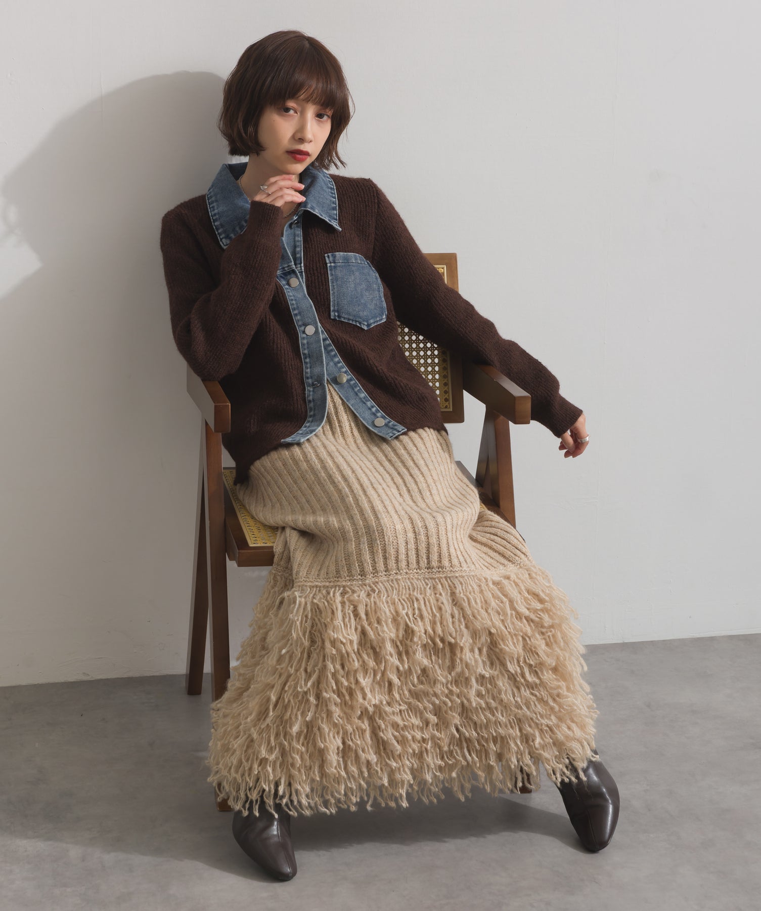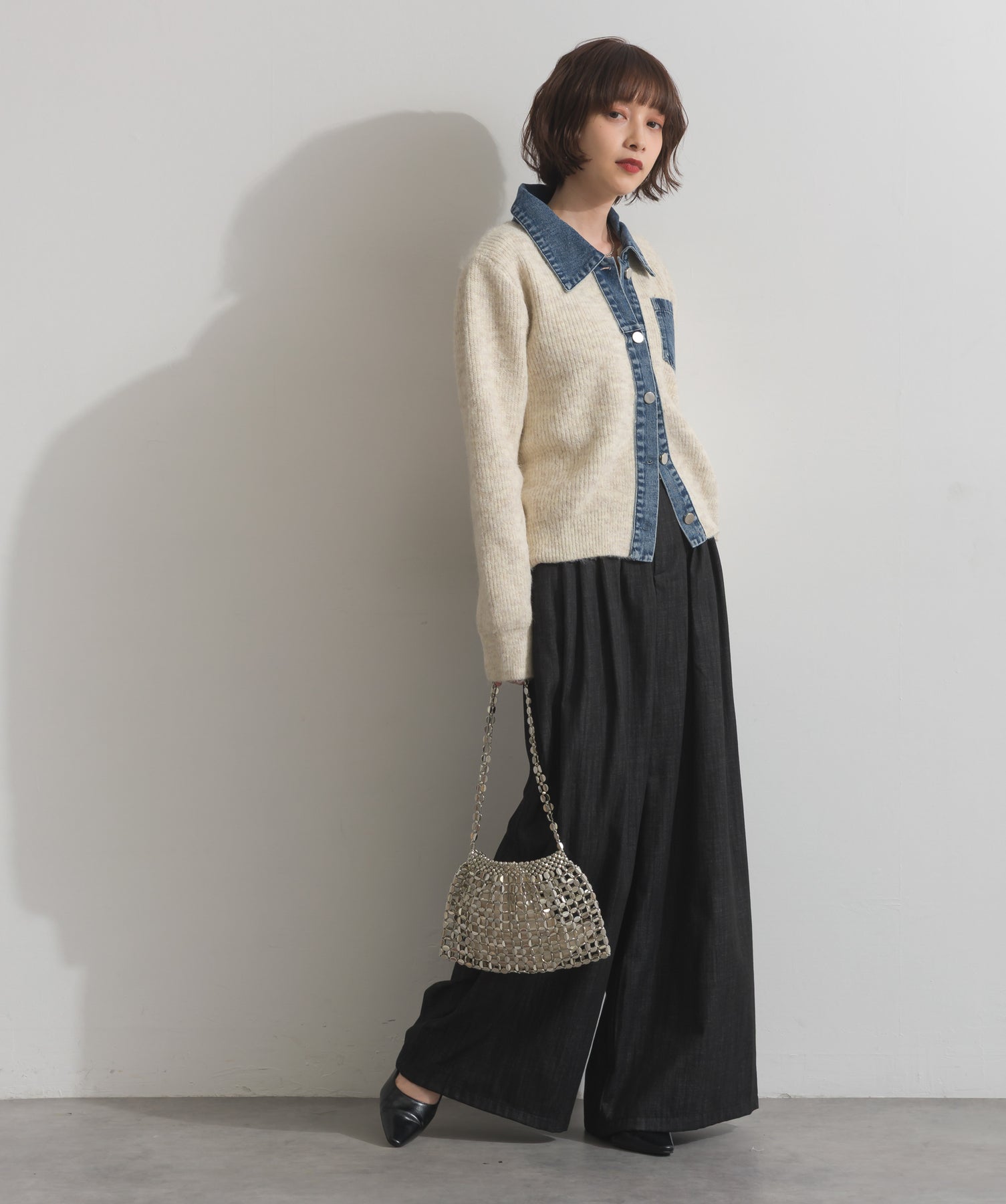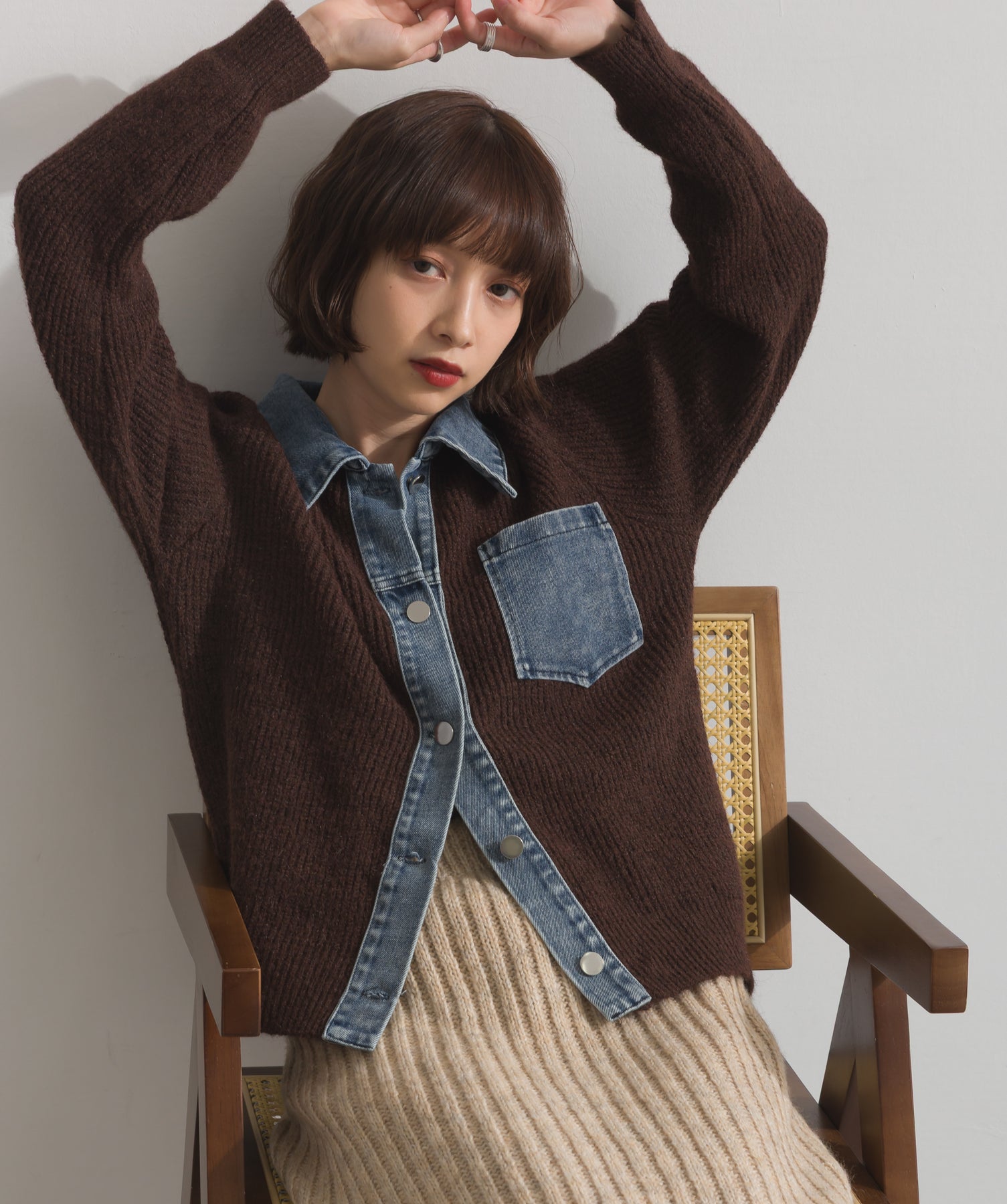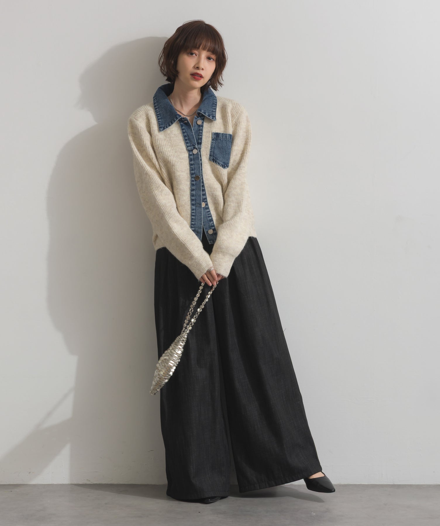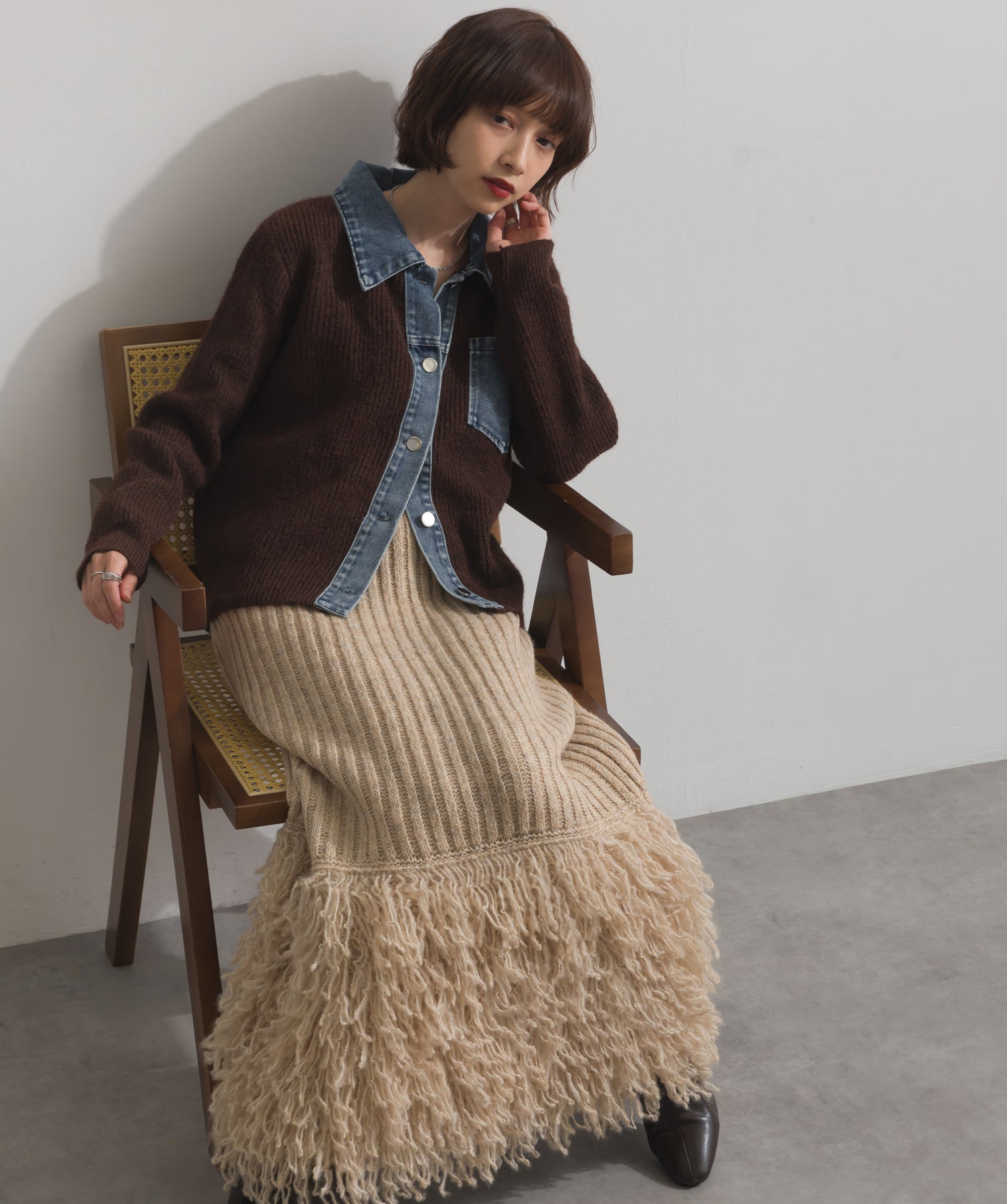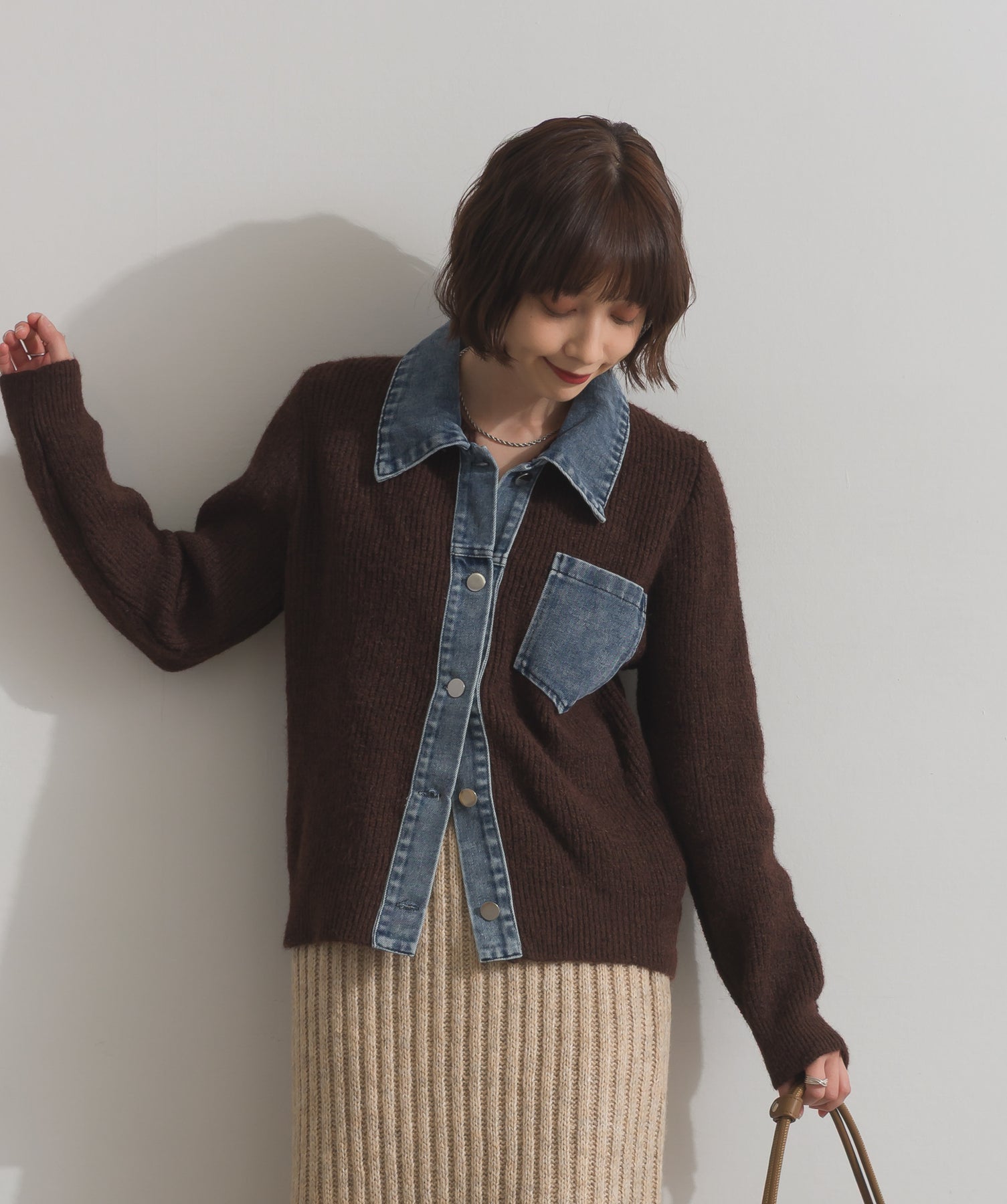 デニムの存在感で差をつける。1枚で主役になる異素材カーデ。