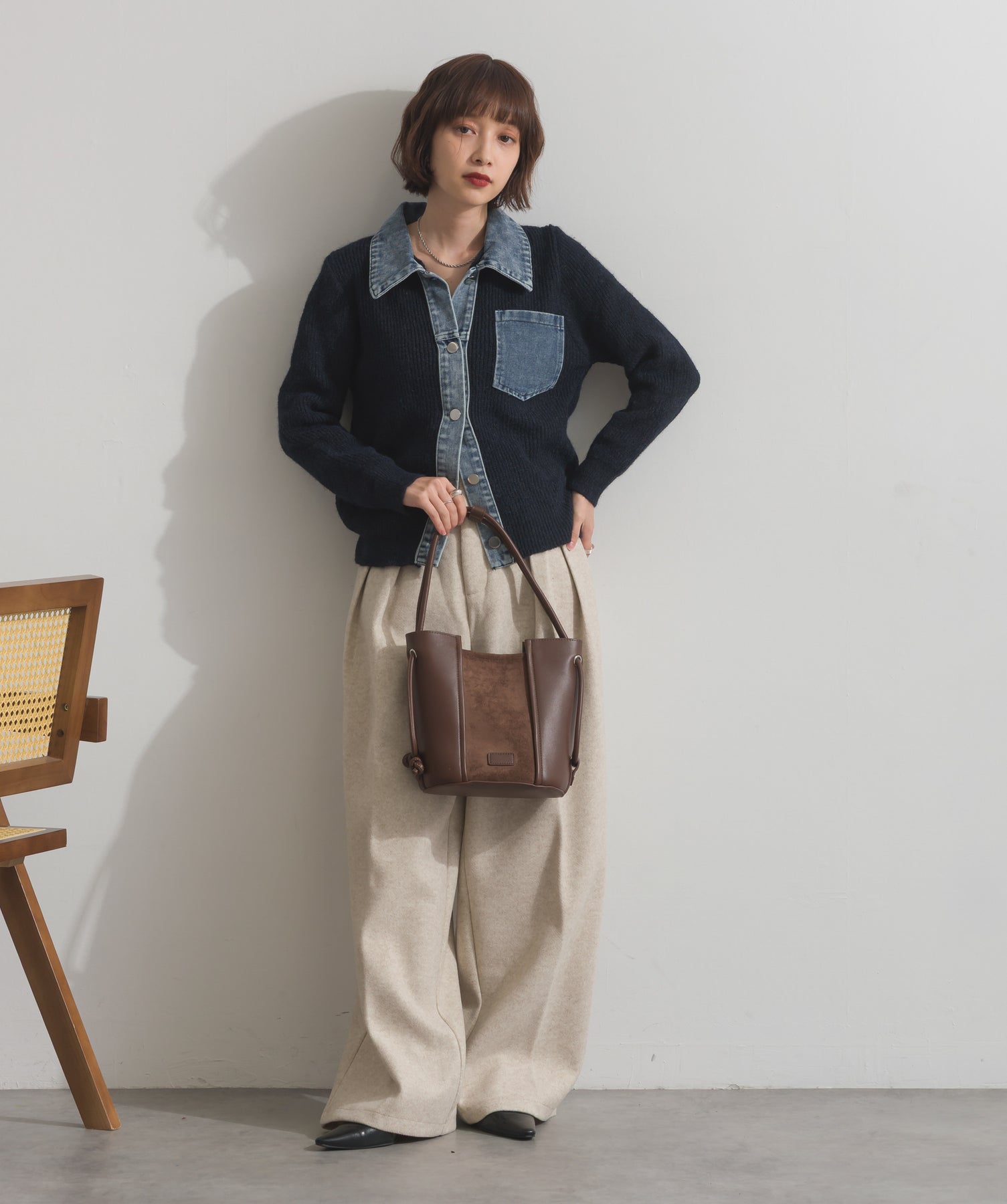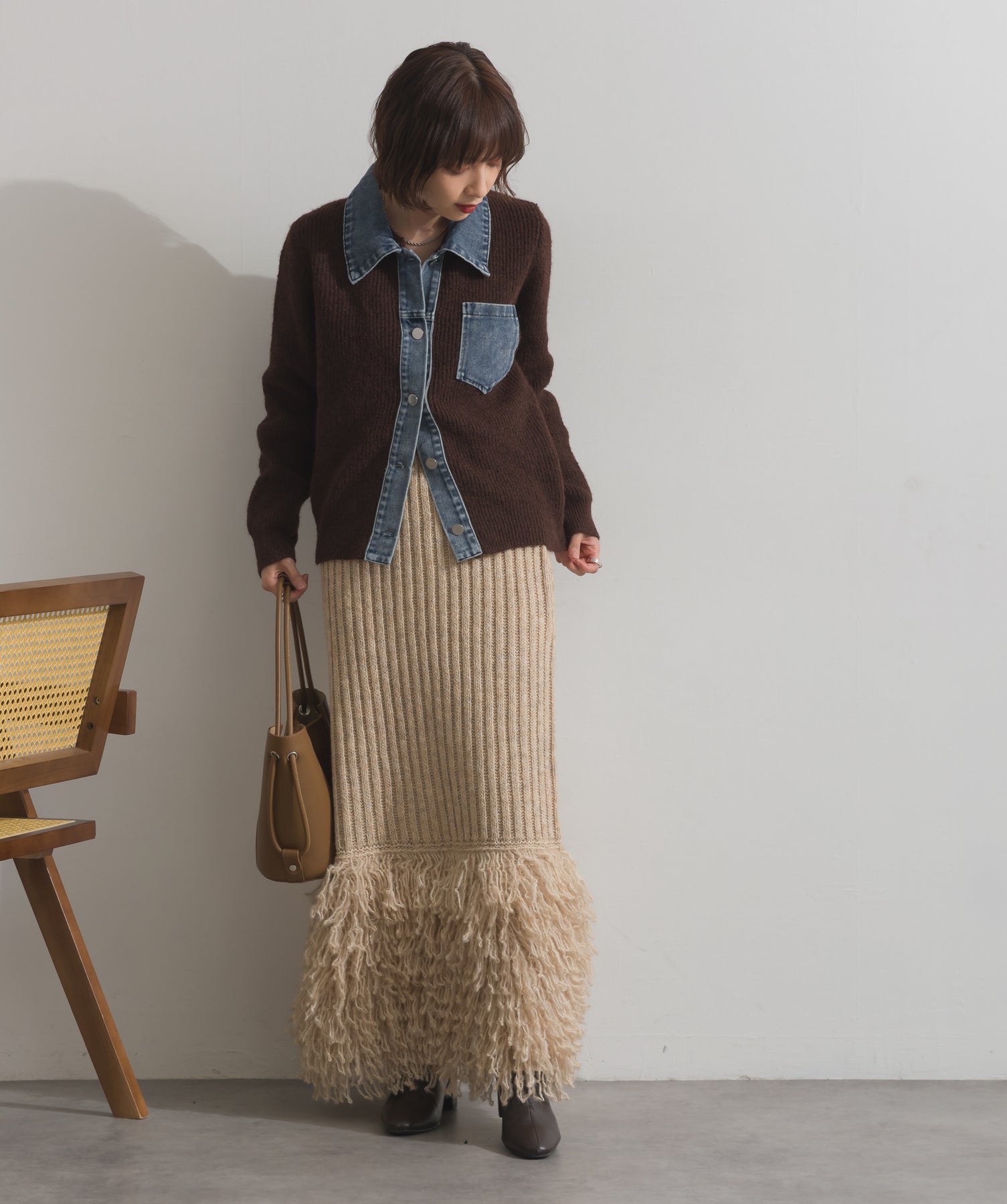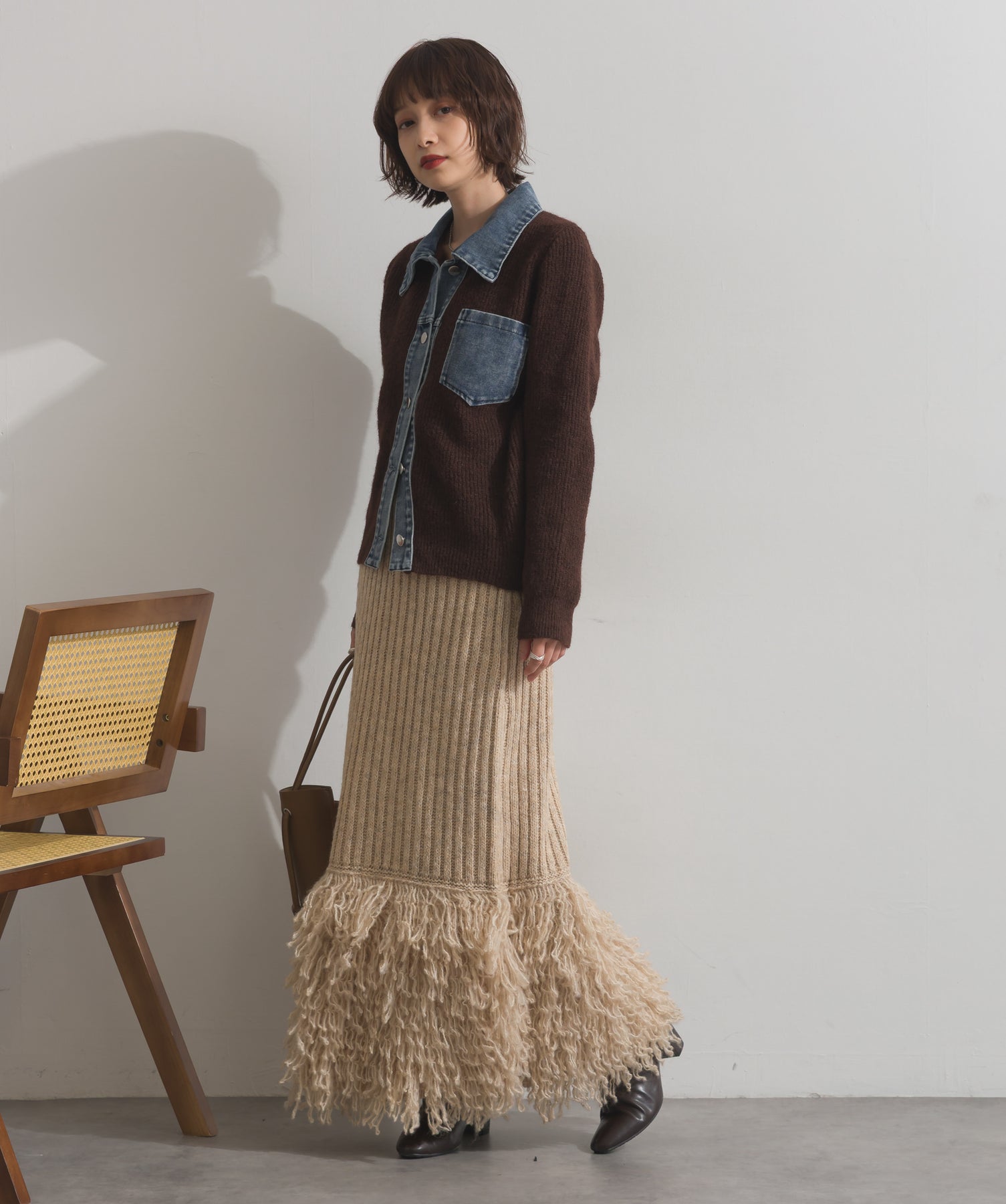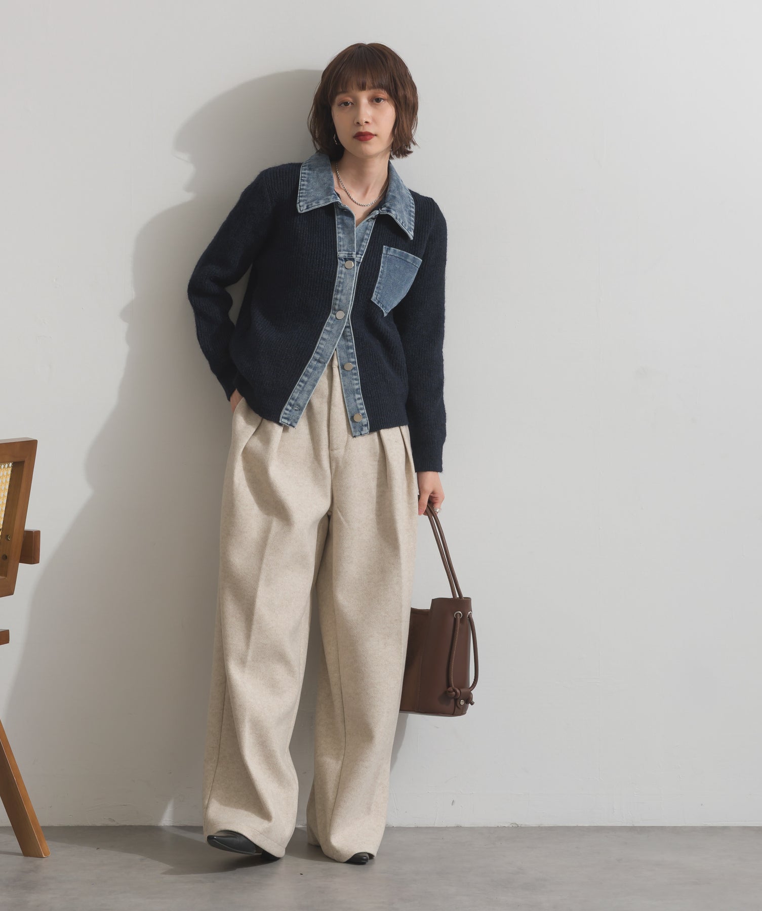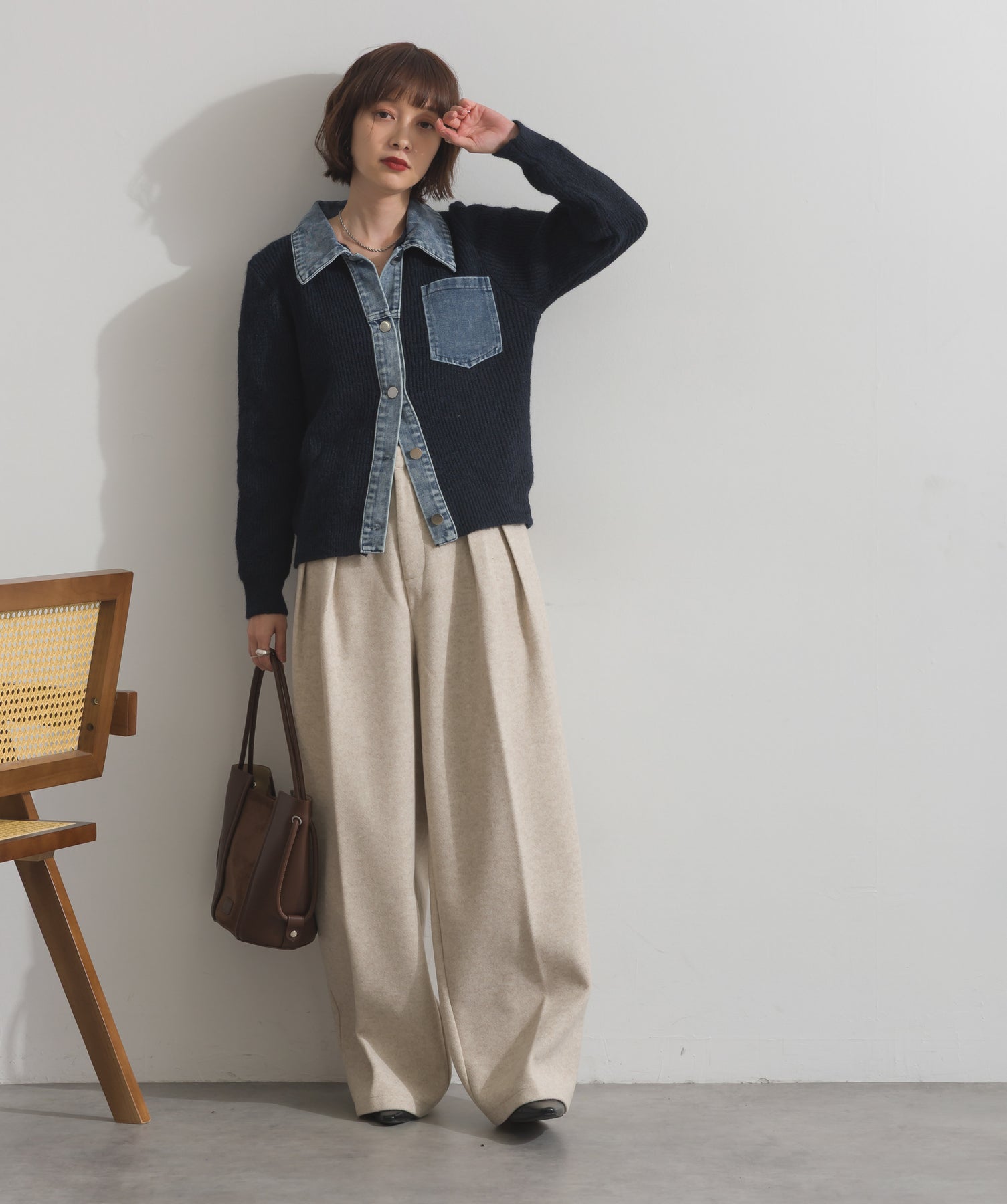 デニムの存在感で差をつける。1枚で主役になる異素材カーデ。