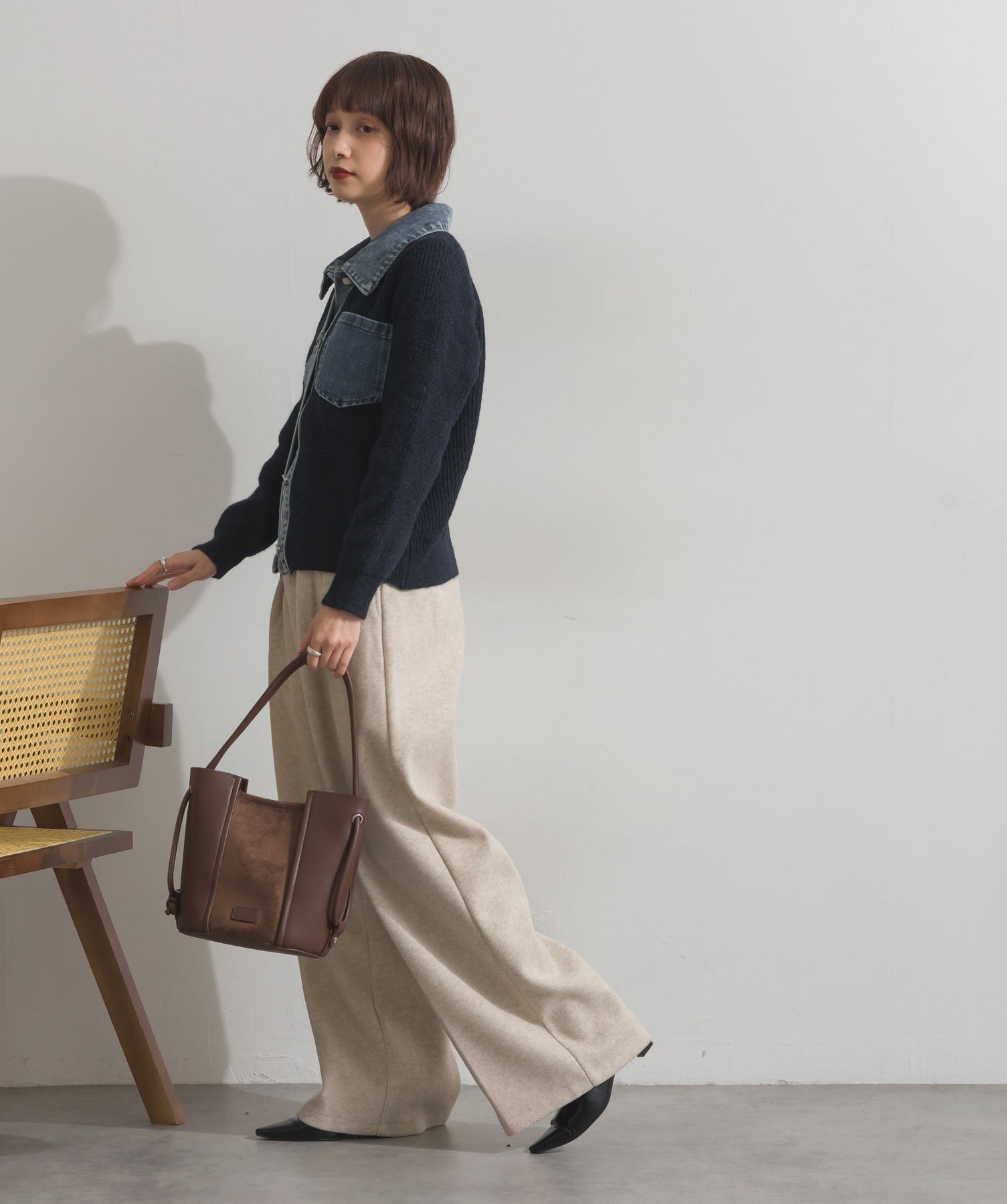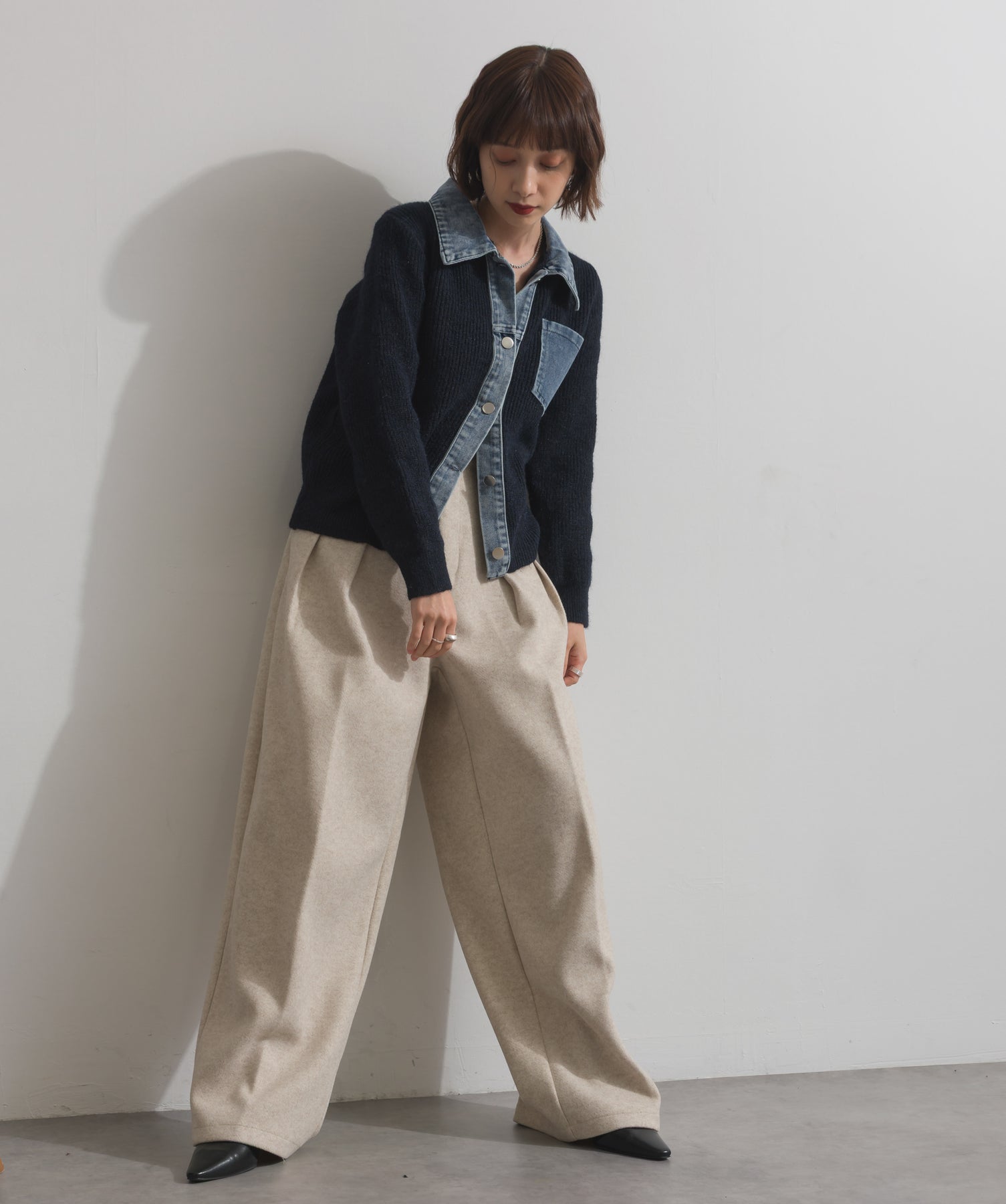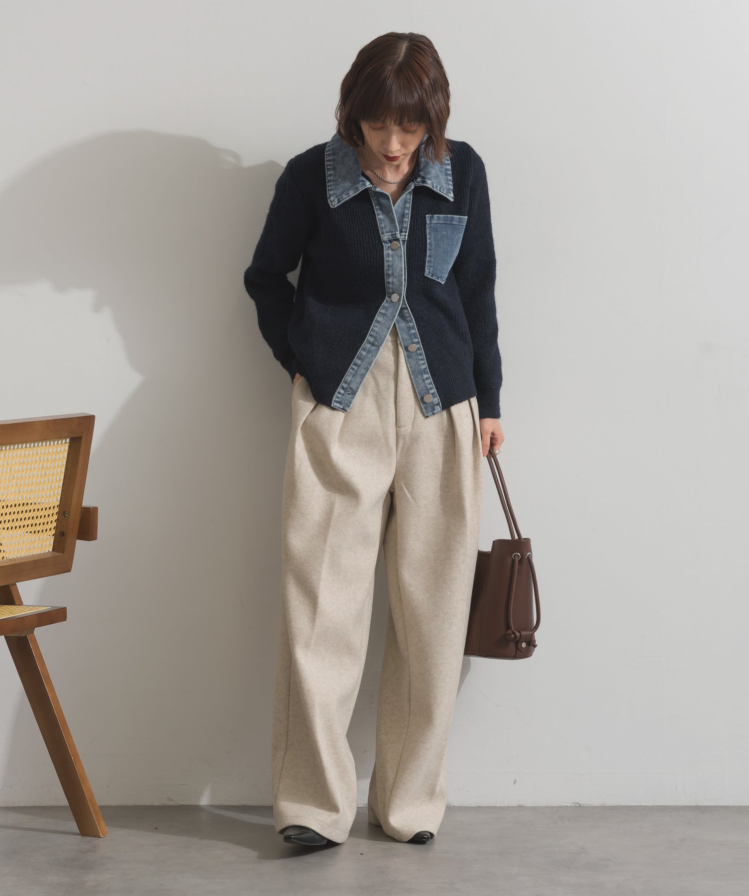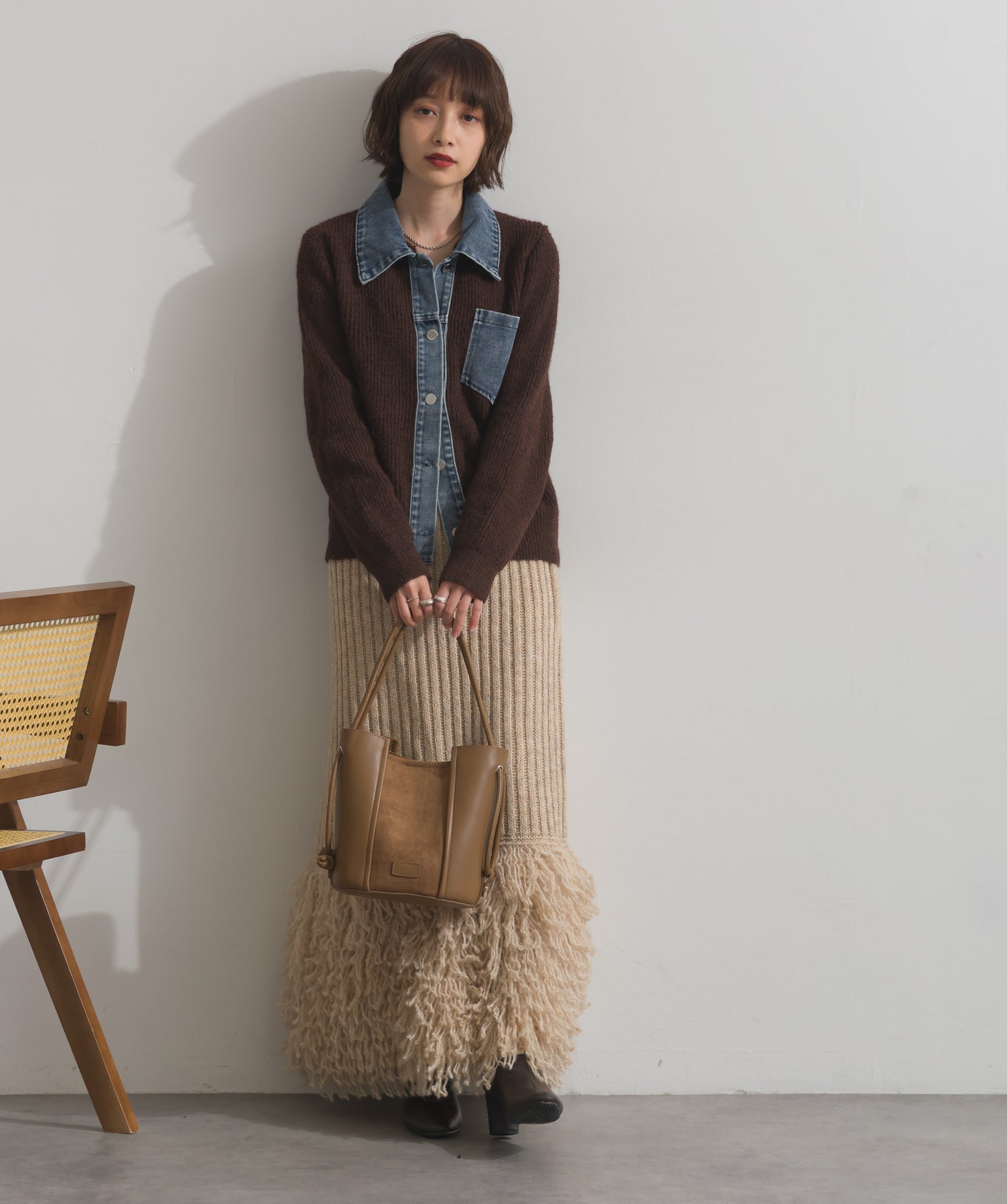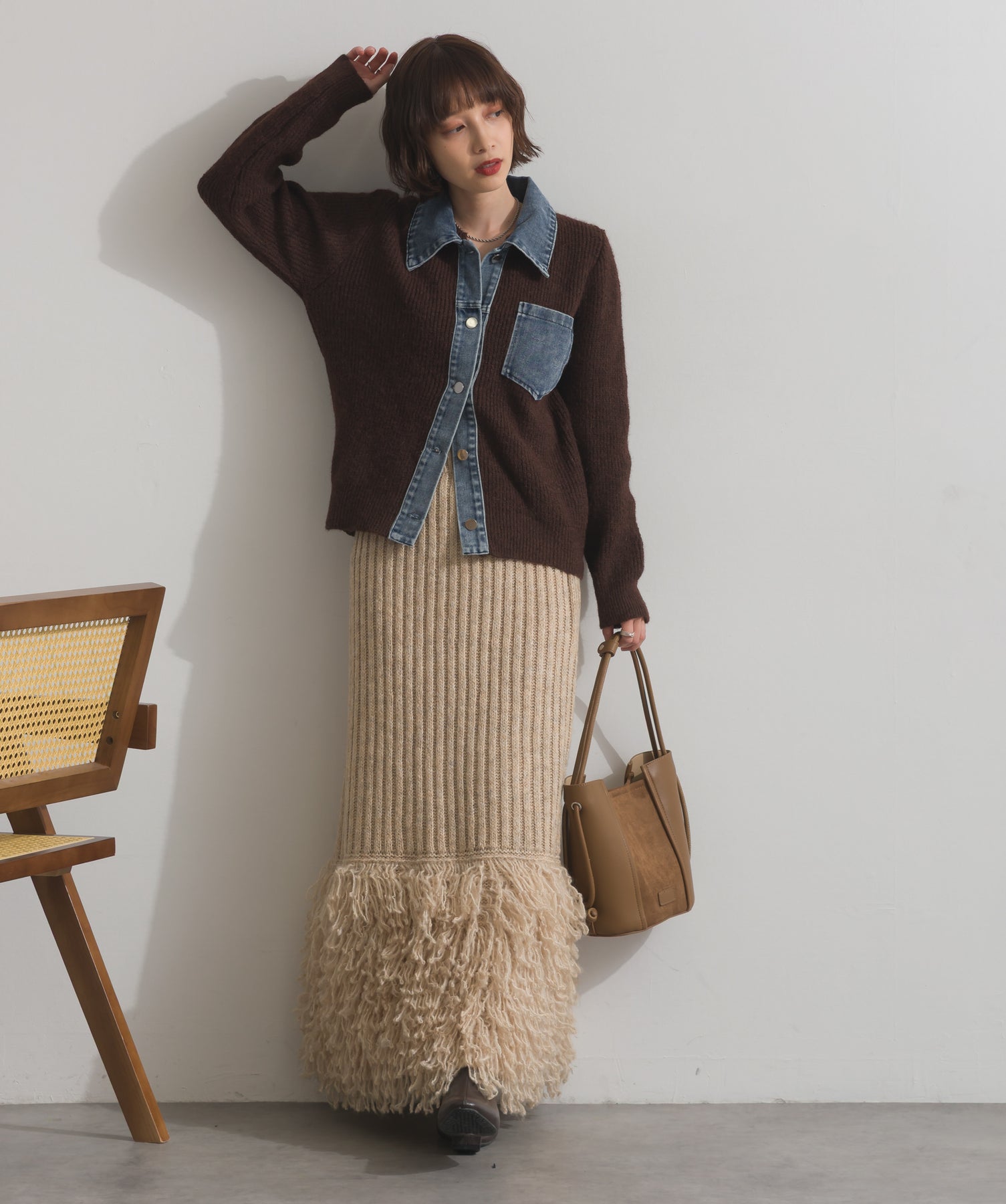デニムの存在感で差をつける。1枚で主役になる異素材カーデ。