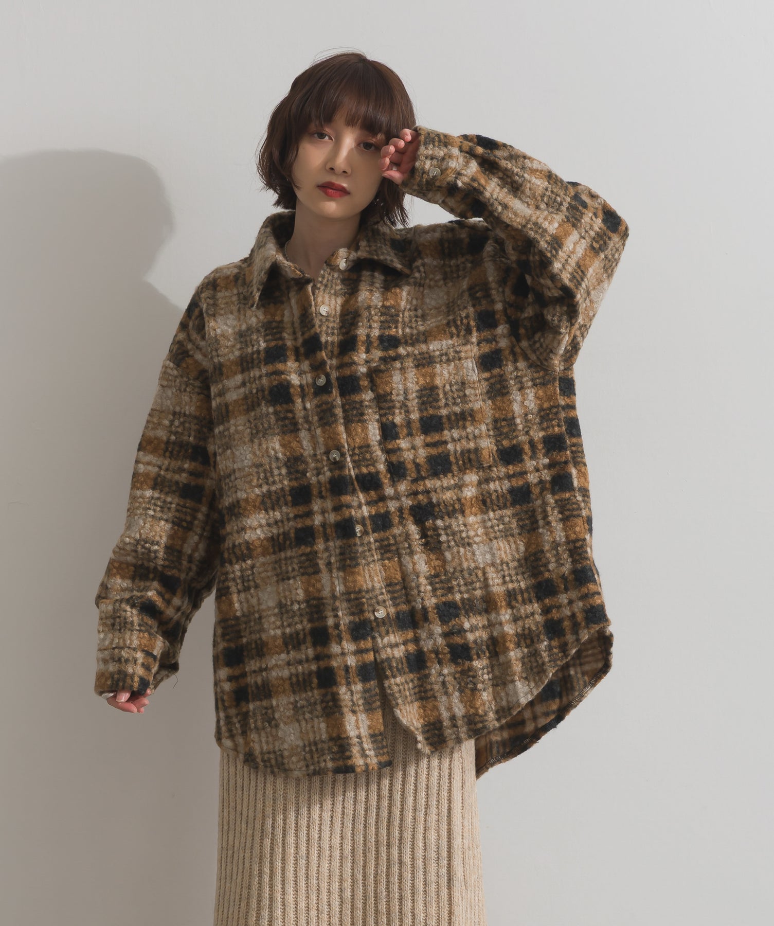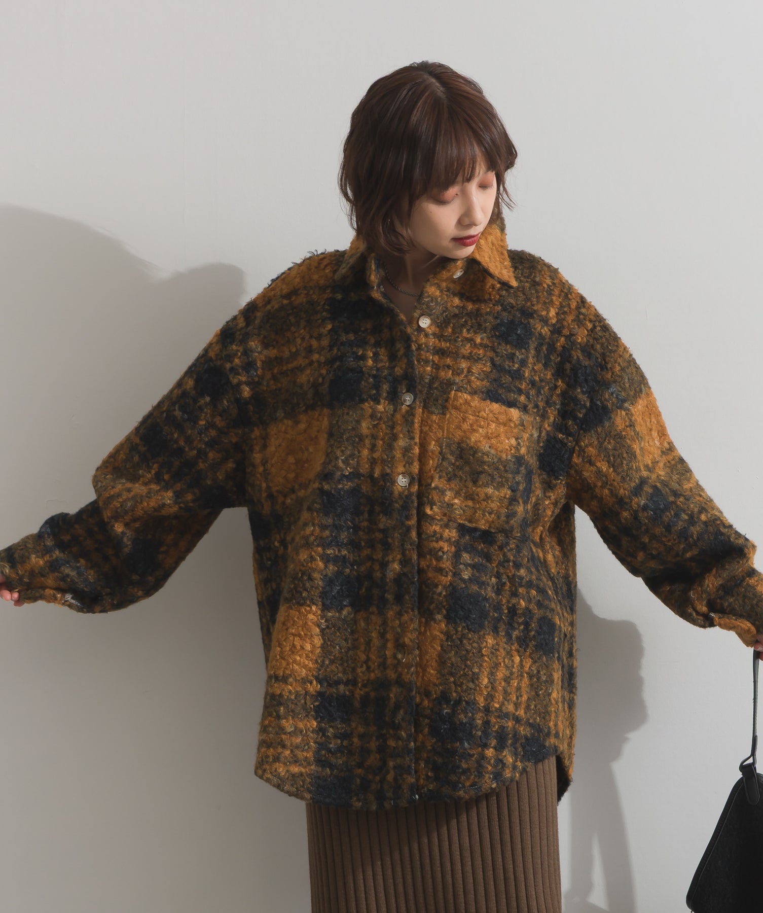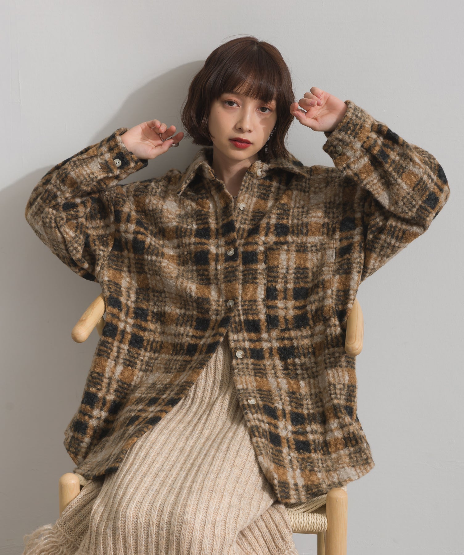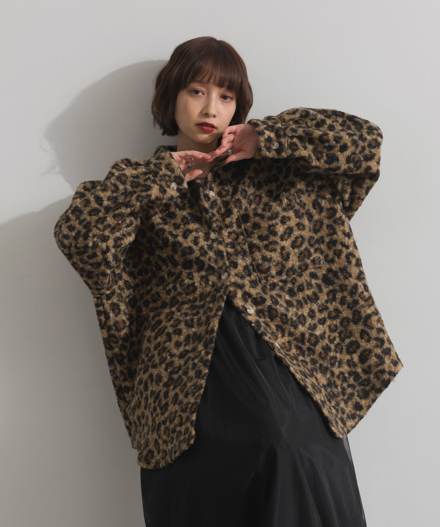 -design-大胆なチェック柄やレオパード柄を採用し、1枚で着映える主役級のデザインに仕上げたCPOシャツジャケット。オーバーサイズのシルエットが抜け感とラフなこなれ感を演出。フロントボタンで羽織りやすく、インナーを選ばずレイヤードスタイルも自在。ワイドパンツやロングスカートとも好相性で、ユニセックスにもおすすめの万能アウター。