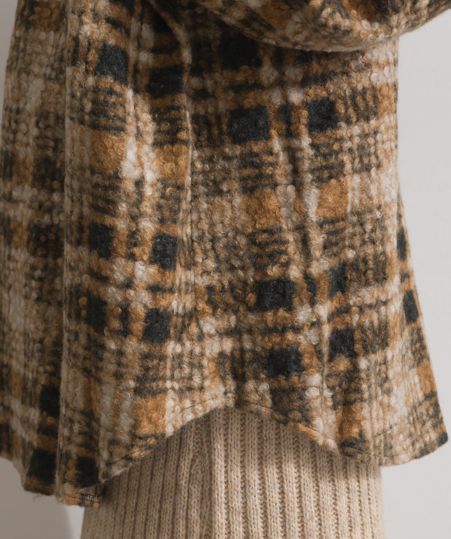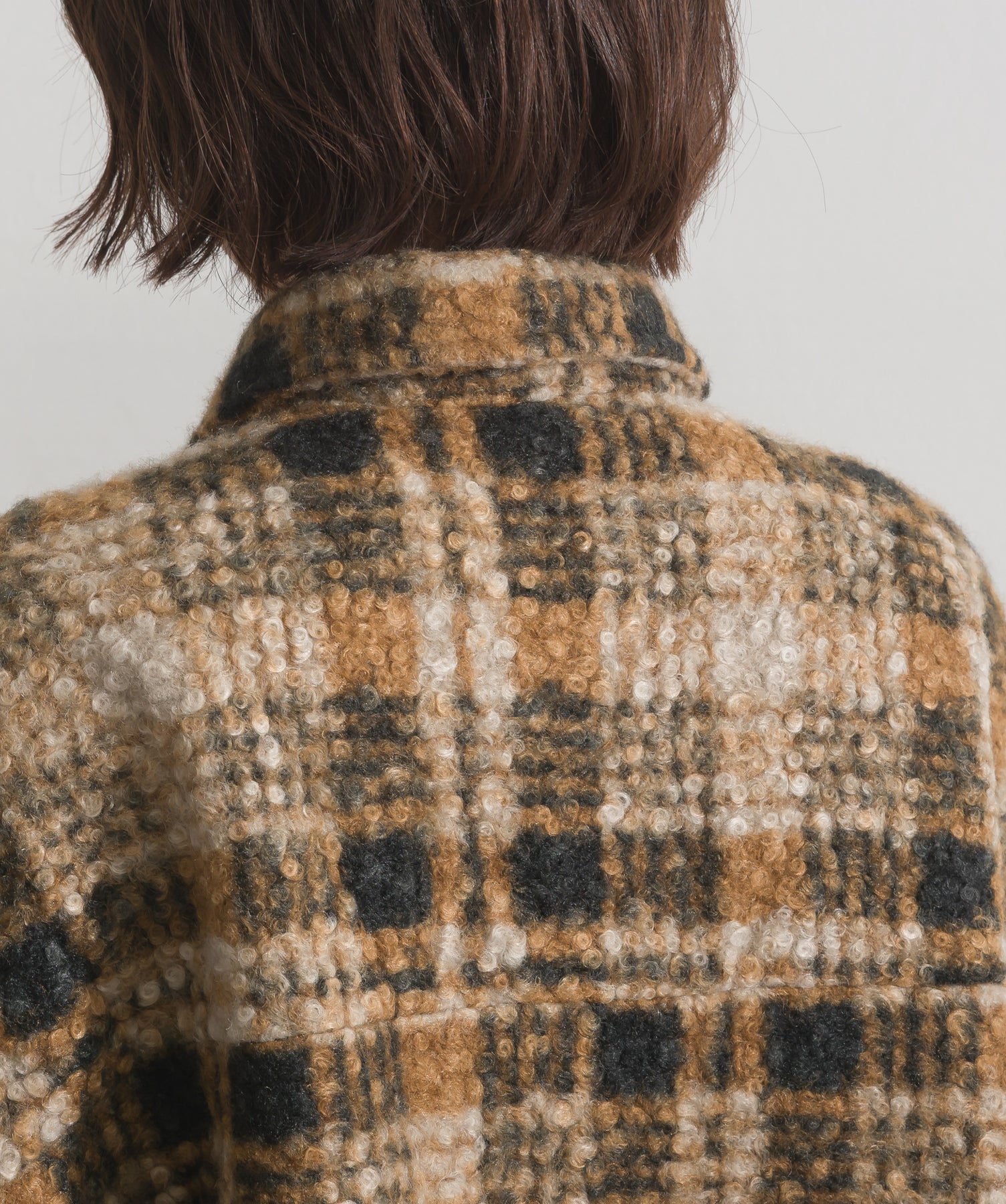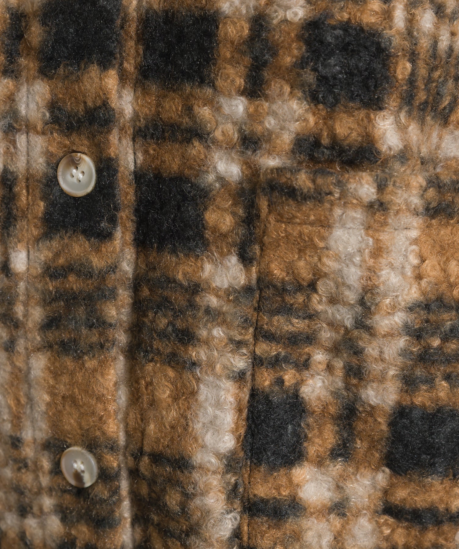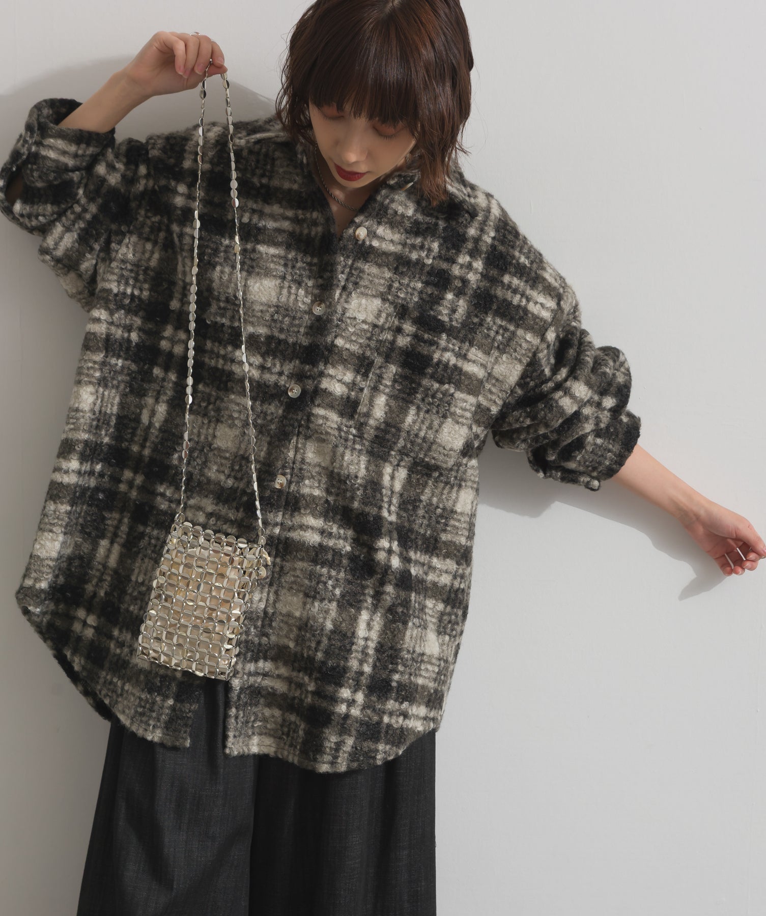 -design-大胆なチェック柄やレオパード柄を採用し、1枚で着映える主役級のデザインに仕上げたCPOシャツジャケット。オーバーサイズのシルエットが抜け感とラフなこなれ感を演出。フロントボタンで羽織りやすく、インナーを選ばずレイヤードスタイルも自在。ワイドパンツやロングスカートとも好相性で、ユニセックスにもおすすめの万能アウター。