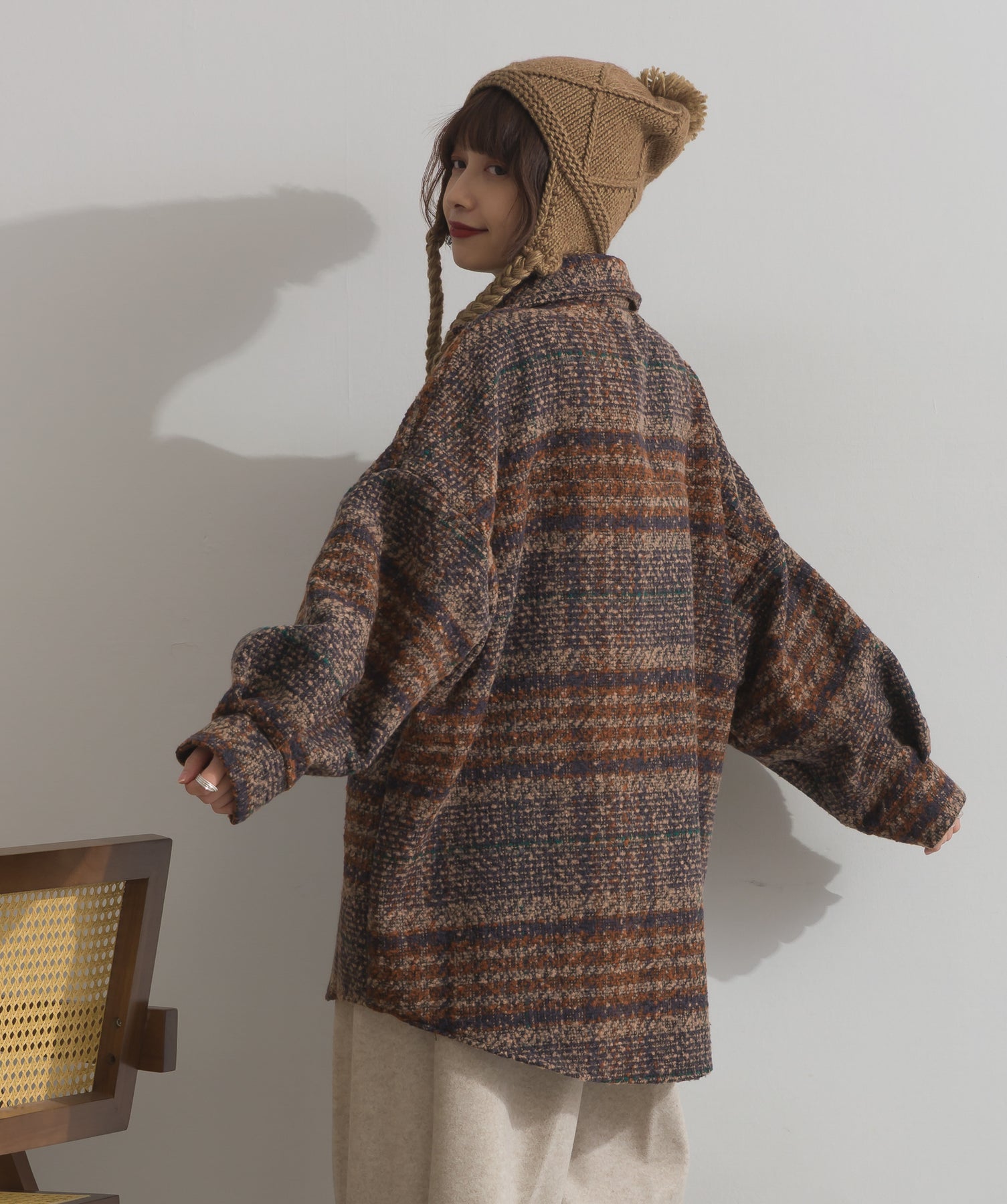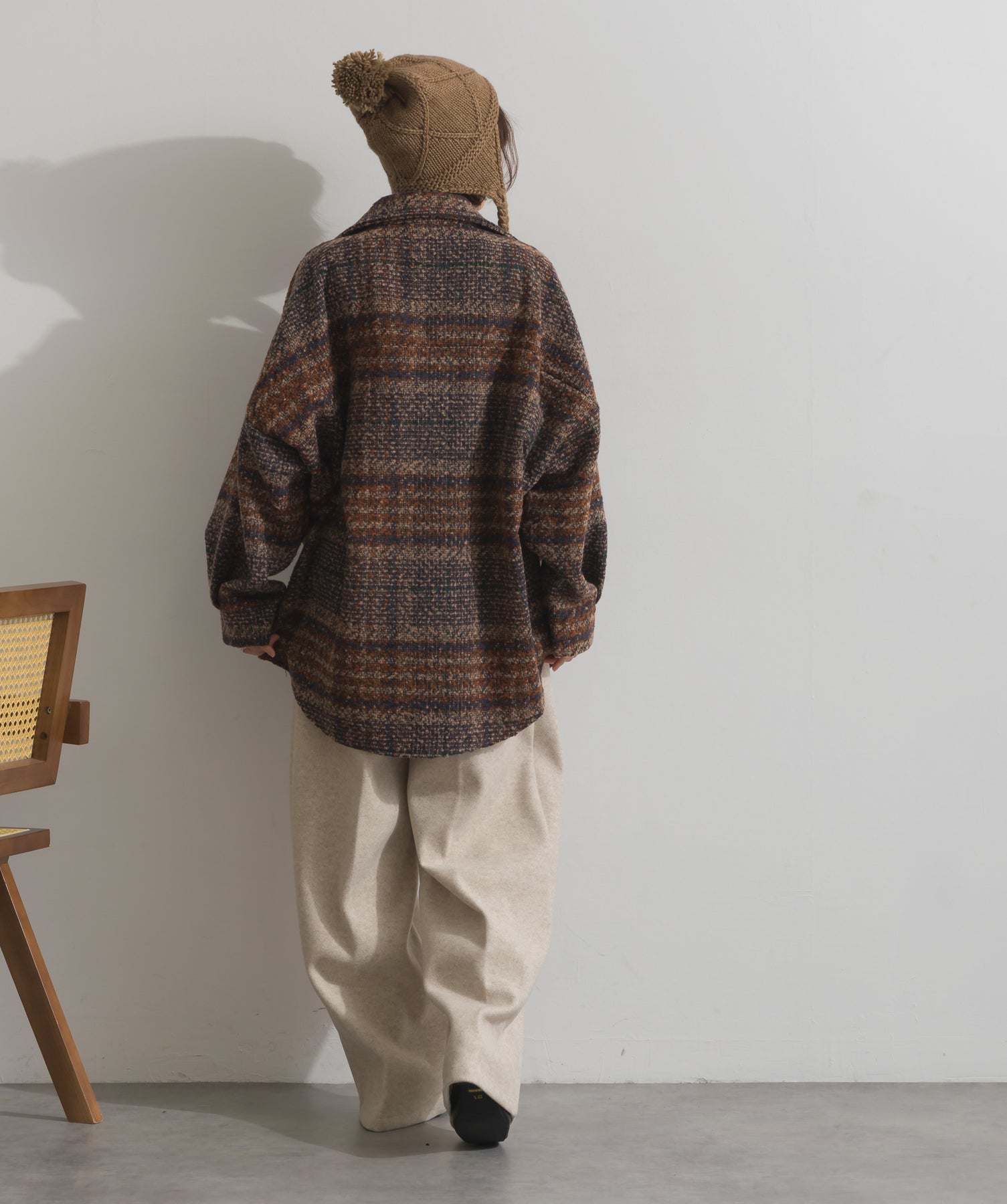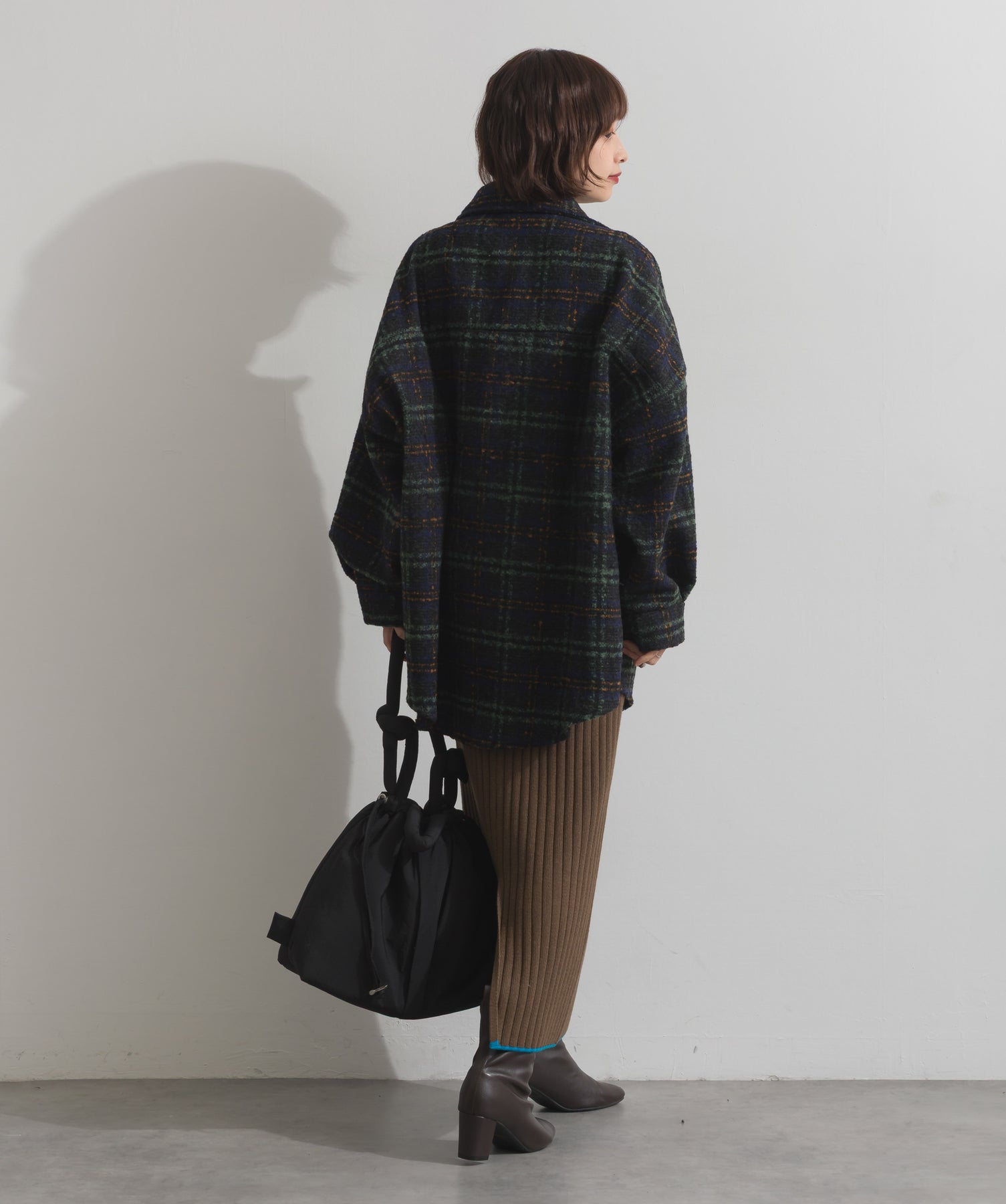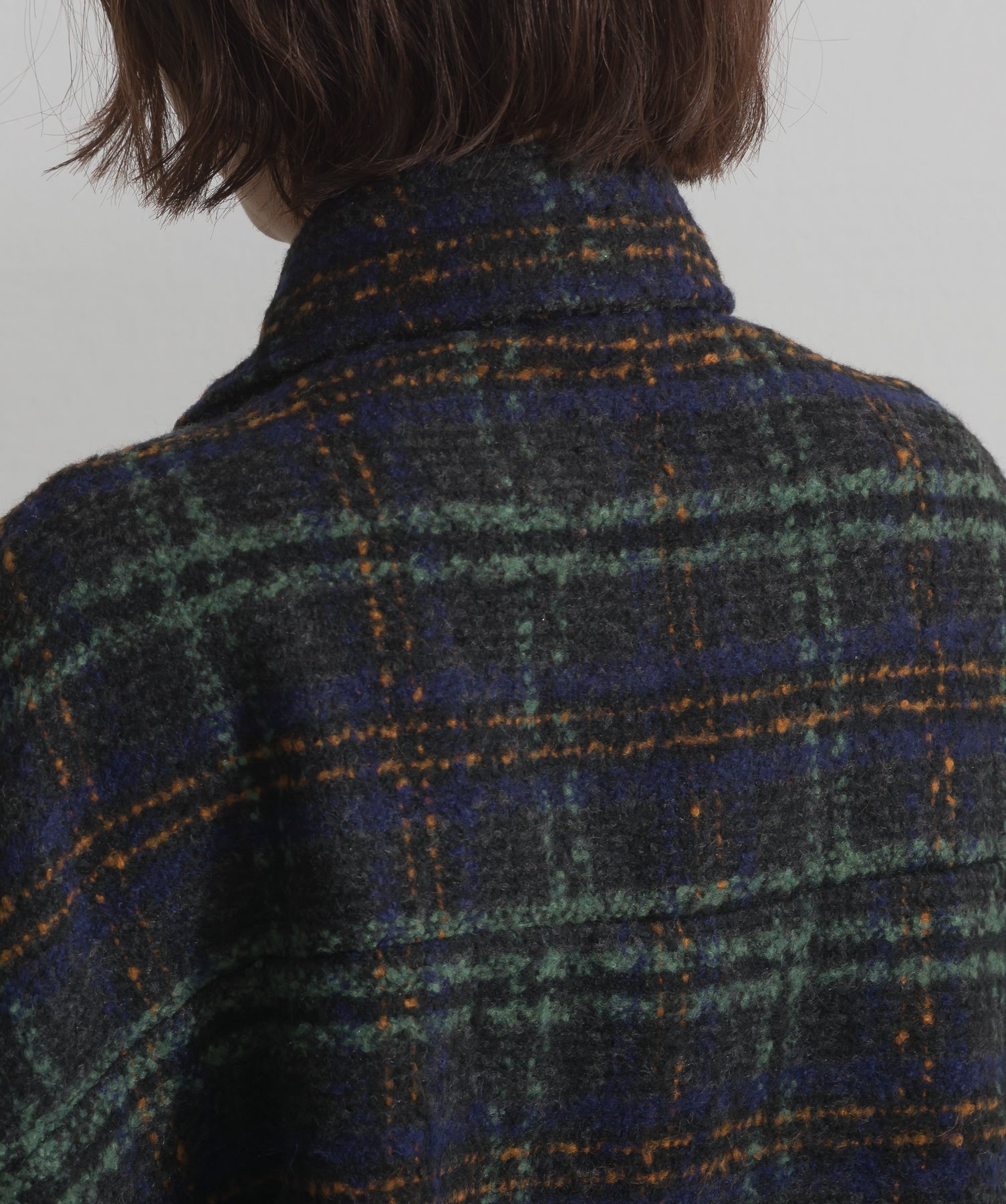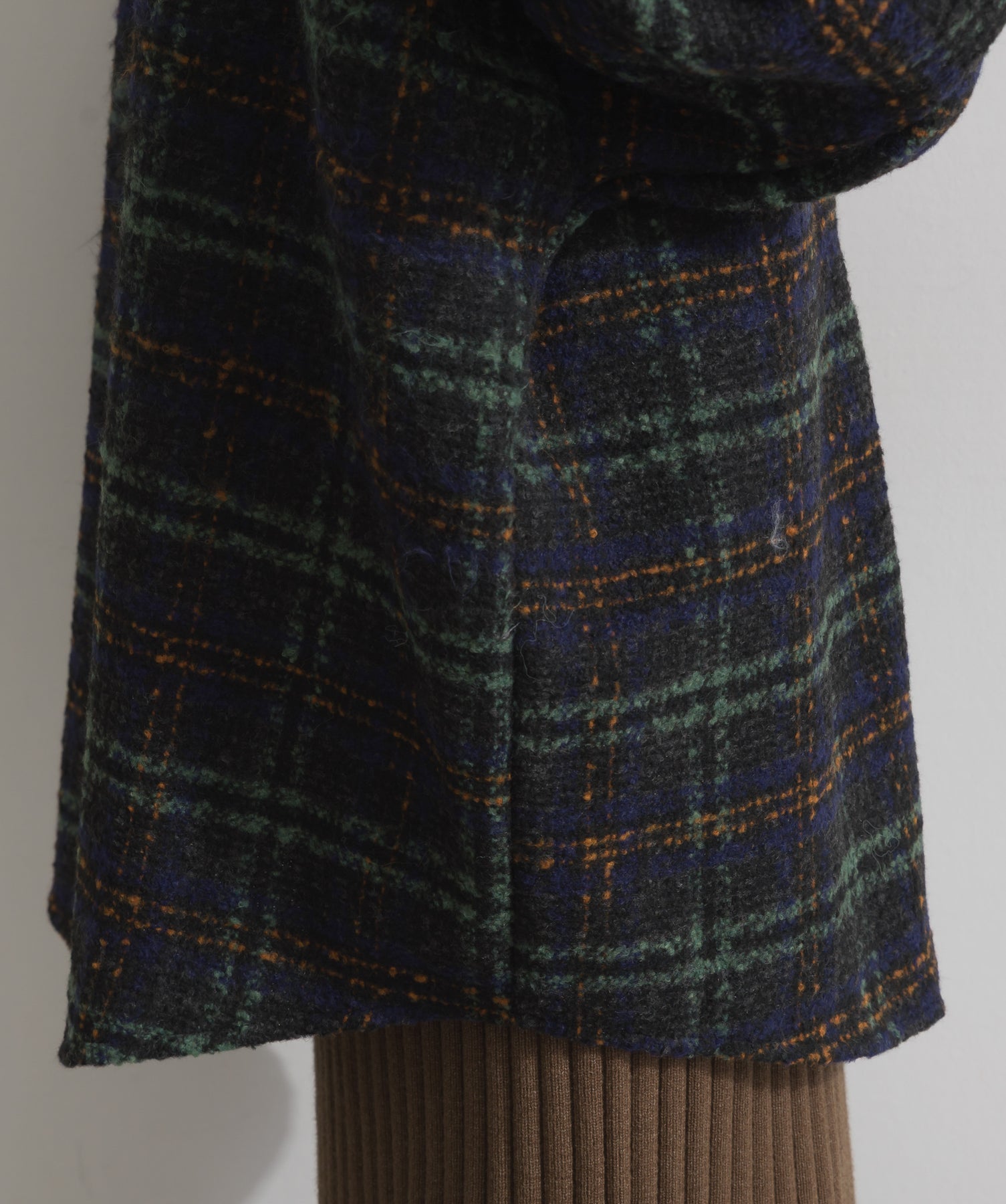 じっくり遊ぶ、大人の抜け感シャツアウター。-material-ふんわりとした表面感が魅力のブークレ素材を使用。 しっかりとした厚みがありながらも、軽く快適でデイリーに活躍します。--design-トラッドなチェック柄に程よいルーズ感をプラスした、確からしいバランス感が光る1着。 大きめの胸ポケットや、ドロップショルダーのシルエットが抜け感を演出し、羽織るだけでコーディネートを格上げします。 シャツ感覚で着られるのに、コート代わりにもなる万能アウター。