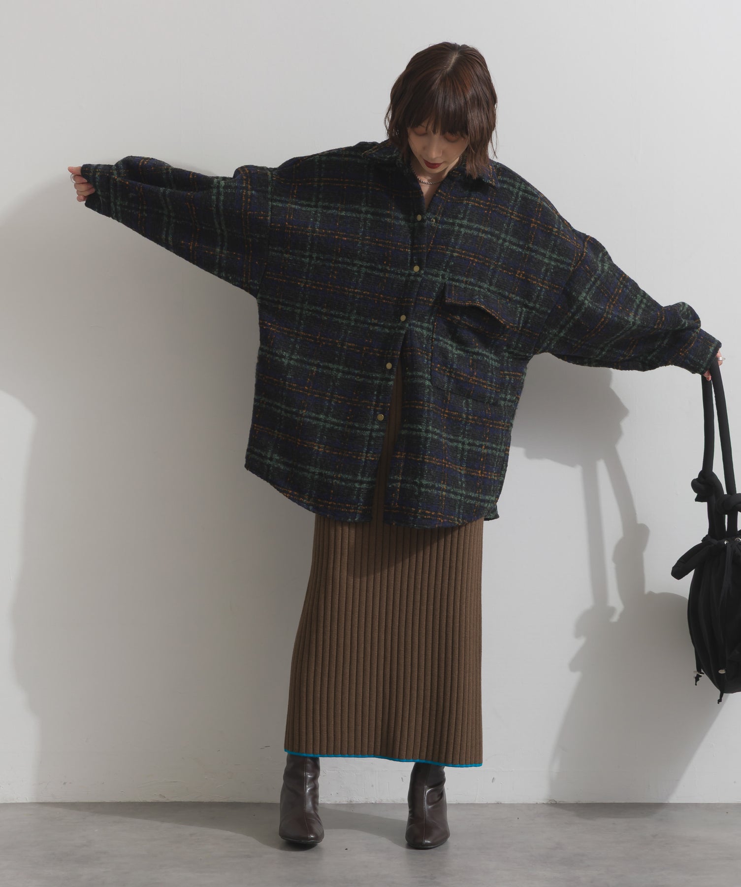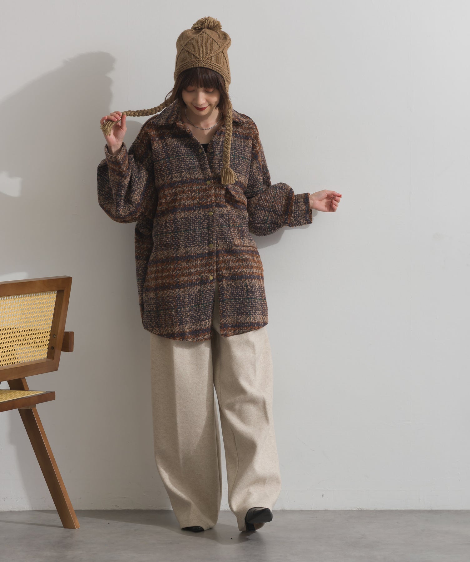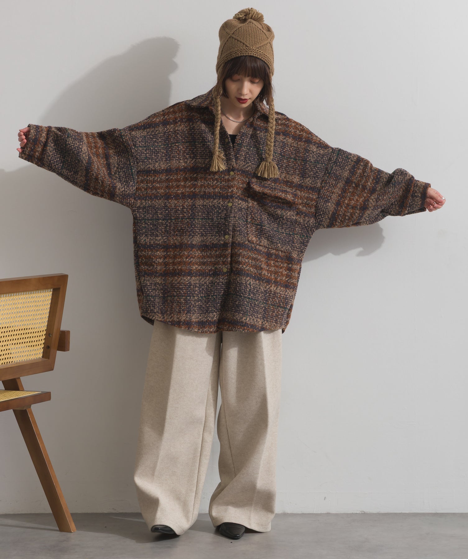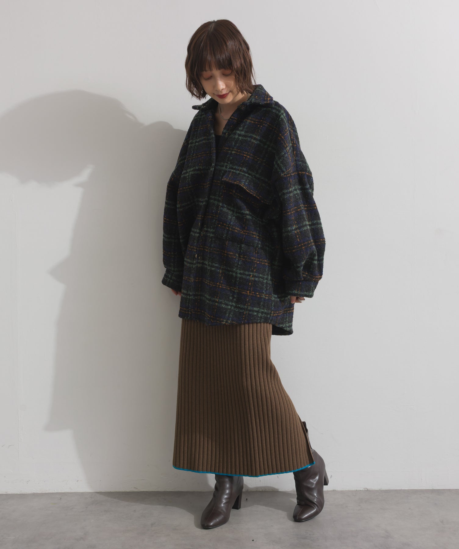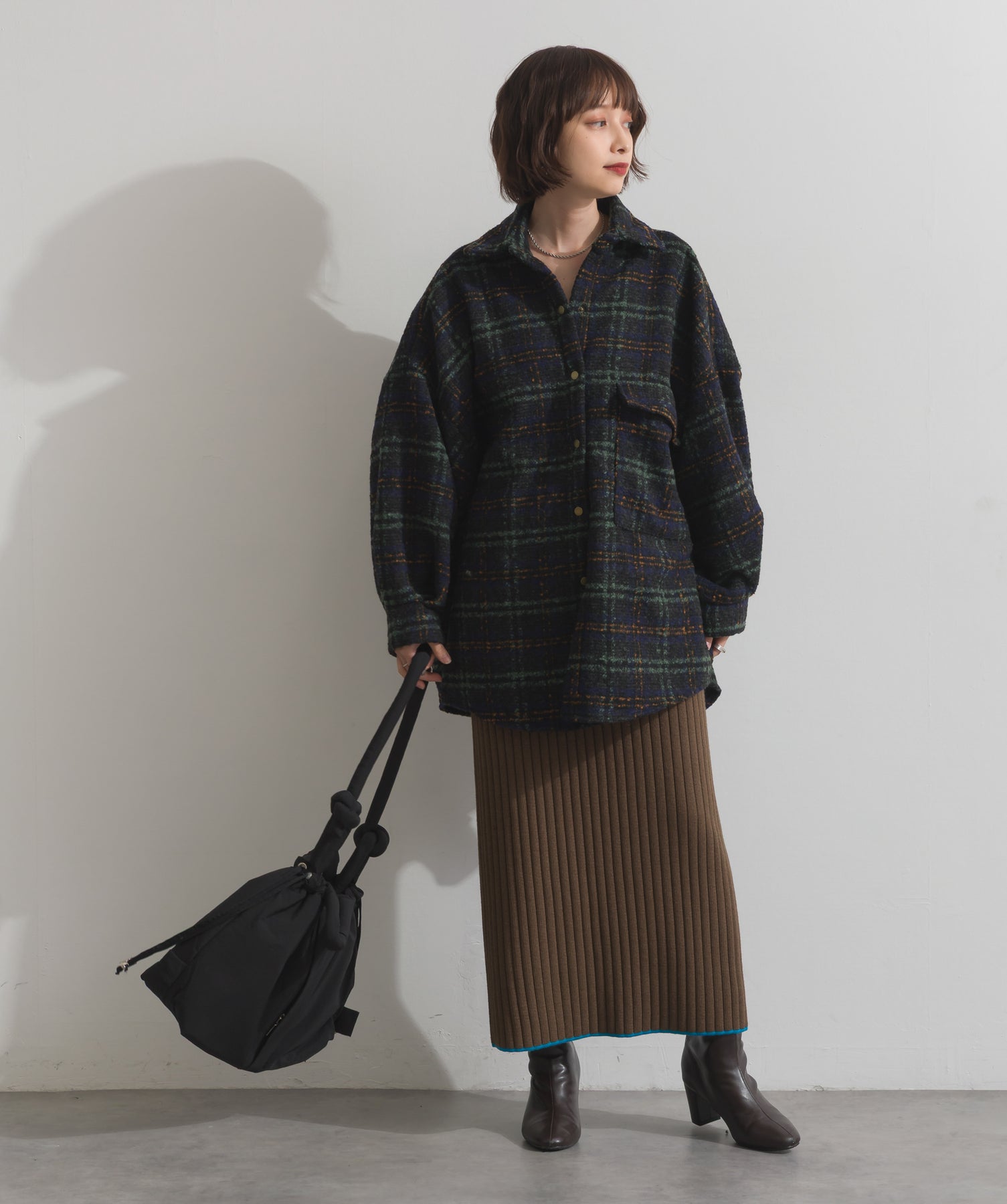 じっくり遊ぶ、大人の抜け感シャツアウター。-material-ふんわりとした表面感が魅力のブークレ素材を使用。 しっかりとした厚みがありながらも、軽く快適でデイリーに活躍します。--design-トラッドなチェック柄に程よいルーズ感をプラスした、確からしいバランス感が光る1着。 大きめの胸ポケットや、ドロップショルダーのシルエットが抜け感を演出し、羽織るだけでコーディネートを格上げします。 シャツ感覚で着られるのに、コート代わりにもなる万能アウター。