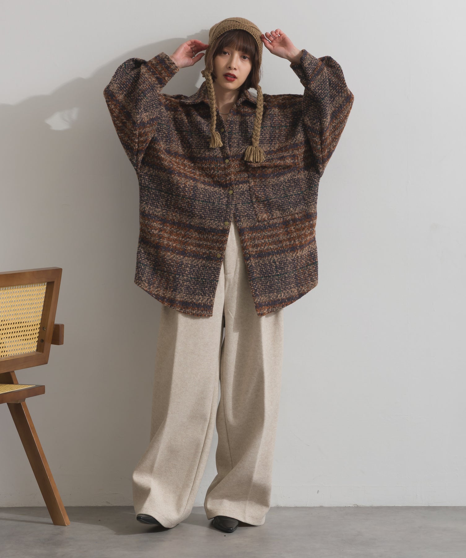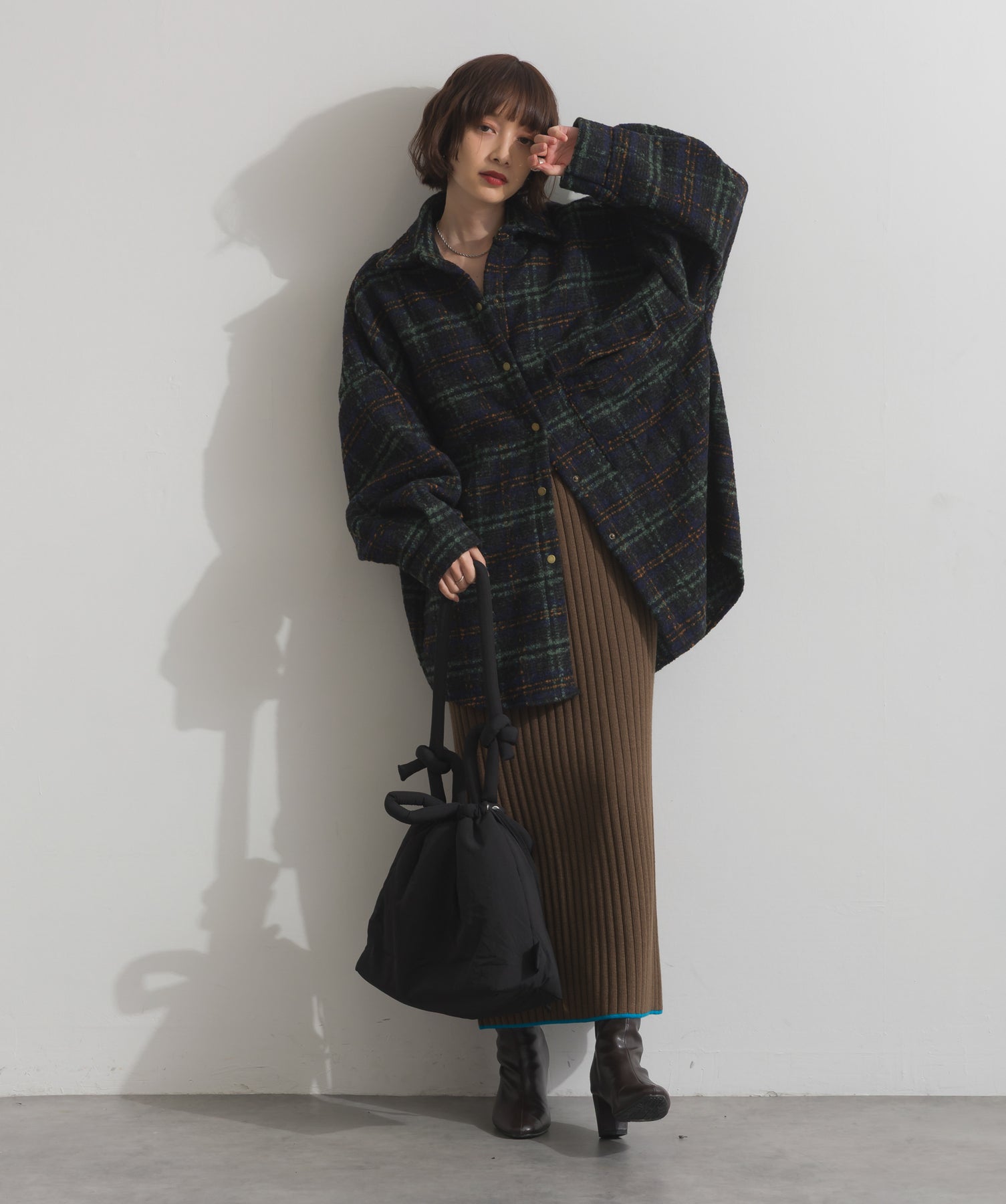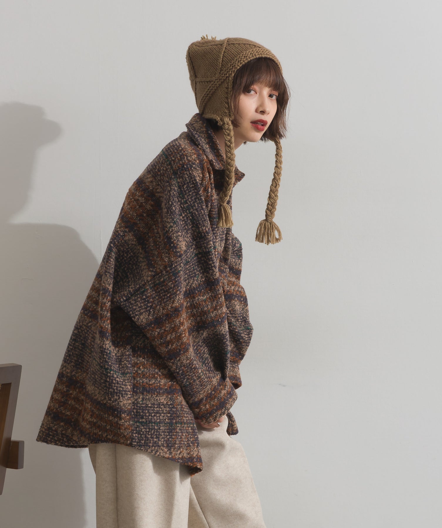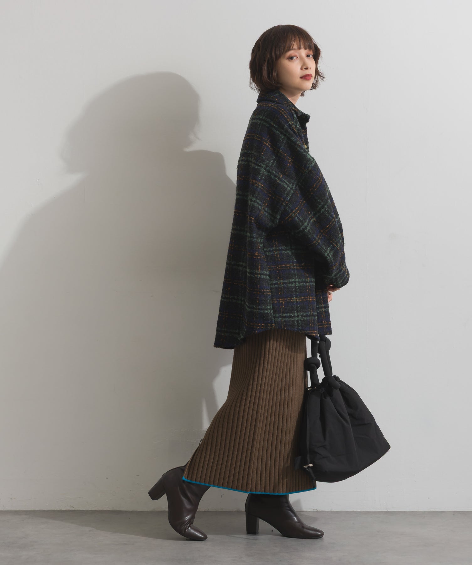 じっくり遊ぶ、大人の抜け感シャツアウター。-material-ふんわりとした表面感が魅力のブークレ素材を使用。 しっかりとした厚みがありながらも、軽く快適でデイリーに活躍します。--design-トラッドなチェック柄に程よいルーズ感をプラスした、確からしいバランス感が光る1着。 大きめの胸ポケットや、ドロップショルダーのシルエットが抜け感を演出し、羽織るだけでコーディネートを格上げします。 シャツ感覚で着られるのに、コート代わりにもなる万能アウター。